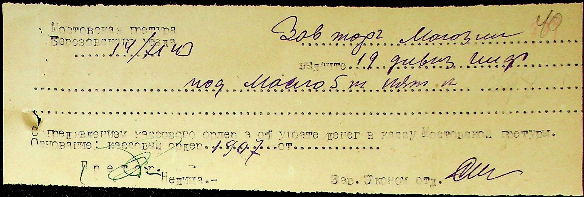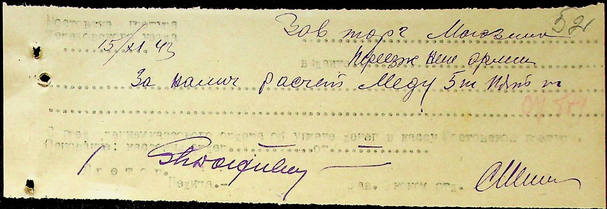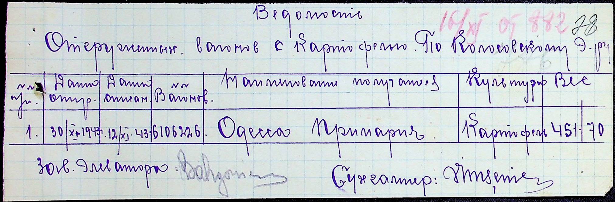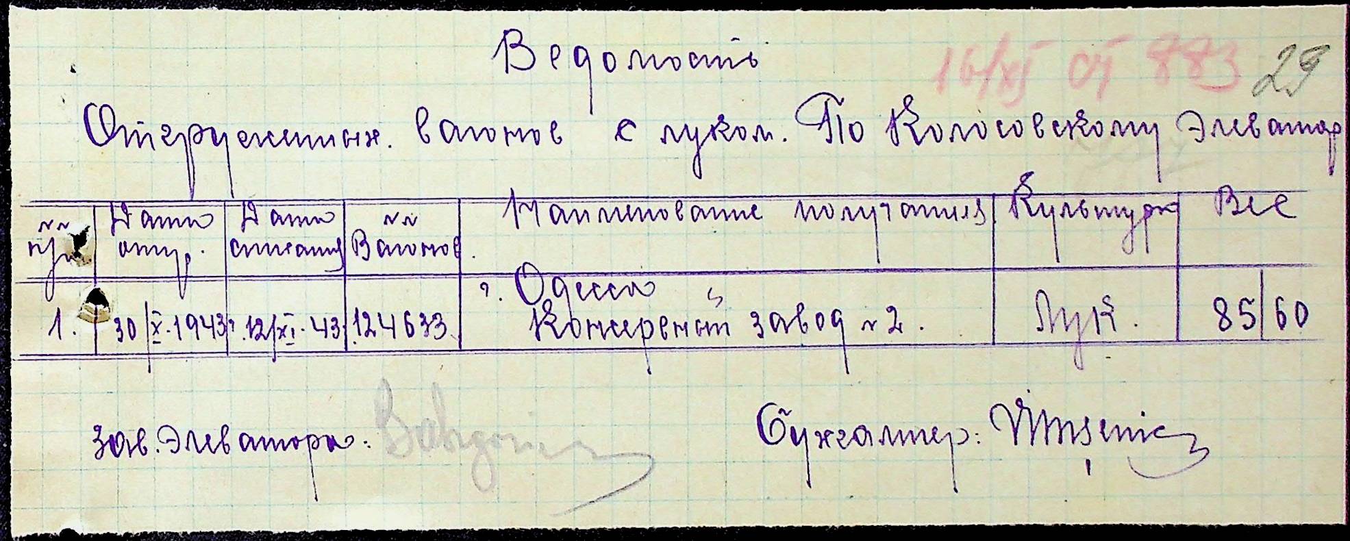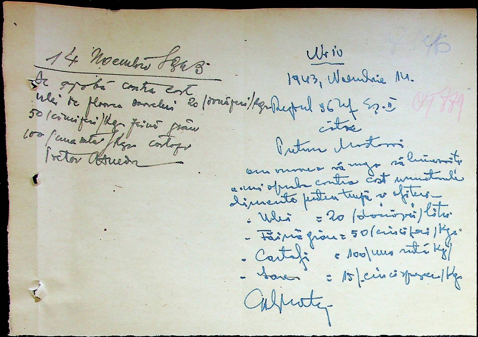 • • • • Справа № 23а Листування претури Мостівського району з установами, підприємствами і трудовими общинами про видачу продуктів службовцям румунських установ та німецькій армії. Звіти та відомості про надходження зерна, картоплі від трудових общин. Відомость про видачу продуктів євреям-майстровим. Списки худоби, вивезеної до Румунії