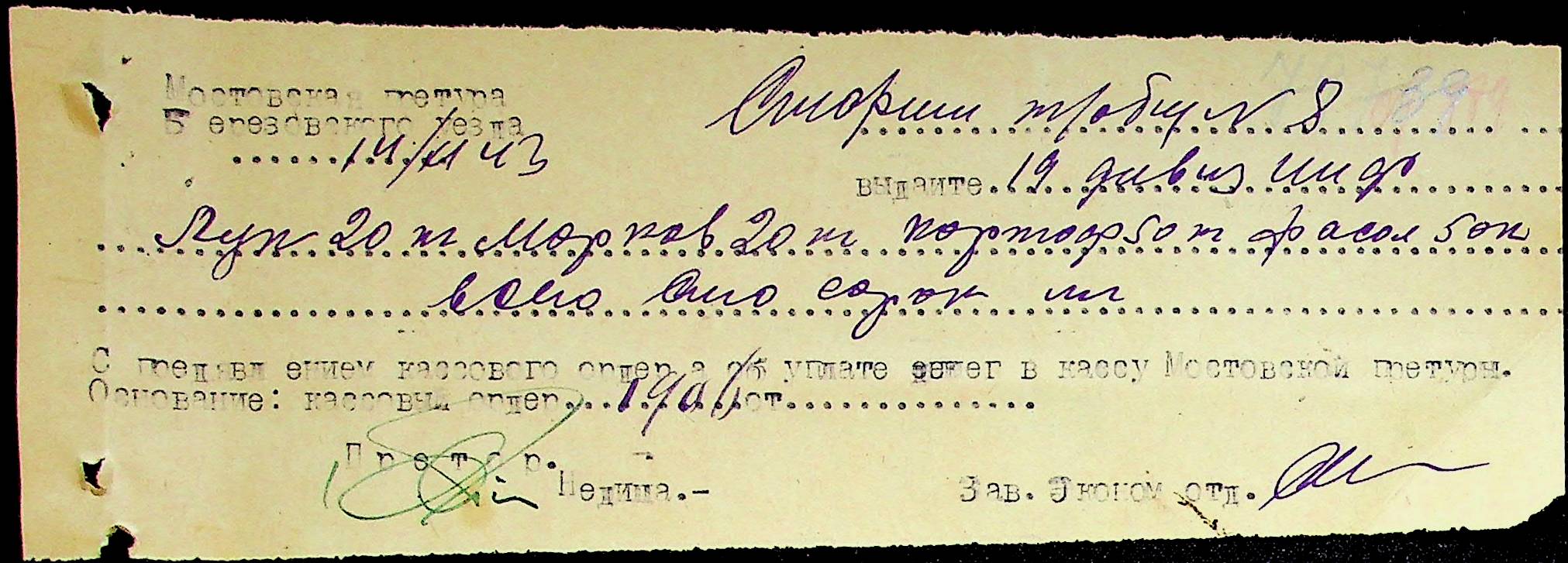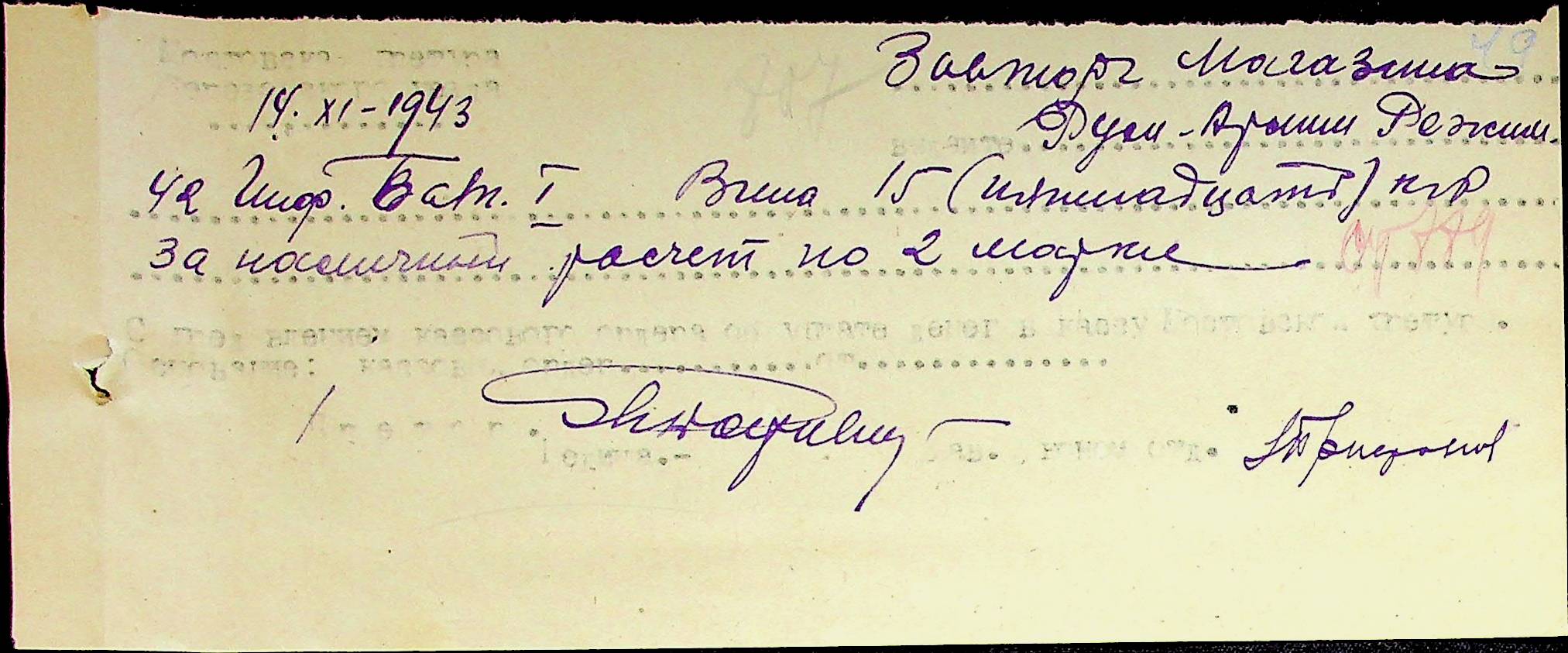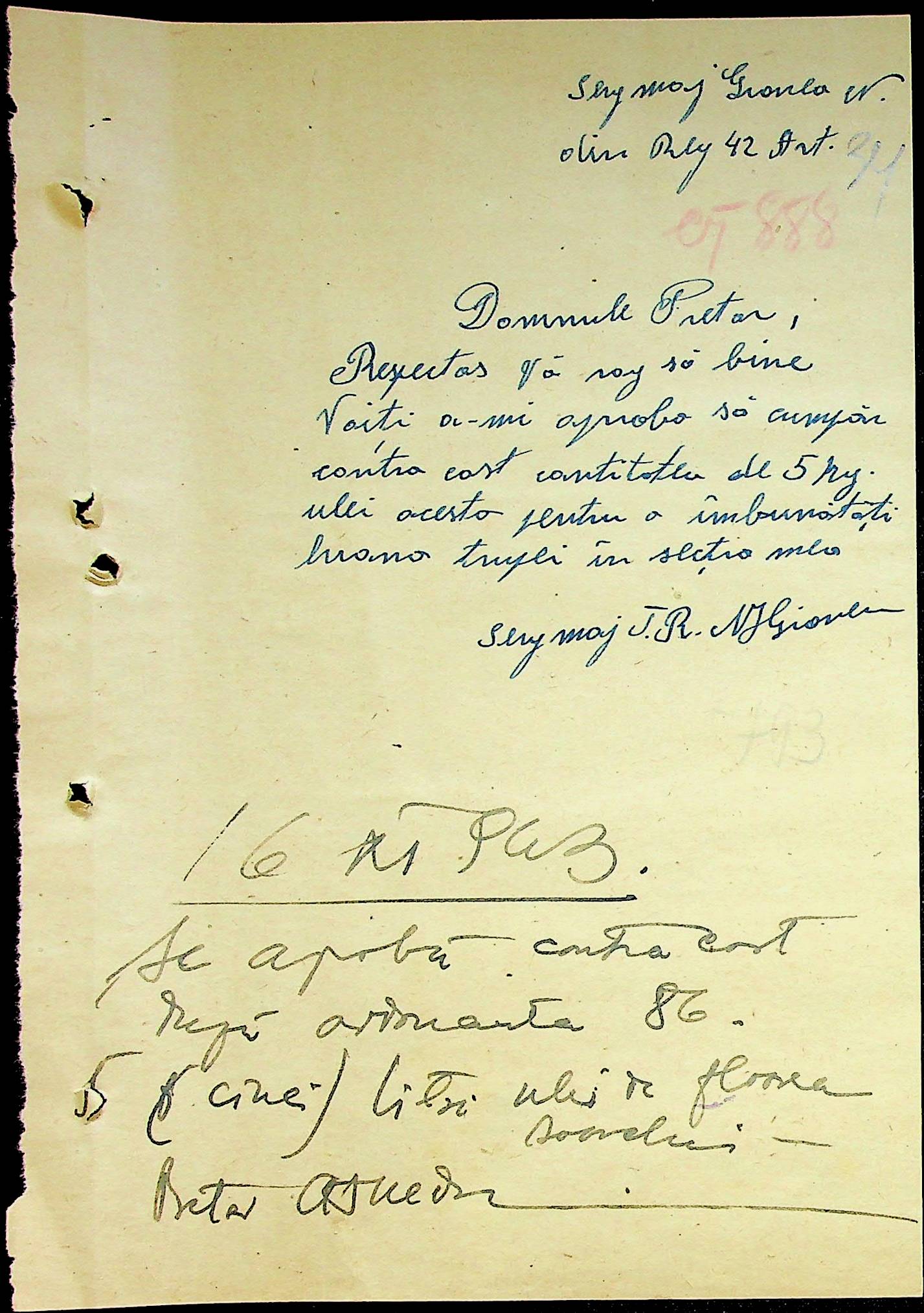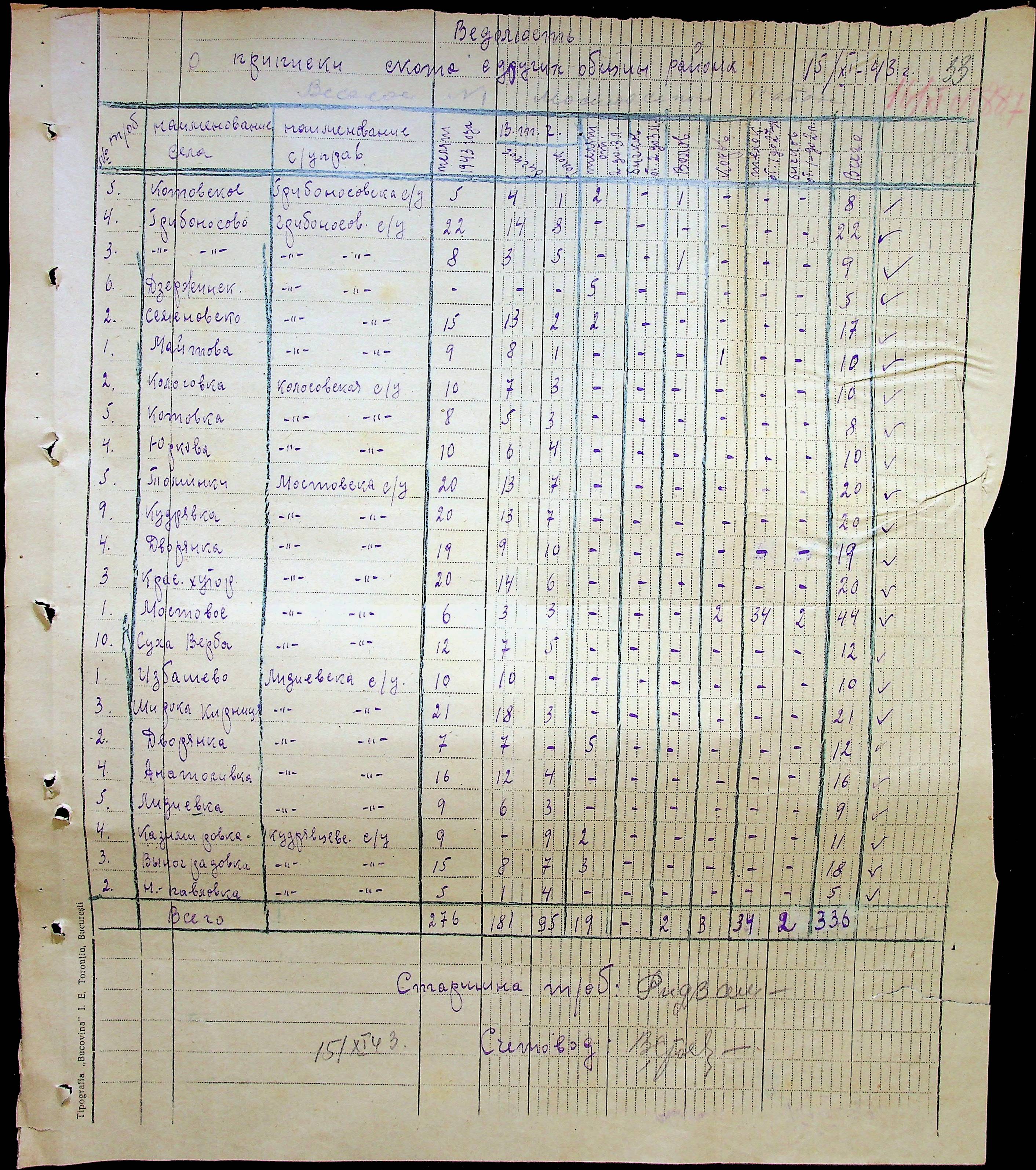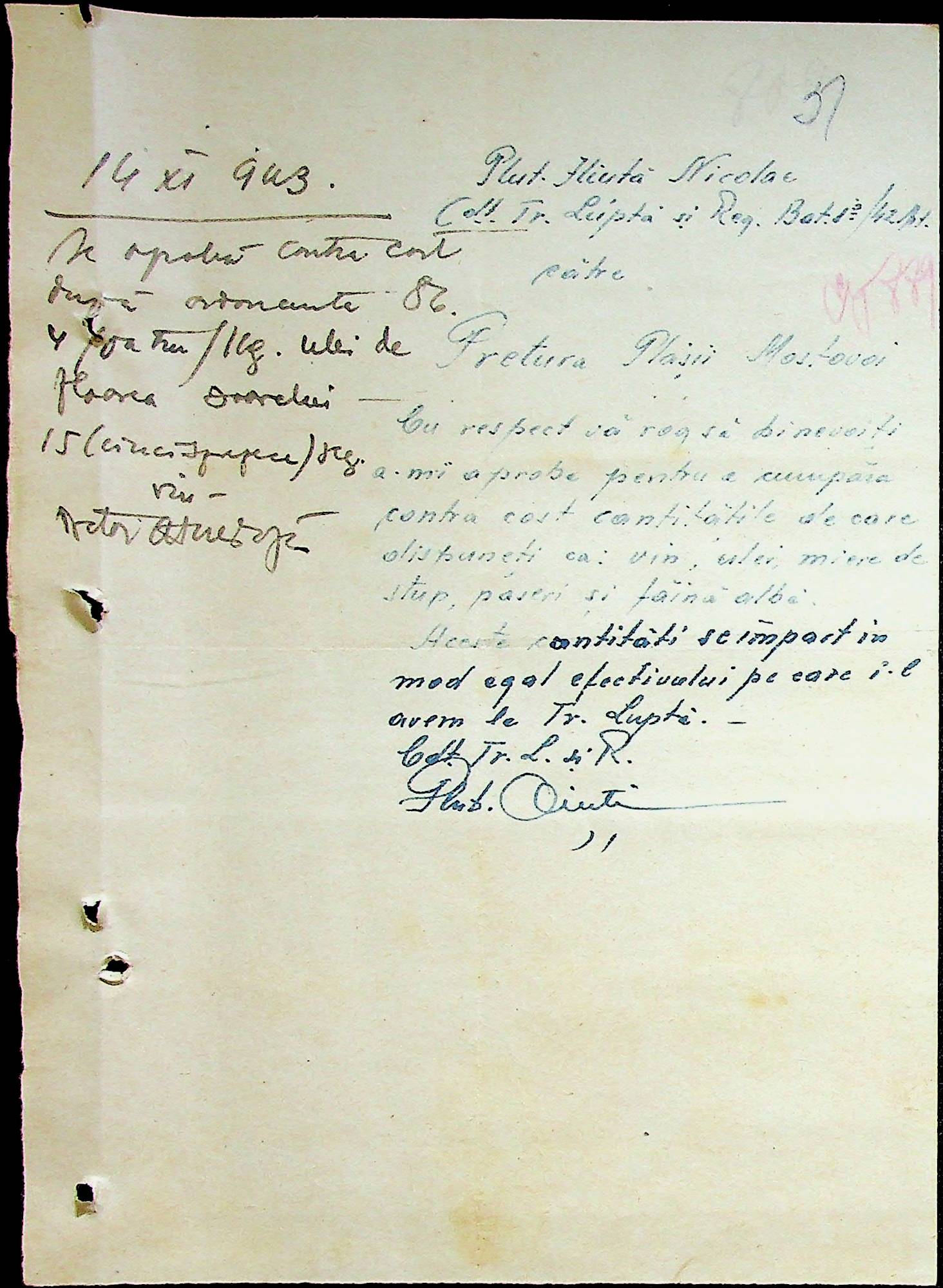 • • • • Справа № 23а Листування претури Мостівського району з установами, підприємствами і трудовими общинами про видачу продуктів службовцям румунських установ та німецькій армії. Звіти та відомості про надходження зерна, картоплі від трудових общин. Відомость про видачу продуктів євреям-майстровим. Списки худоби, вивезеної до Румунії