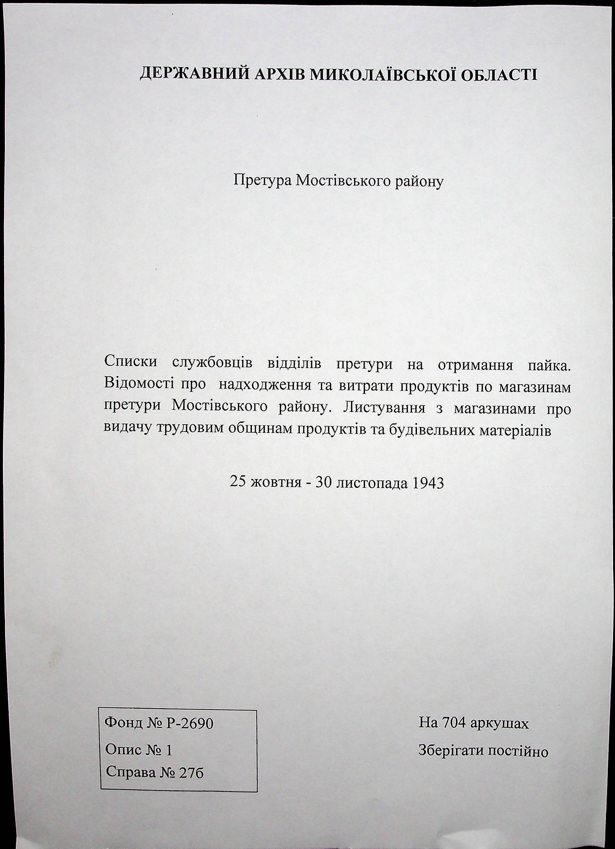 ◦ ◦ Фонд № Н-2690 “Претура Мостівського району, с. Мостове Мостівського району”