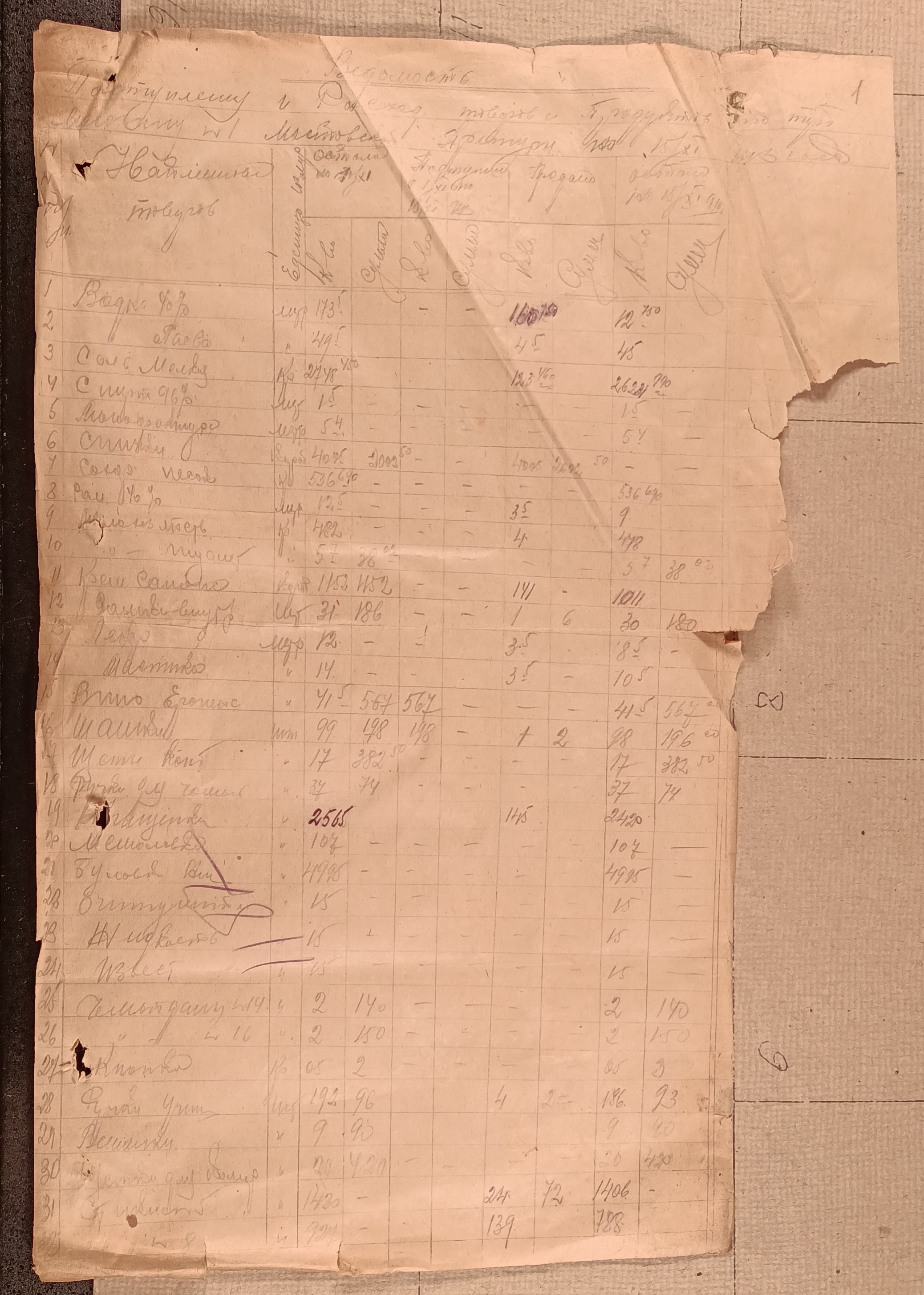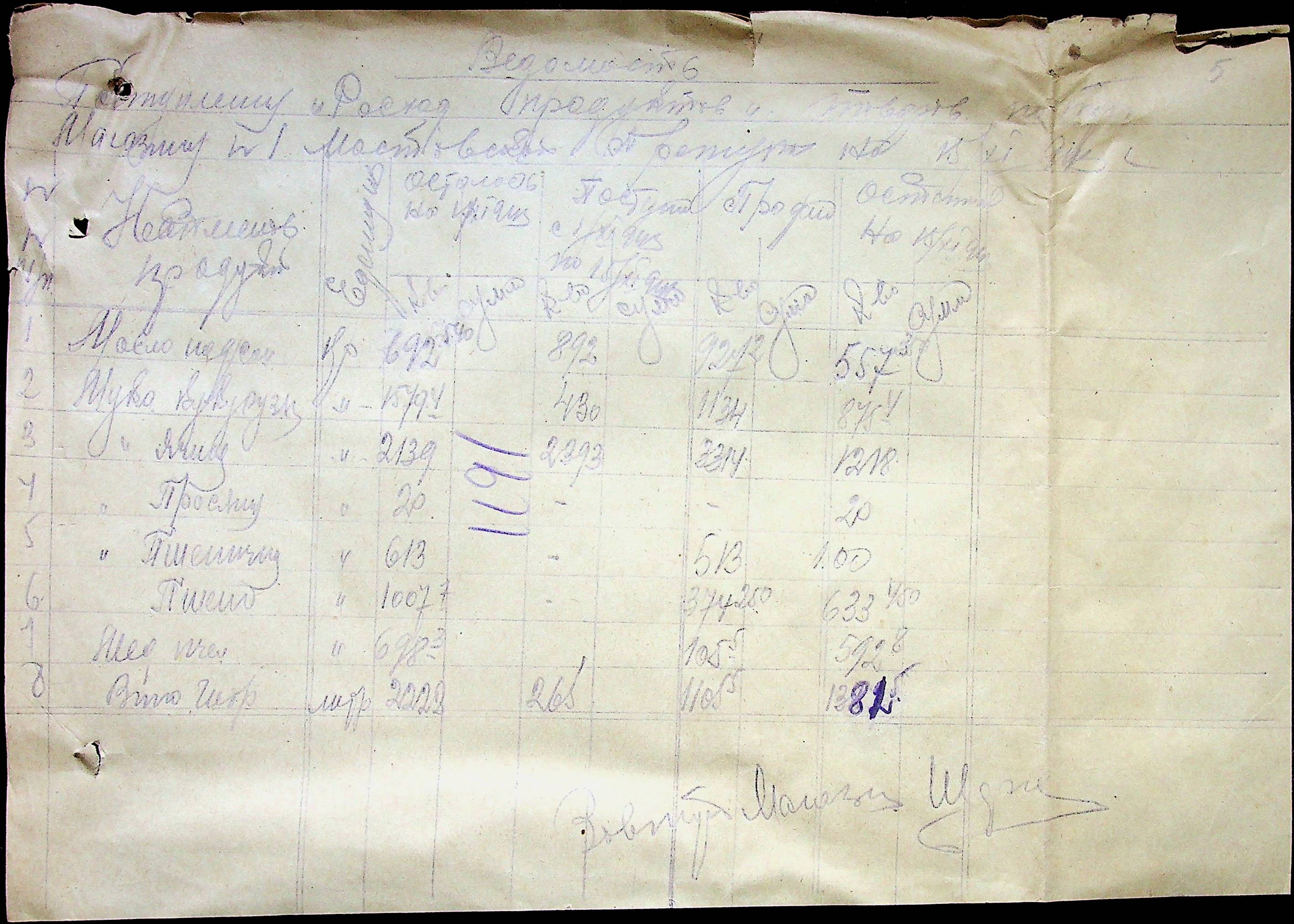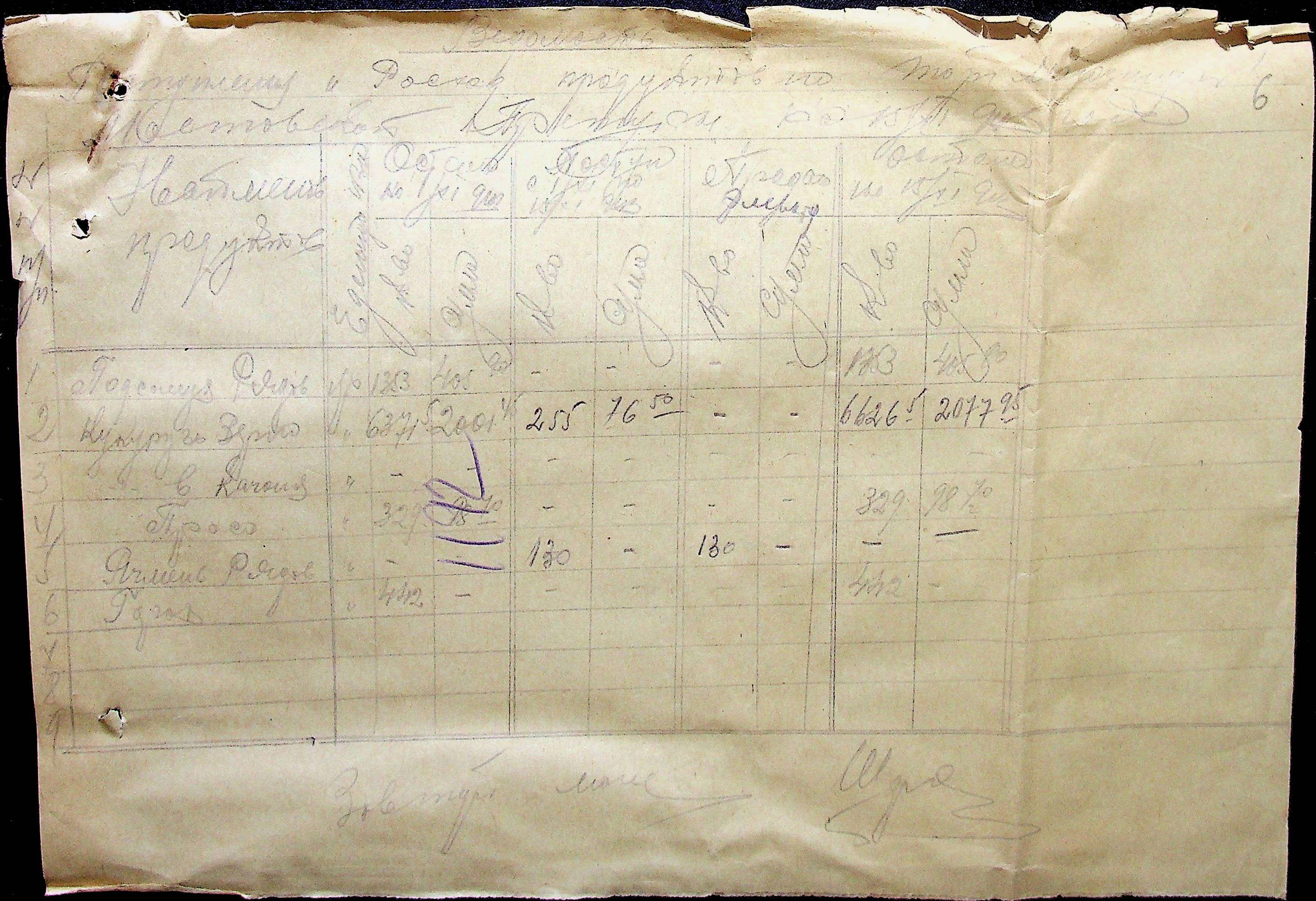 • • • • Справа № 27б Списки службовців відділів претури на отримання пайка. Відомості про надходження та витрати продуктів по магазинам претури Мостівського району. Листування з магазинами про видачу трудовим общинам продуктів та будівельних матеріалів