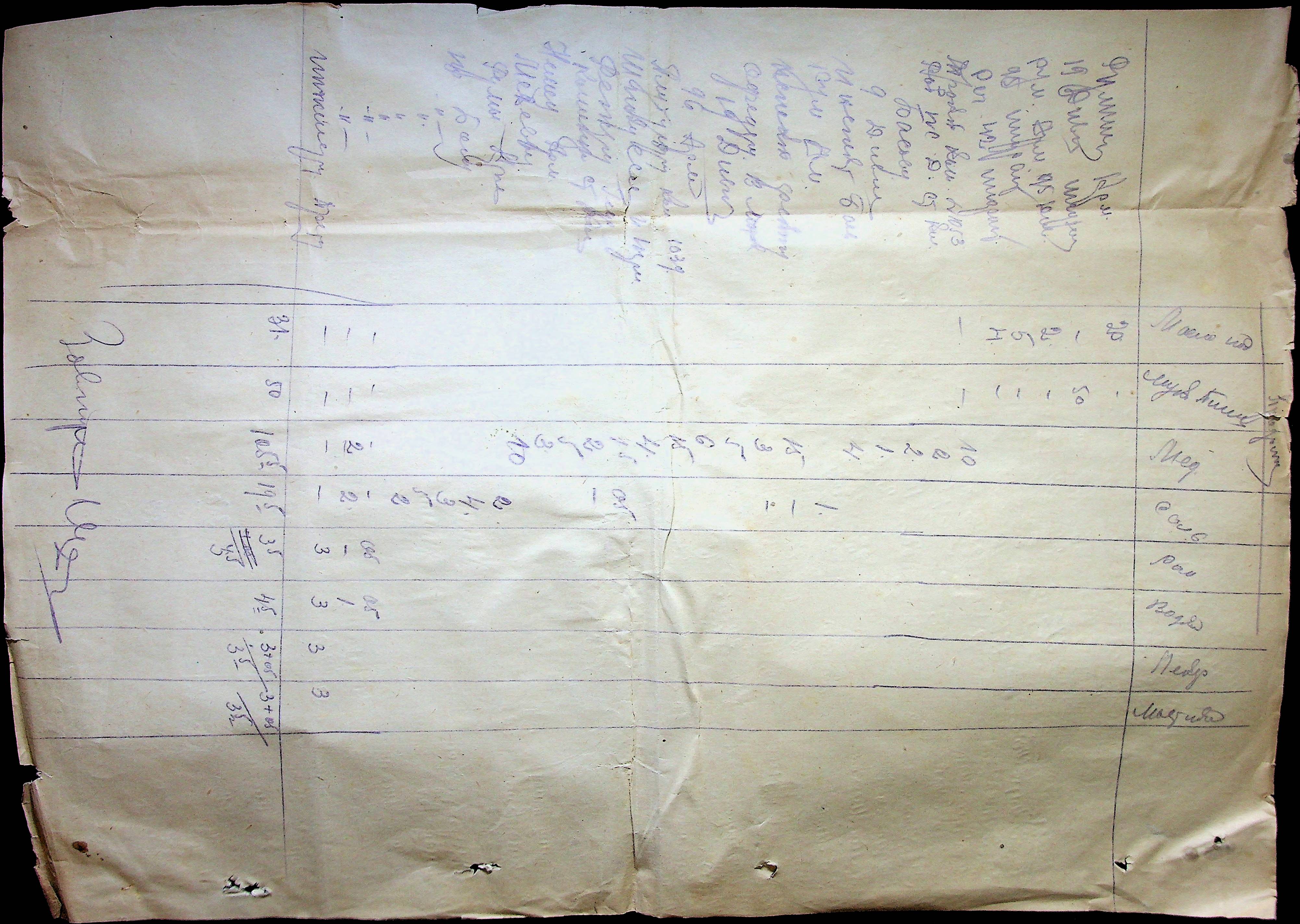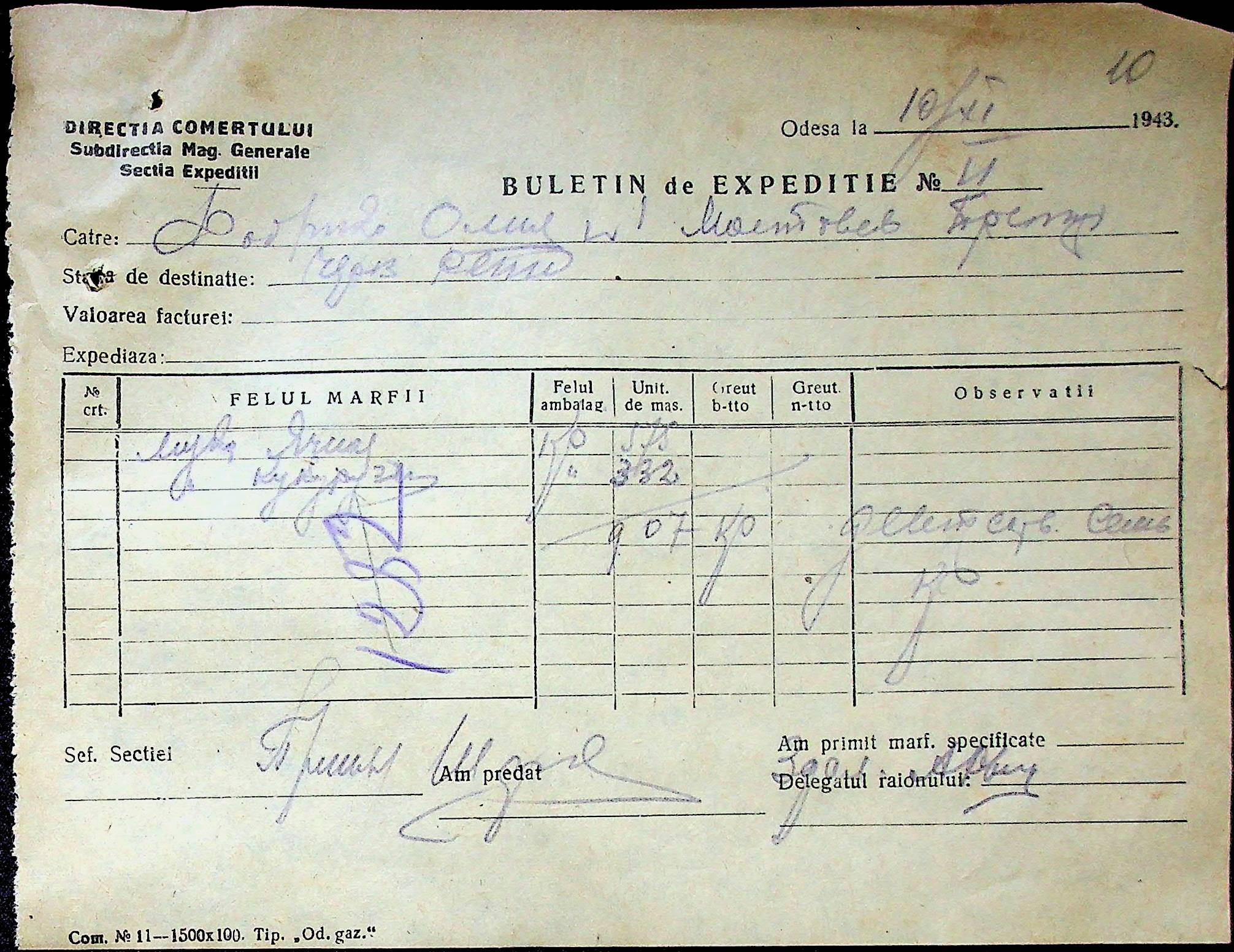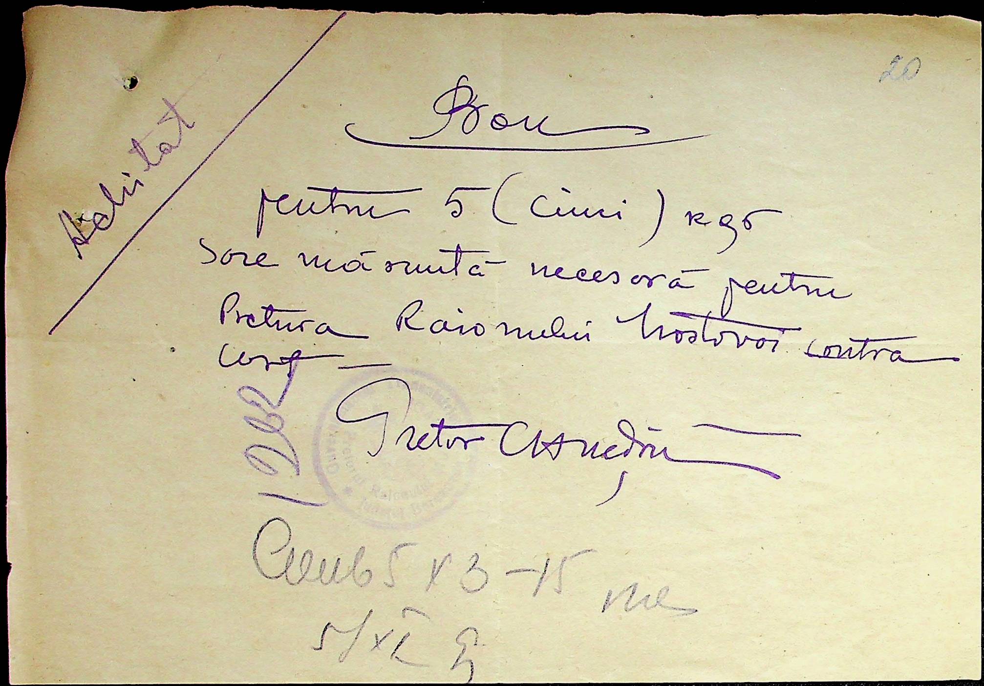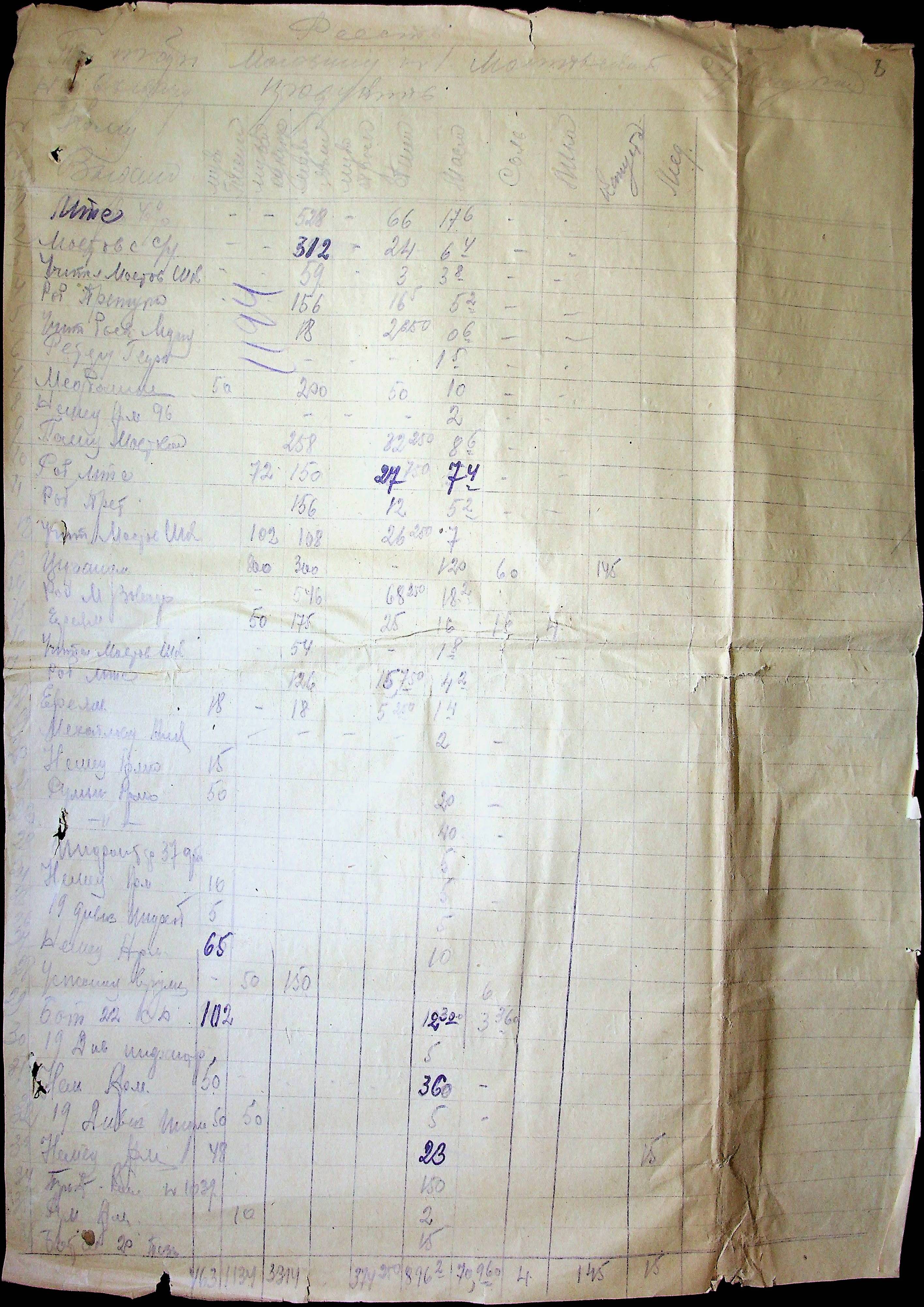 • • • • Справа № 27б Списки службовців відділів претури на отримання пайка. Відомості про надходження та витрати продуктів по магазинам претури Мостівського району. Листування з магазинами про видачу трудовим общинам продуктів та будівельних матеріалів