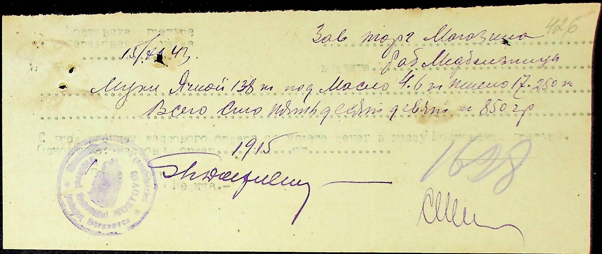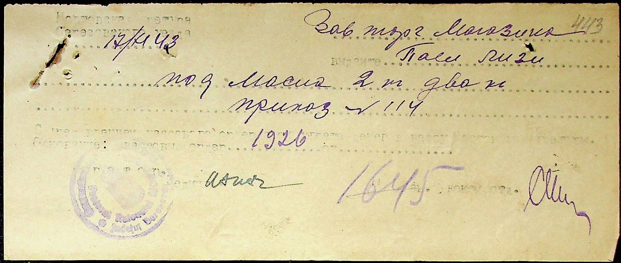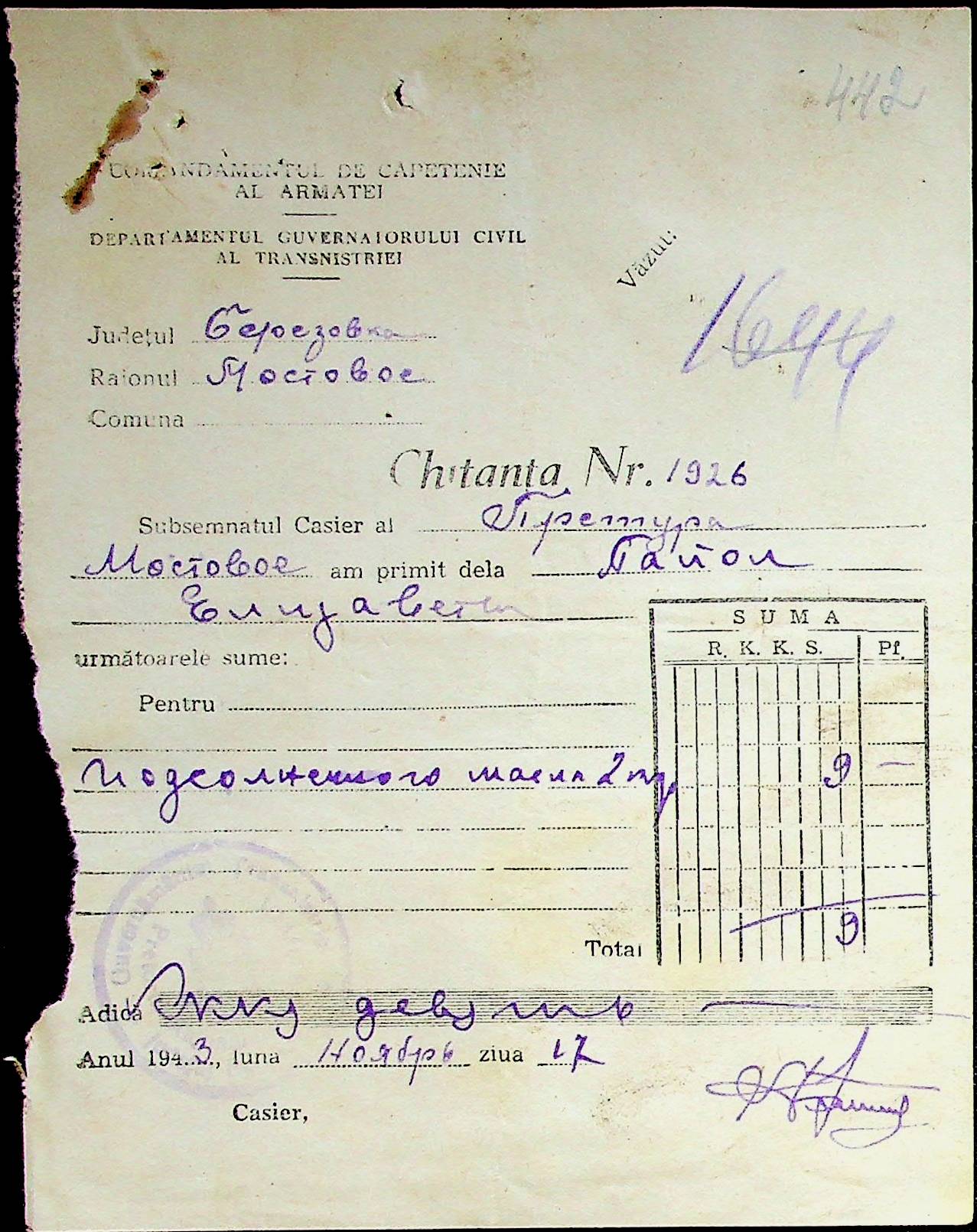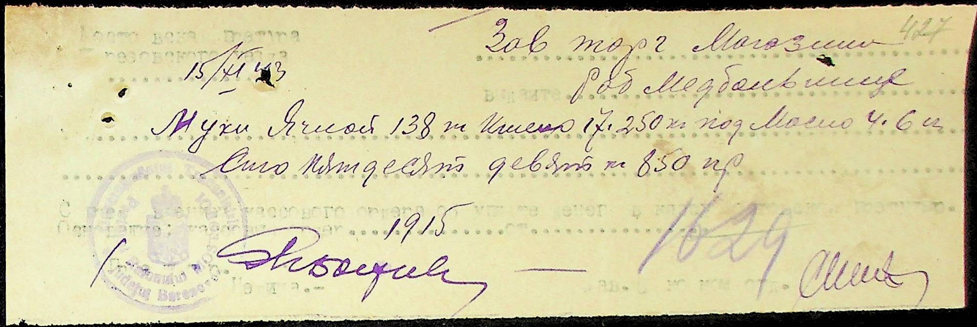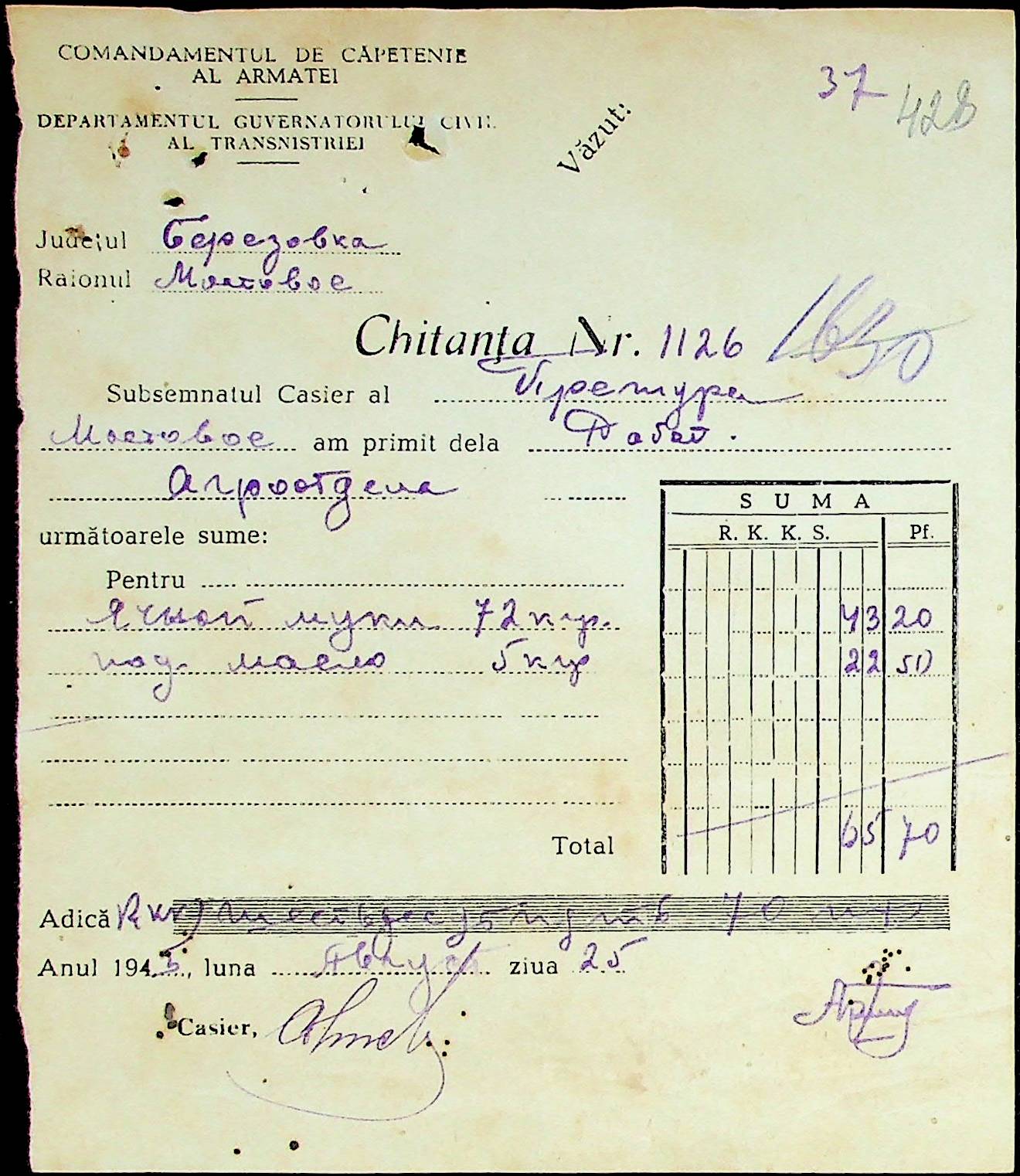 • • • • Справа № 27б Списки службовців відділів претури на отримання пайка. Відомості про надходження та витрати продуктів по магазинам претури Мостівського району. Листування з магазинами про видачу трудовим общинам продуктів та будівельних матеріалів