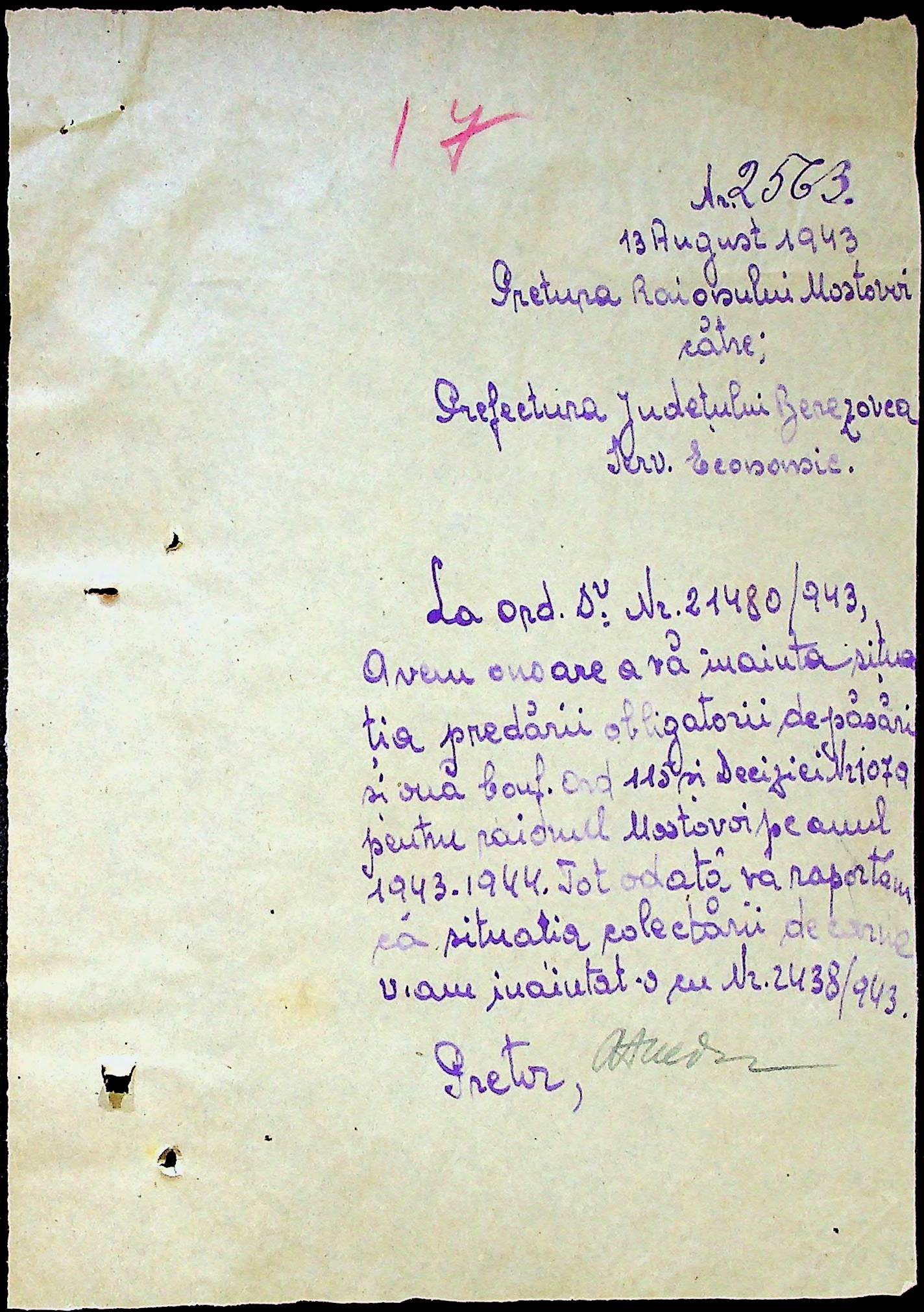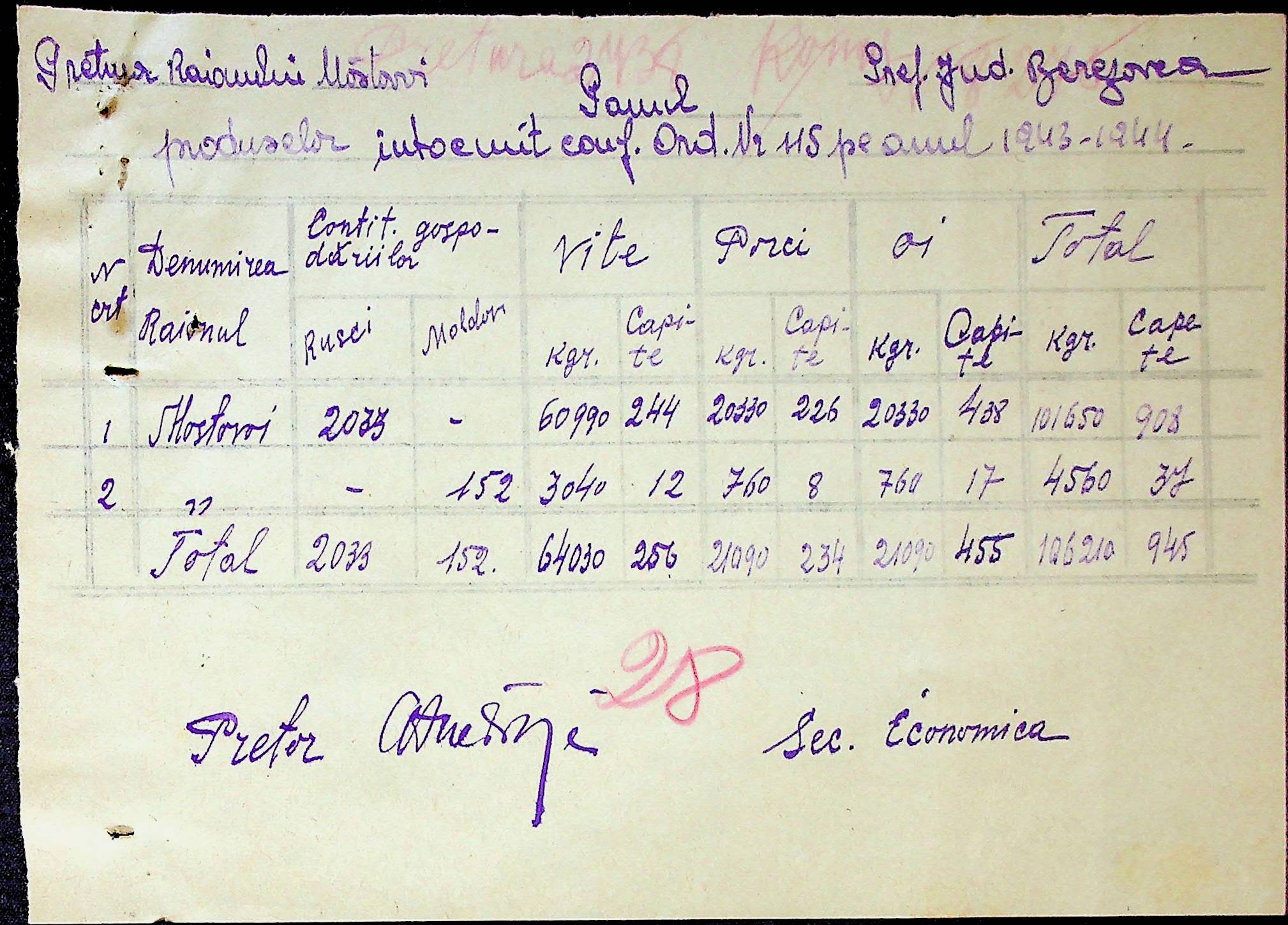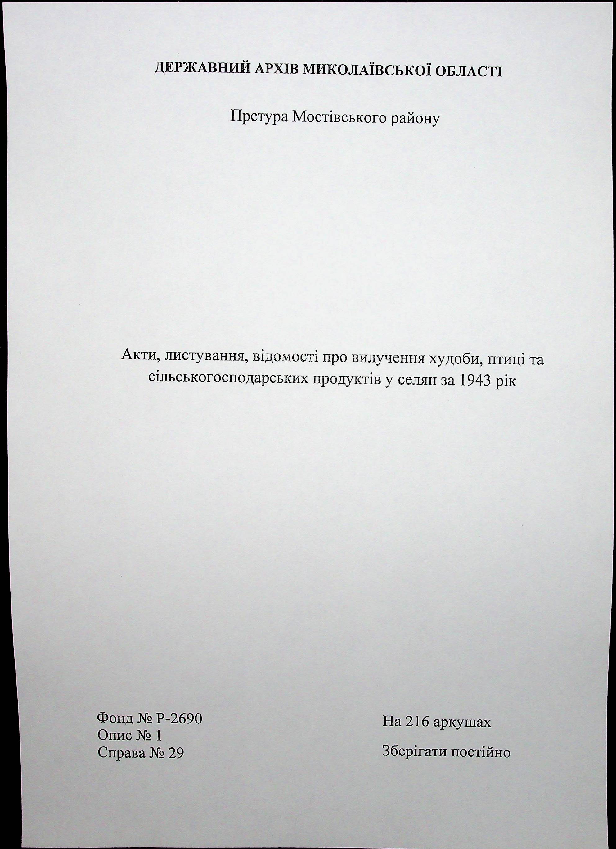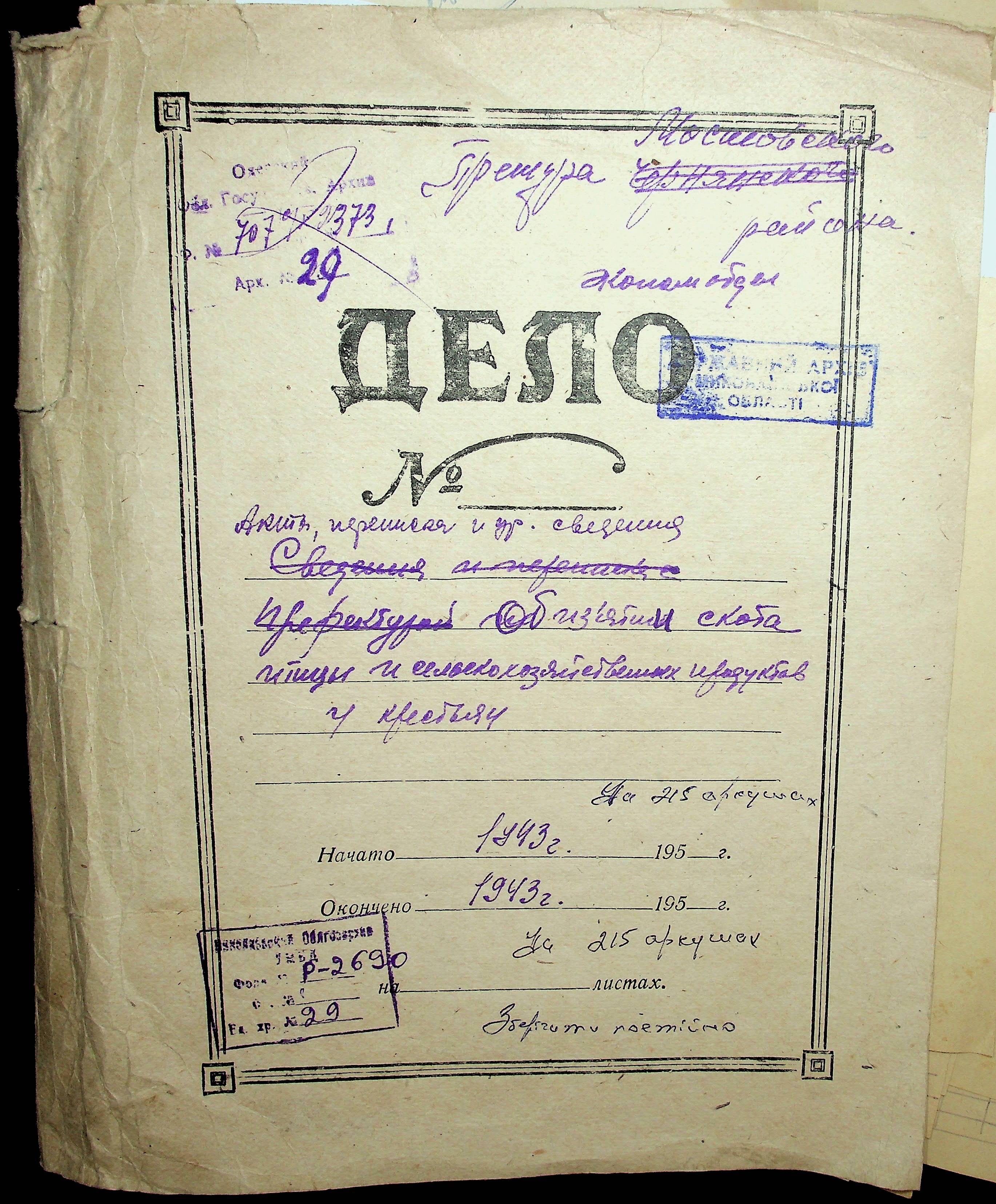 • • • • Справа № 29 Акти, листування, відомості про вилучення худоби, птиці та сільськогосподарських продуктів у селян за 1943 рік