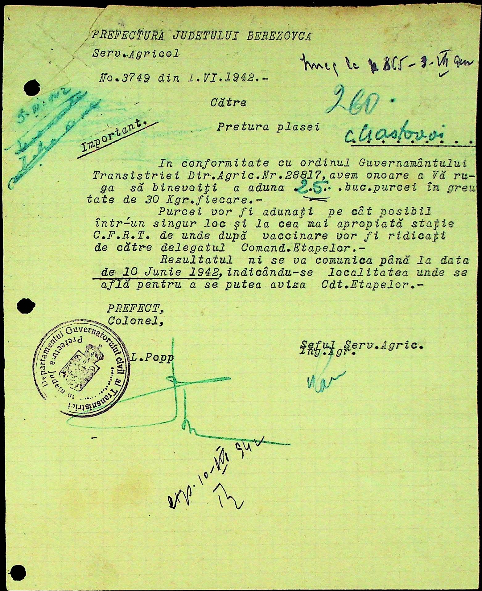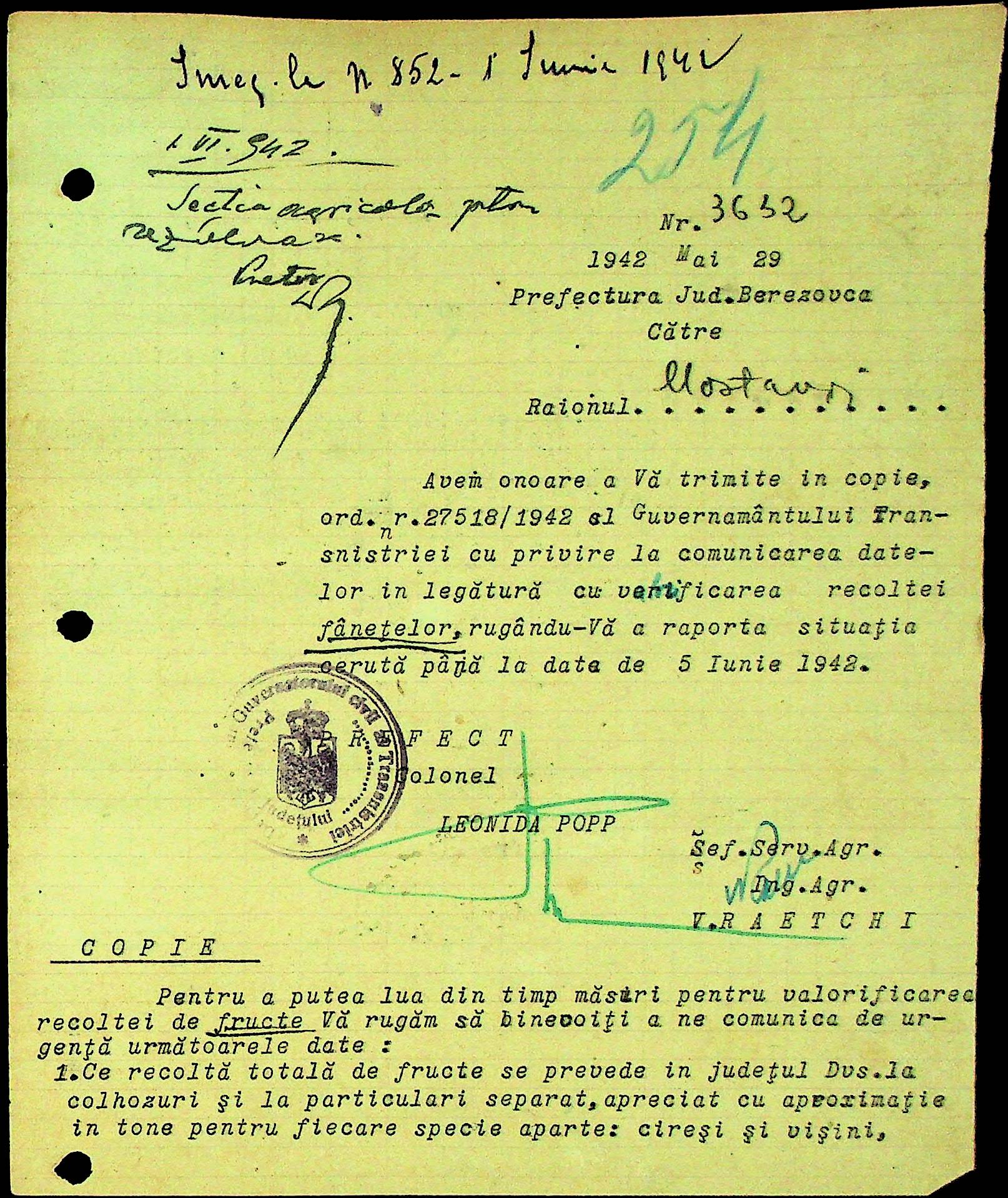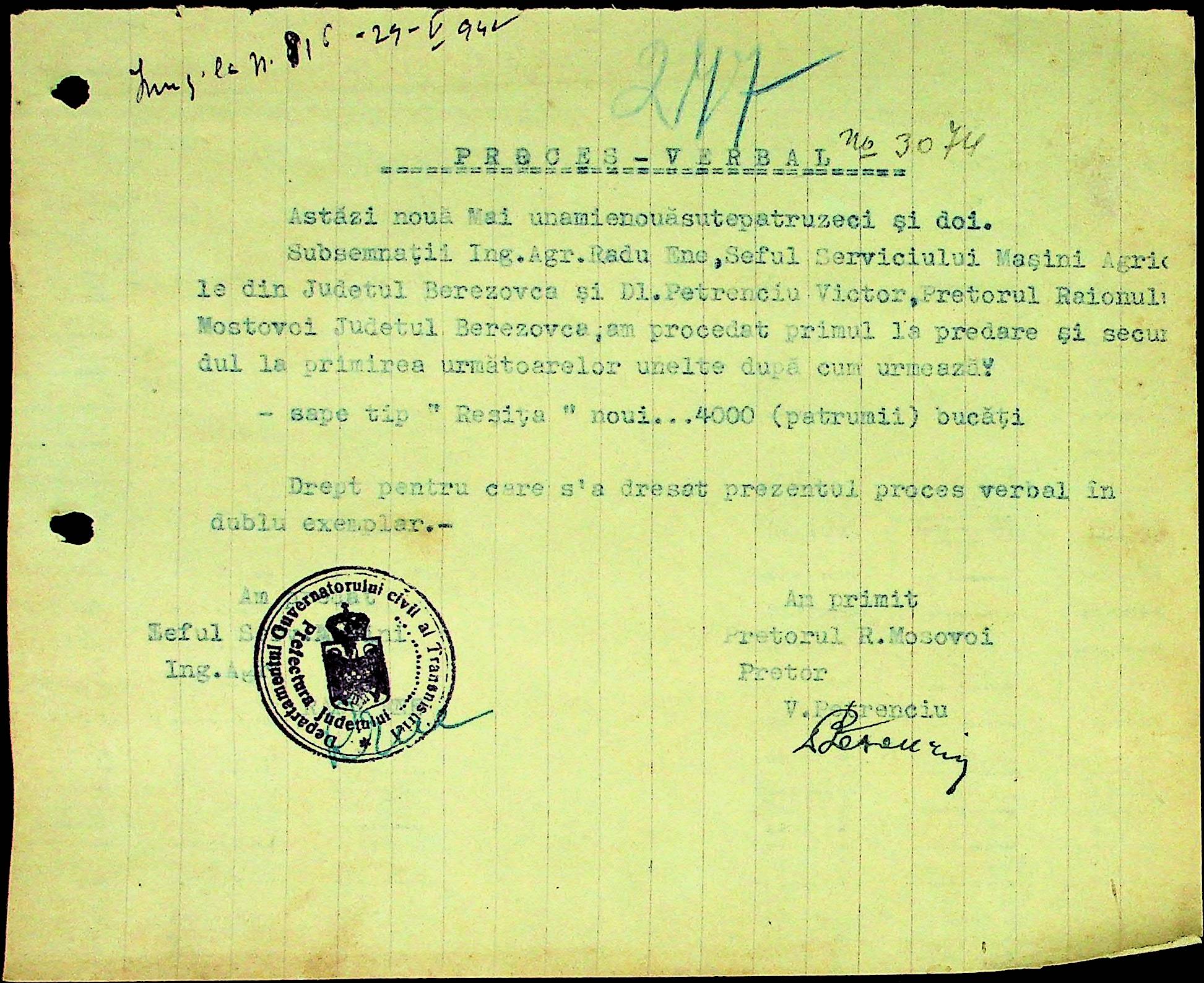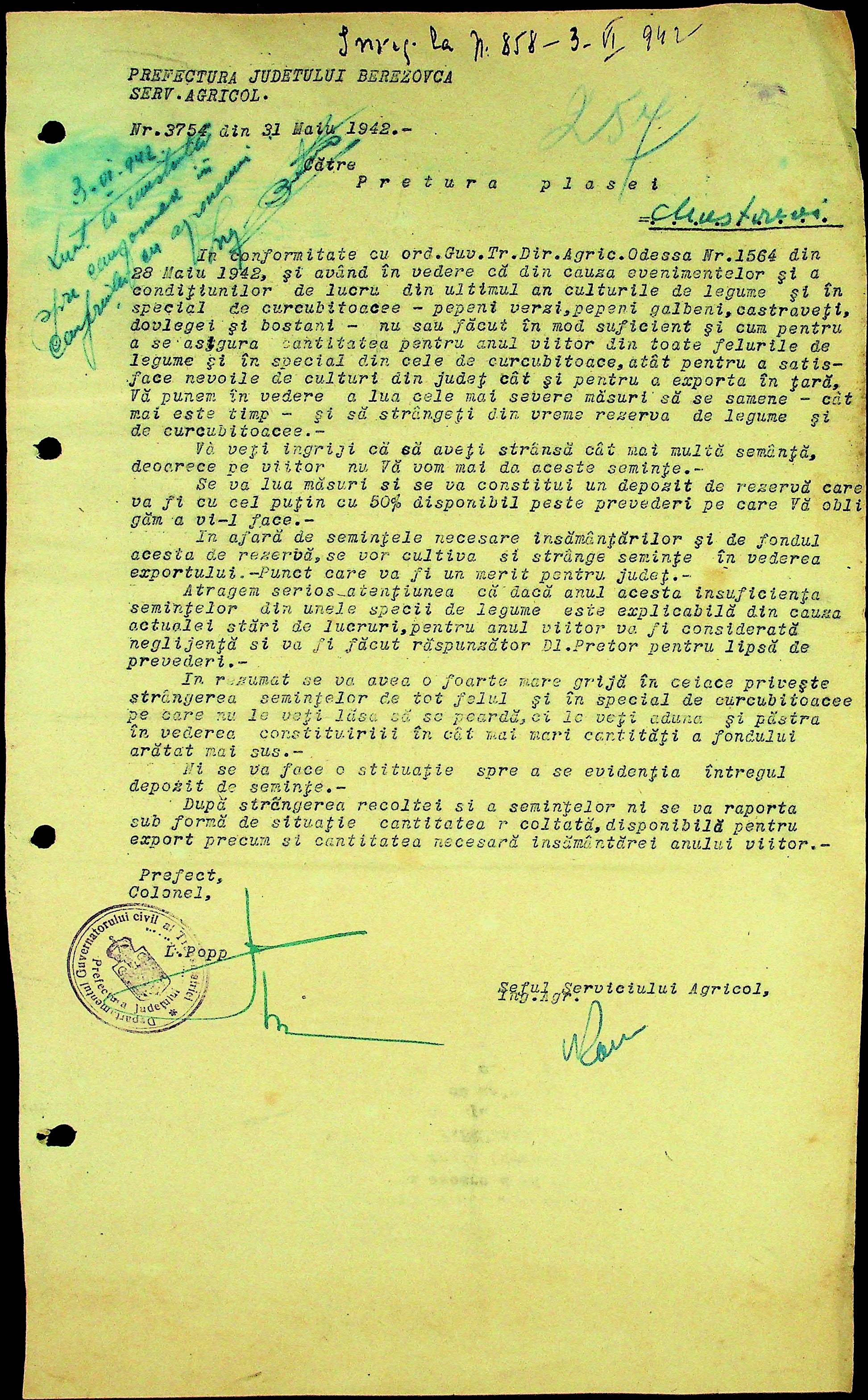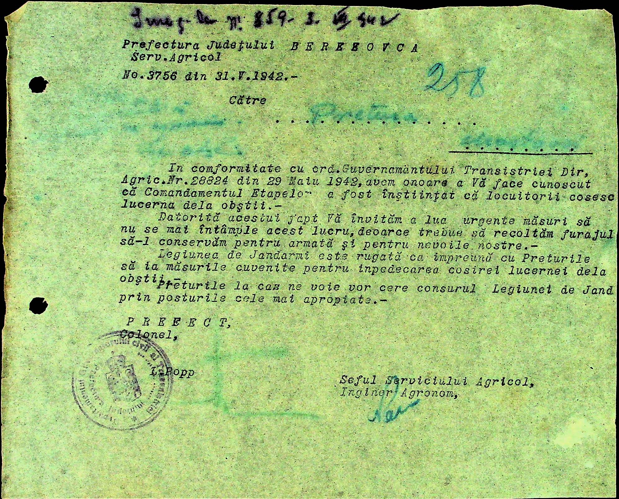 • • • • Справа № 31 Накази, інструкції та листування з префектурою по сільськогосподарським питанням за 1941-1942 роки