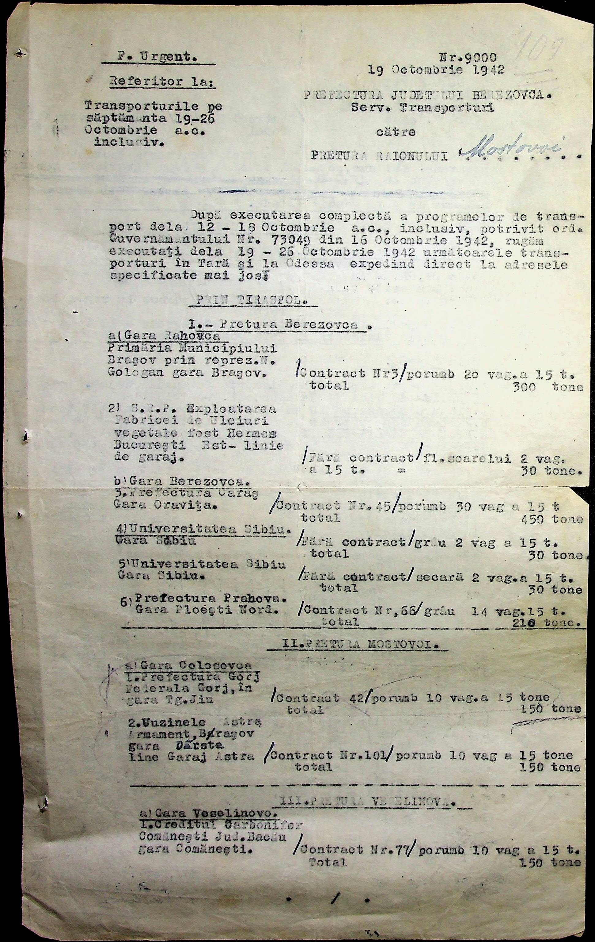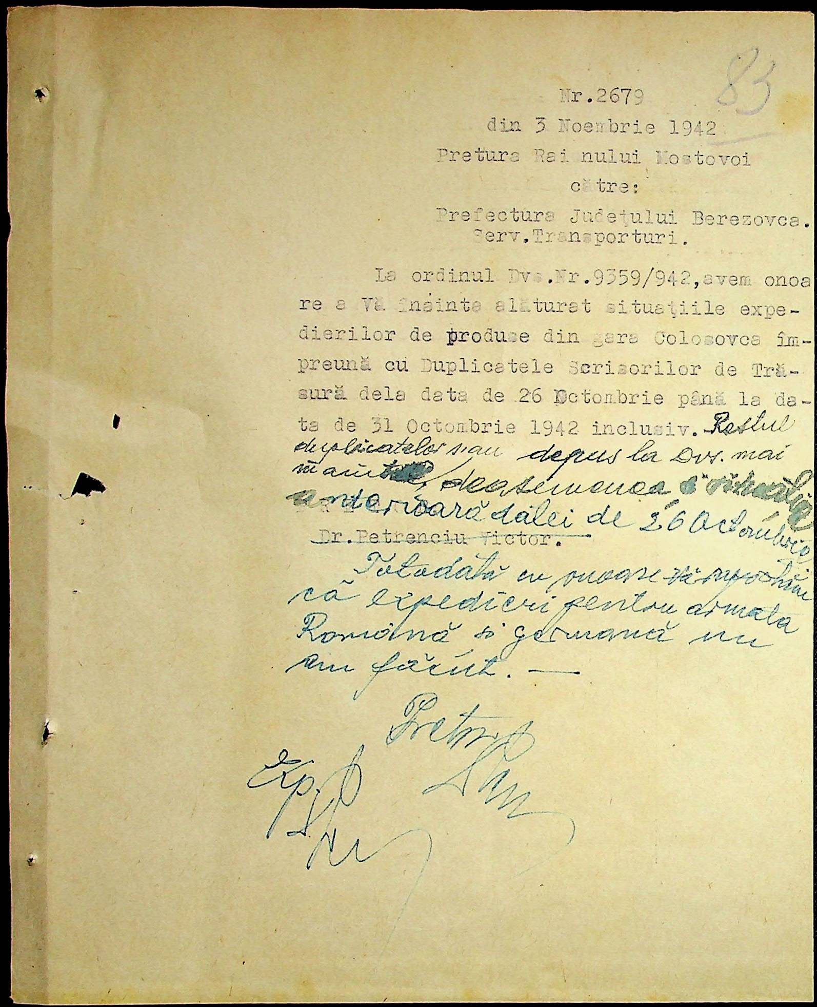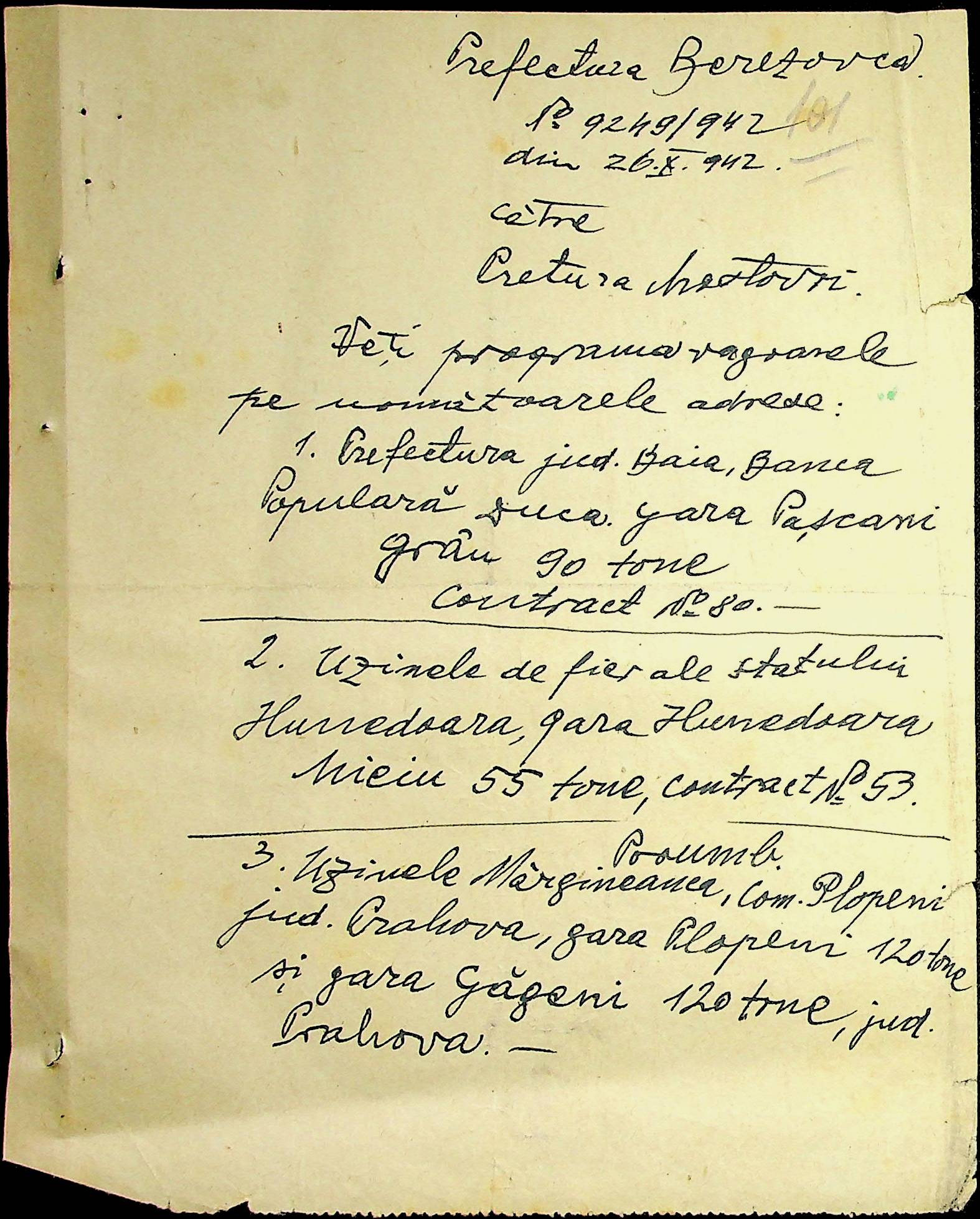 • • • • Справа № 40 Накази, обіжники префектури та листування з претурою з питань організації транспортування сільськогосподарських продуктів за 1942-1943 роки