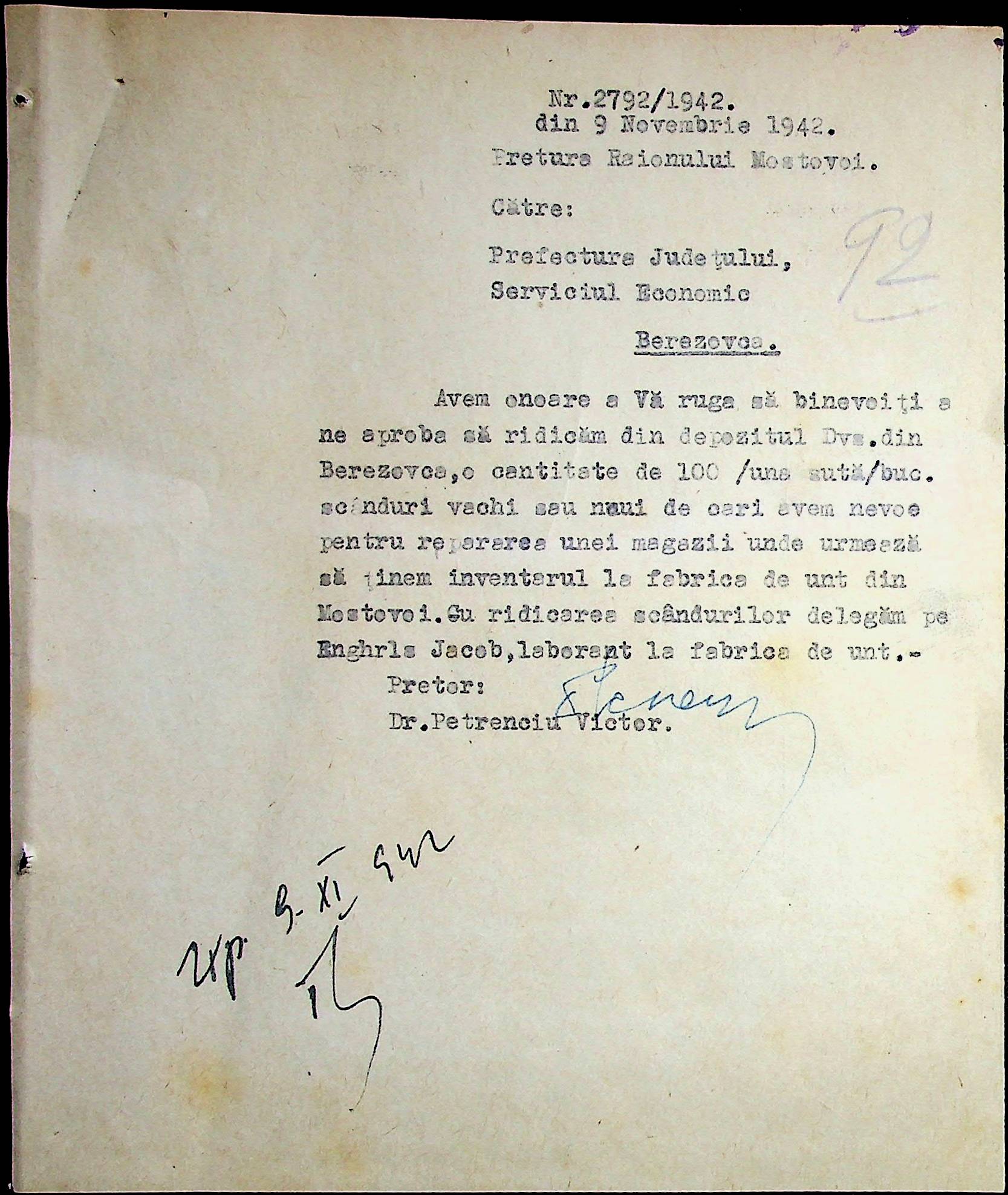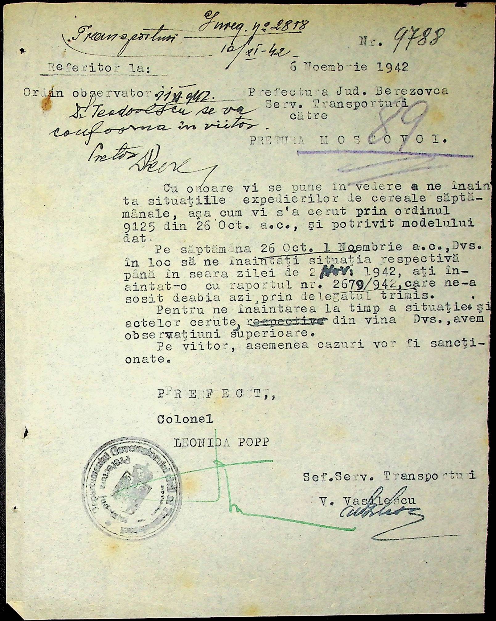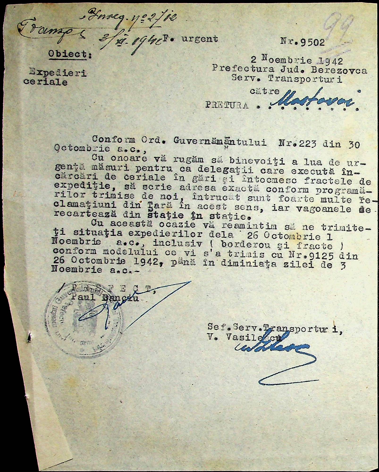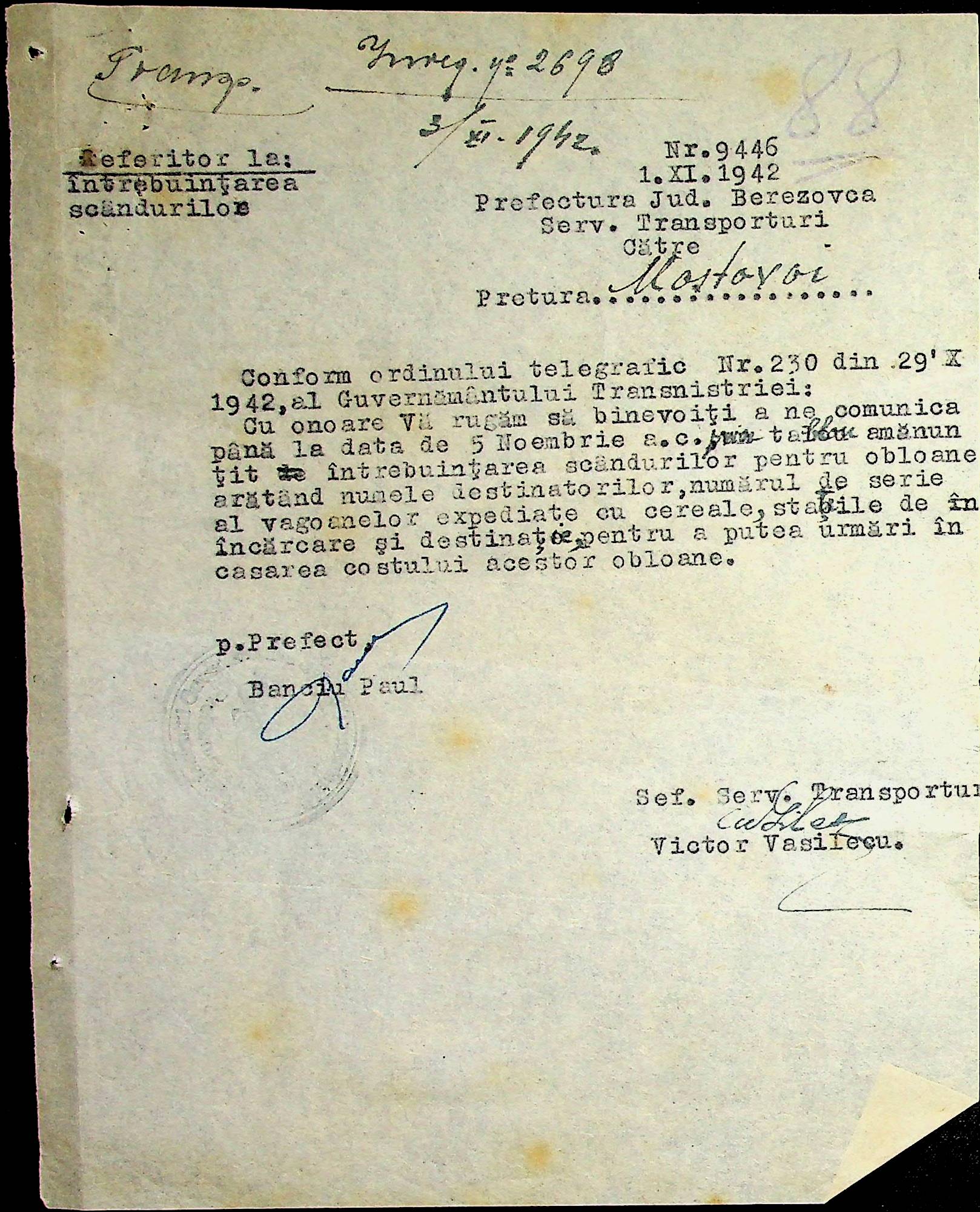 • • • • Справа № 40 Накази, обіжники префектури та листування з претурою з питань організації транспортування сільськогосподарських продуктів за 1942-1943 роки
