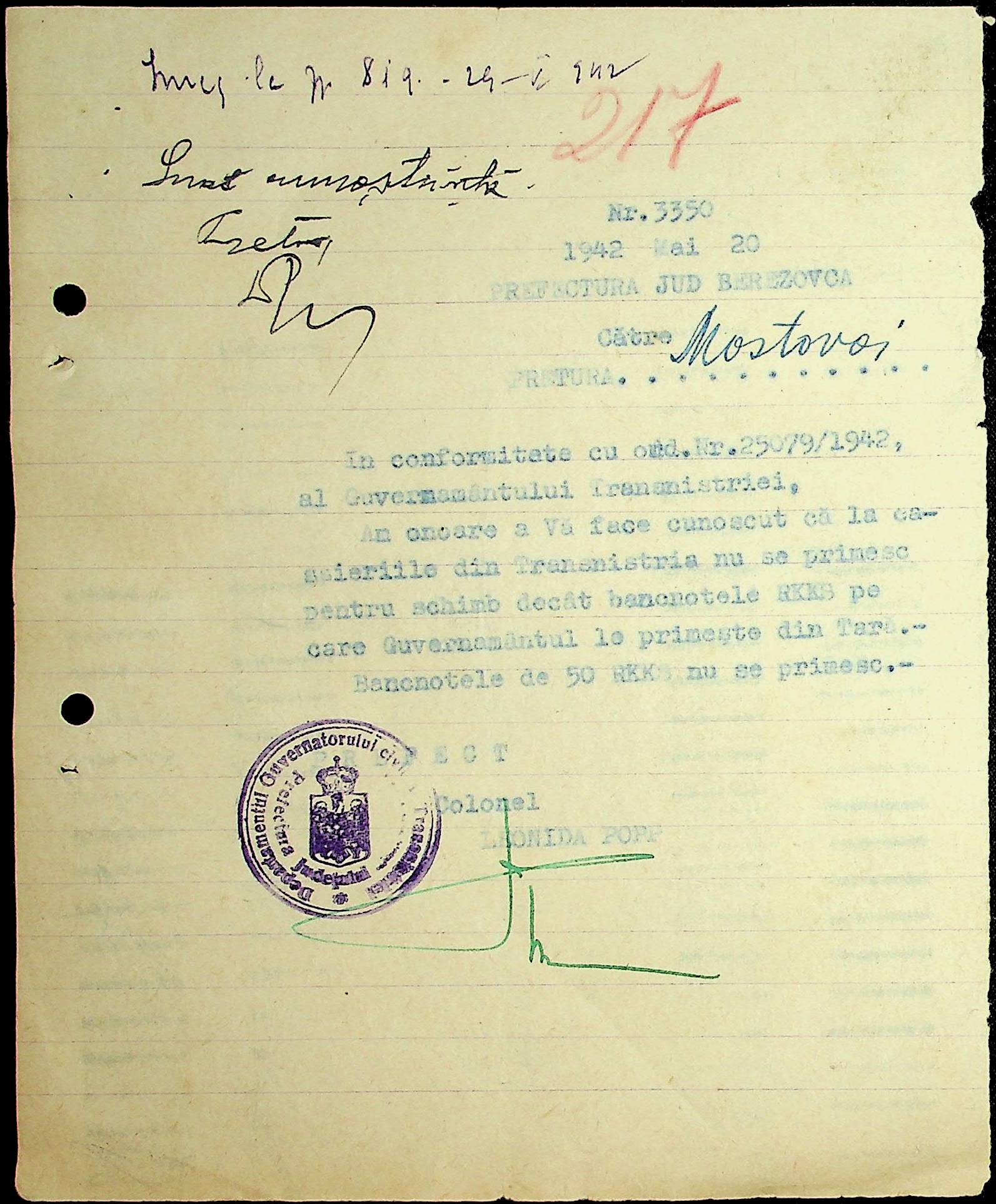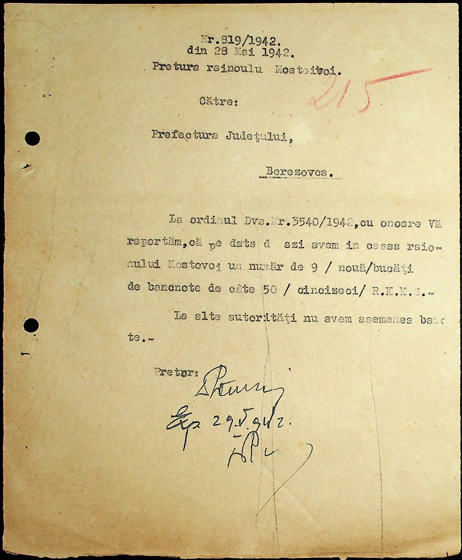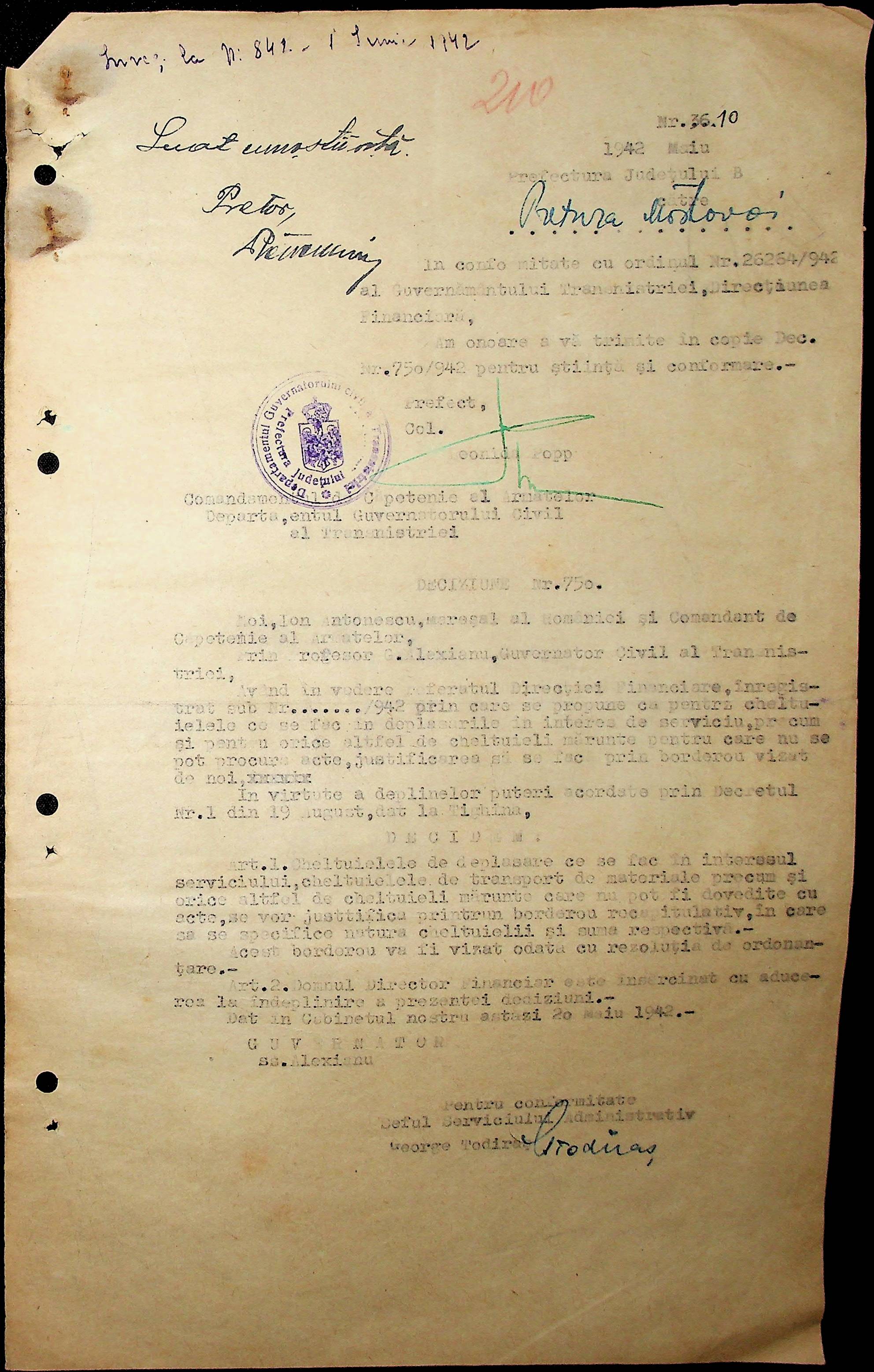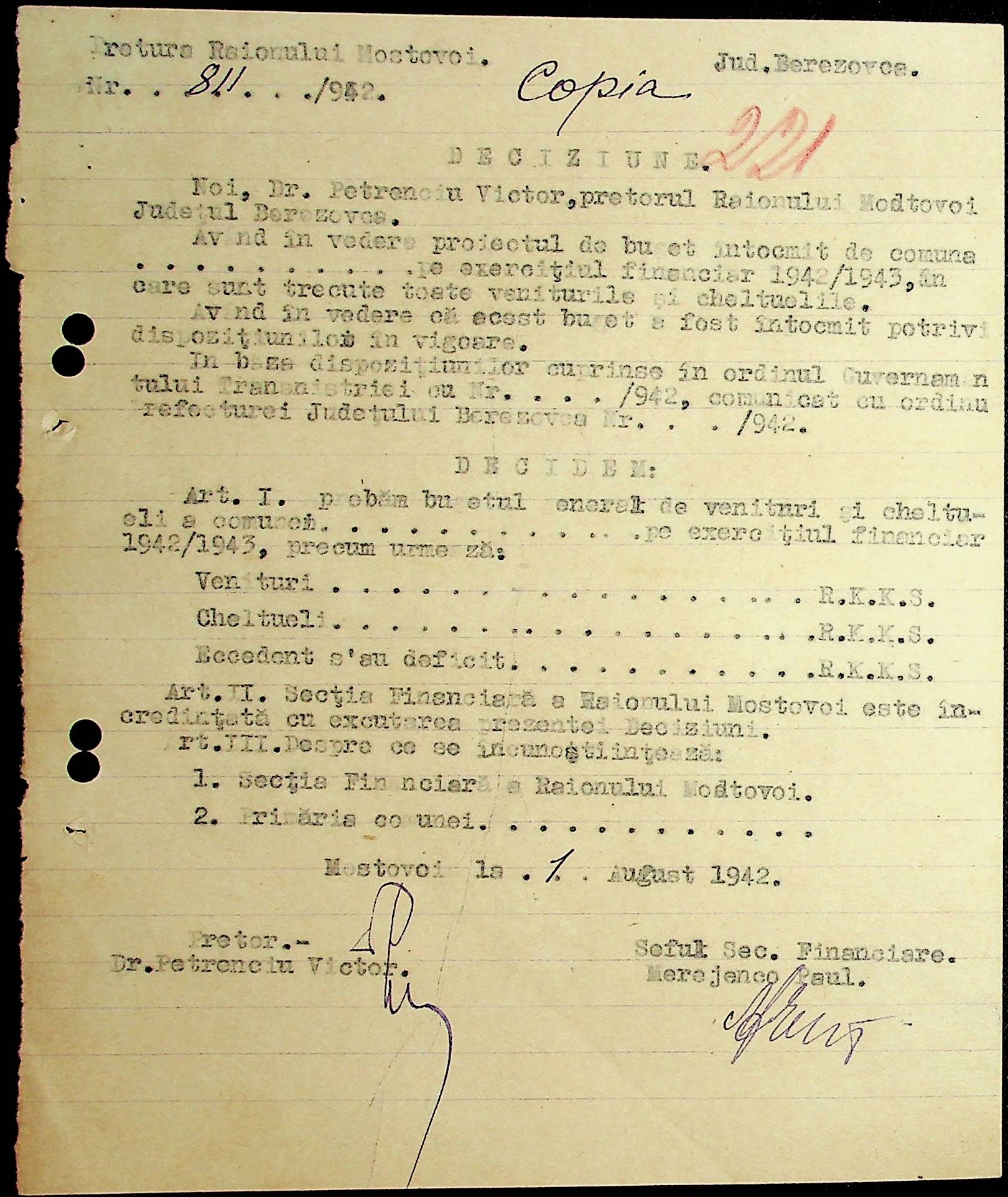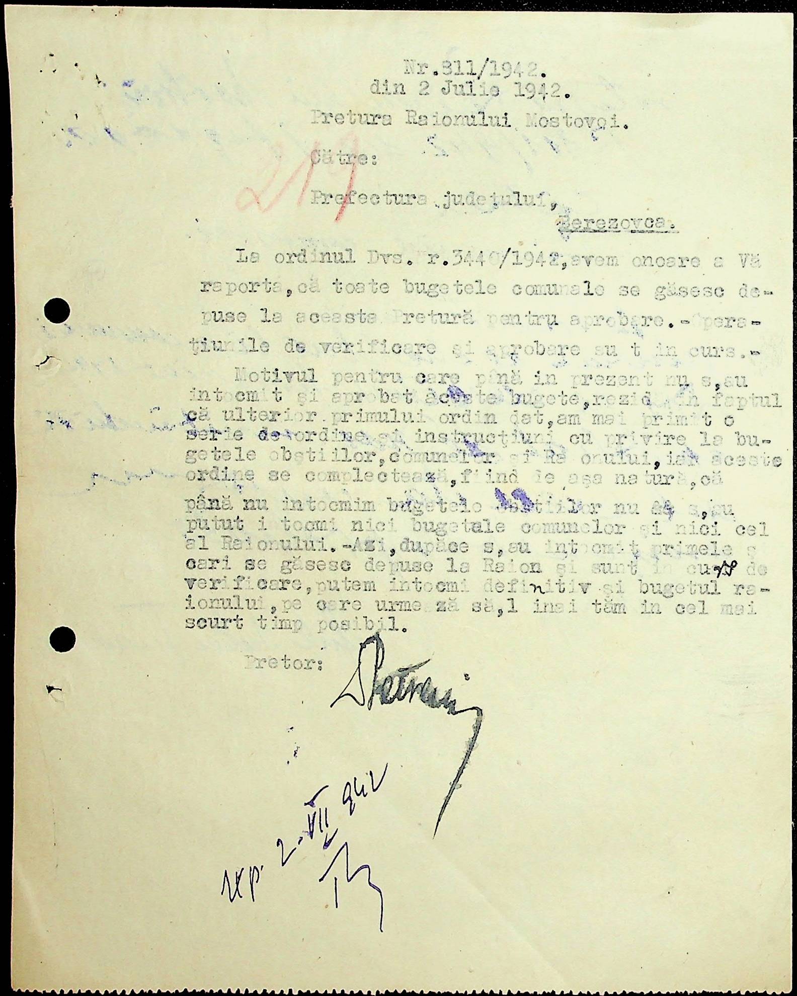 • • • • Справа № 46 Фінансовий бюджет претури Мостівського району на 1941-1942 роки. Постанова, обіжники, інструкції претури з фінансових питань за 1942 рік