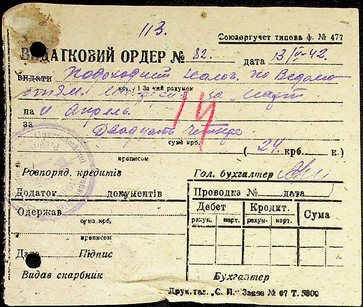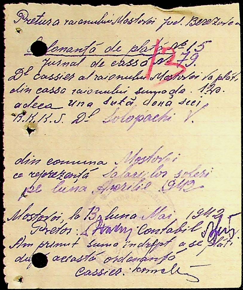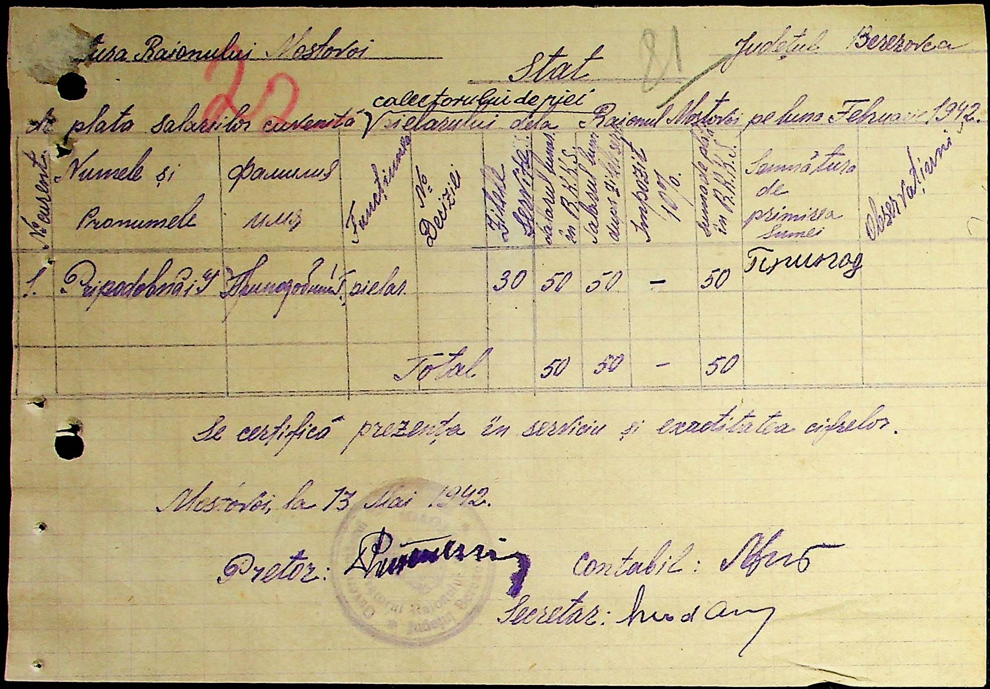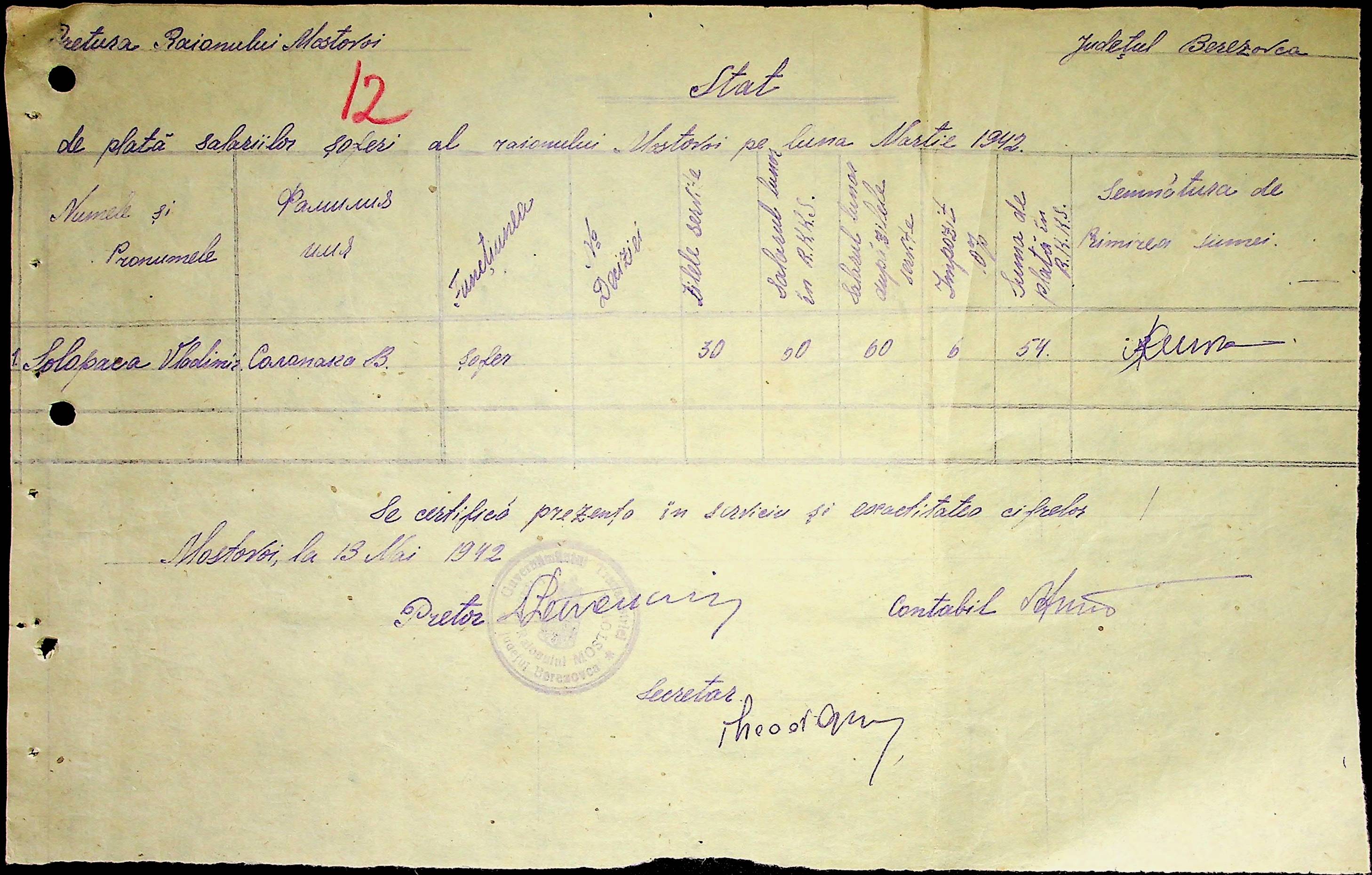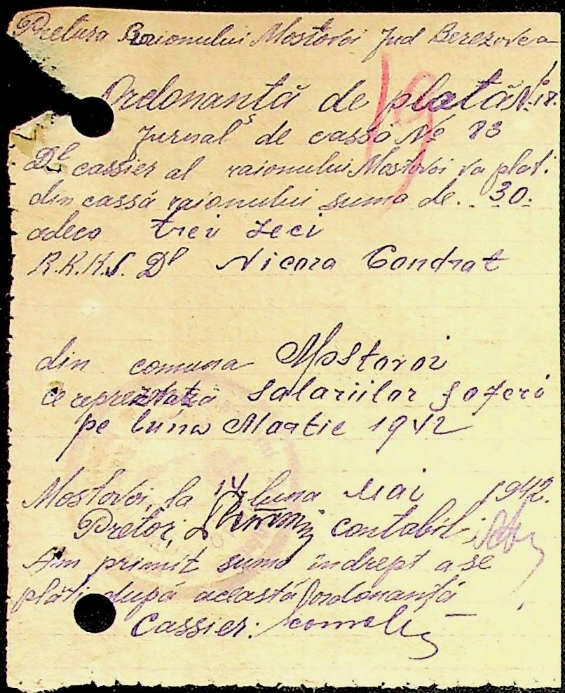 • • • • Справа № 53 Відомості на виплату зарплати службовцям установ Мостівського району за 1942 рік