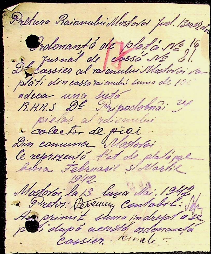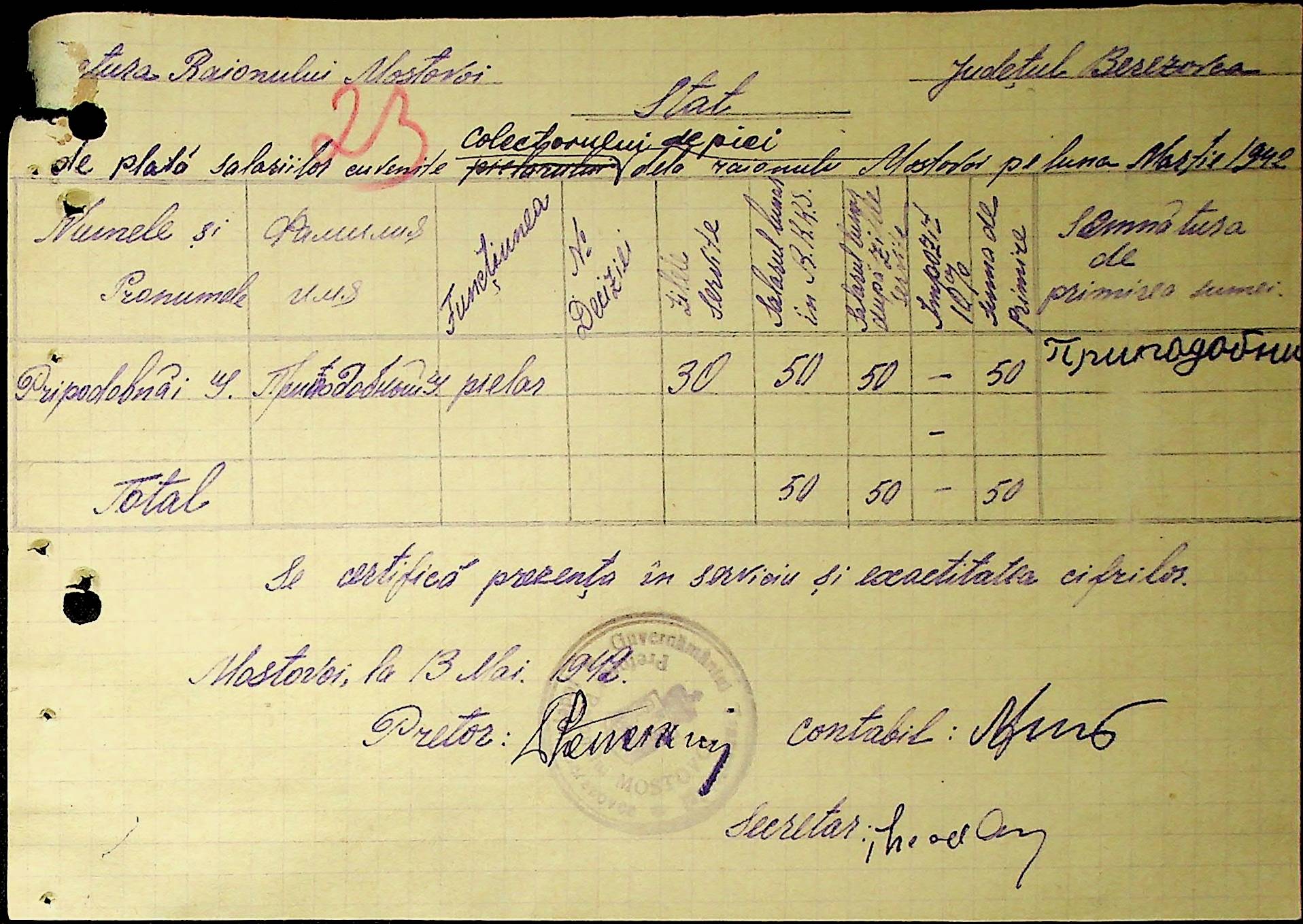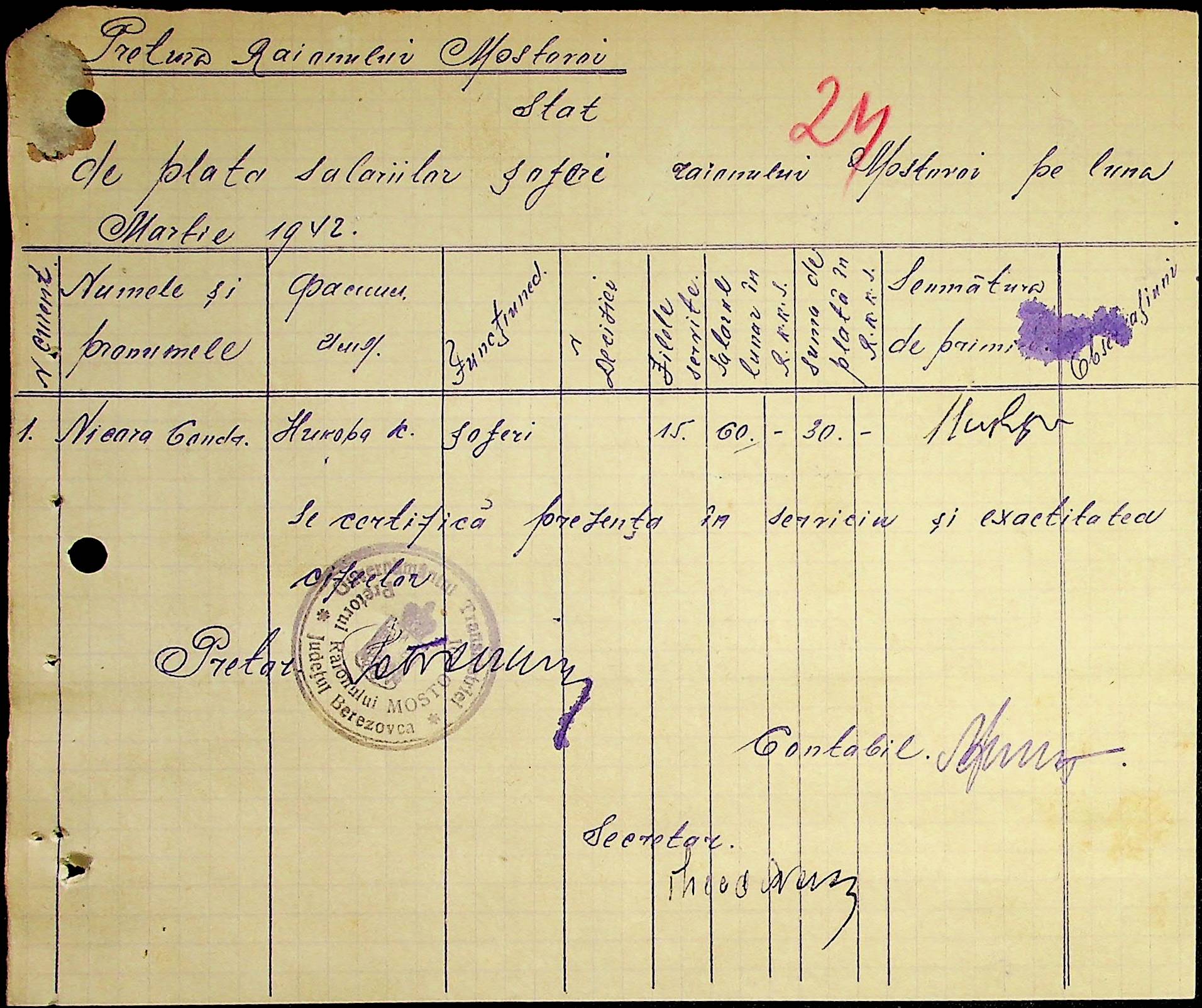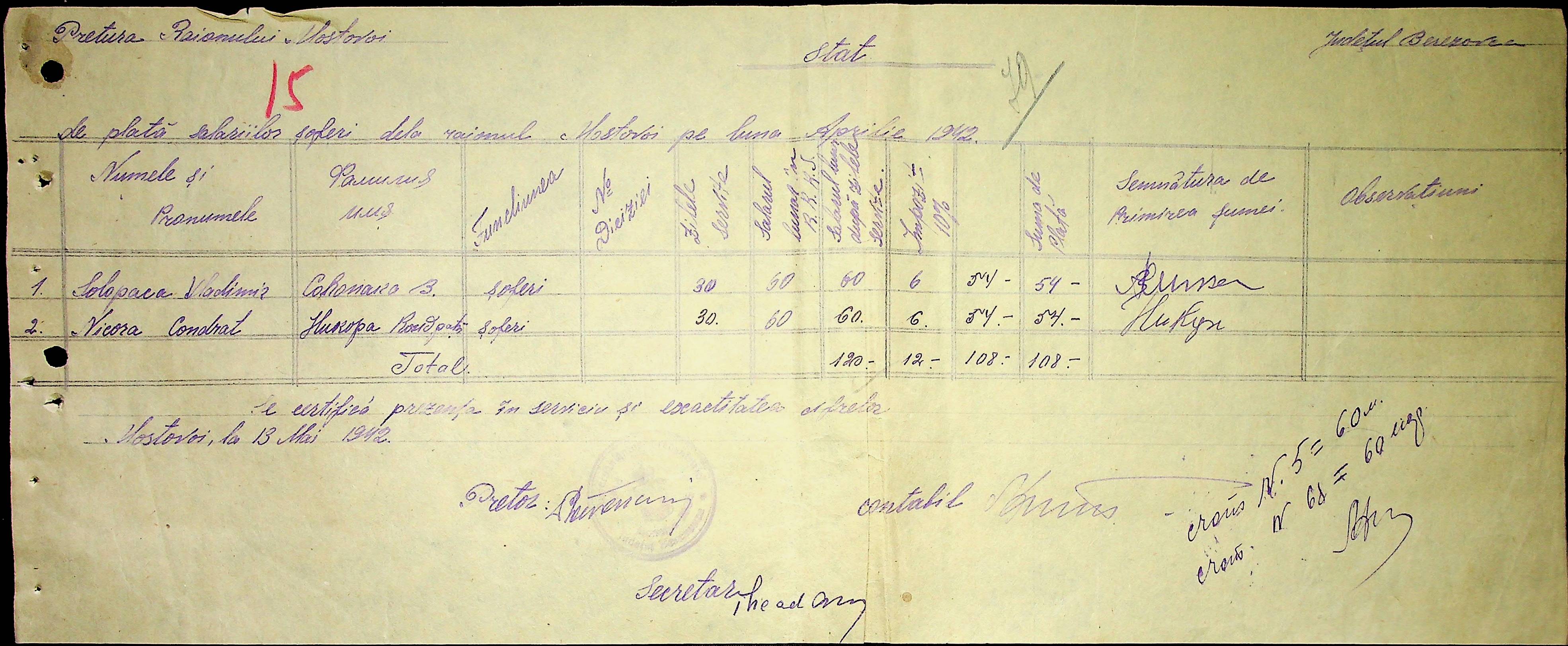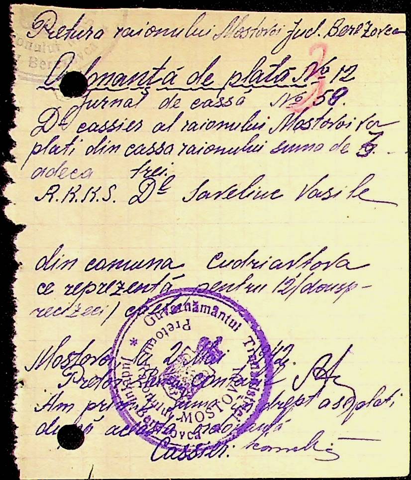 • • • • Справа № 53 Відомості на виплату зарплати службовцям установ Мостівського району за 1942 рік