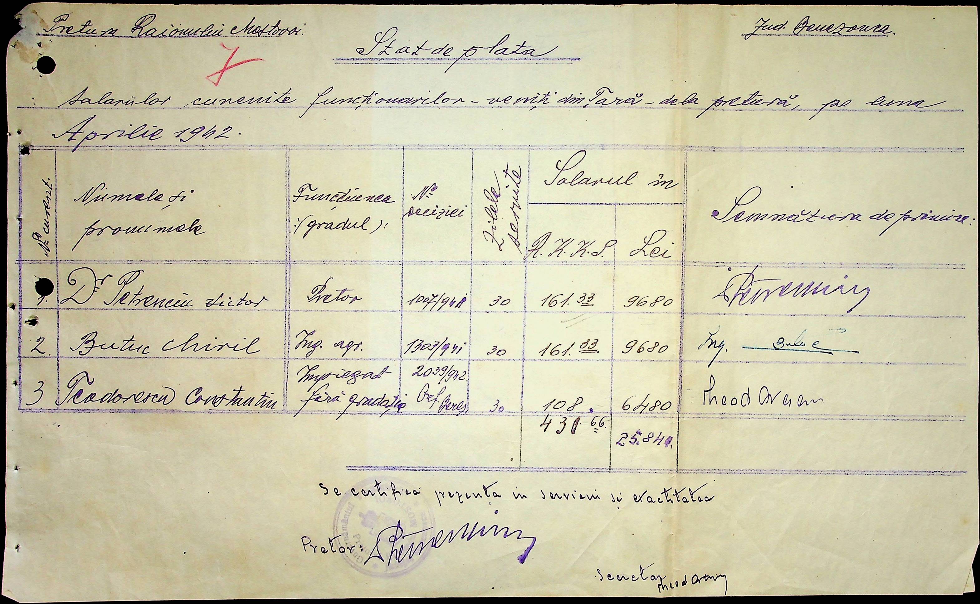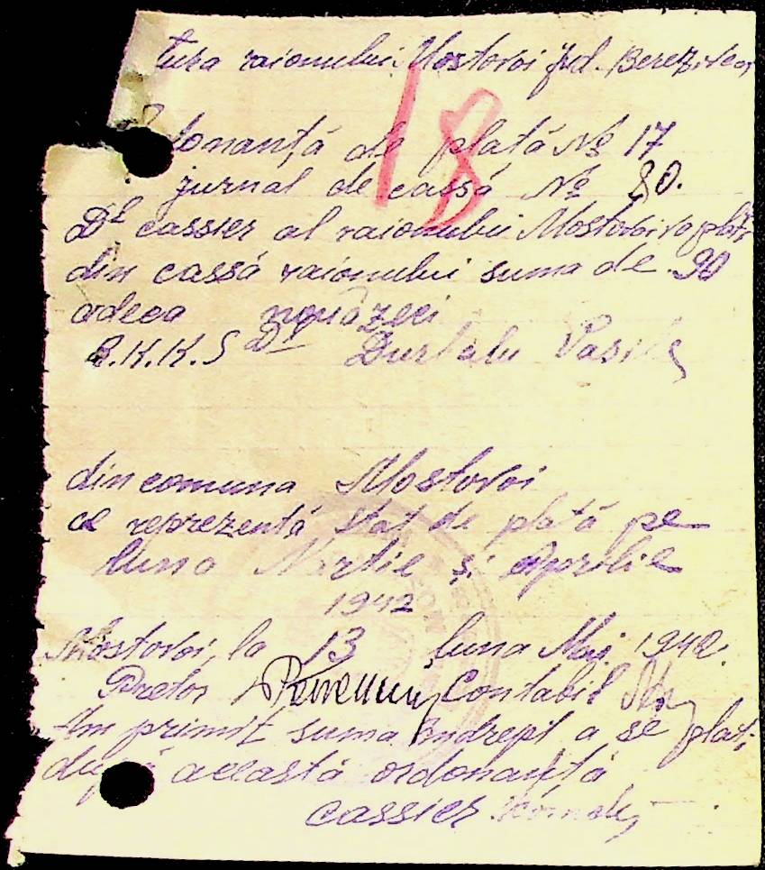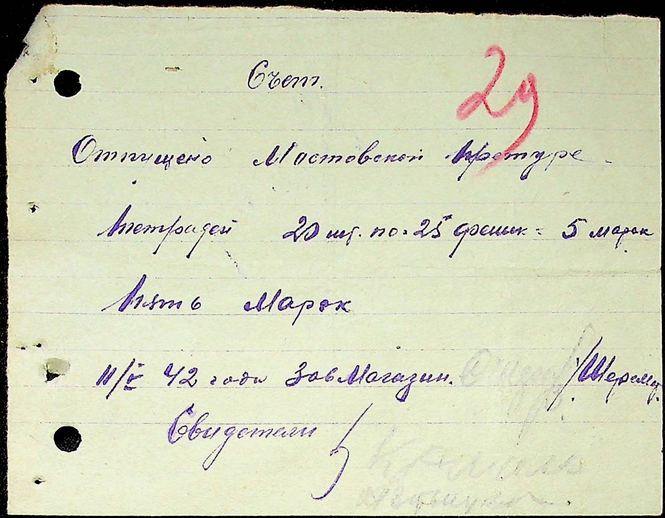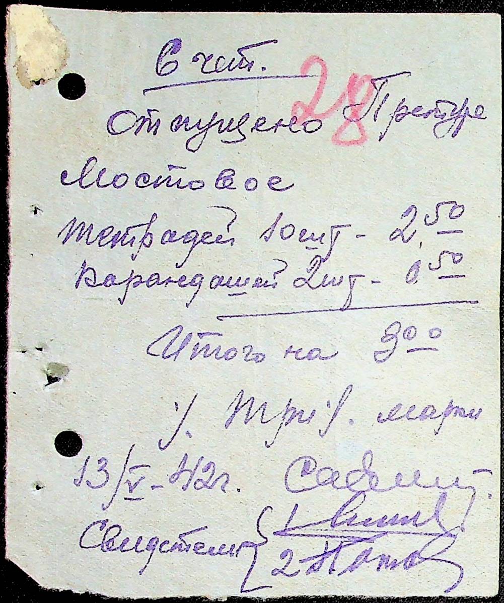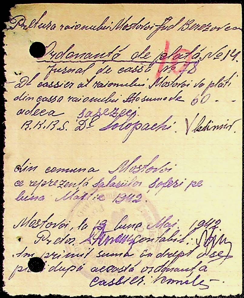 • • • • Справа № 53 Відомості на виплату зарплати службовцям установ Мостівського району за 1942 рік