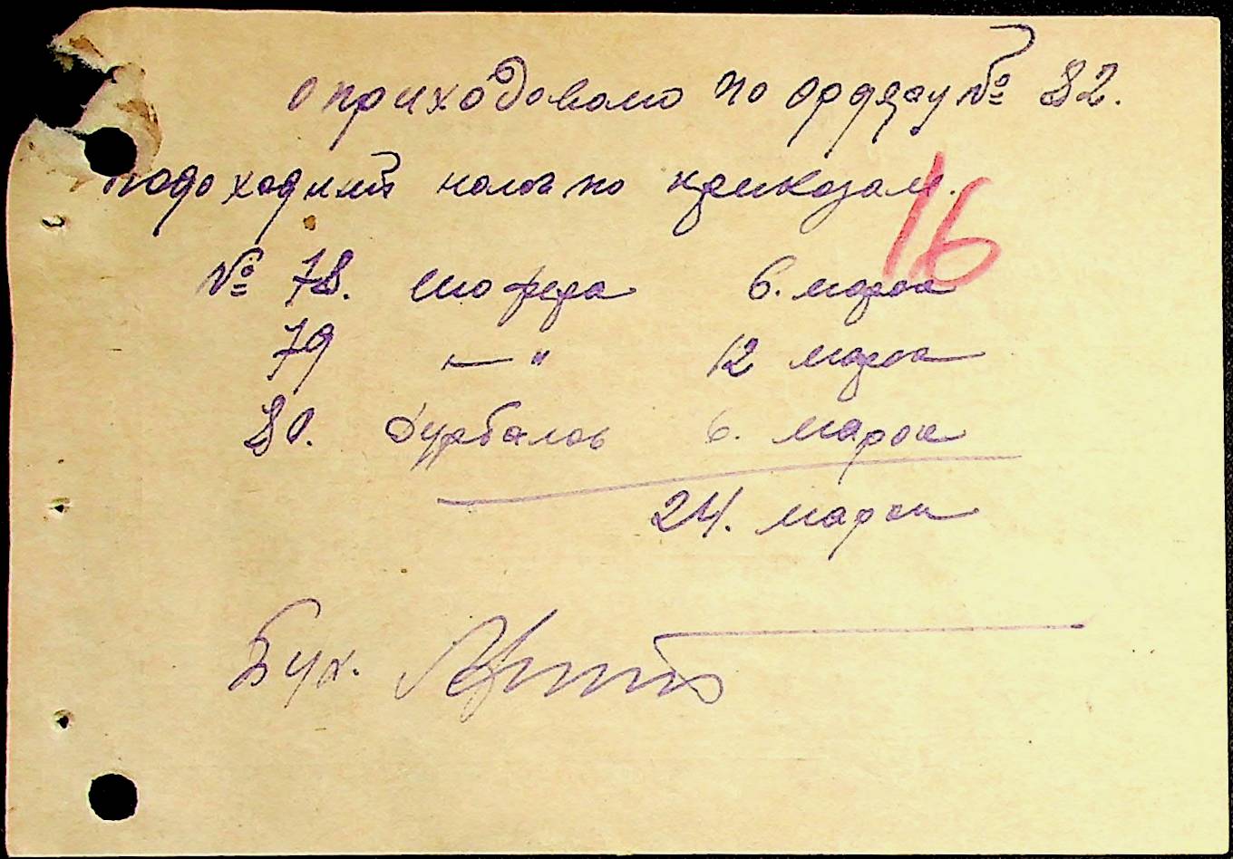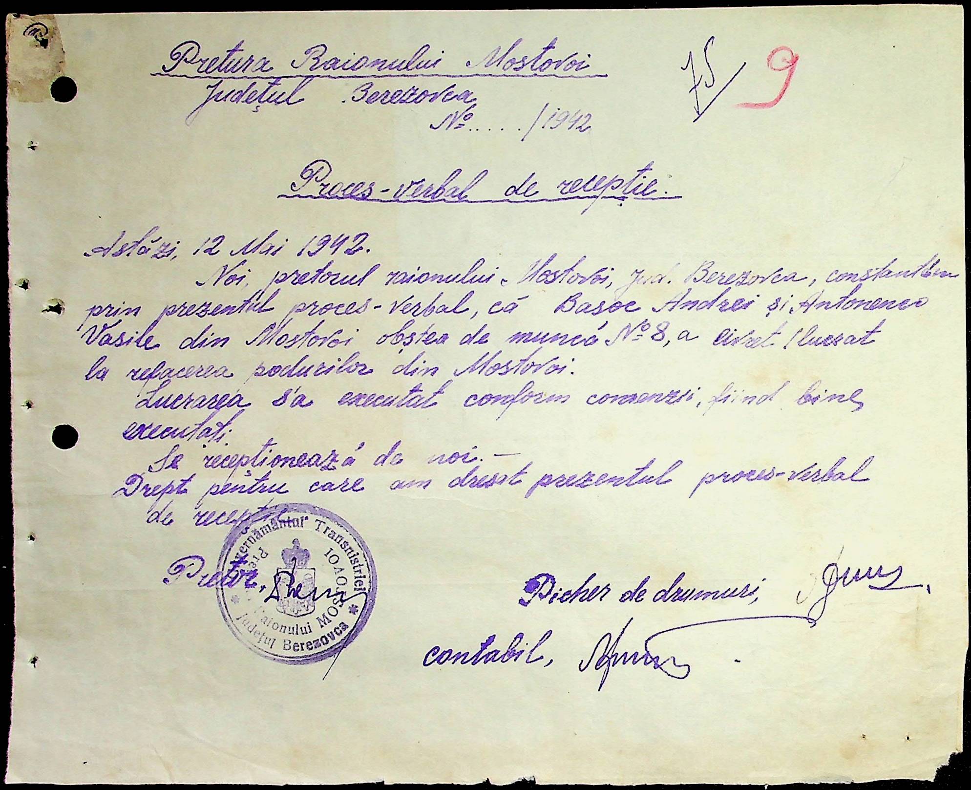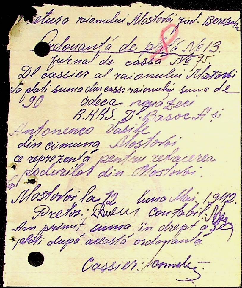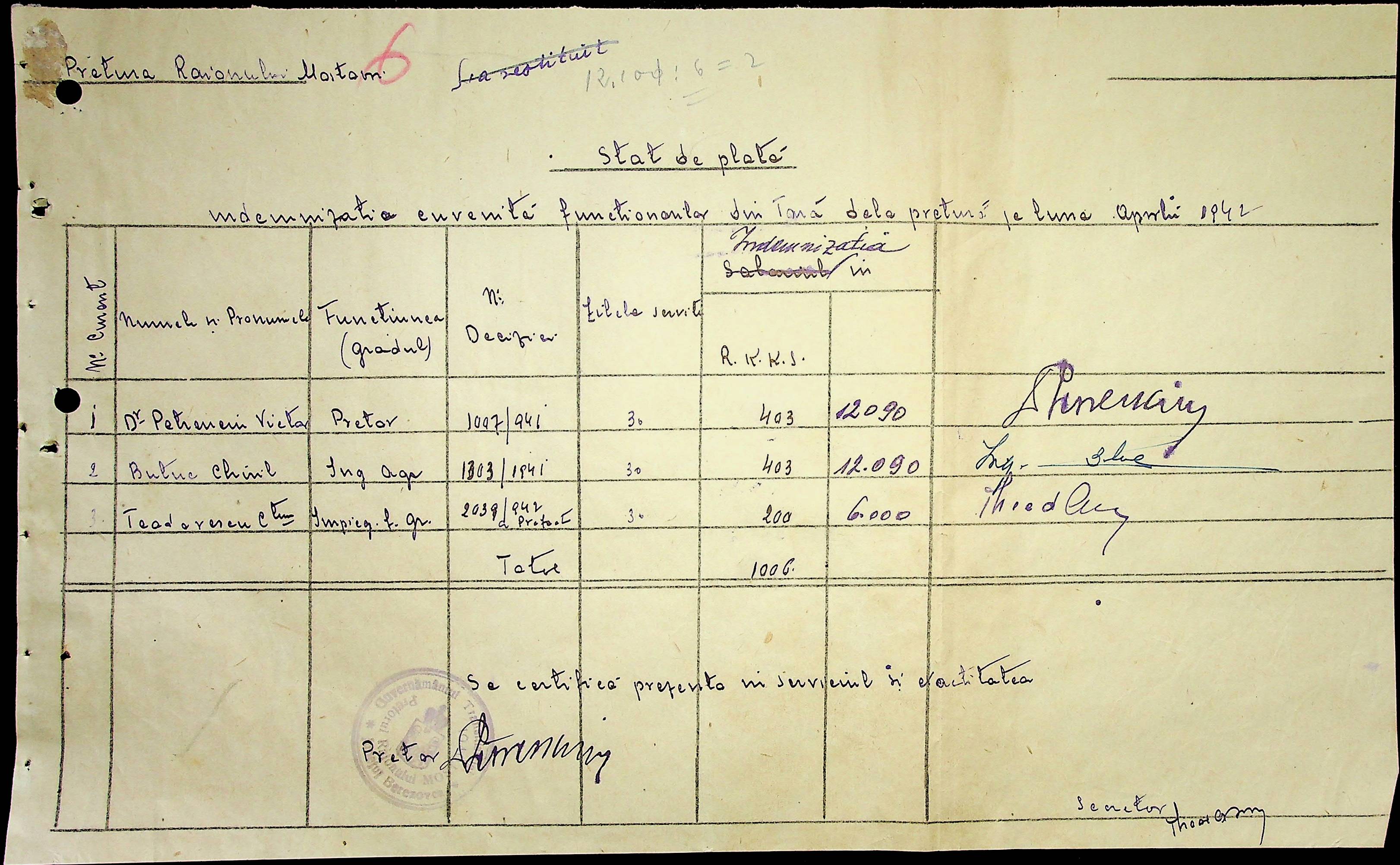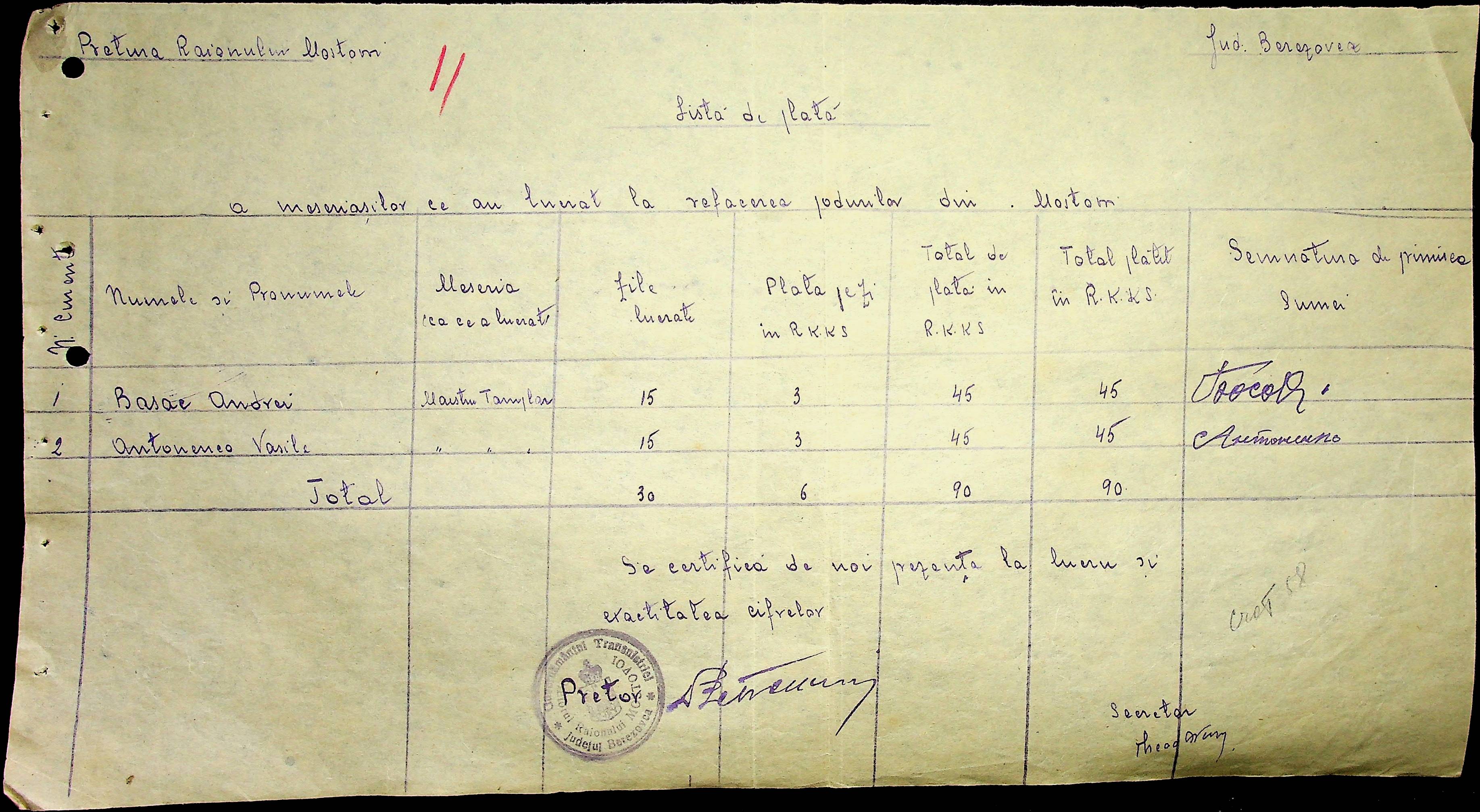 • • • • Справа № 53 Відомості на виплату зарплати службовцям установ Мостівського району за 1942 рік