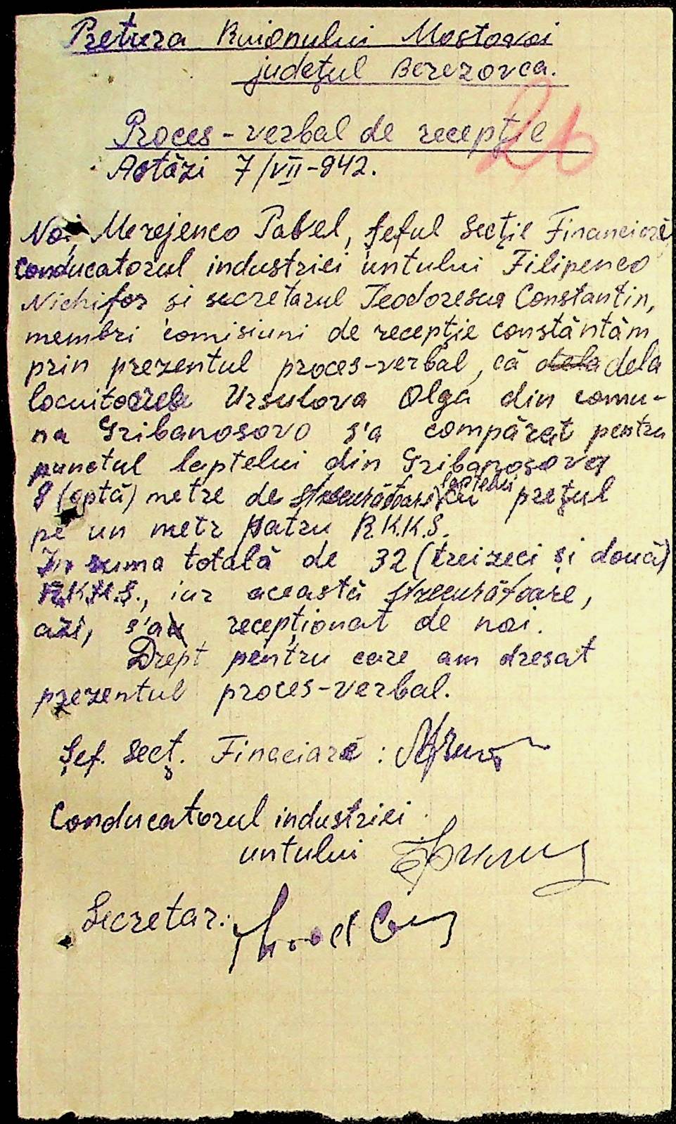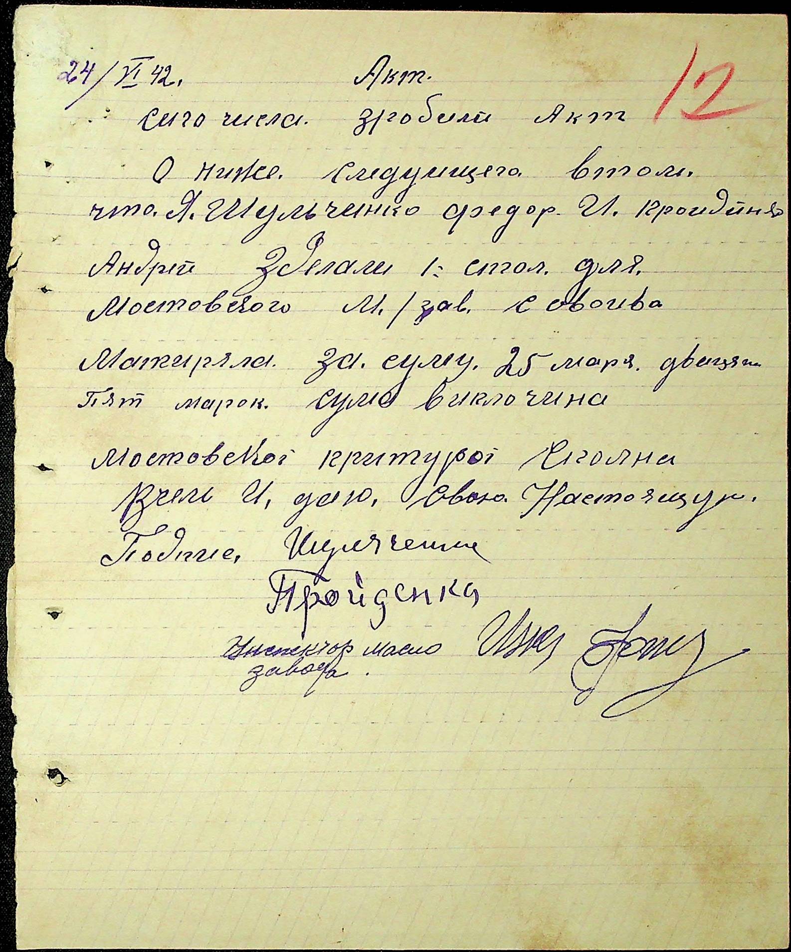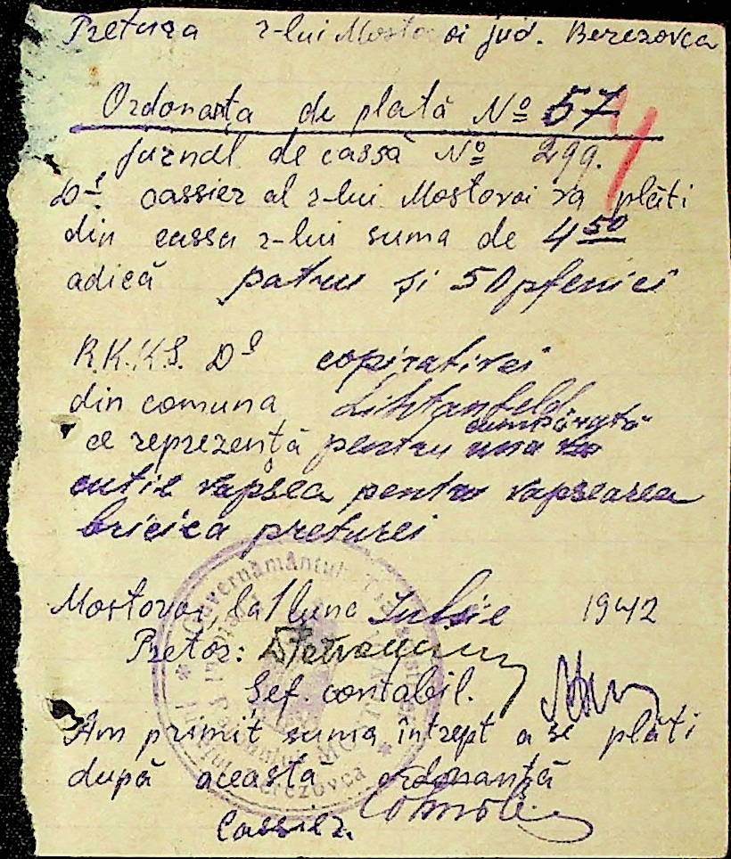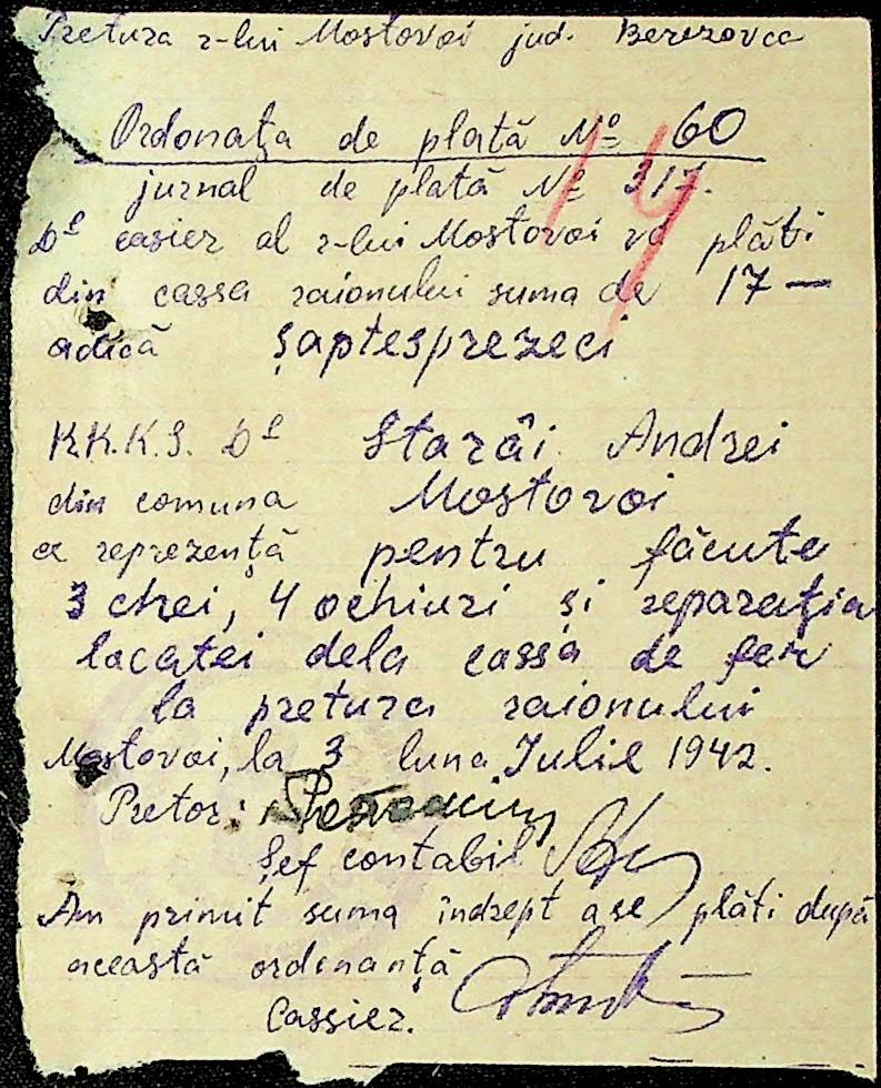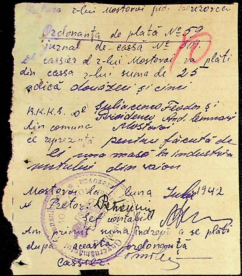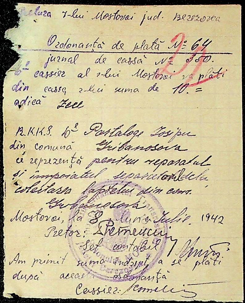 • • • • Справа № 54 Відомості на виплату зарплати службовцям установ Мостівського району за 1942 рік
