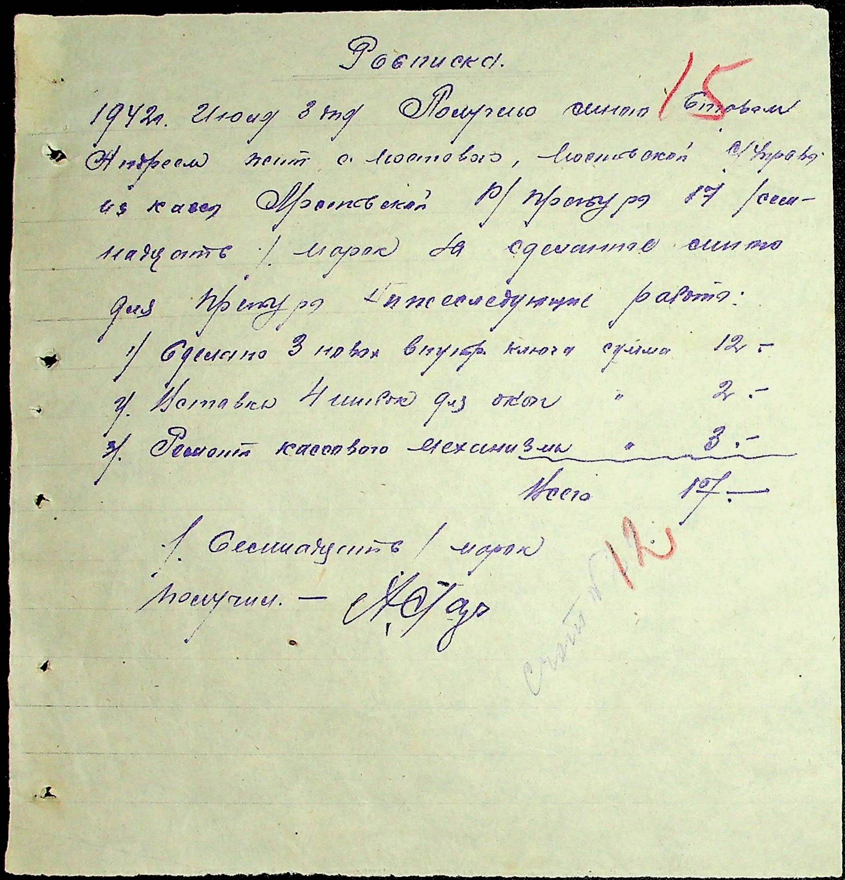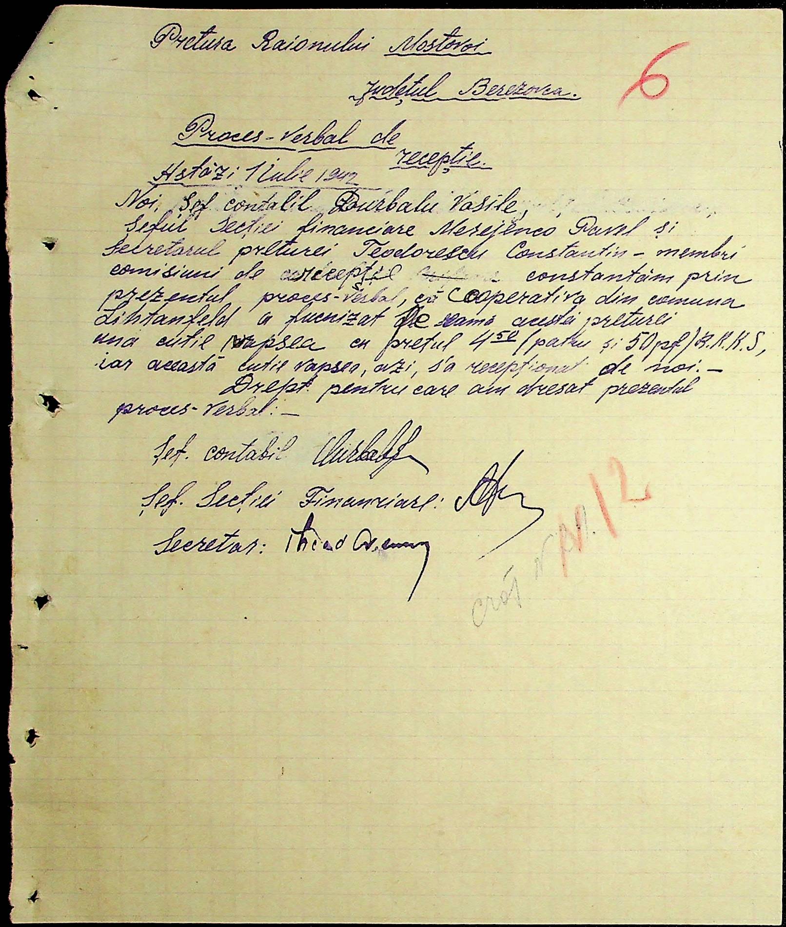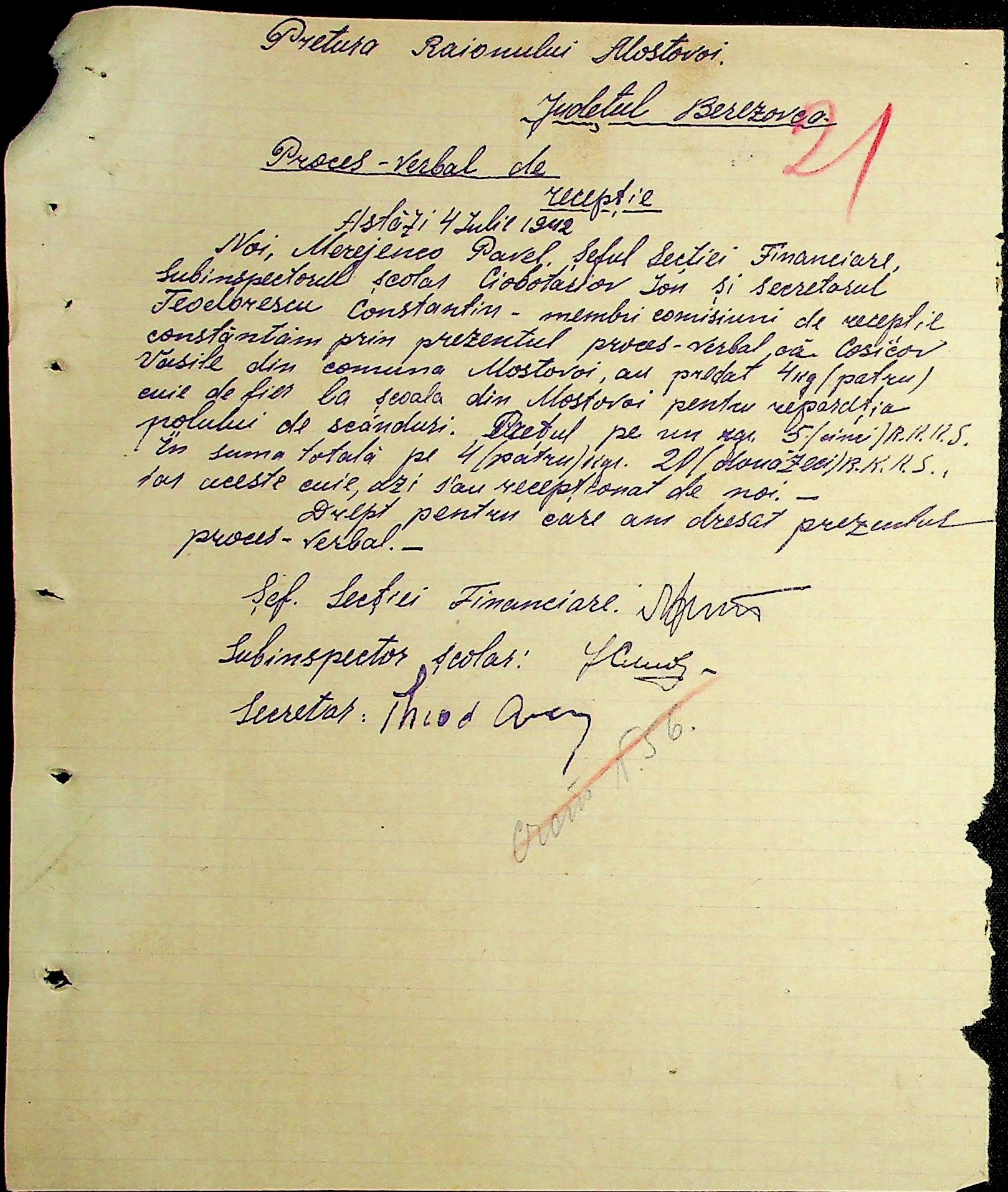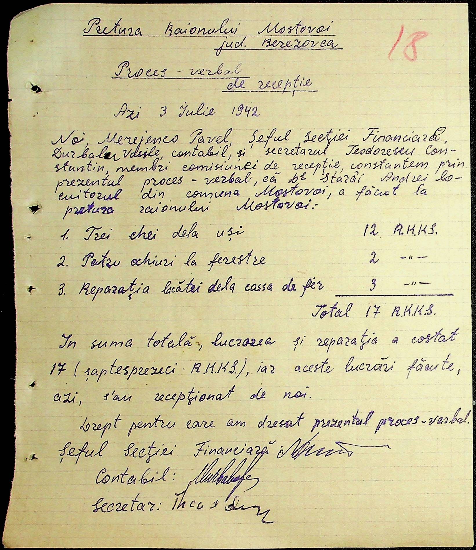 • • • • Справа № 54 Відомості на виплату зарплати службовцям установ Мостівського району за 1942 рік