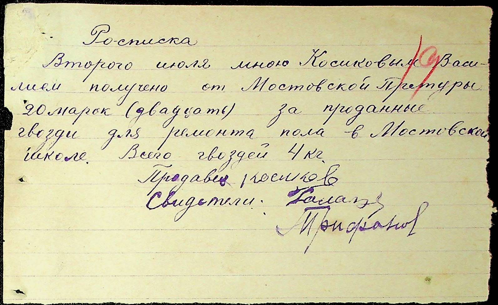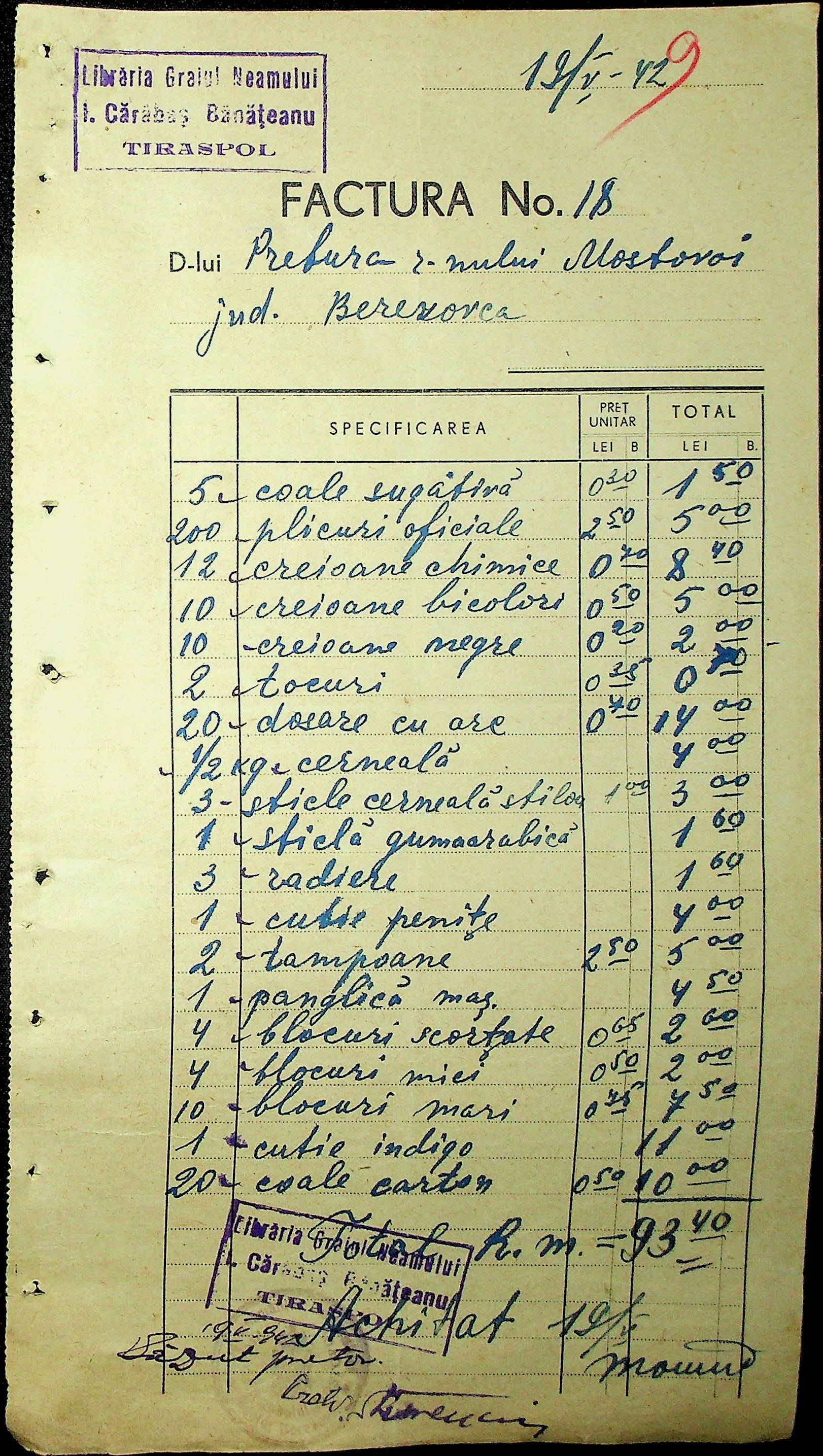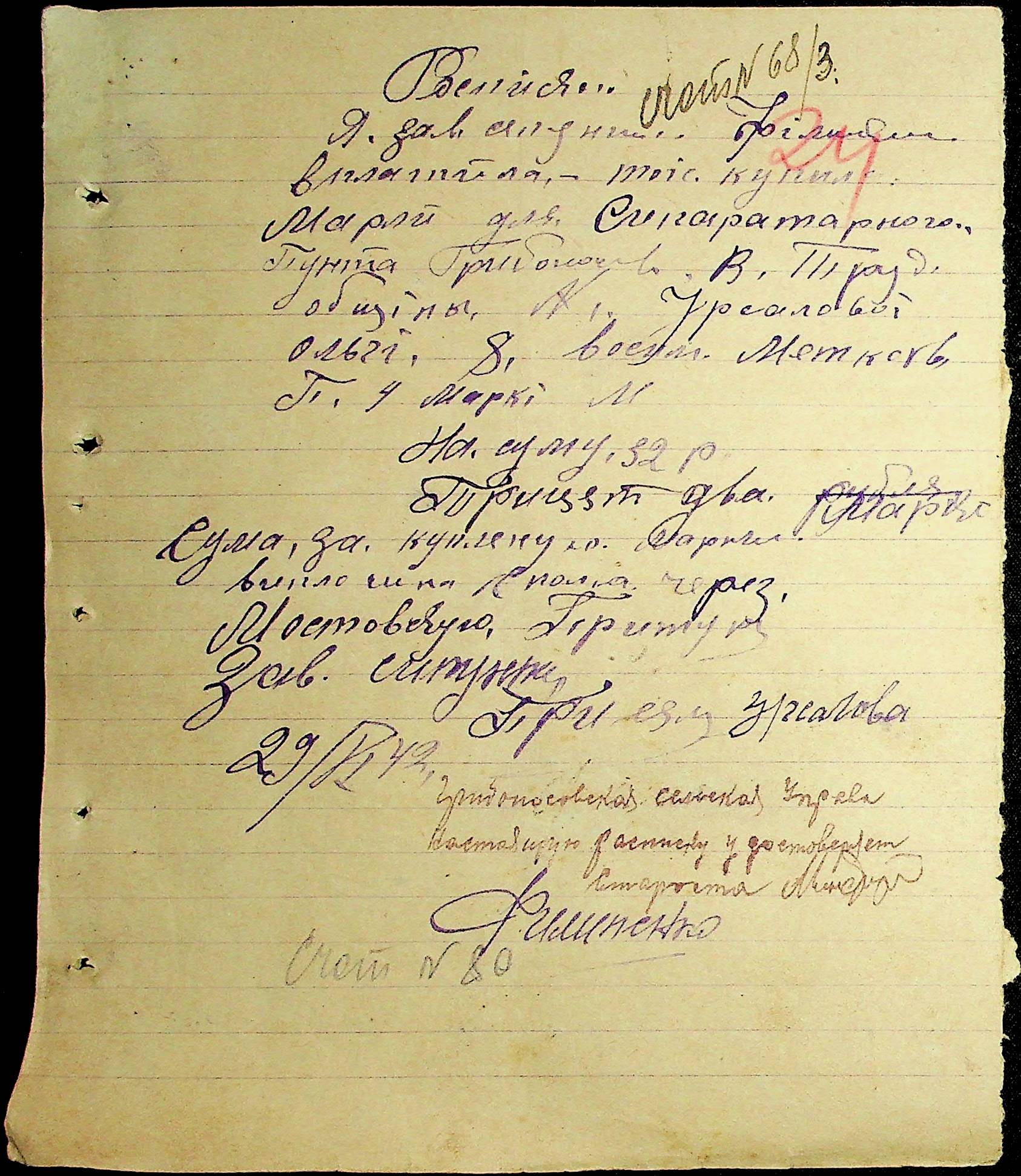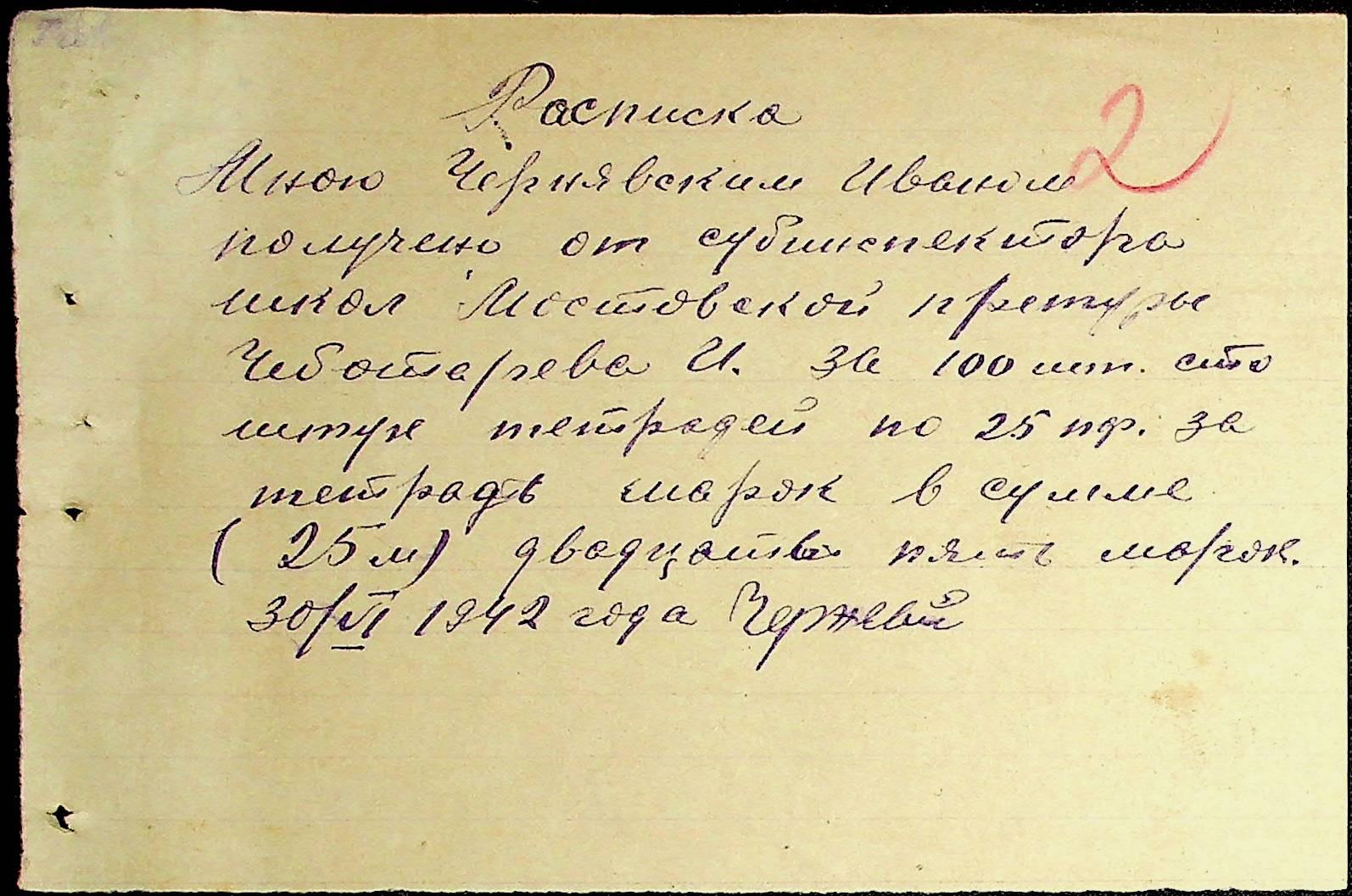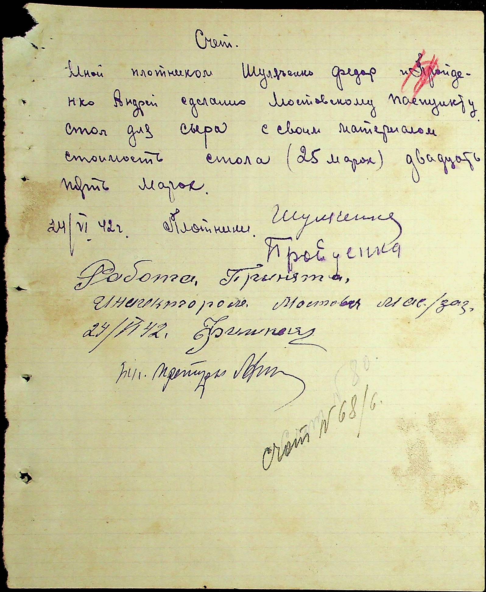 • • • • Справа № 54 Відомості на виплату зарплати службовцям установ Мостівського району за 1942 рік