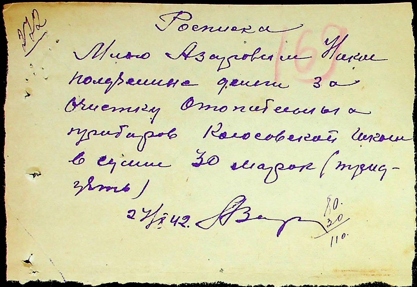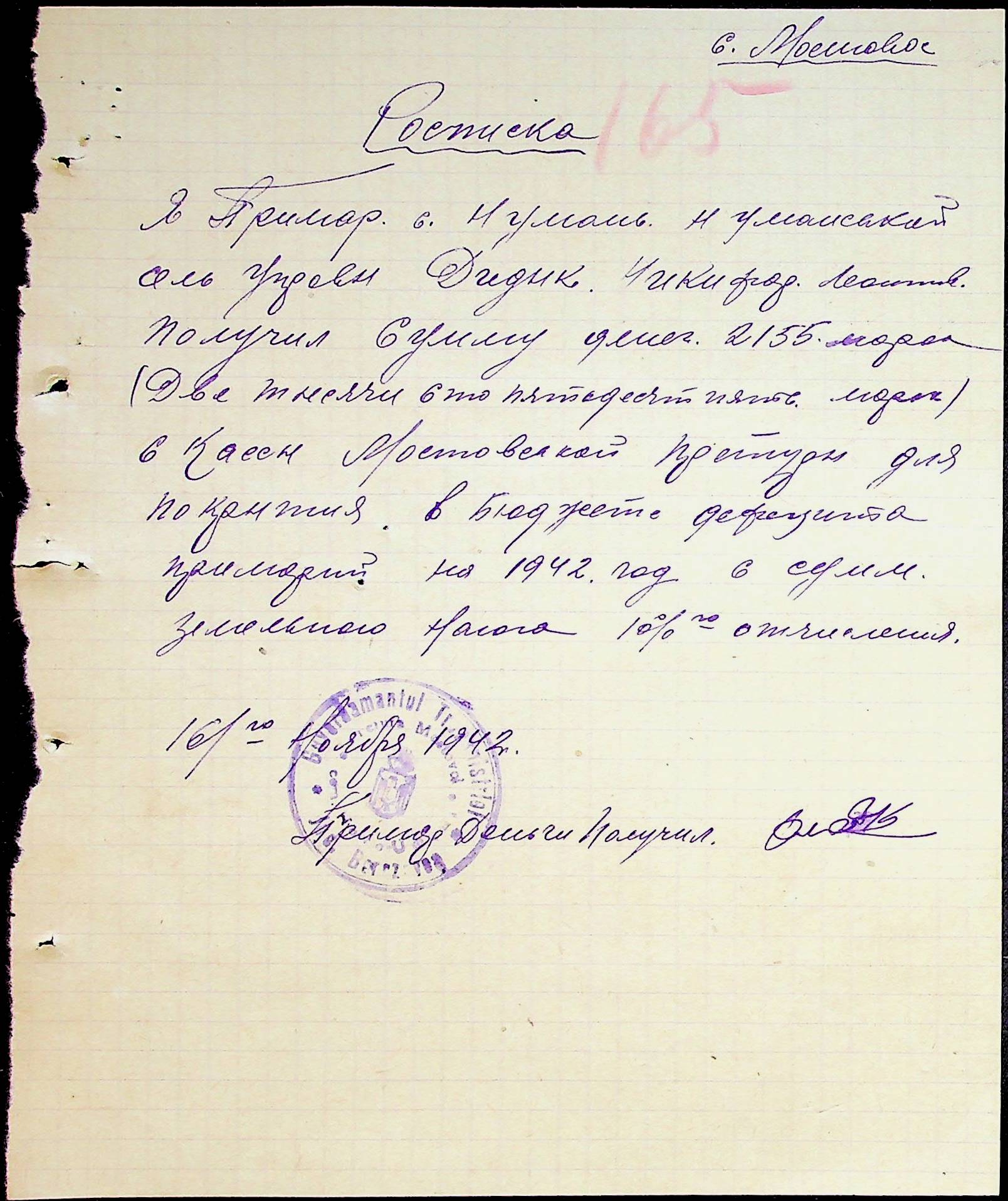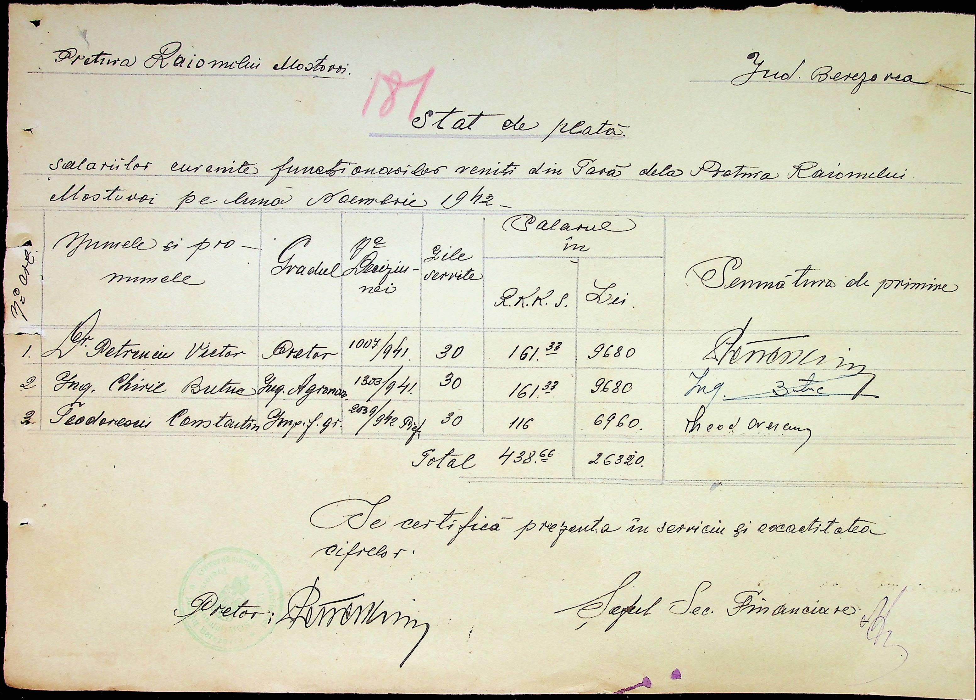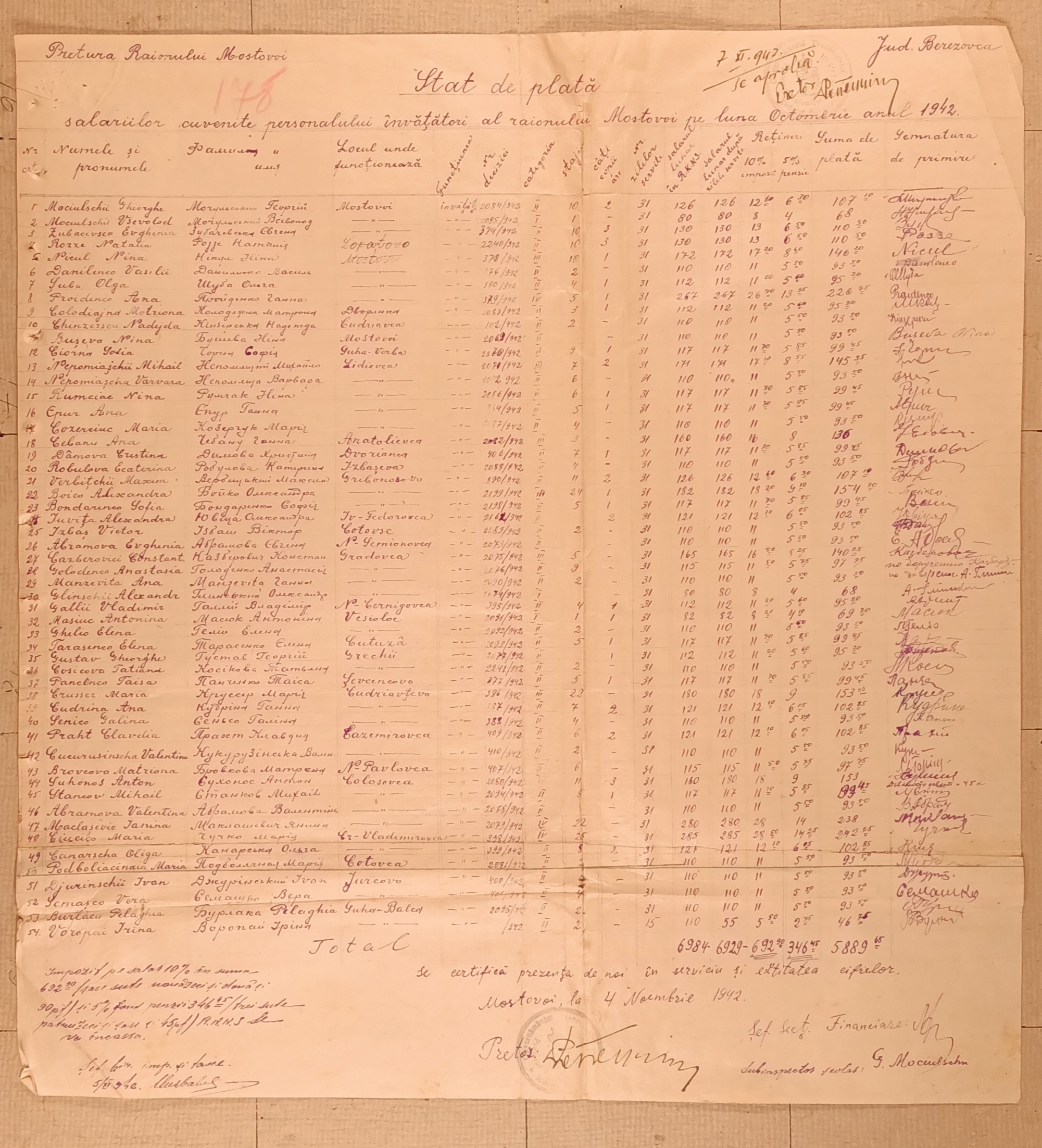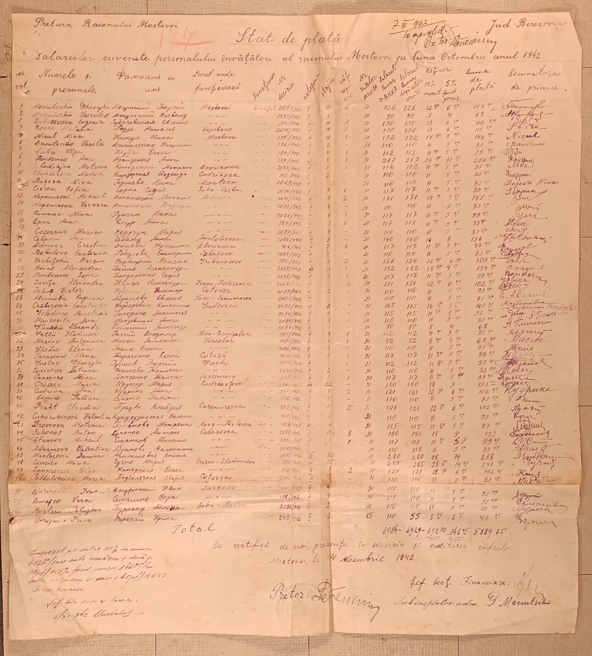 • • • • Справа № 59 Відомості на виплату зарплати службовцям установ Мостівського району за 1942 рік