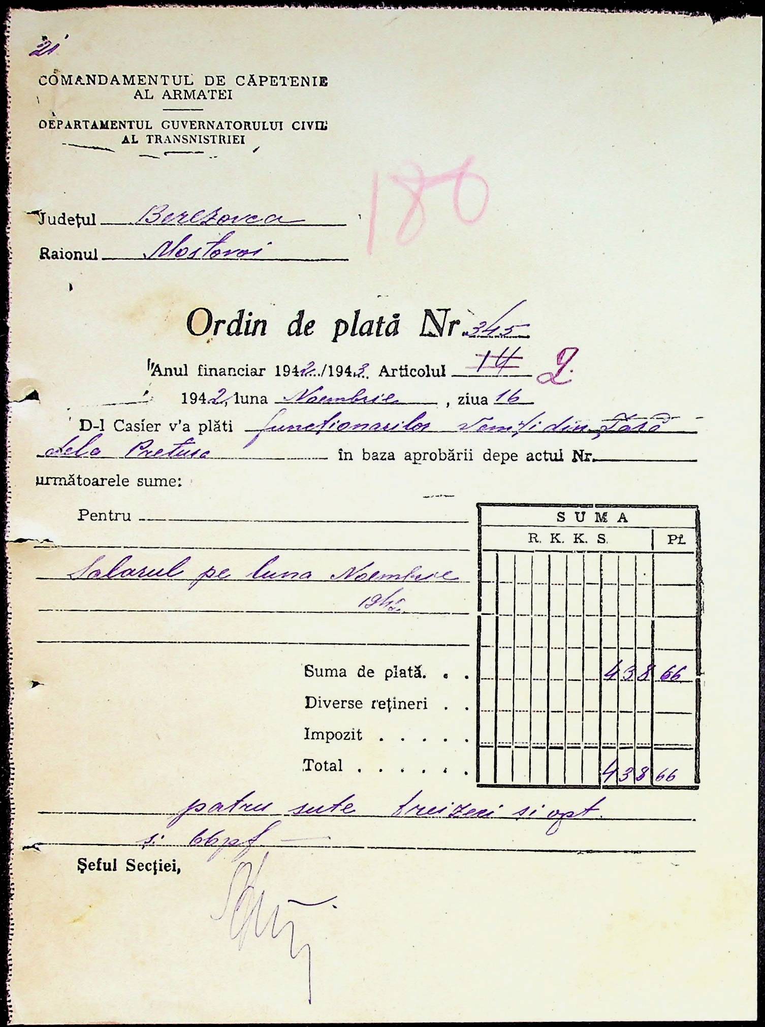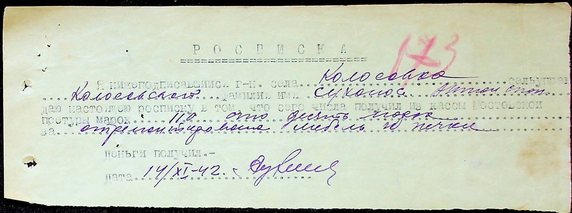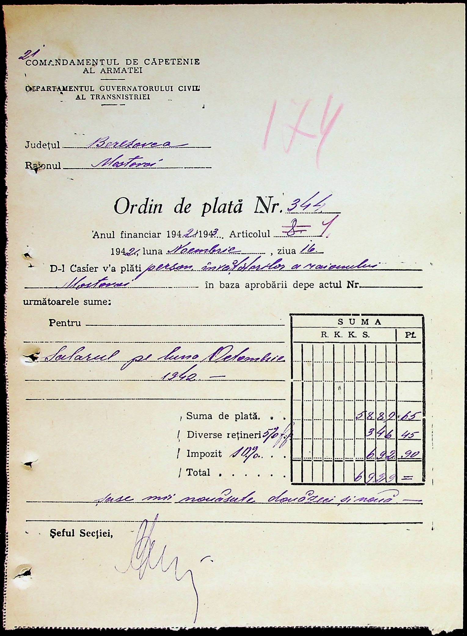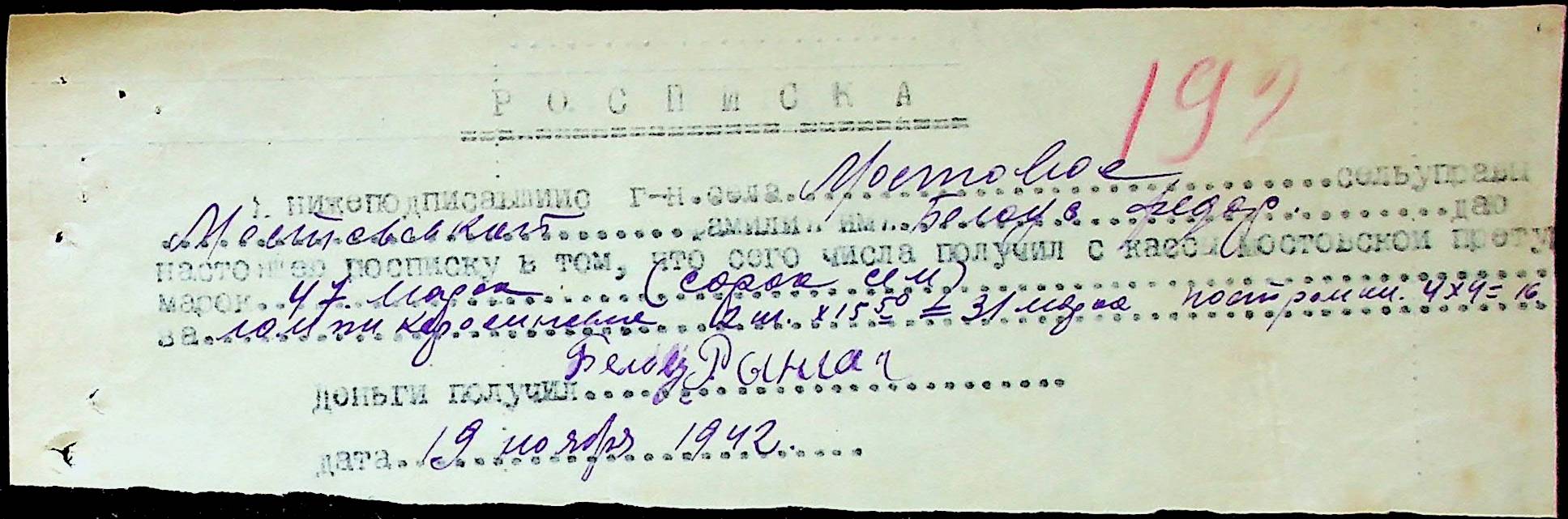 • • • • Справа № 59 Відомості на виплату зарплати службовцям установ Мостівського району за 1942 рік