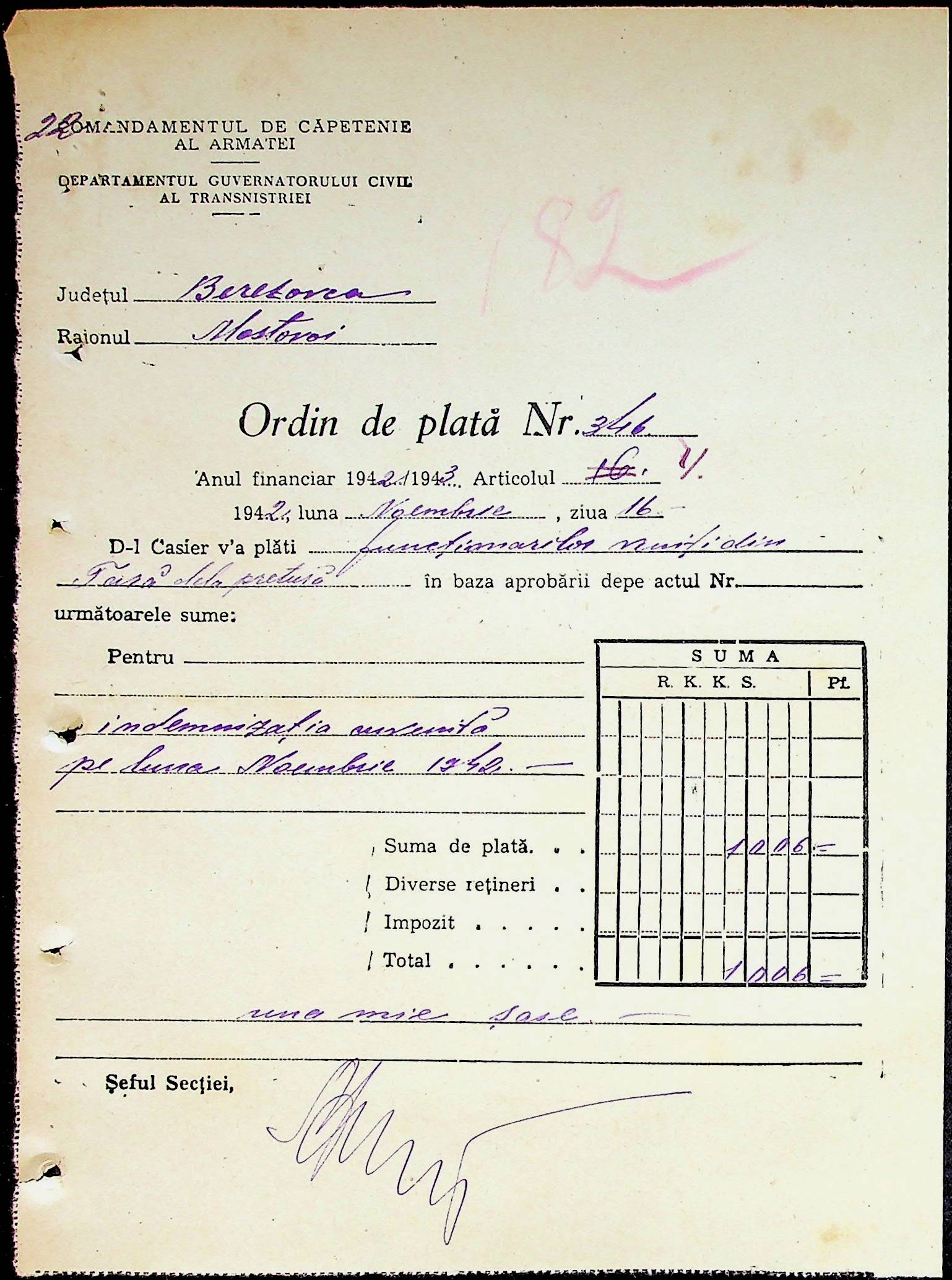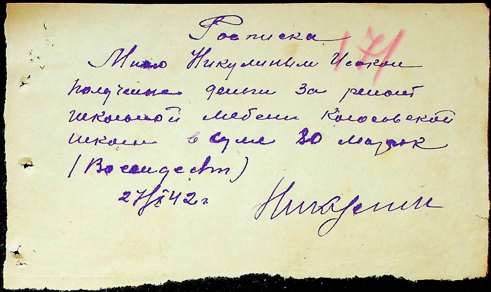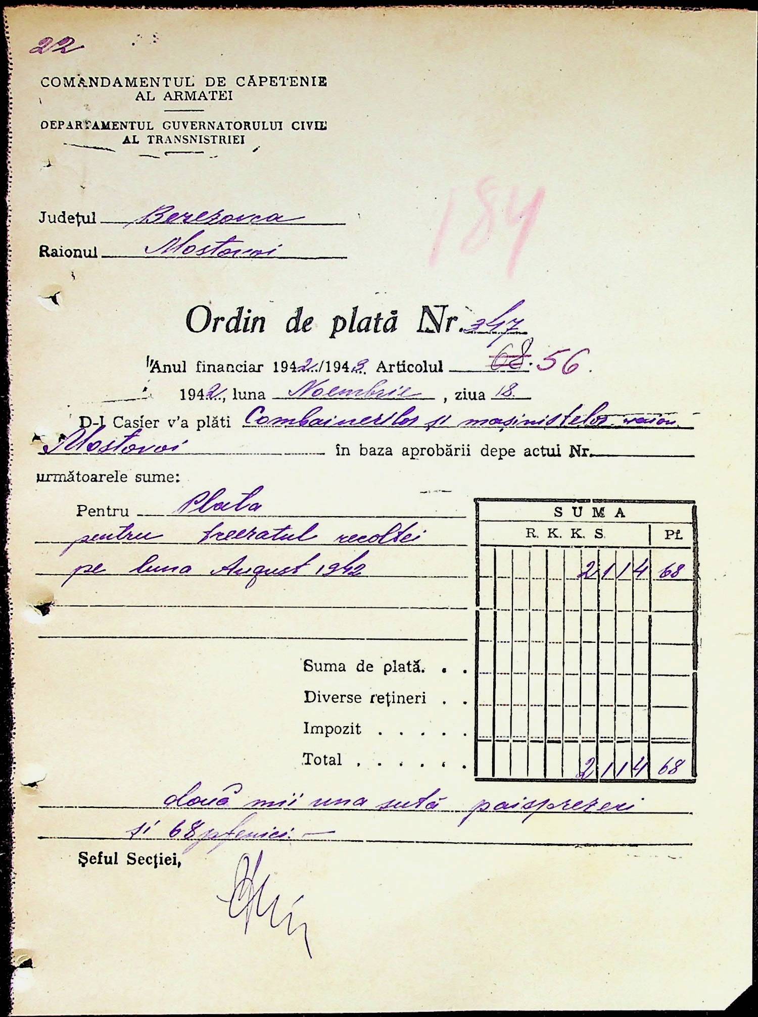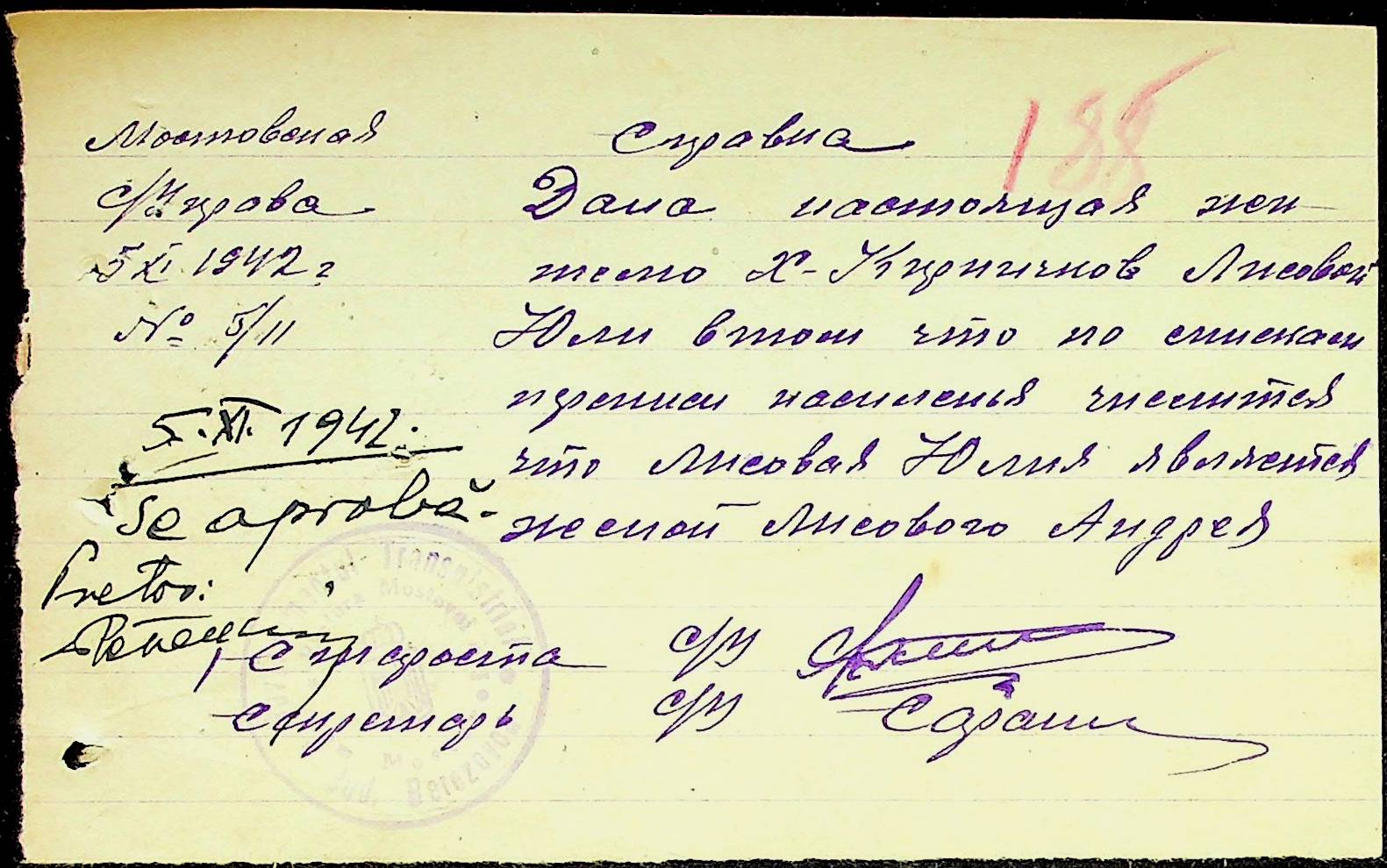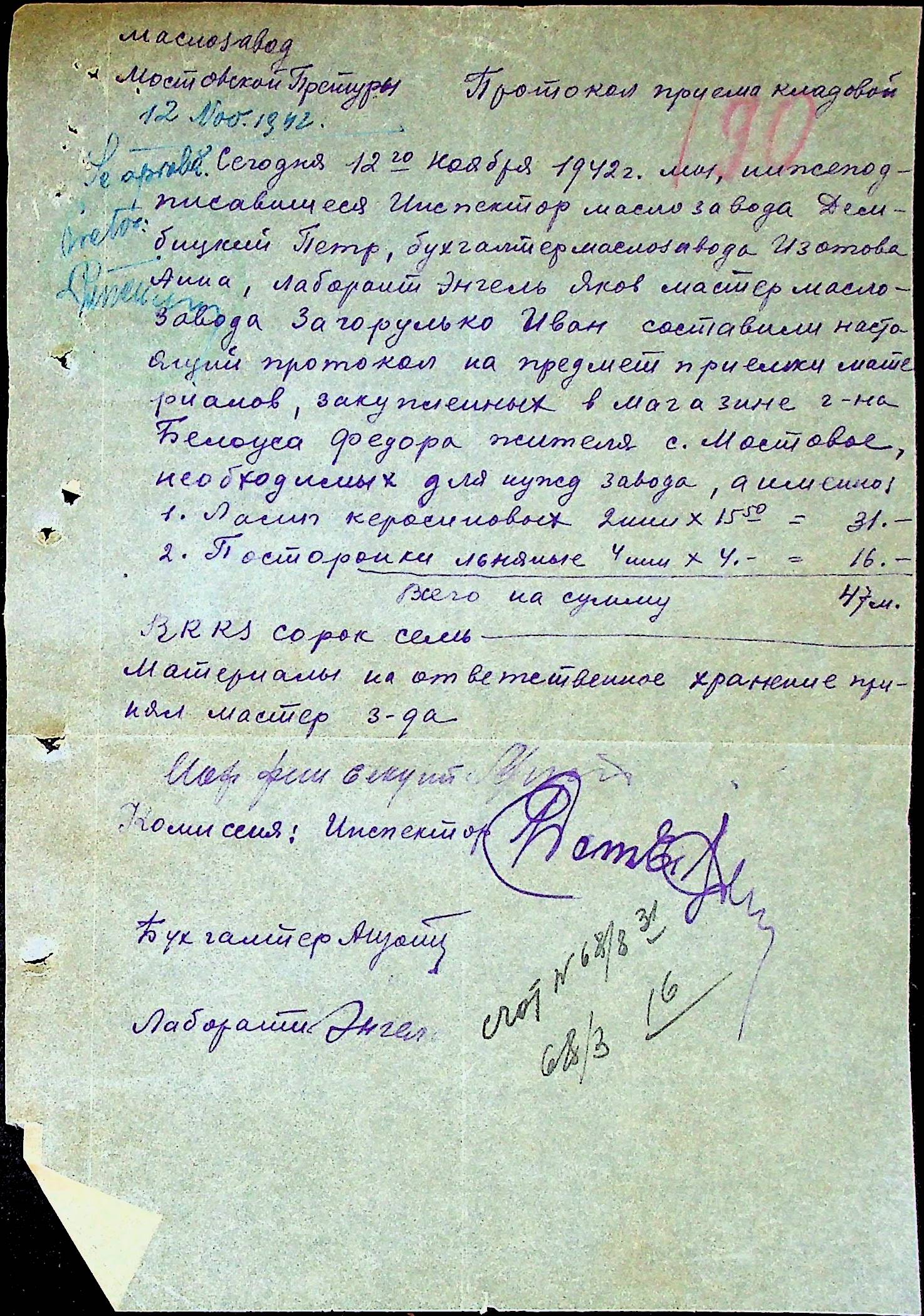 • • • • Справа № 59 Відомості на виплату зарплати службовцям установ Мостівського району за 1942 рік