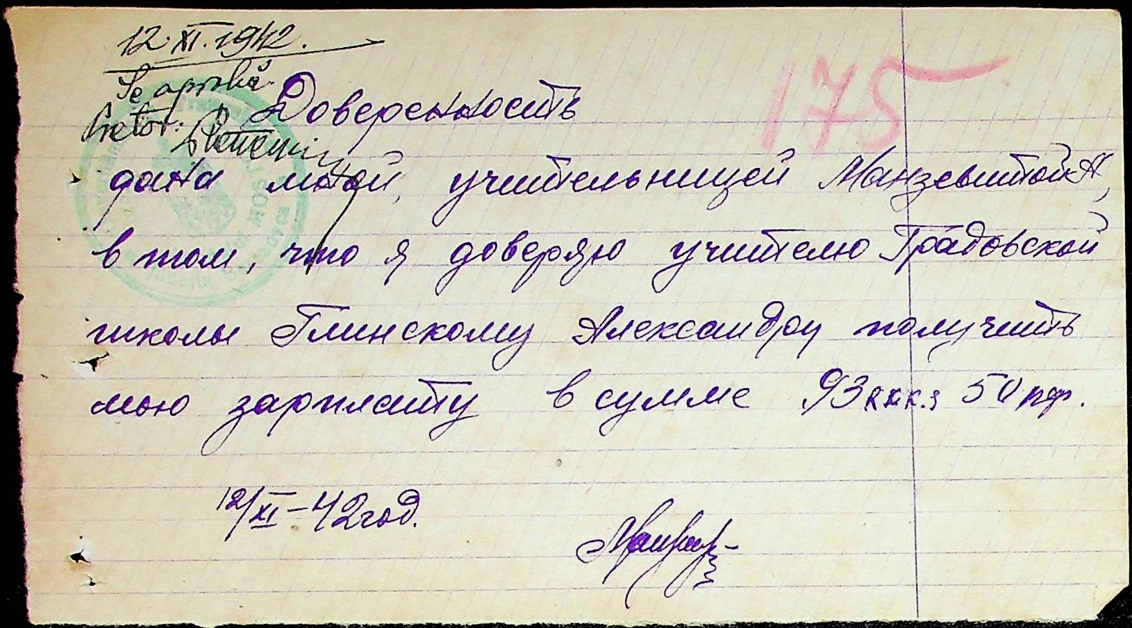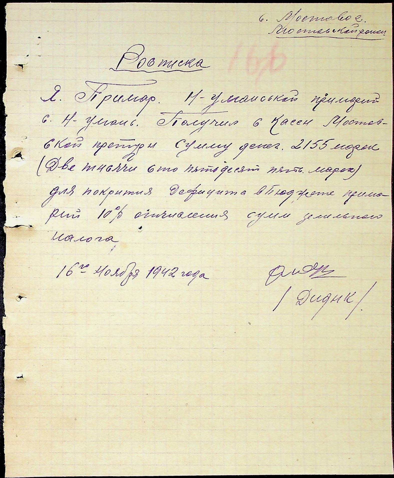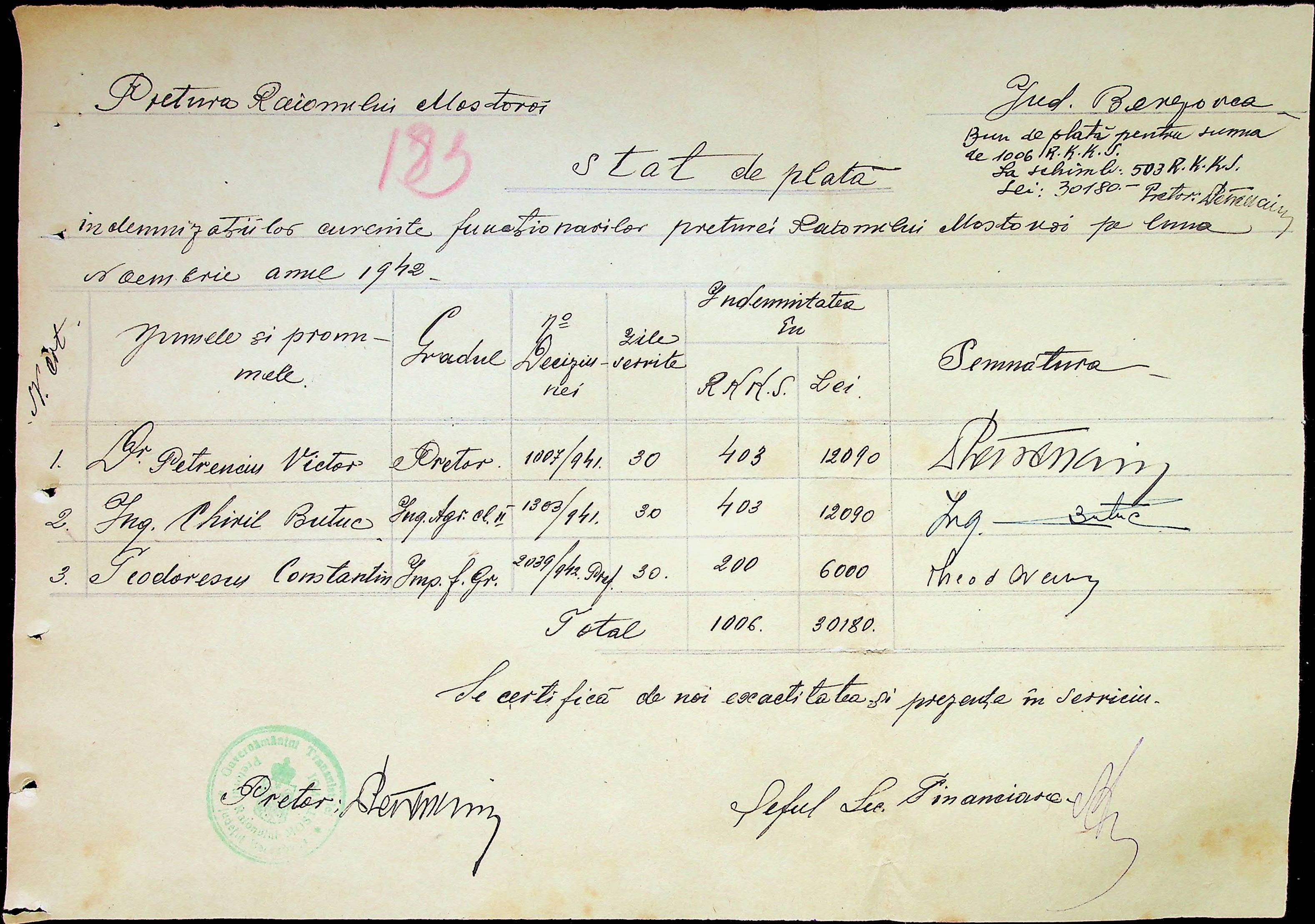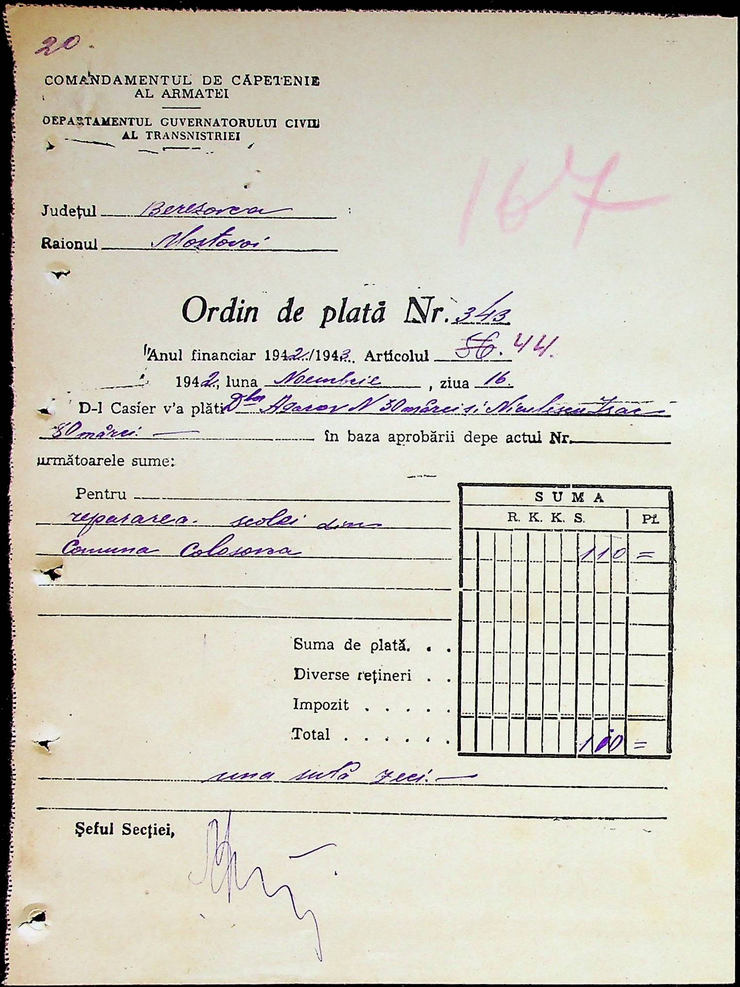 • • • • Справа № 59 Відомості на виплату зарплати службовцям установ Мостівського району за 1942 рік