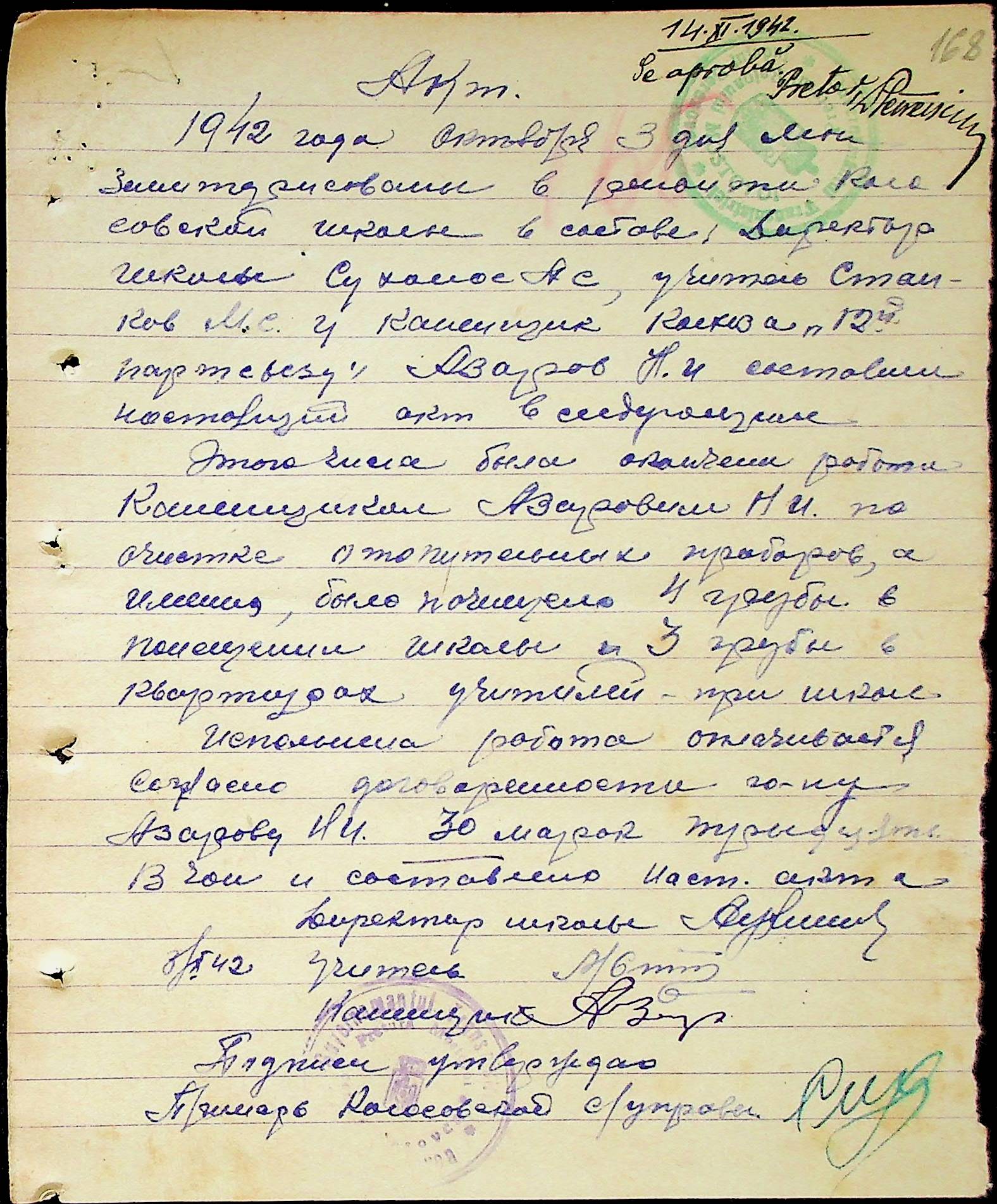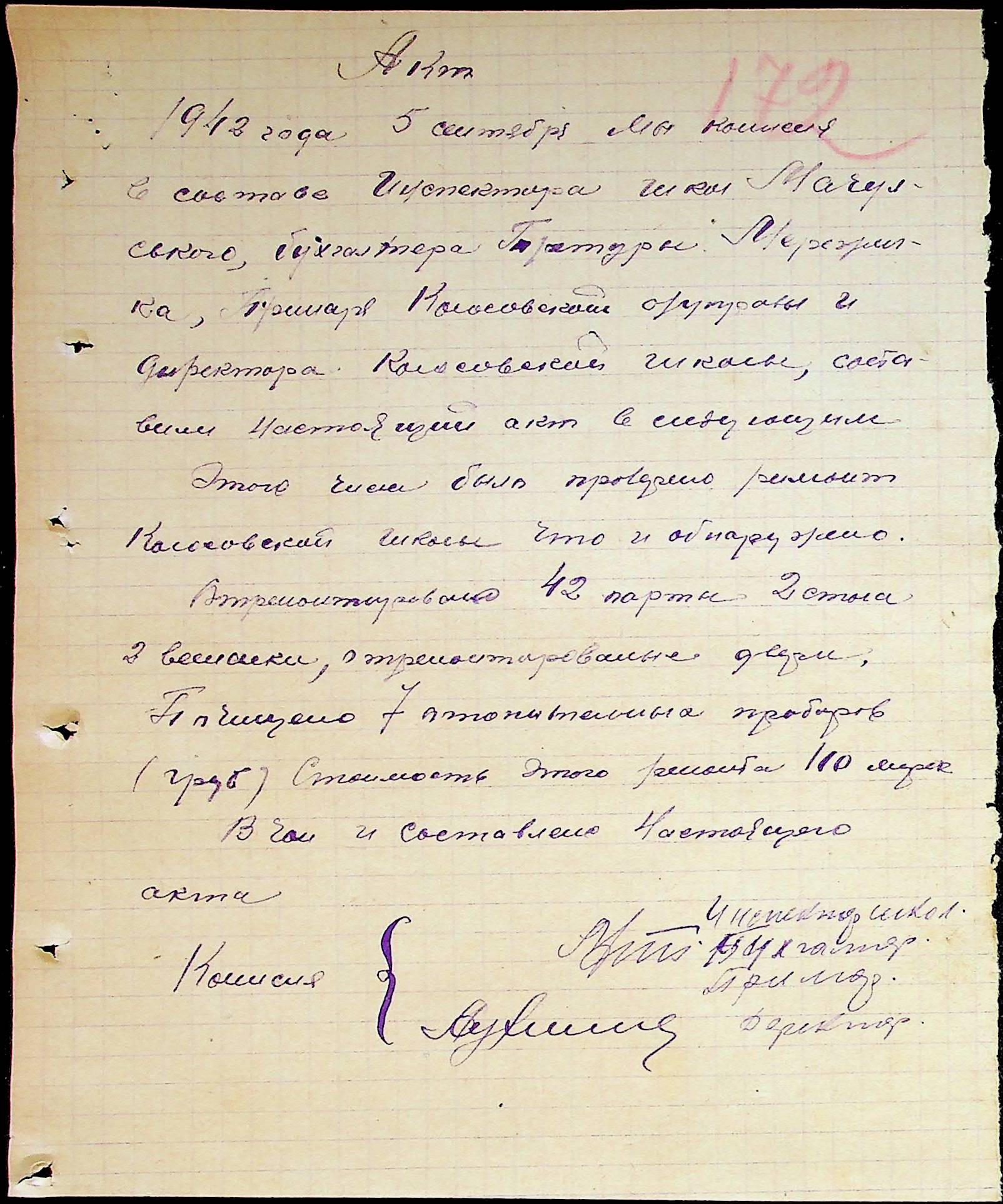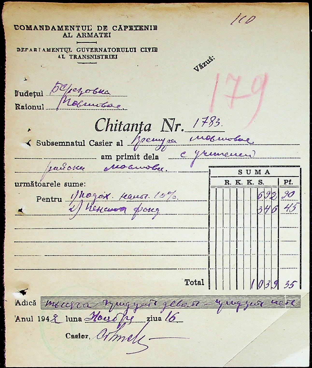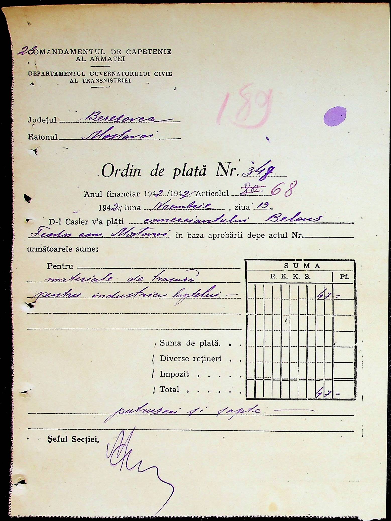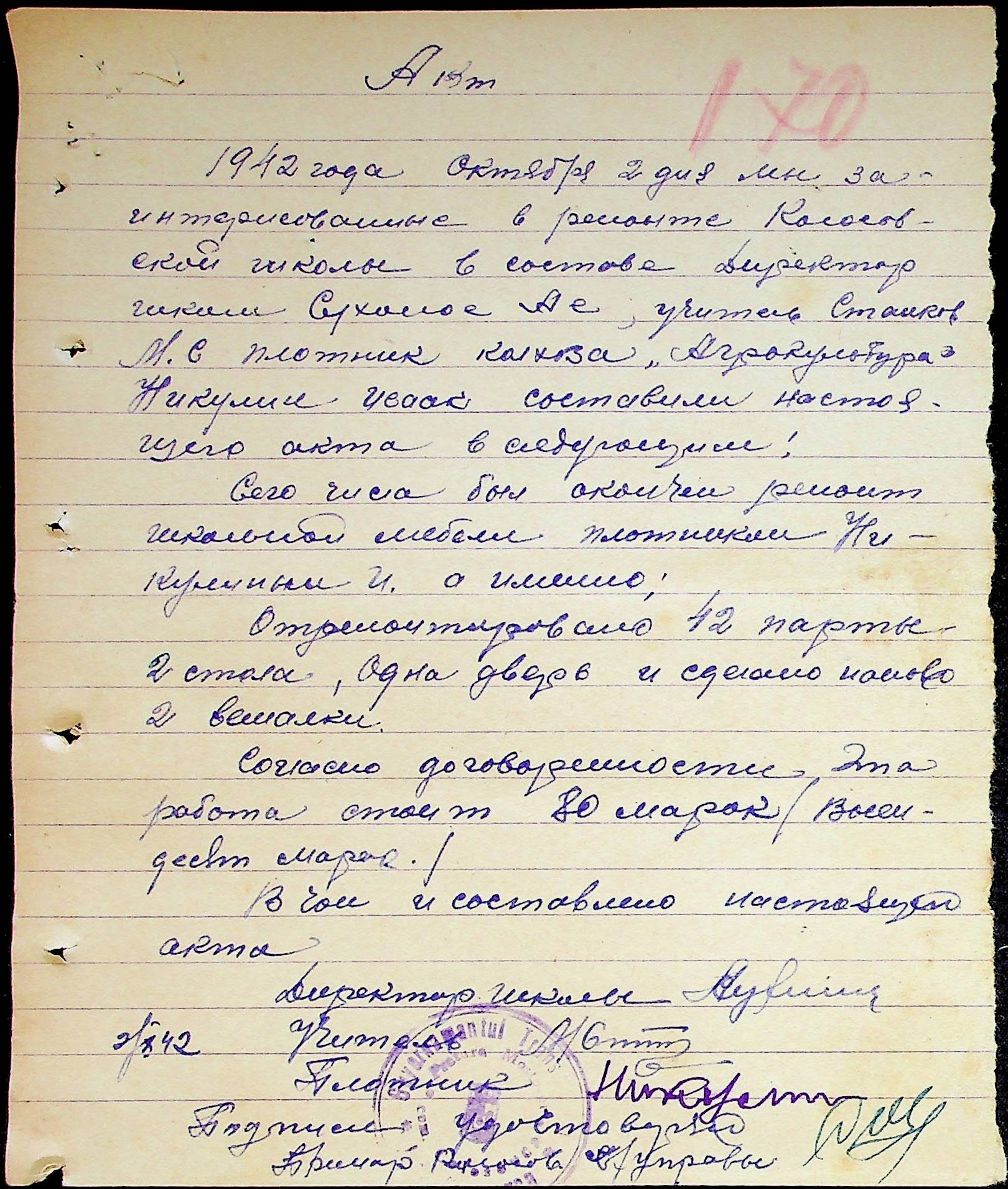 • • • • Справа № 59 Відомості на виплату зарплати службовцям установ Мостівського району за 1942 рік