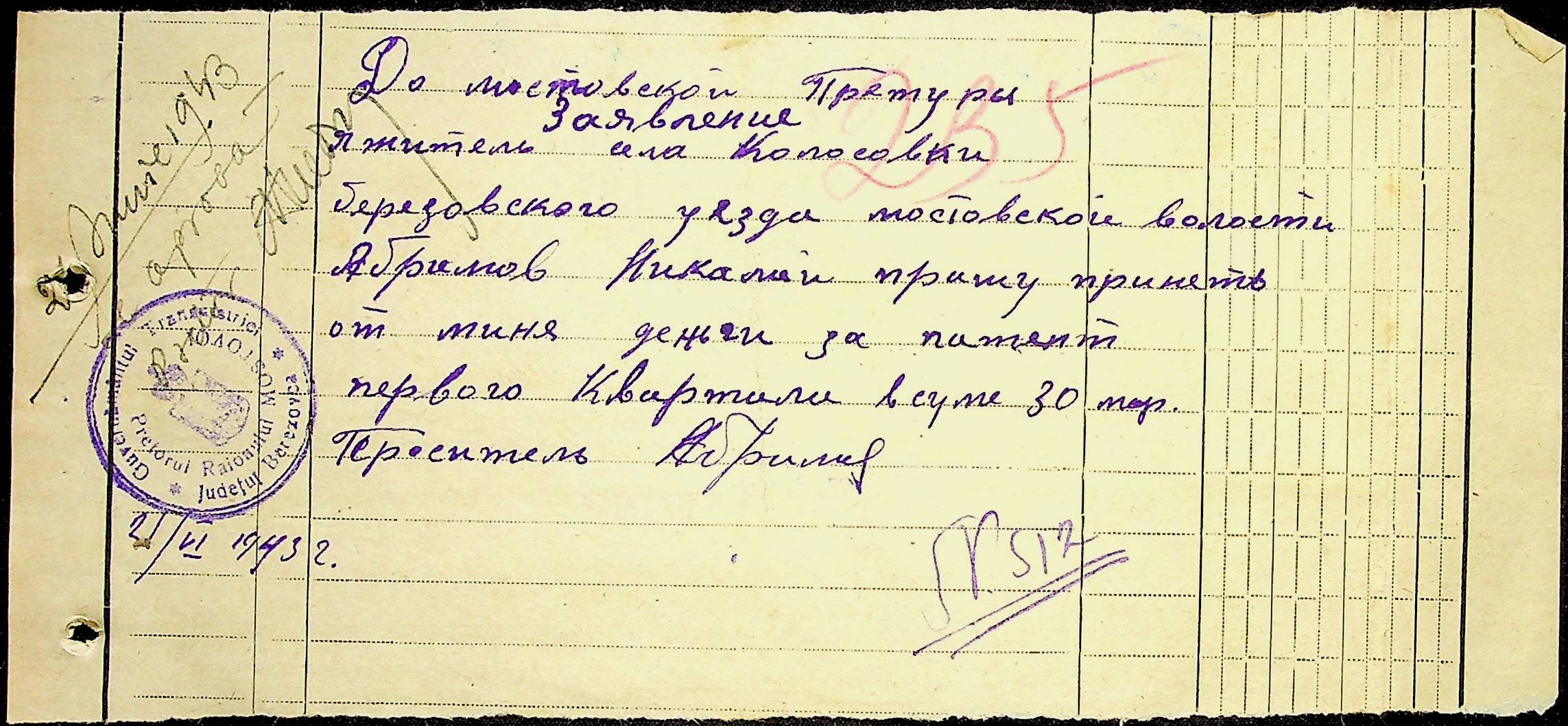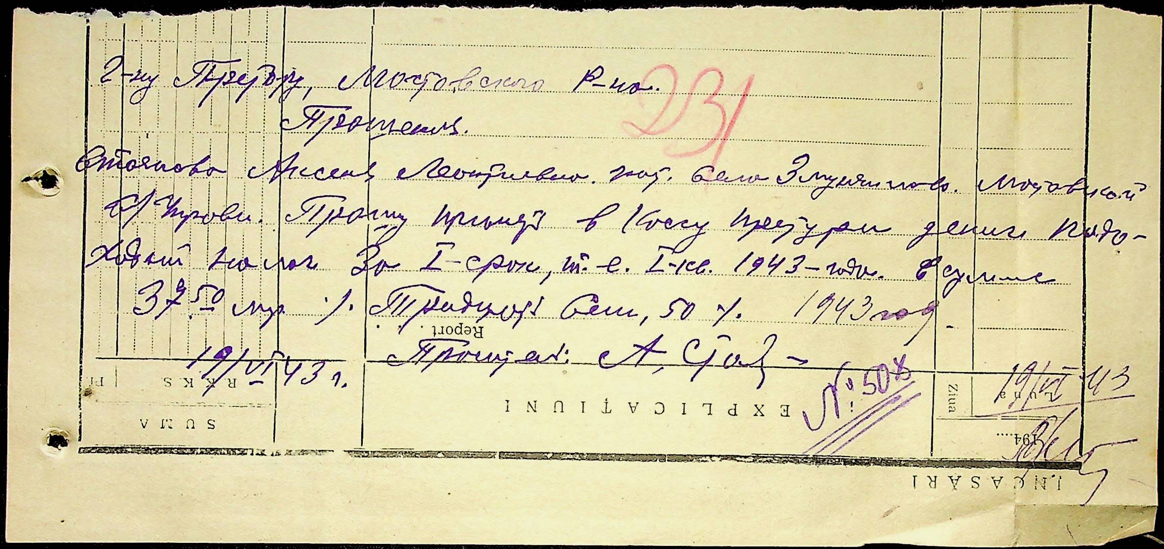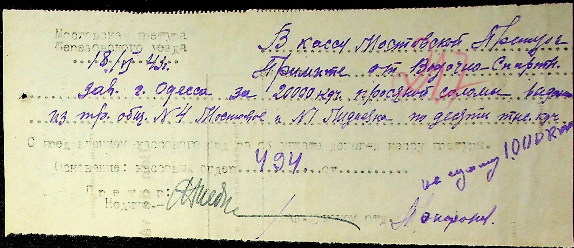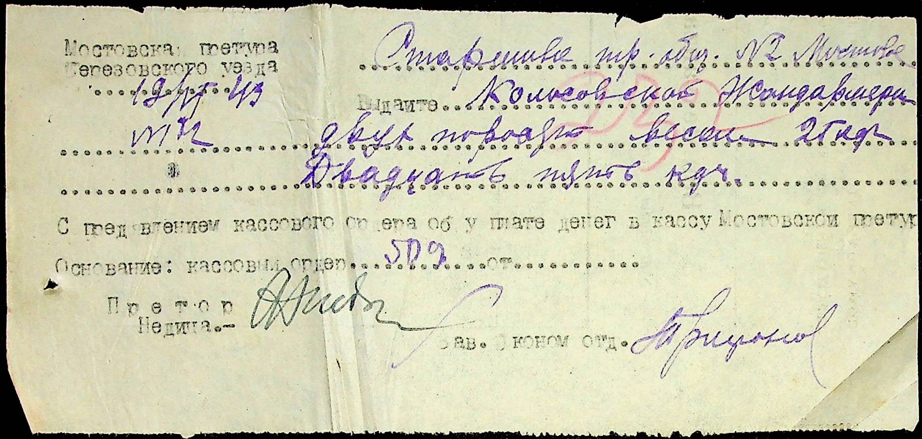 • • • • Справа № 75 Відомості на видачу зарплати службовцям і робітникам установ та підприємств за 1943 рік. Касові журнали, ордери на оплату претури Мостівського району. Листування з фінансових питань за 1943 рік