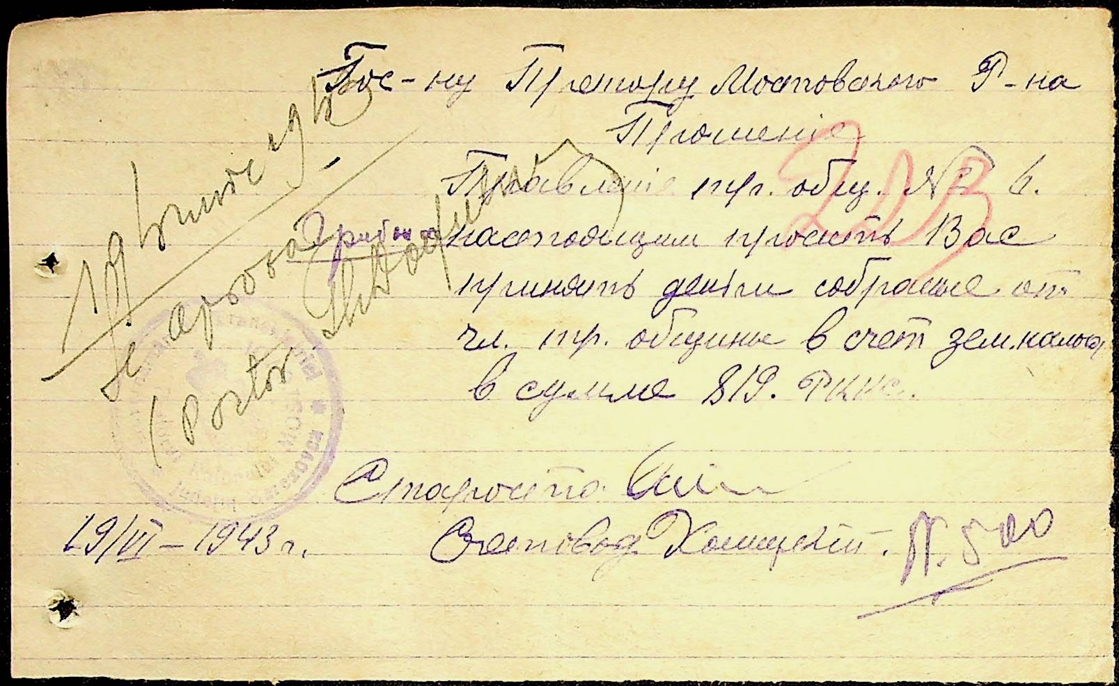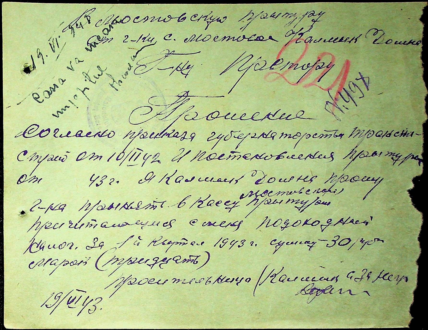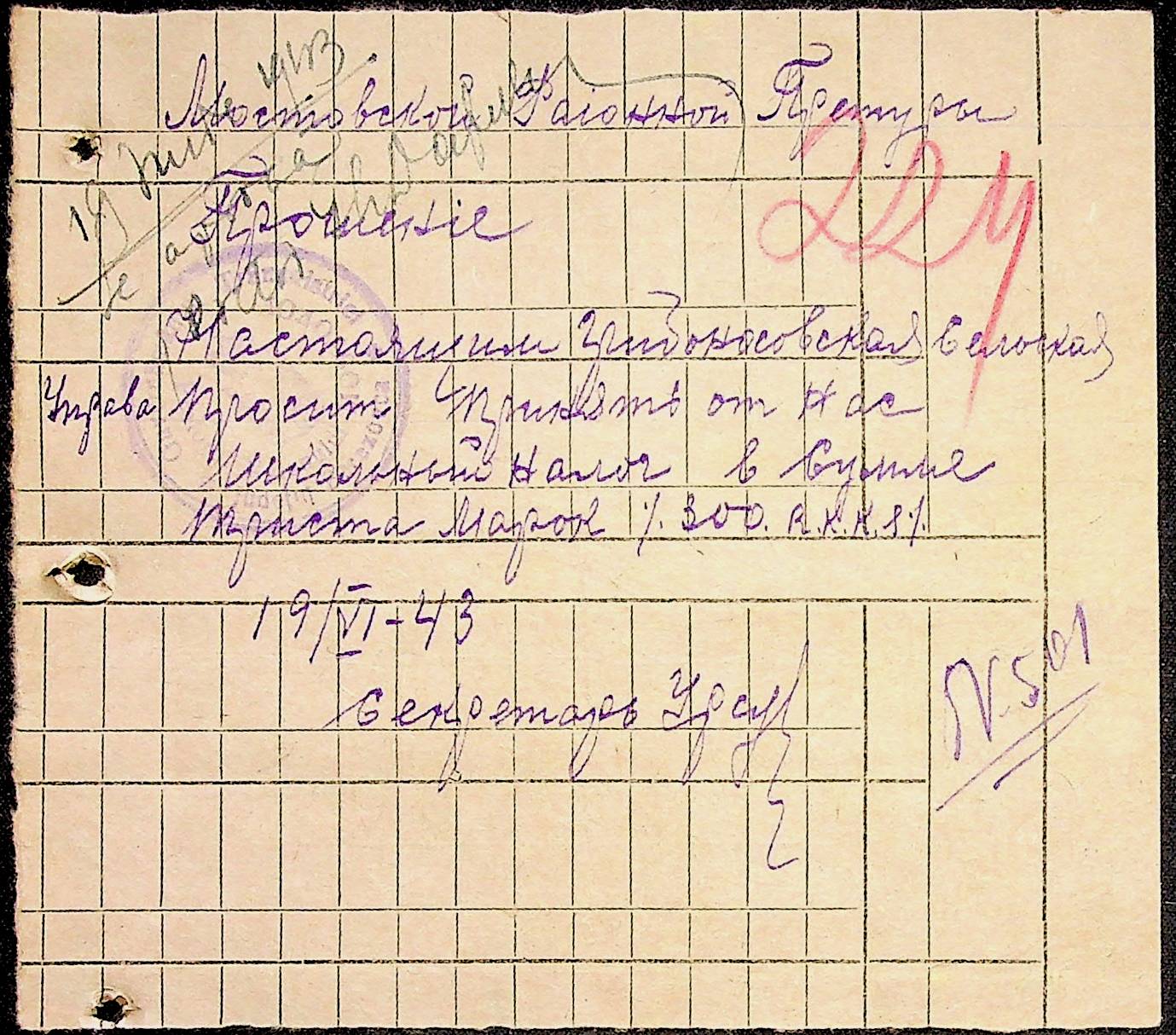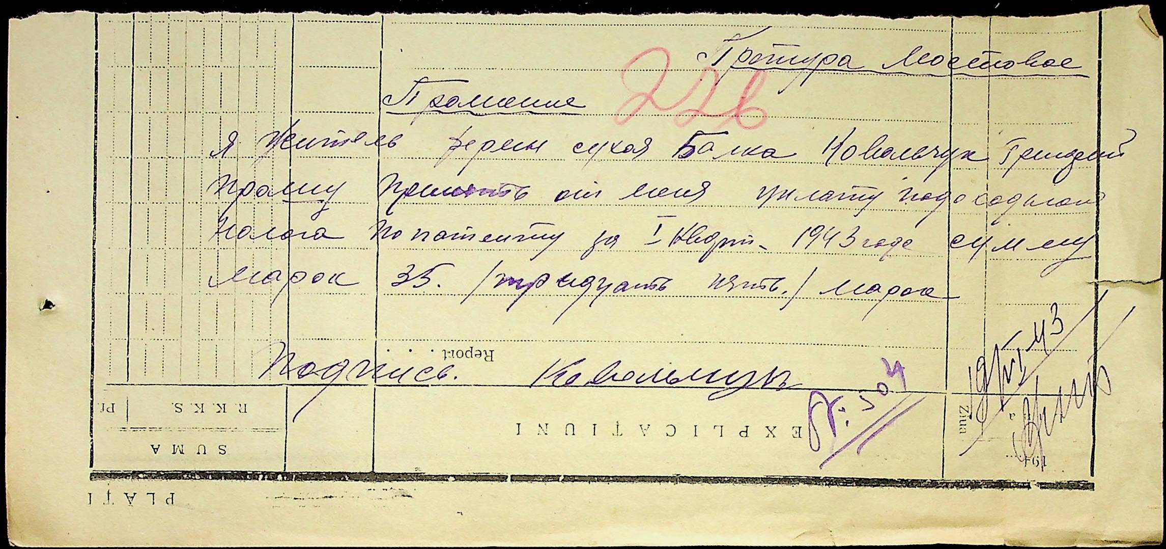 • • • • Справа № 75 Відомості на видачу зарплати службовцям і робітникам установ та підприємств за 1943 рік. Касові журнали, ордери на оплату претури Мостівського району. Листування з фінансових питань за 1943 рік