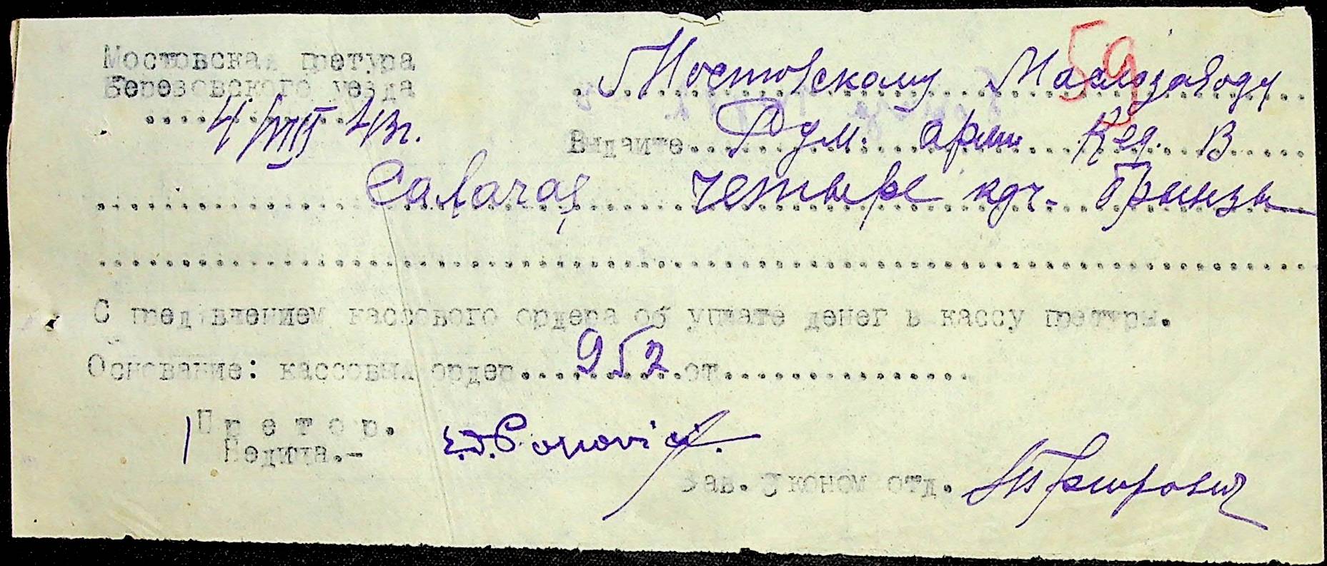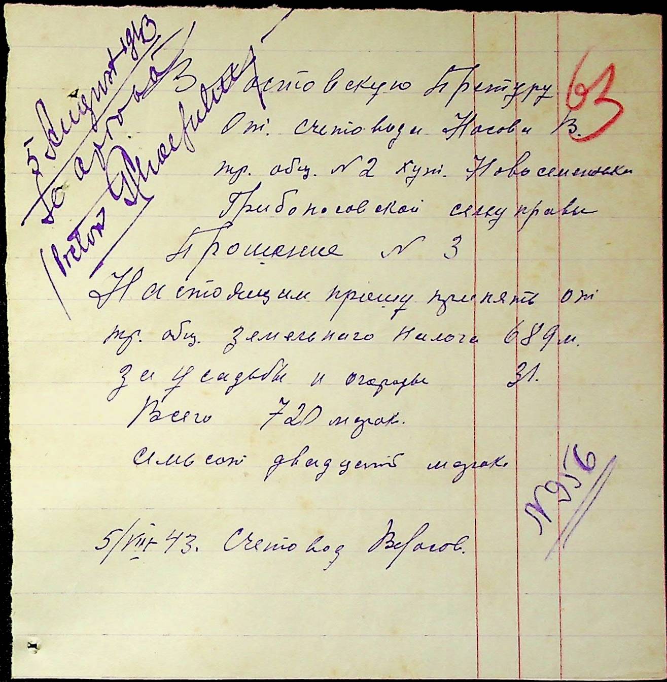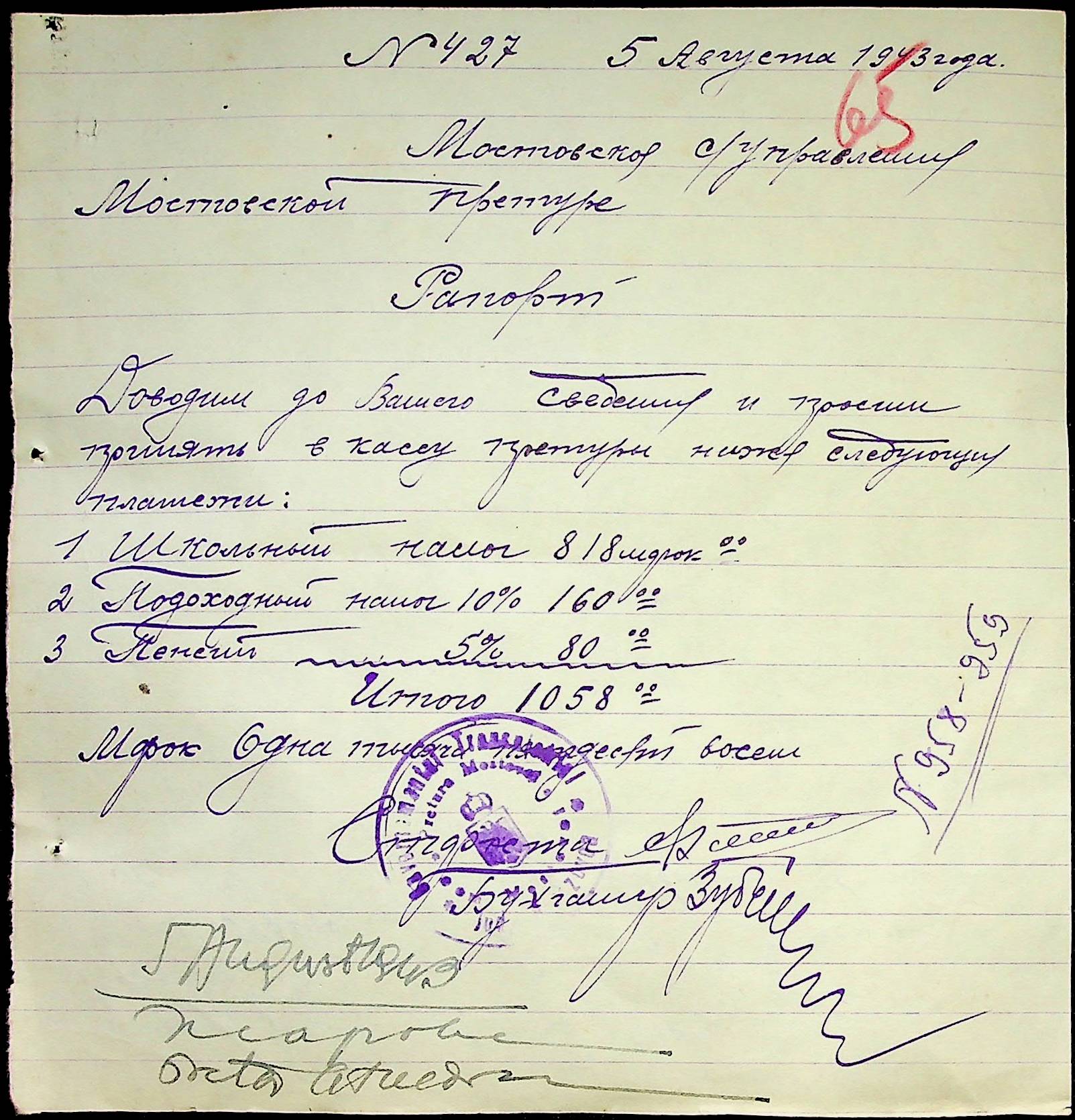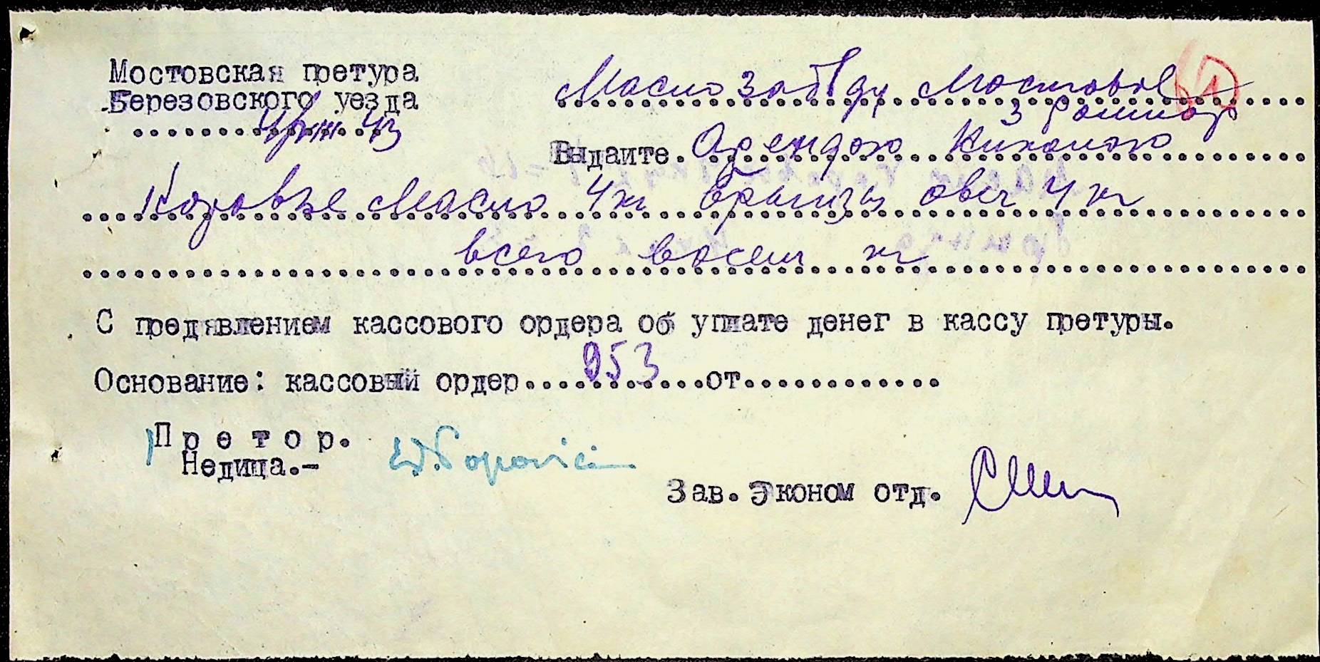 • • • • Справа № 79 Відомості на видачу зарплати службовцям і робітникам установ та підприємств за 1943 рік. Касові журнали, ордери на оплату претури Мостівського району. Листування з фінансових питань за 1943 рік