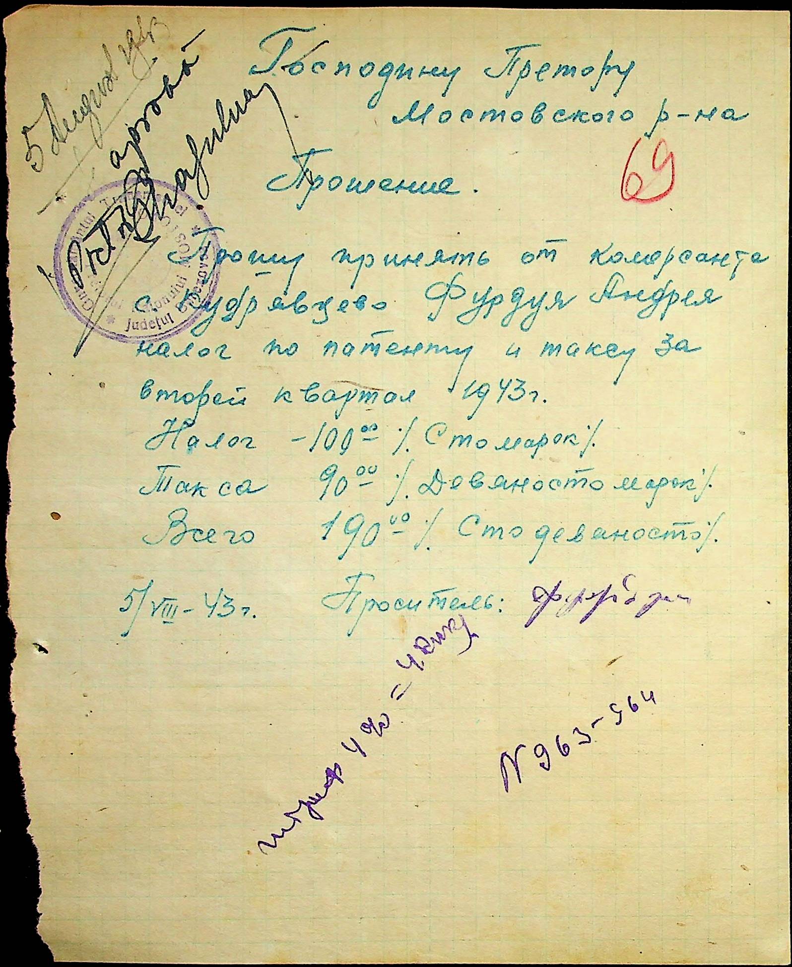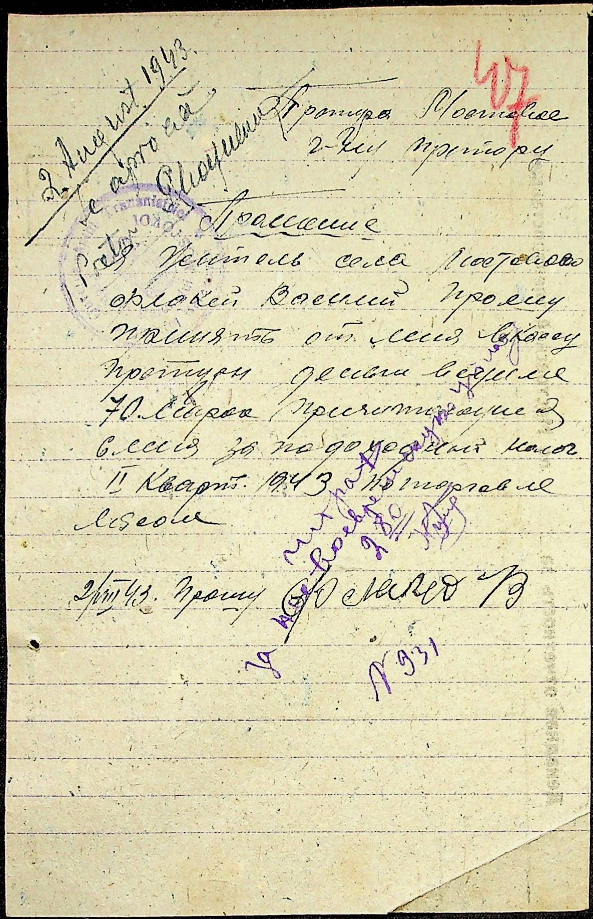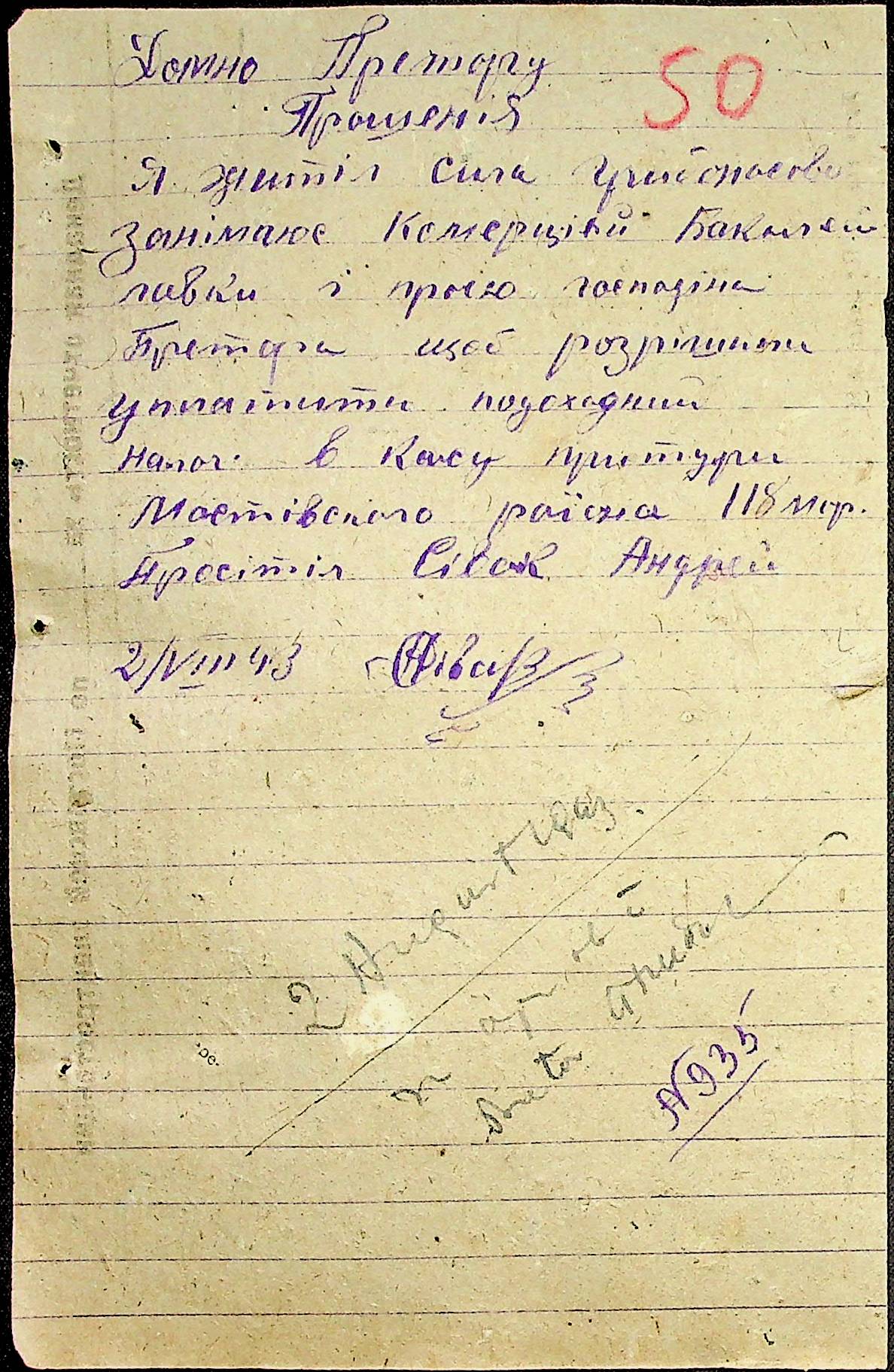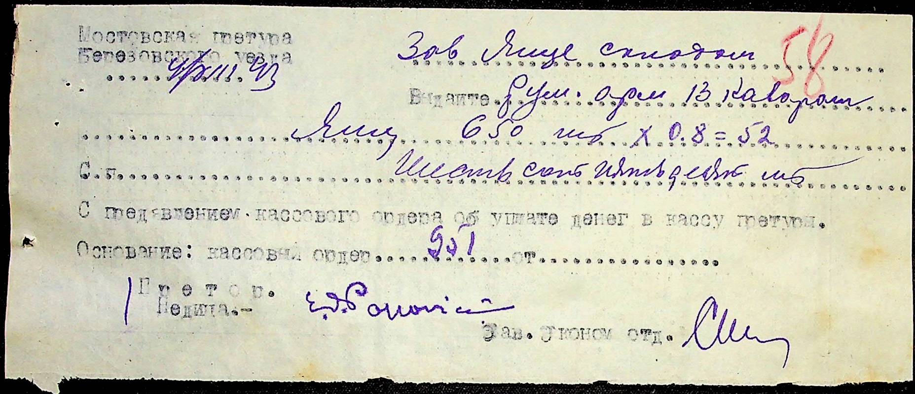 • • • • Справа № 79 Відомості на видачу зарплати службовцям і робітникам установ та підприємств за 1943 рік. Касові журнали, ордери на оплату претури Мостівського району. Листування з фінансових питань за 1943 рік