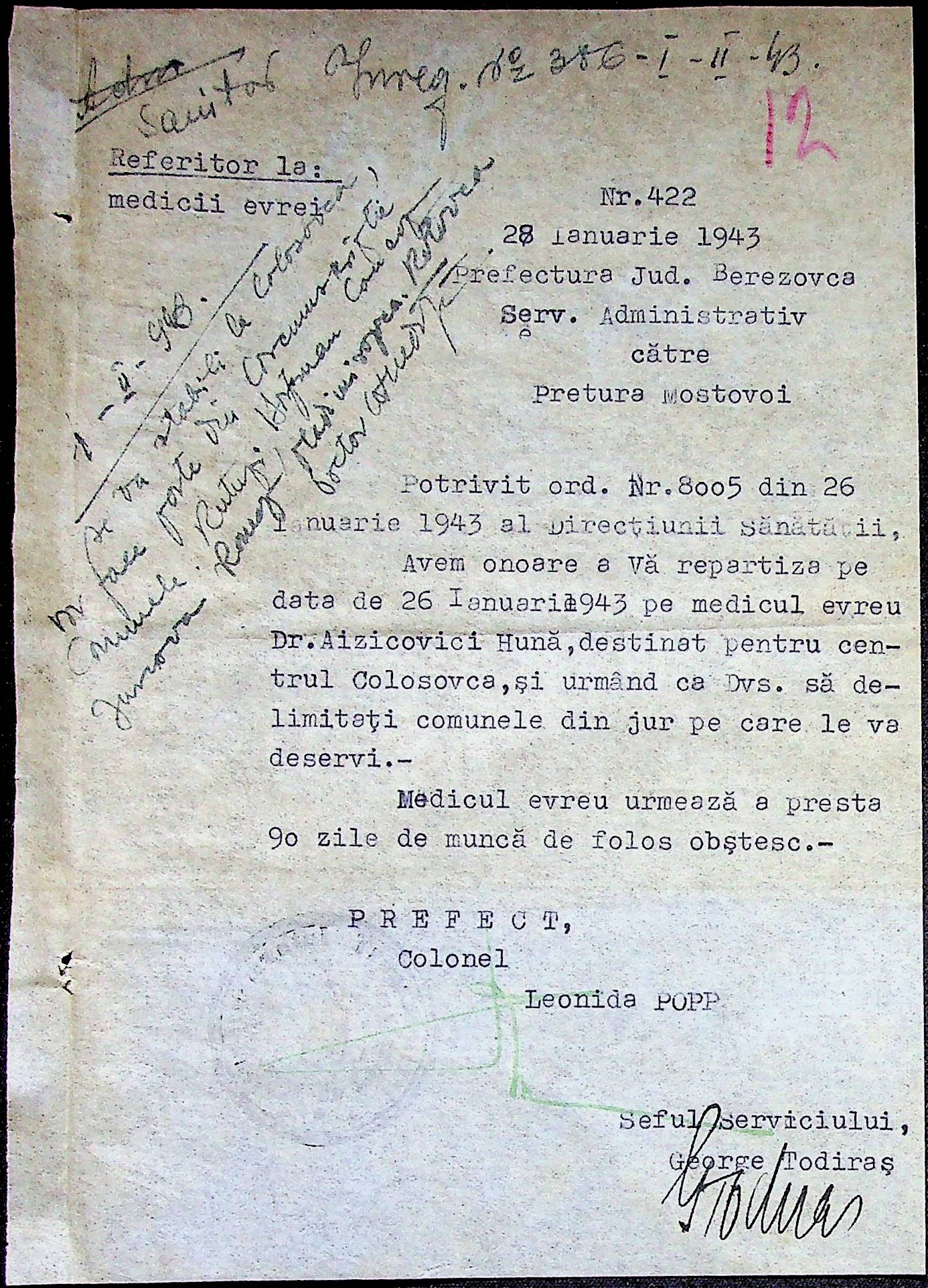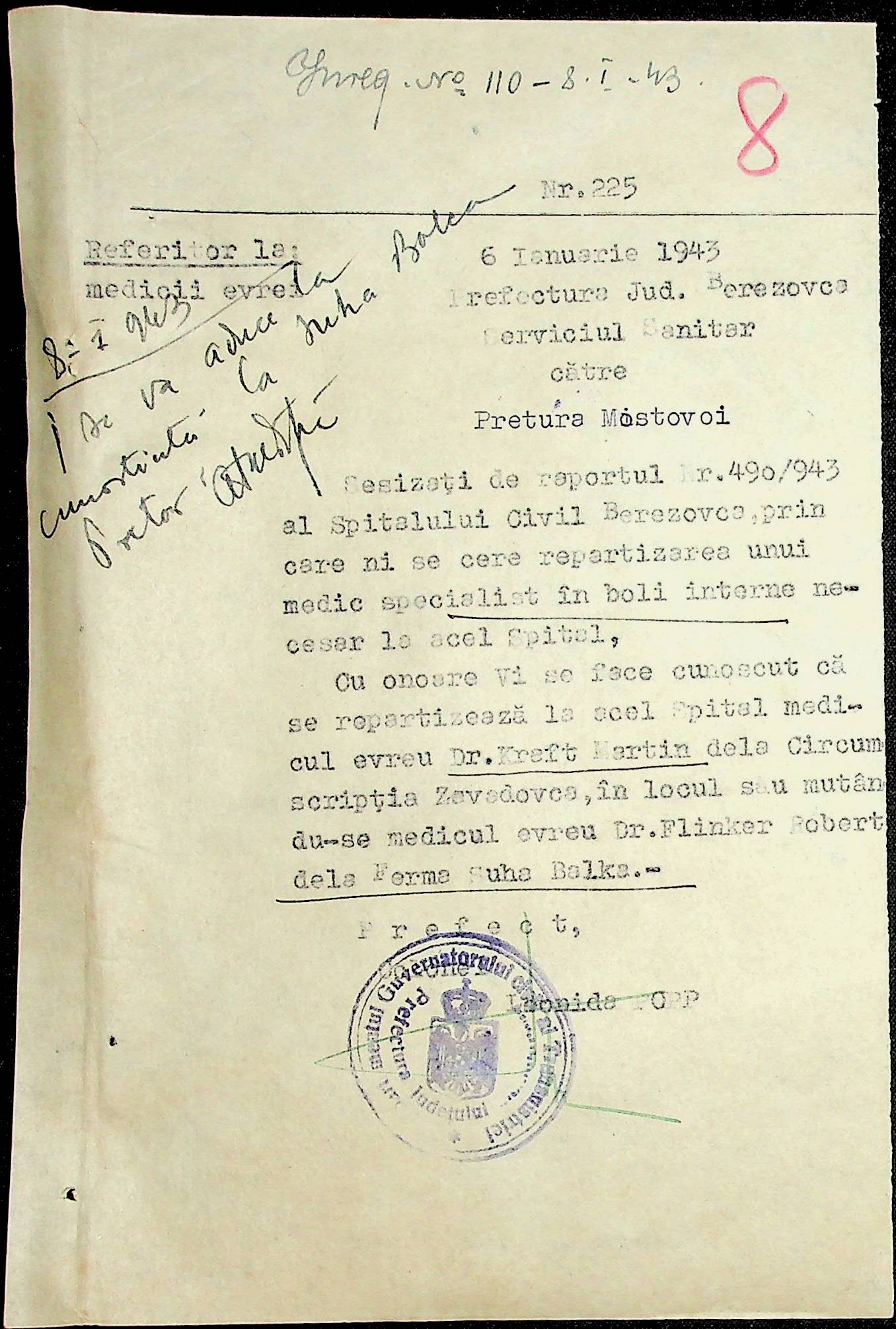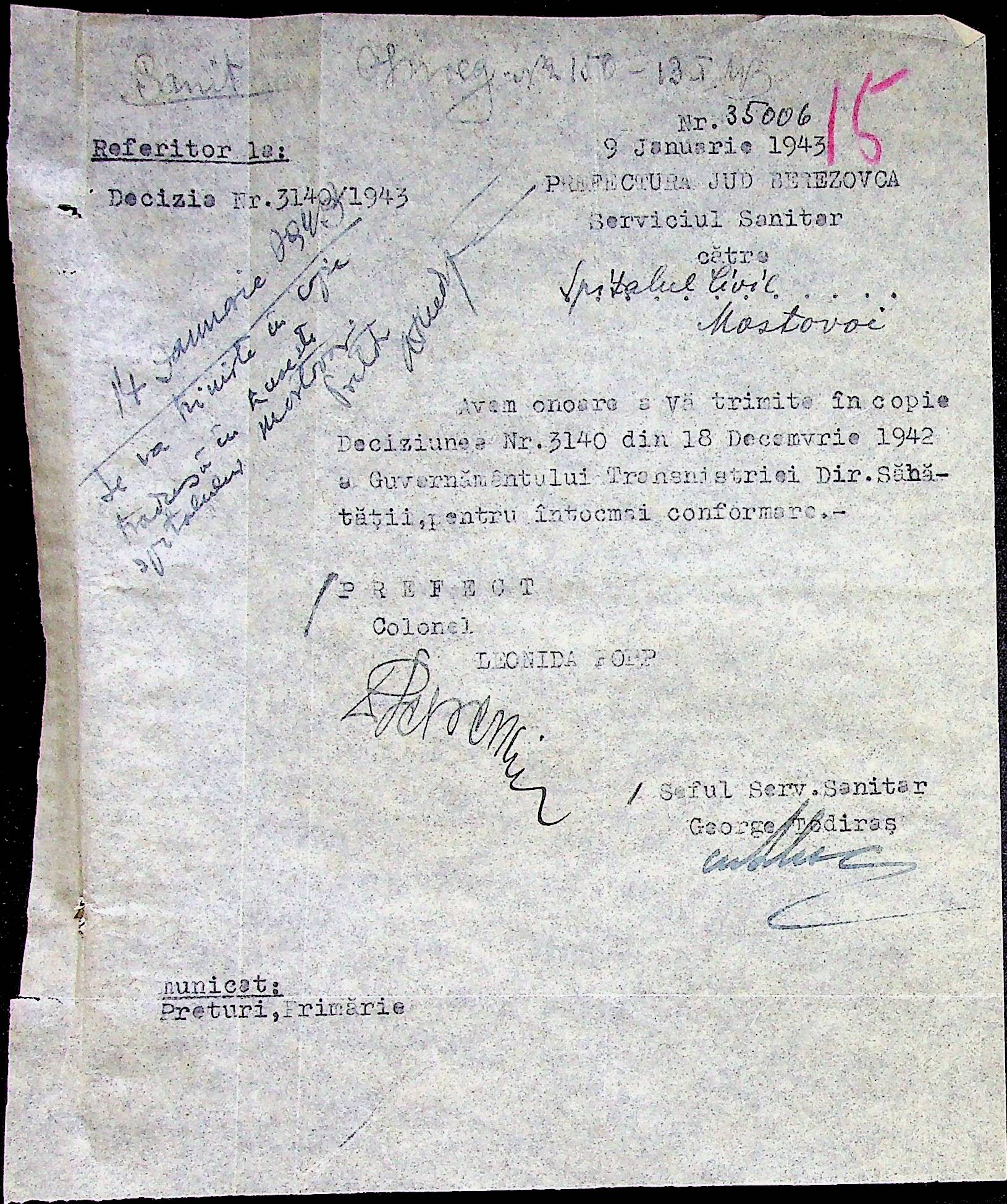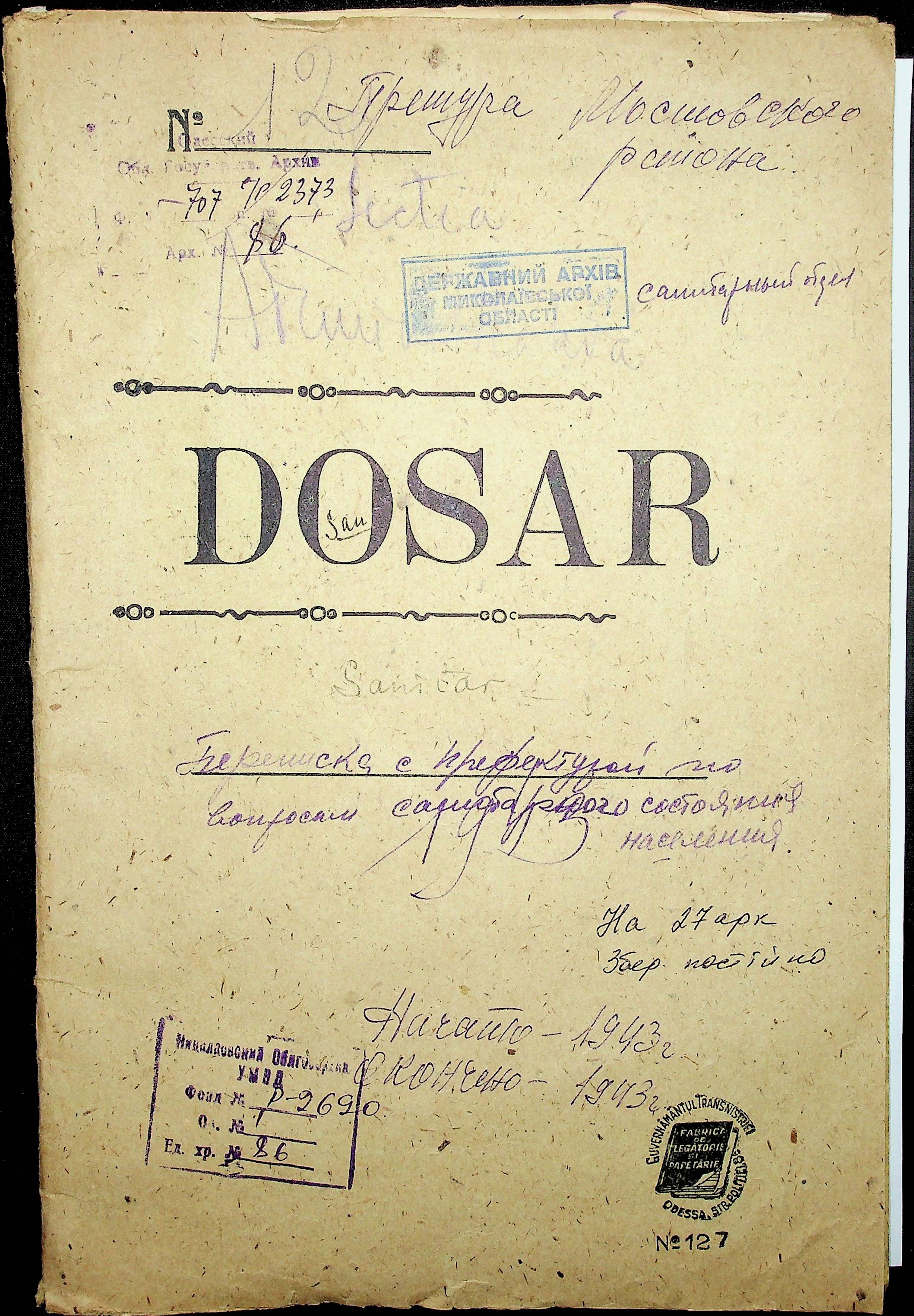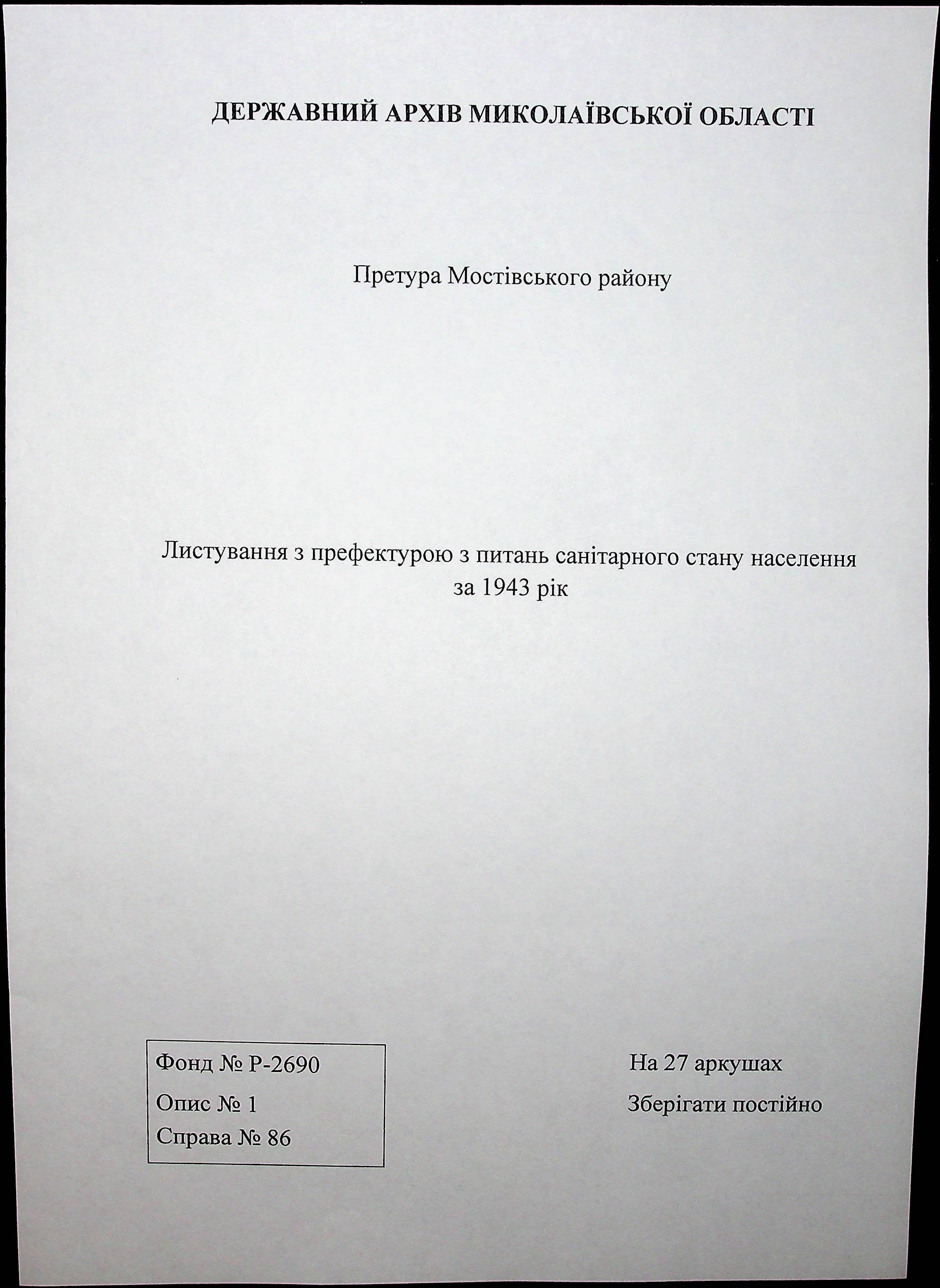 • • • • Справа № 86 Листування з префектурою з питань санітарного стану населення за 1943 рік