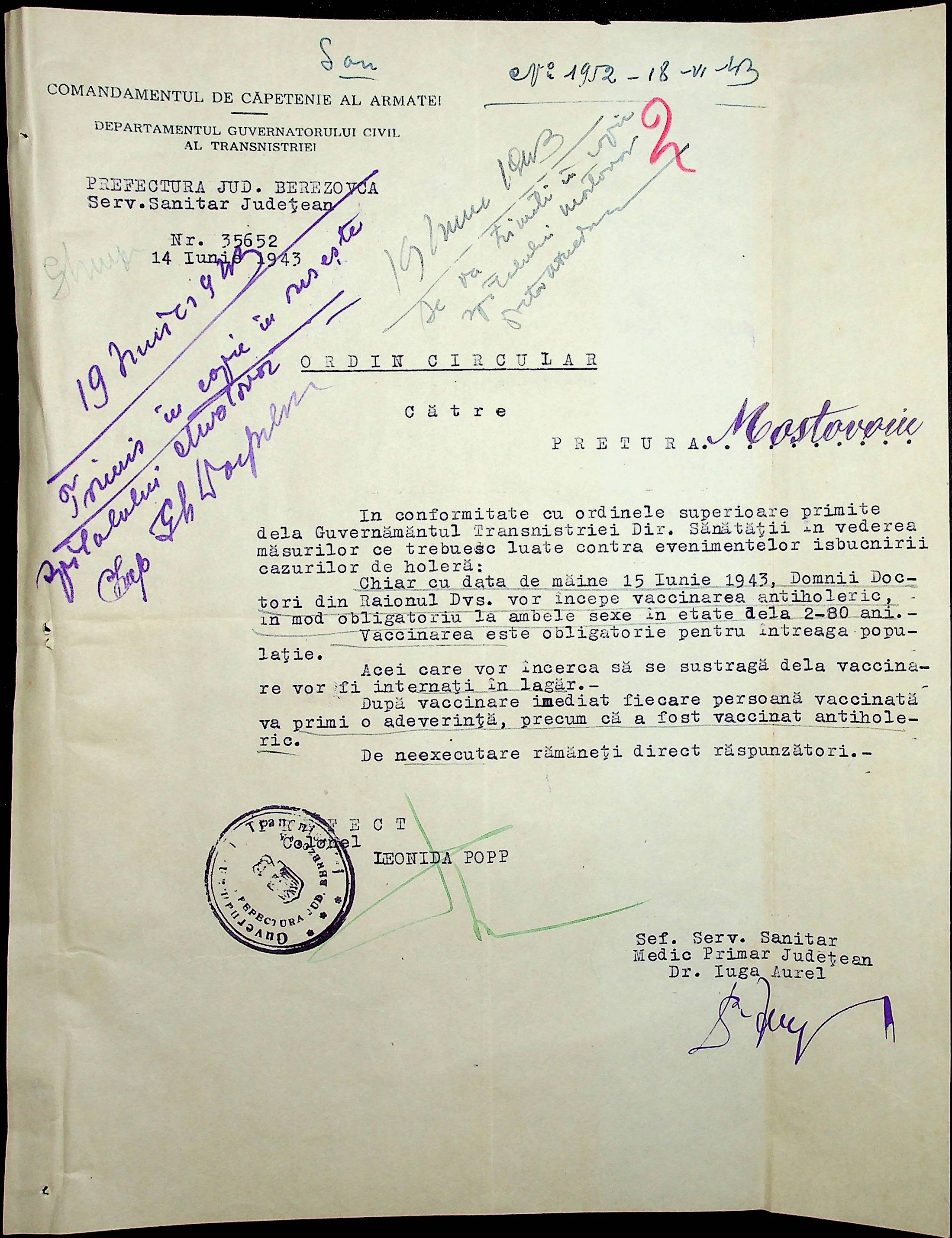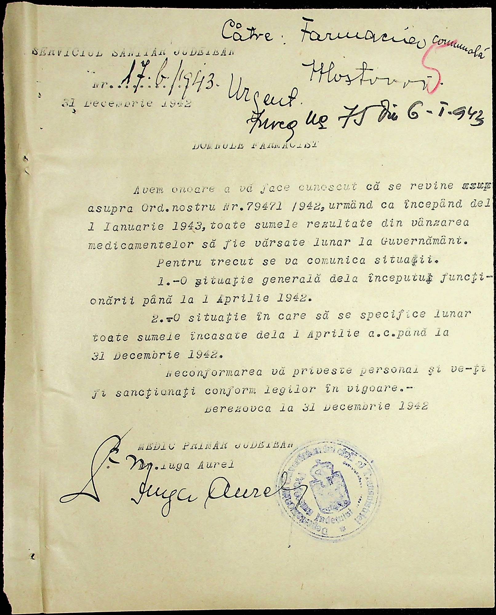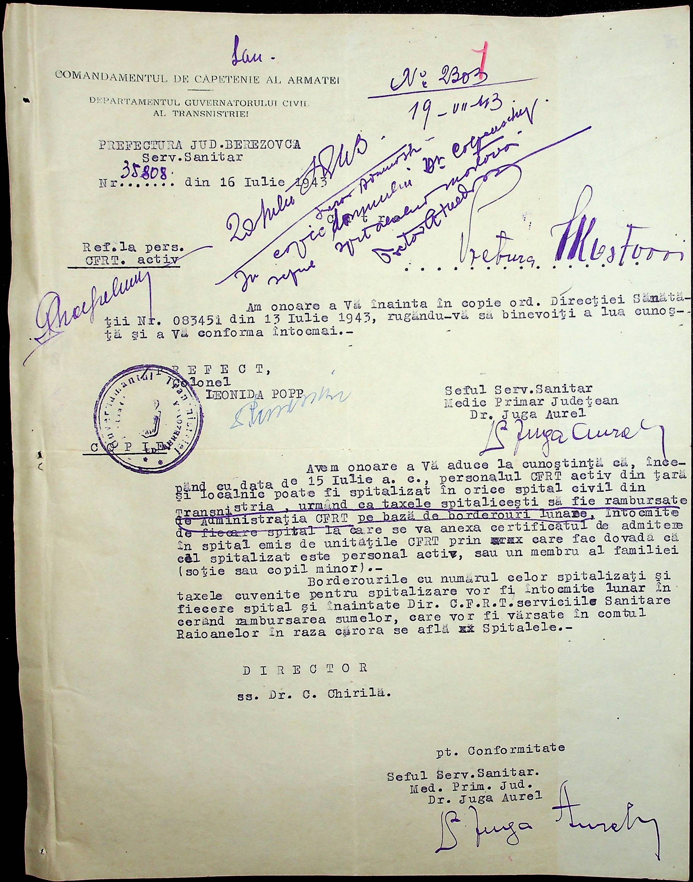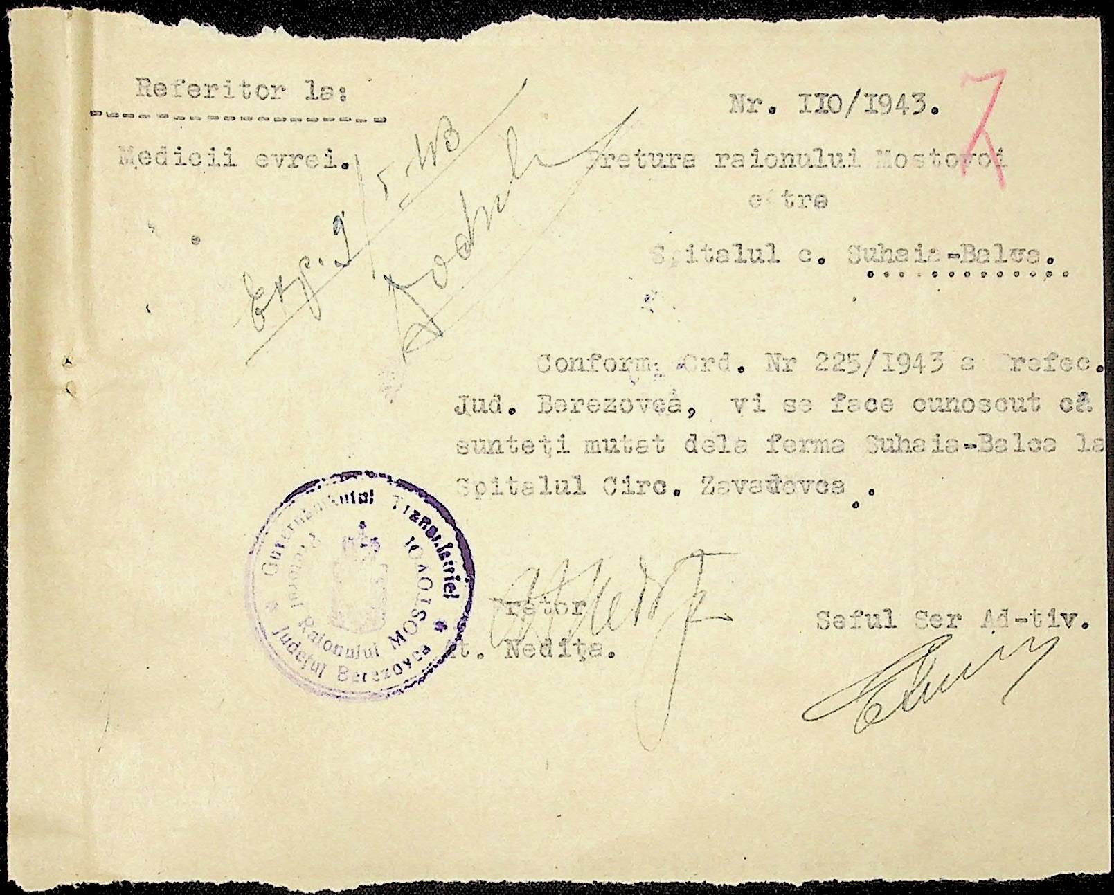• • • • Справа № 86 Листування з префектурою з питань санітарного стану населення за 1943 рік