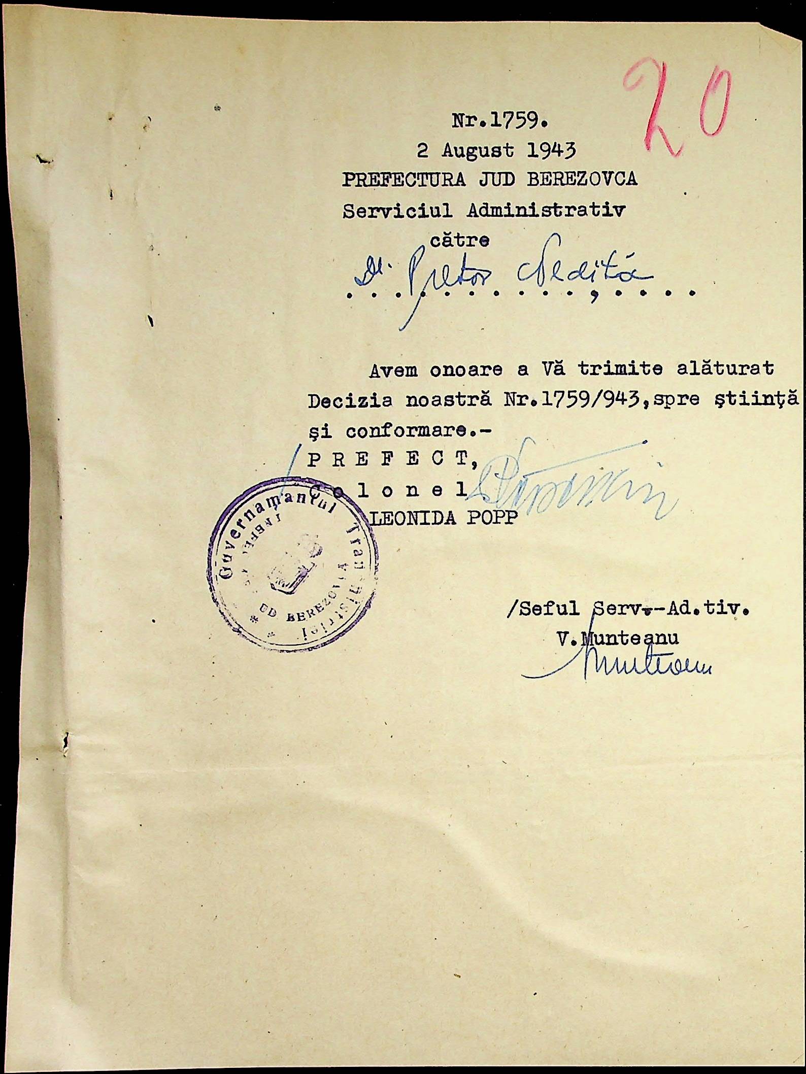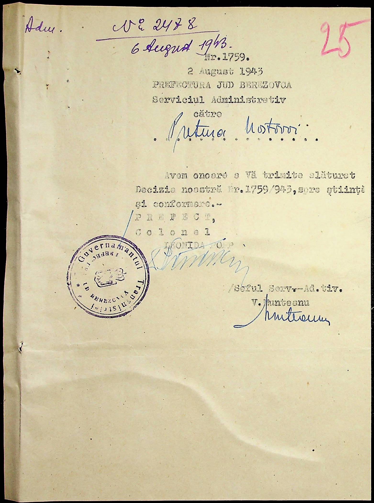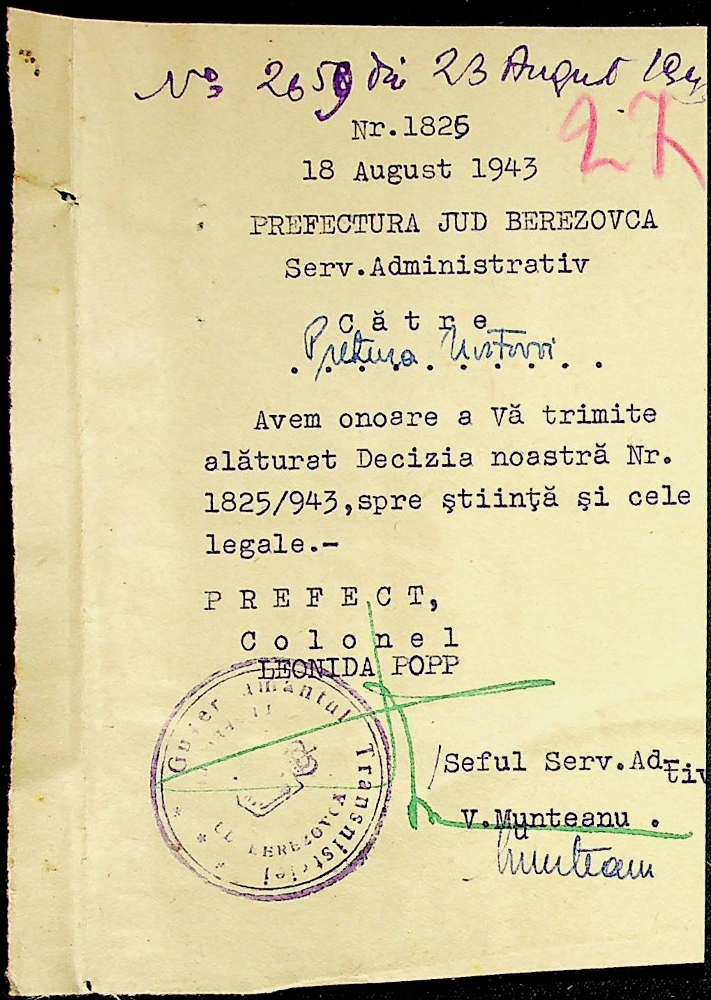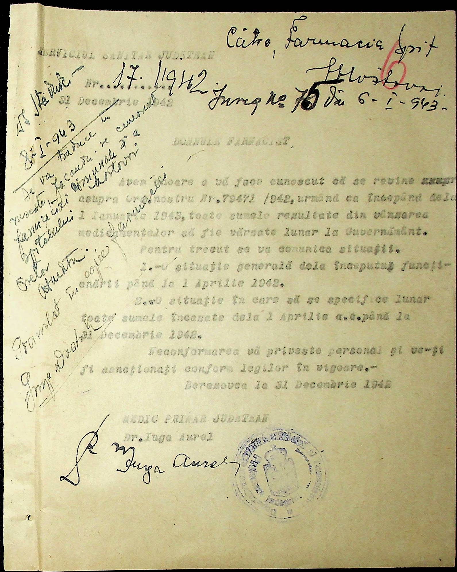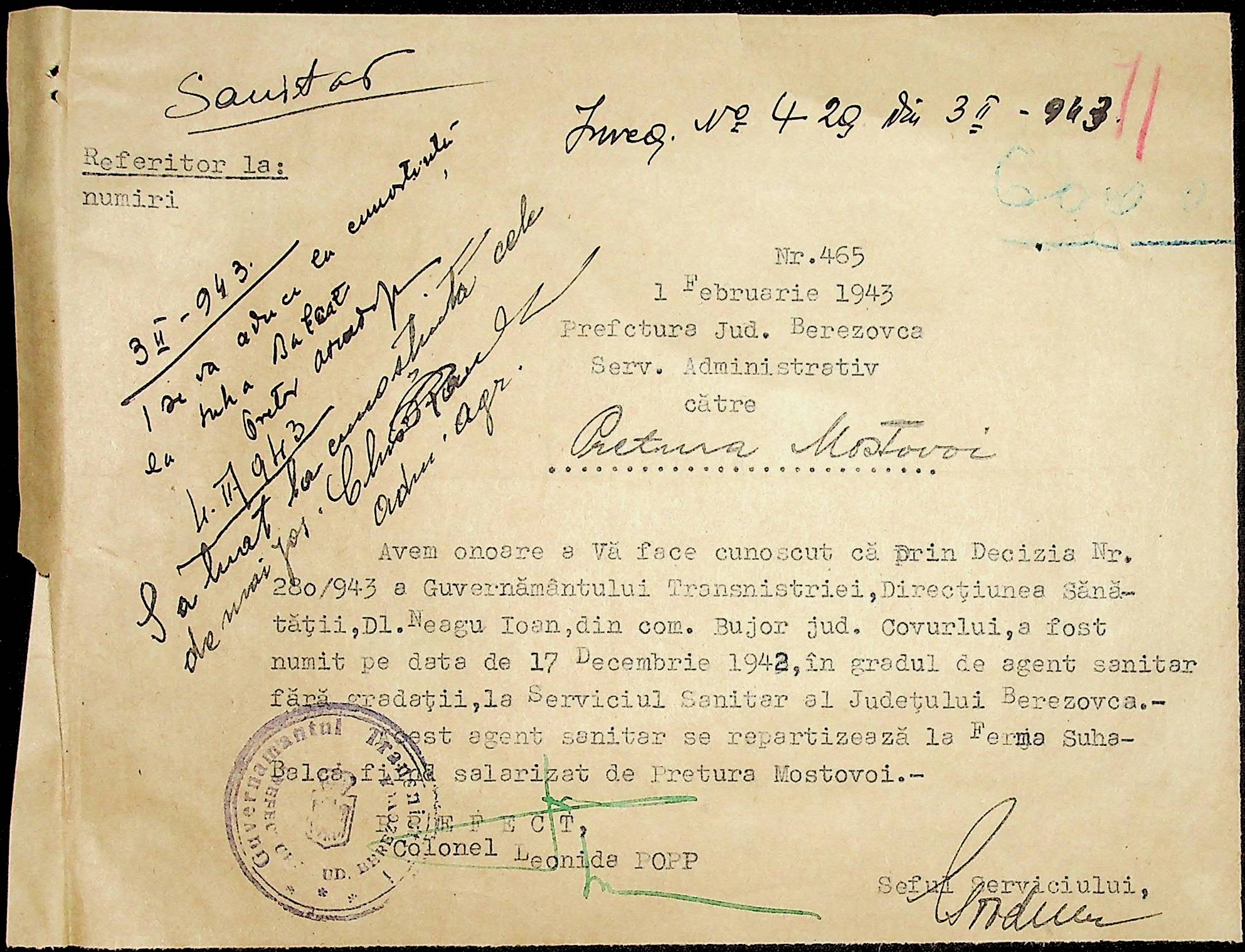 • • • • Справа № 86 Листування з префектурою з питань санітарного стану населення за 1943 рік