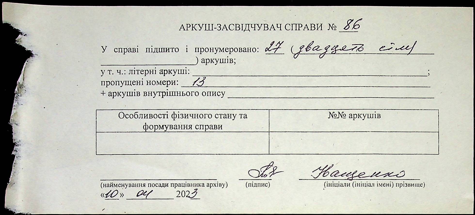 Фонд Н-2690 / Опис 1 / Справа 086