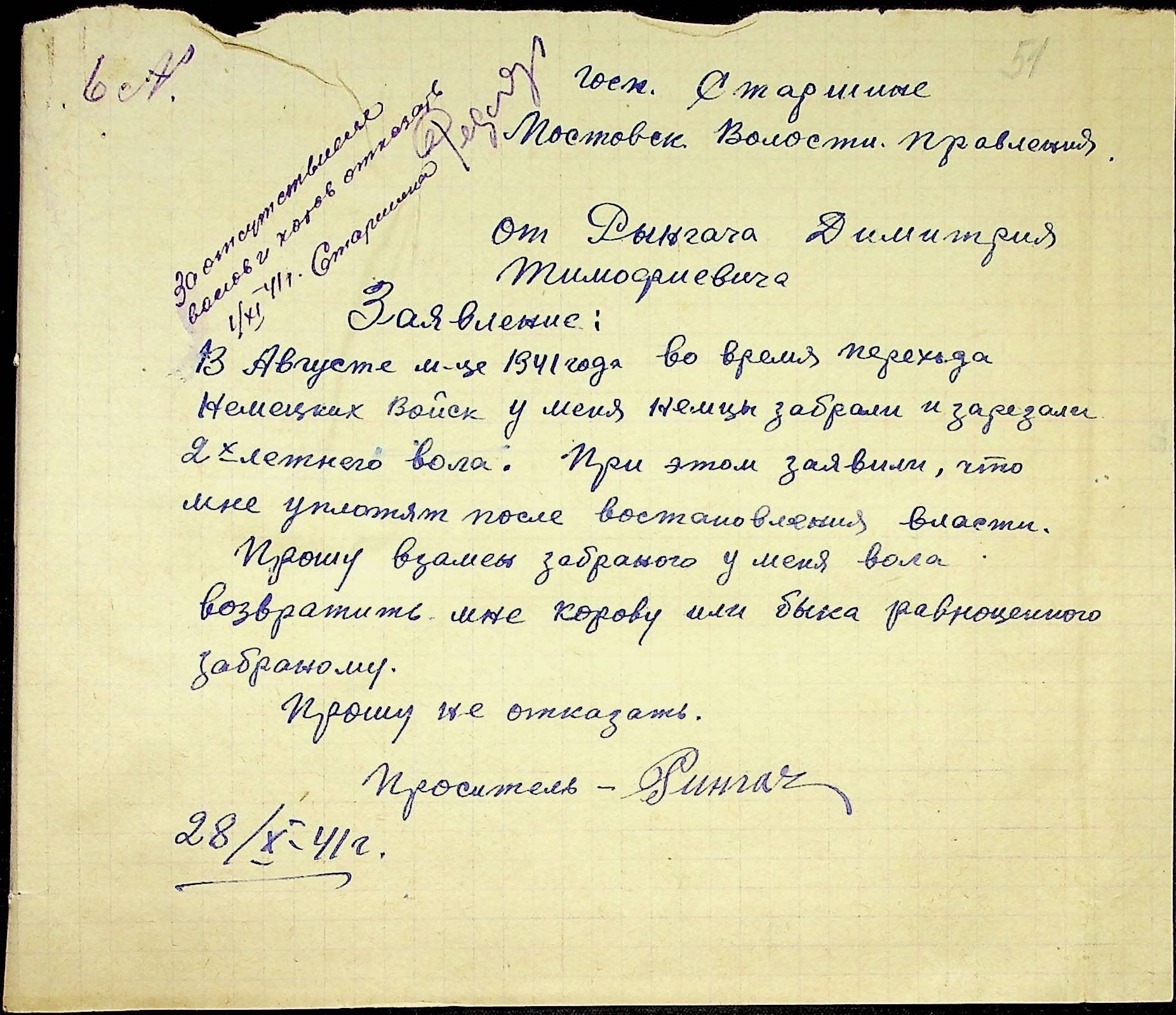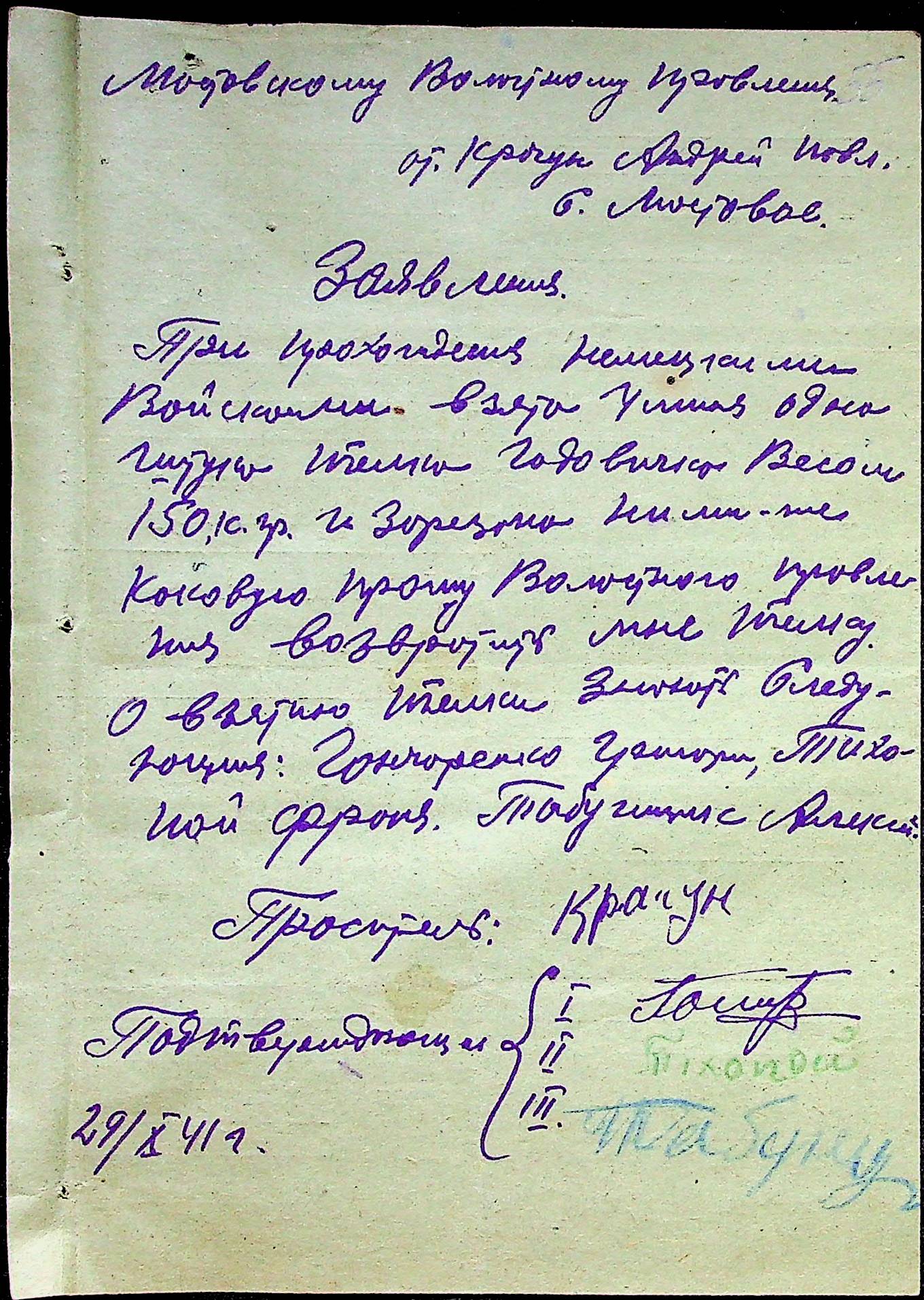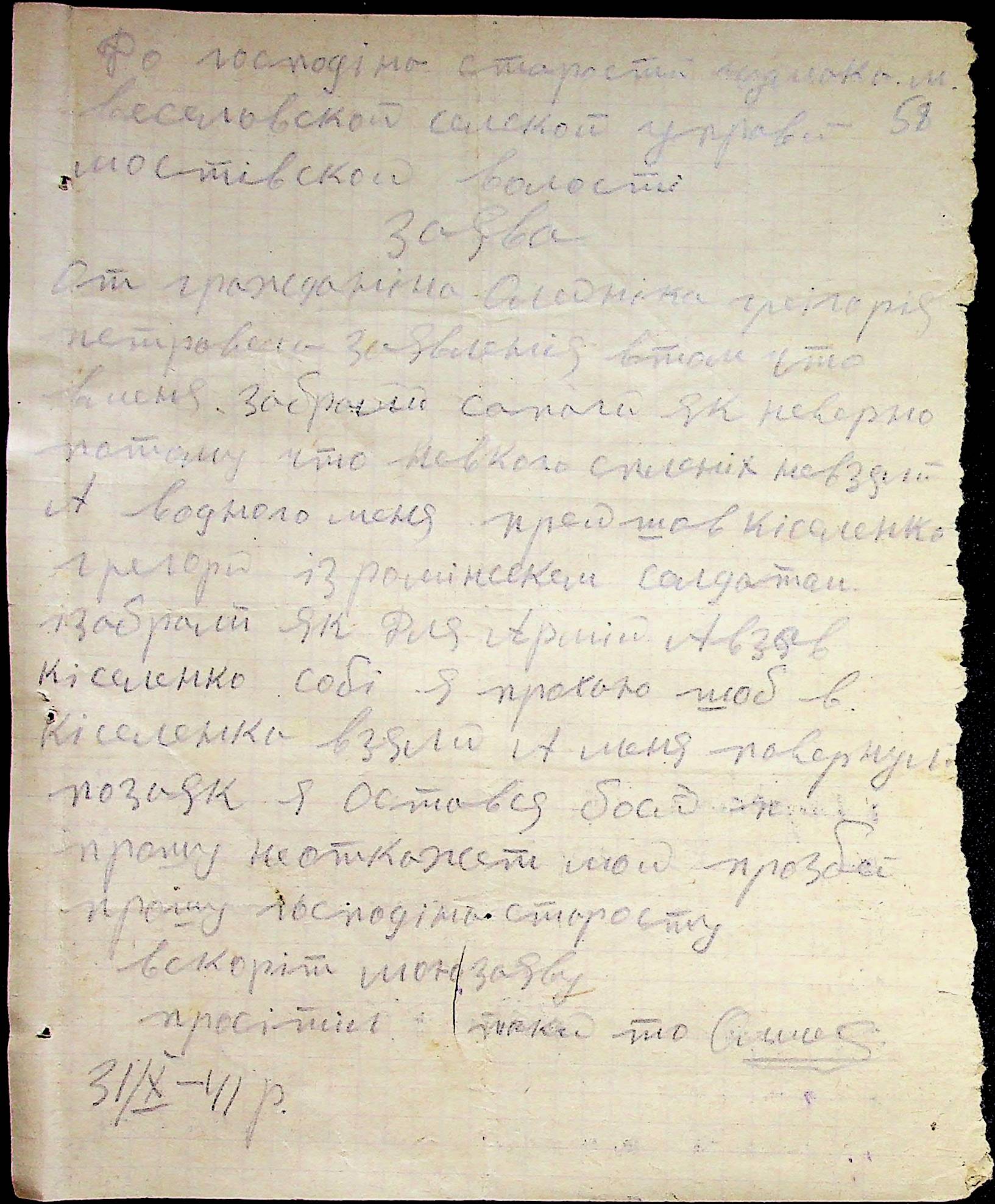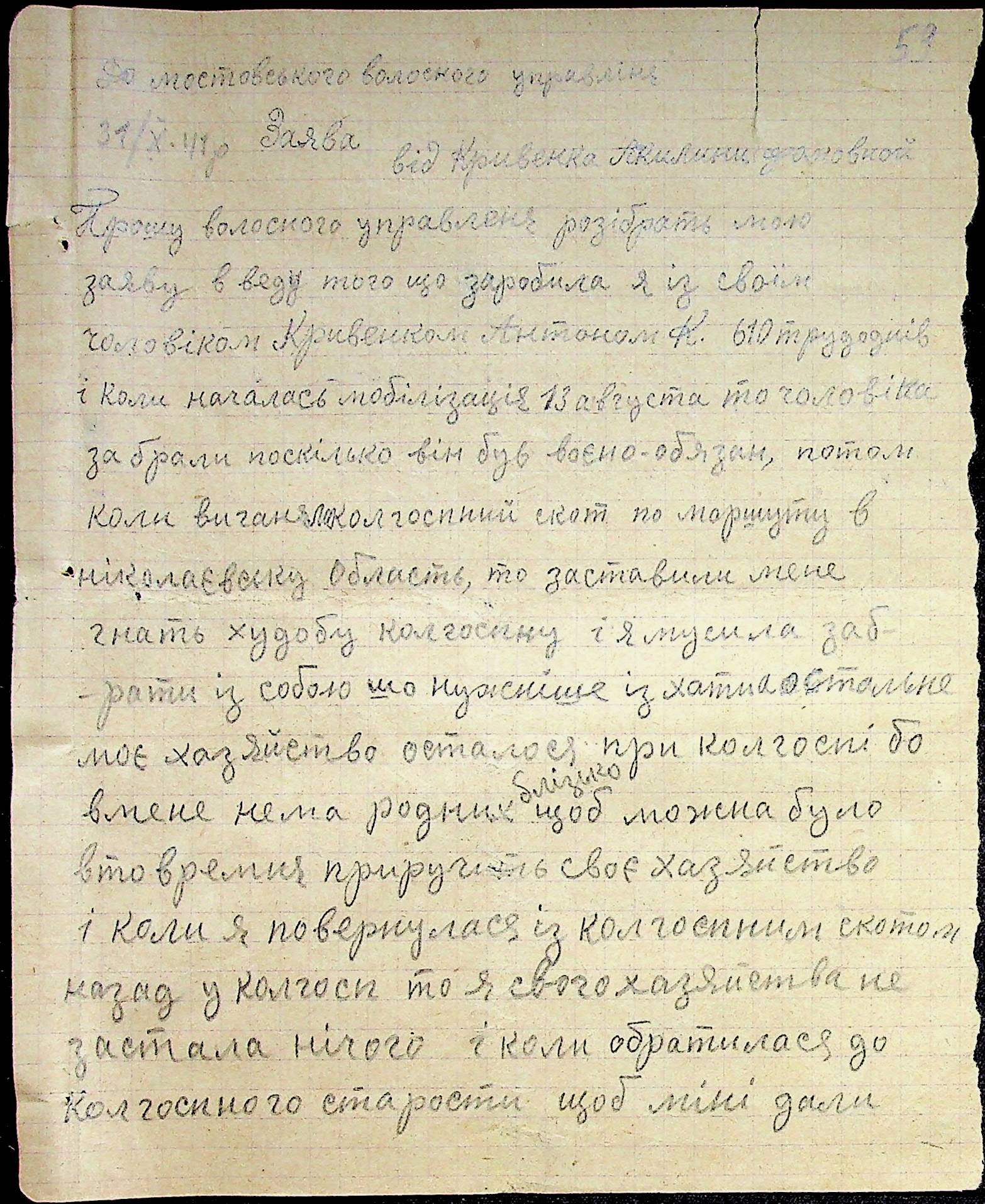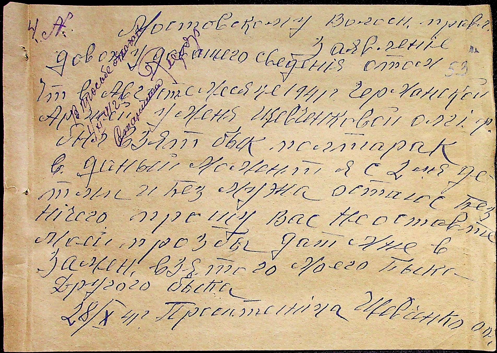 • • • • Справа № 88 Листування з претурою Мостівського району з питань видачі населенню зерна, кукурудзи, проса за 1941 рік