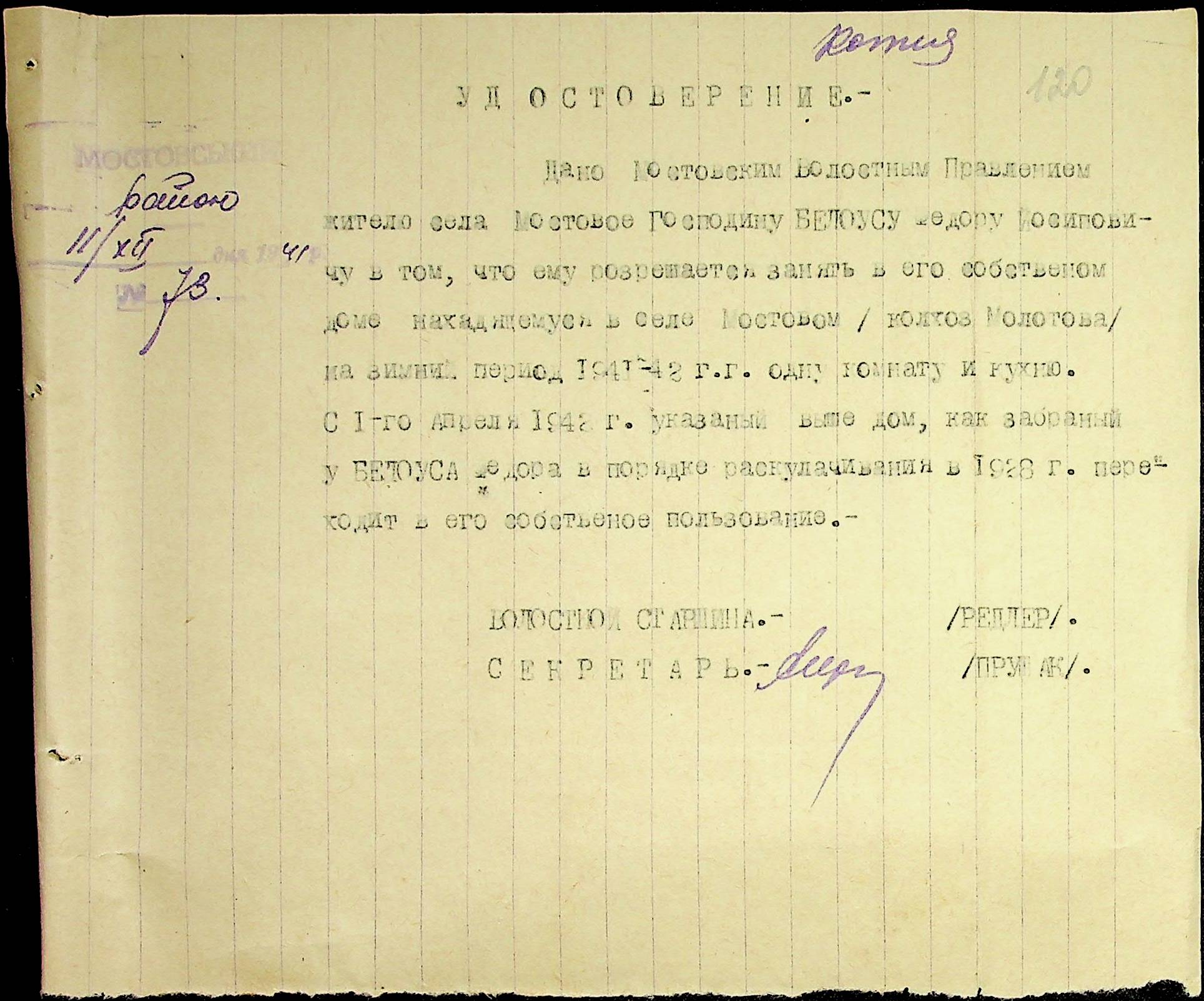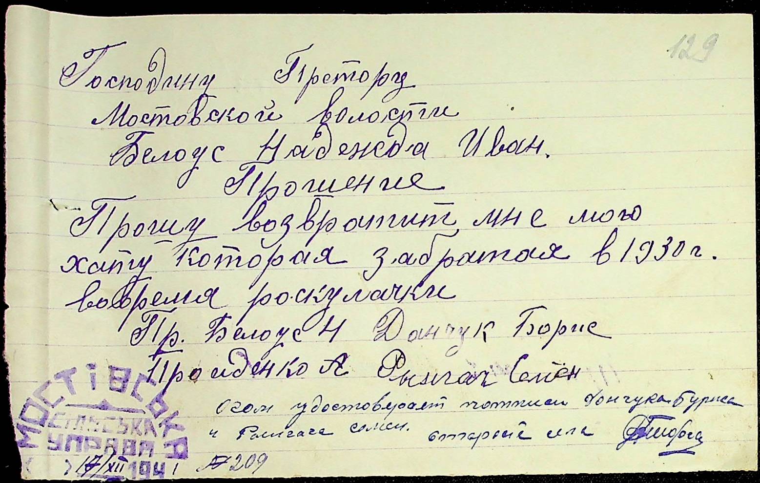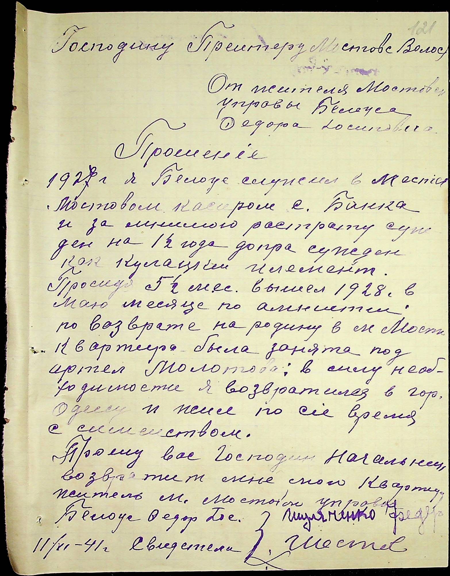 • • • • Справа № 88 Листування з претурою Мостівського району з питань видачі населенню зерна, кукурудзи, проса за 1941 рік