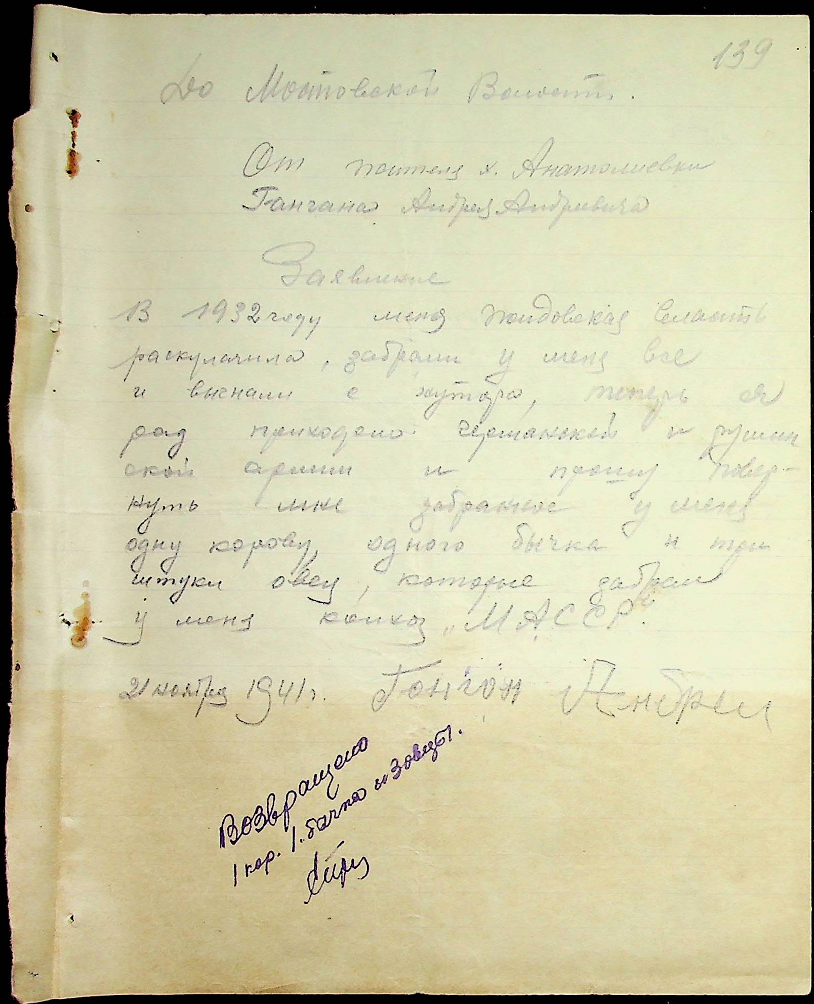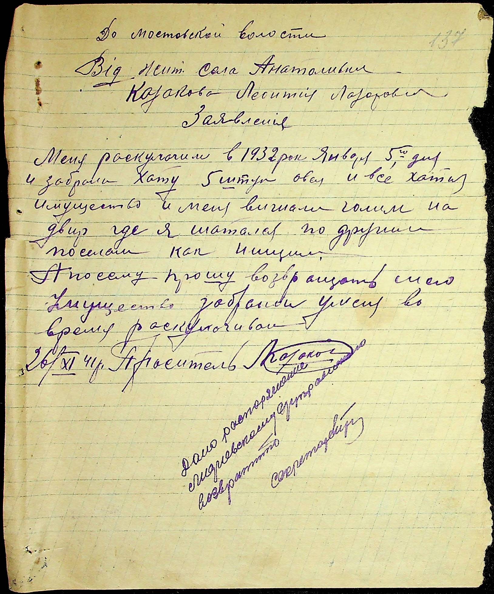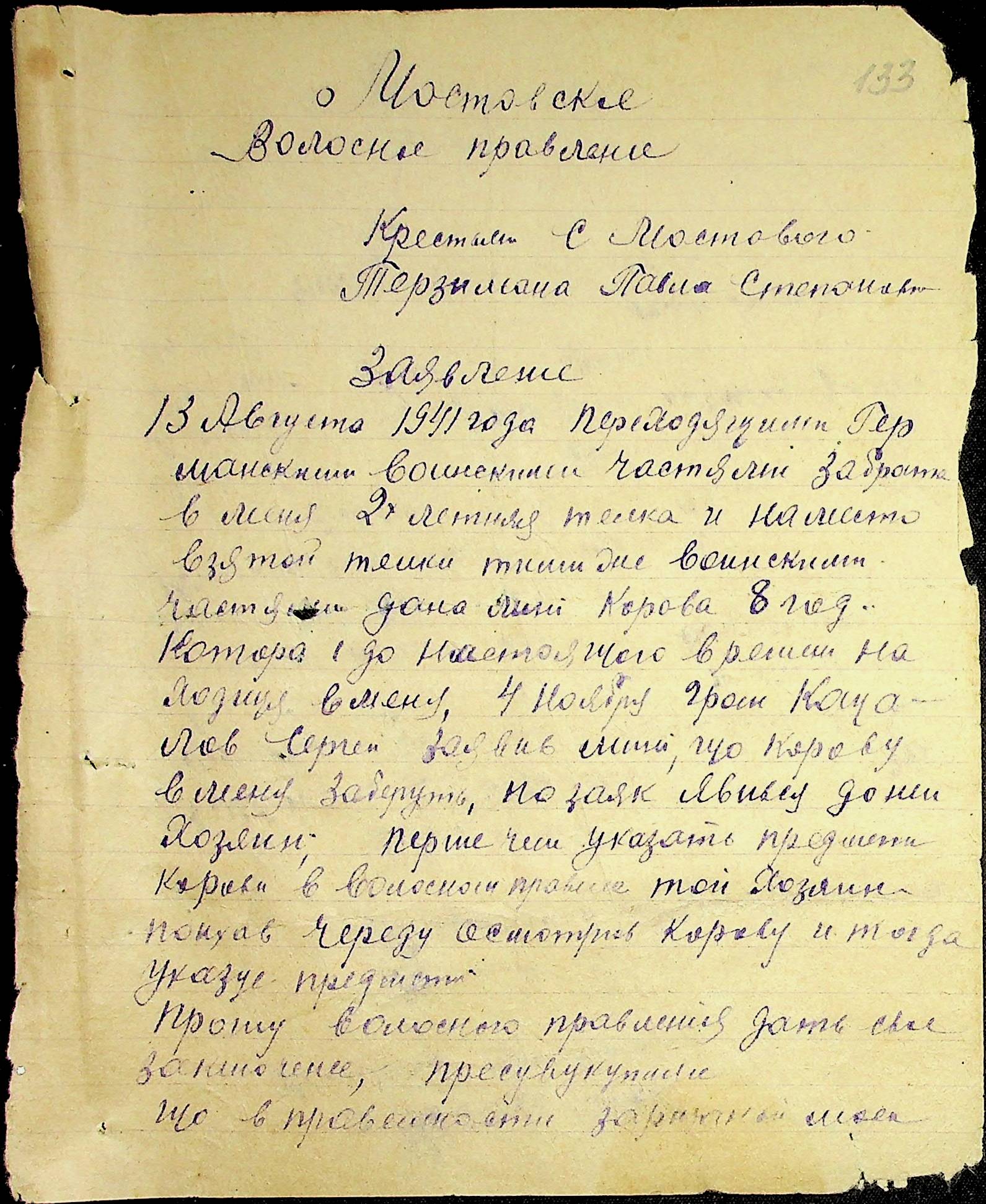 • • • • Справа № 88 Листування з претурою Мостівського району з питань видачі населенню зерна, кукурудзи, проса за 1941 рік