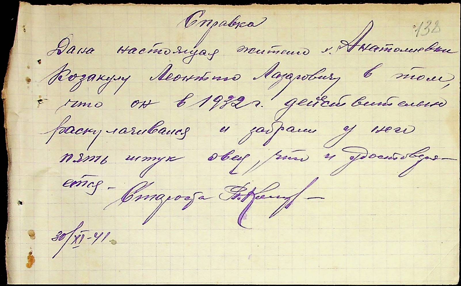 ◦ ◦ ◦ Опис № 1 справ постійного зберігання за 1941–1944 роки