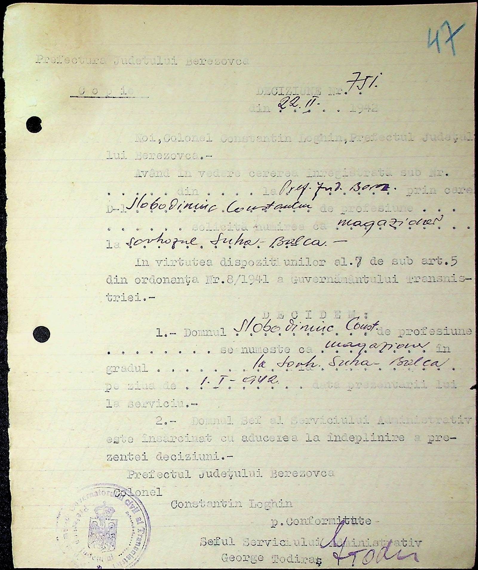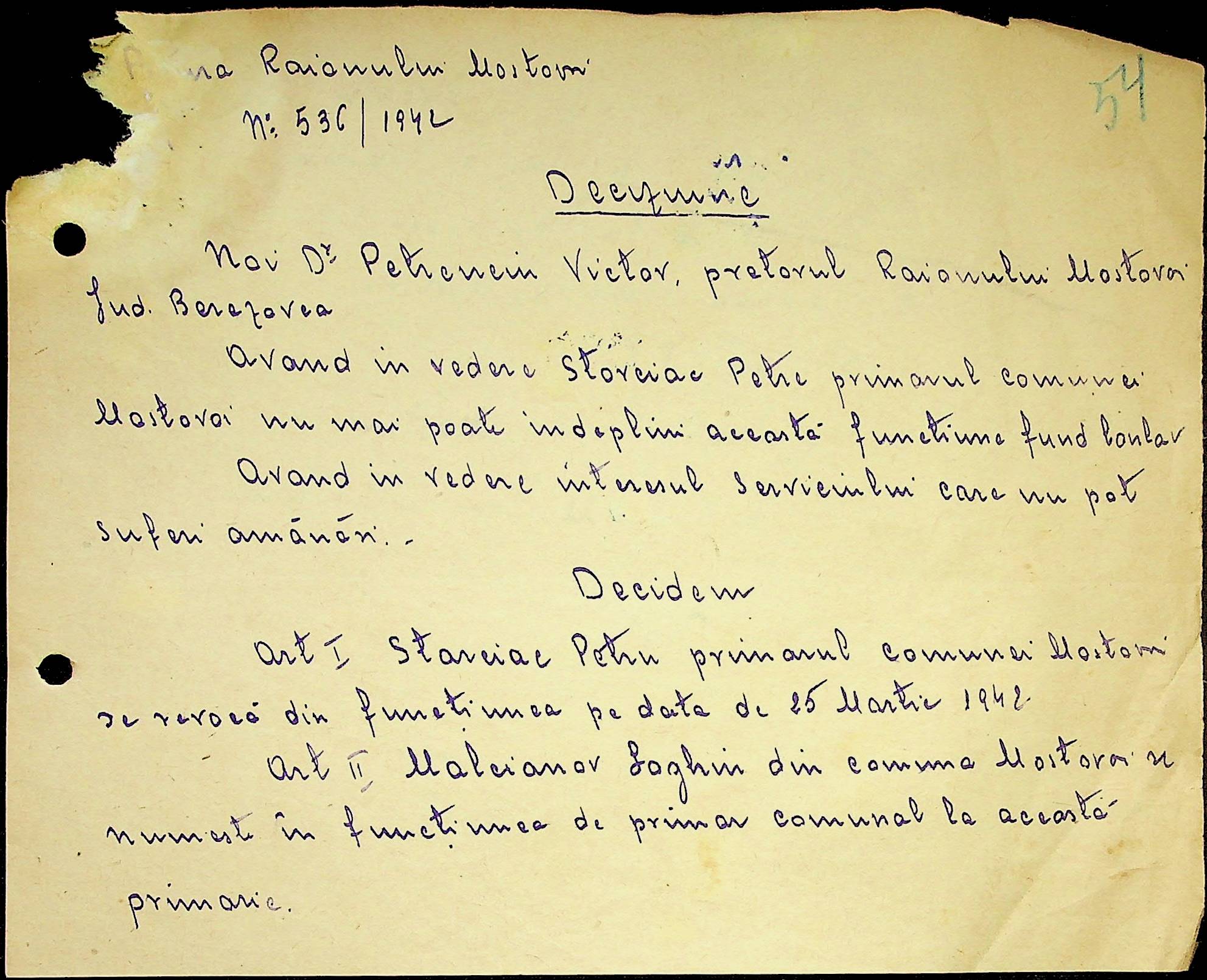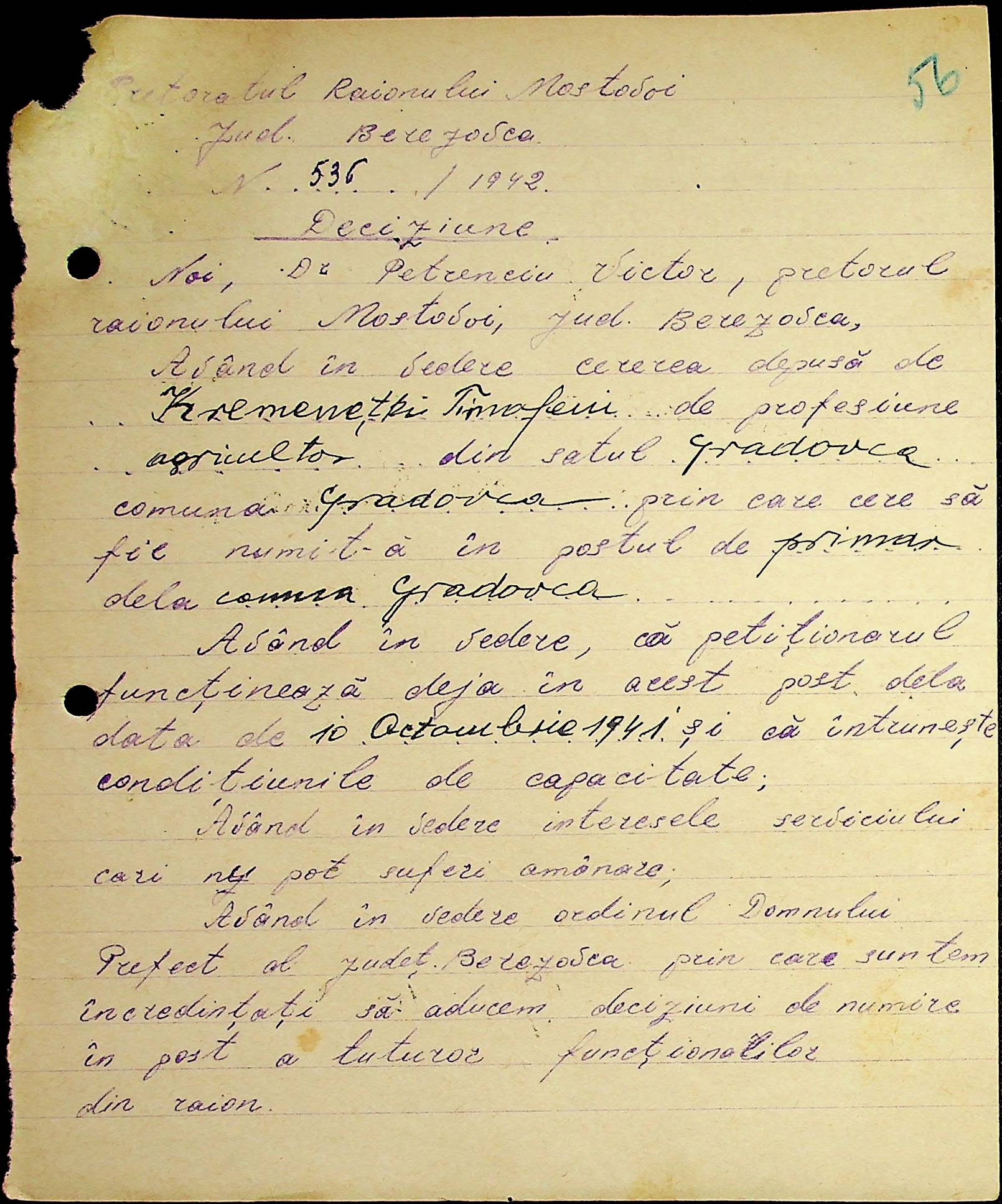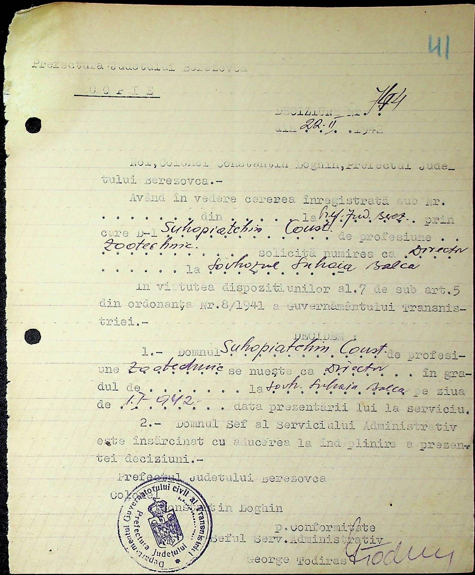• • • • Справа № 89 Постанови Губернаторства про призначення на службу, звільнення з роботи чиновників установ. Списки примарій, працівників відділів претури, викладачів шкіл, робітників МТС за 1942 рік