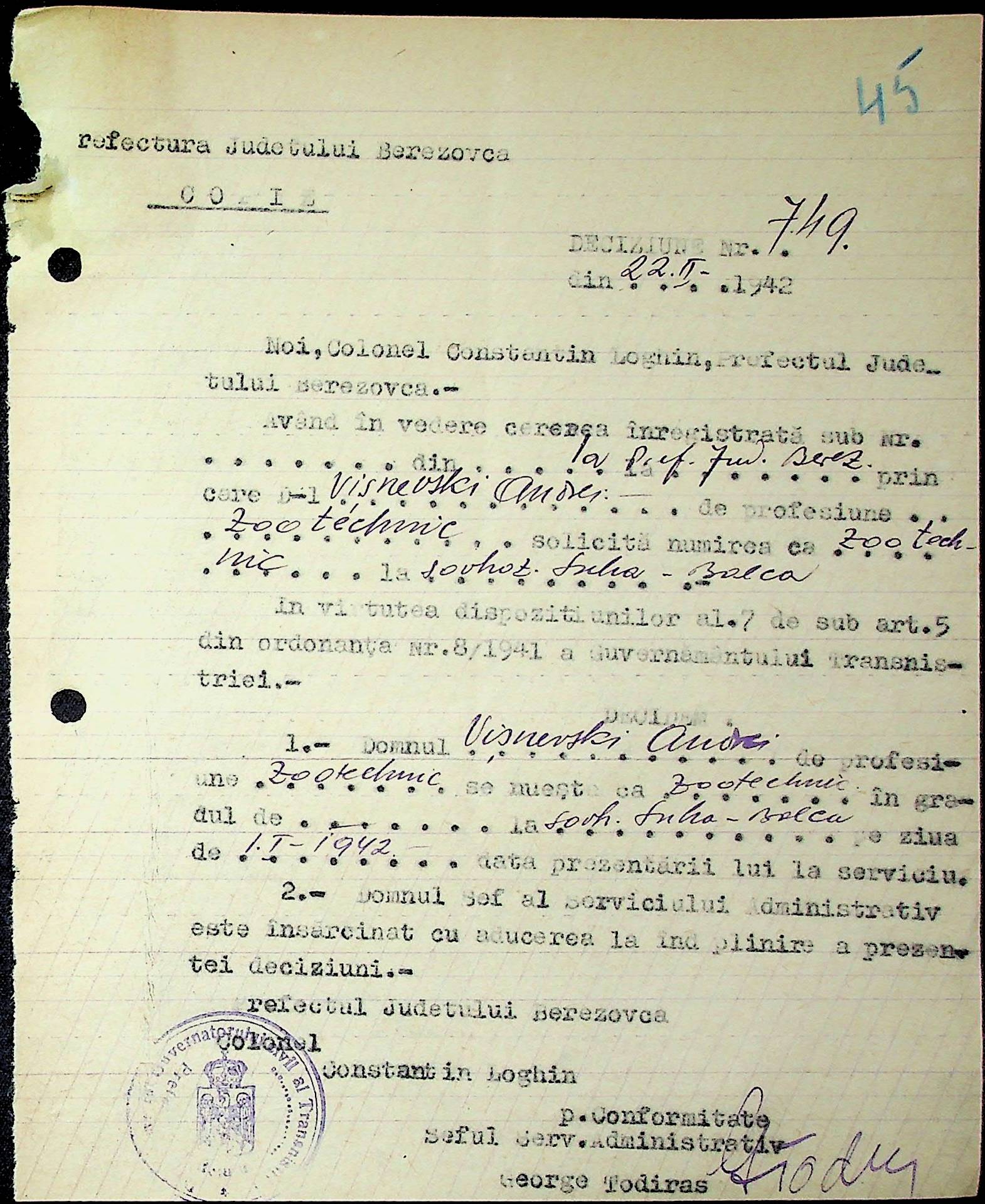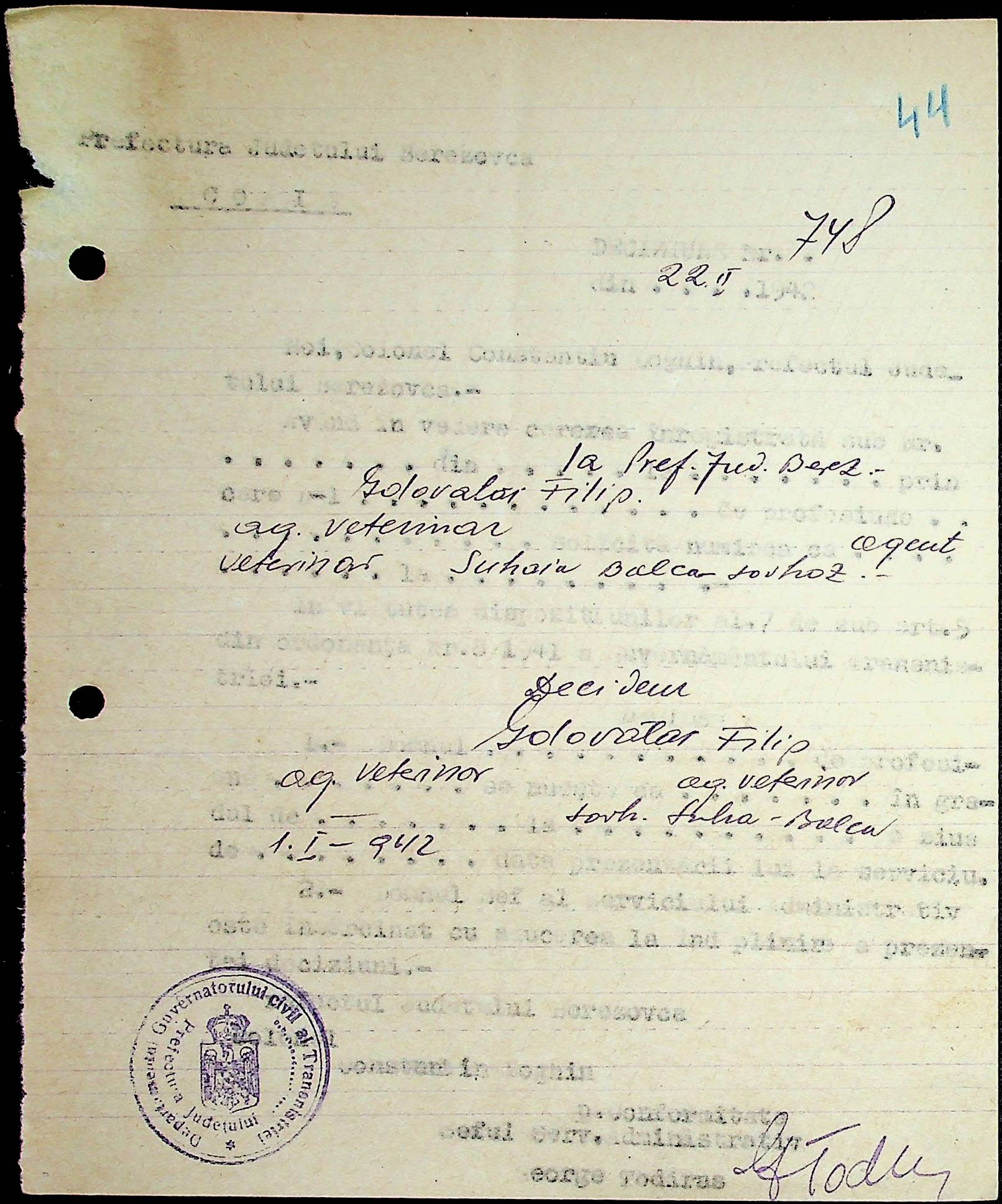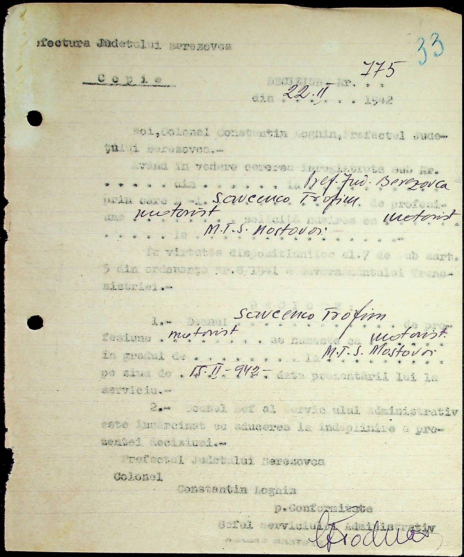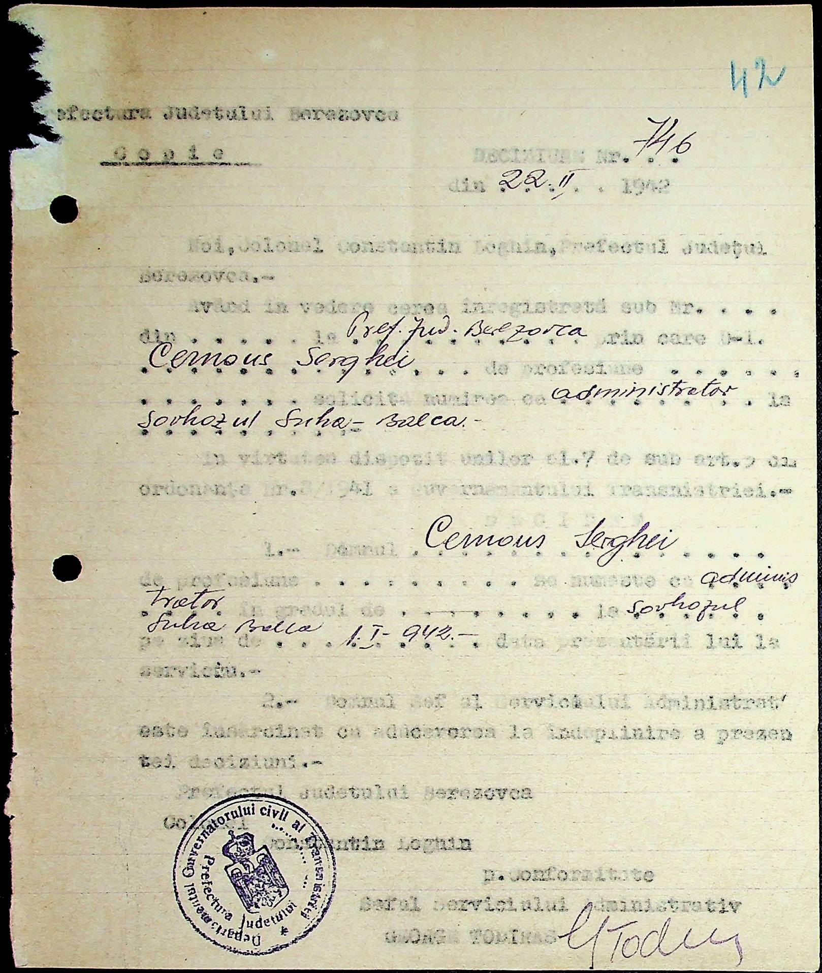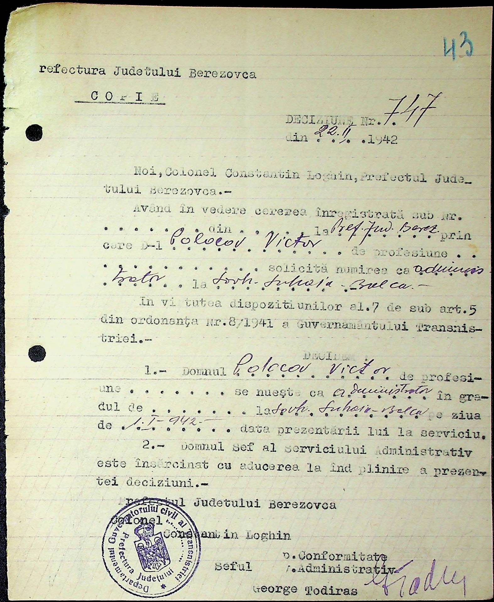 • • • • Справа № 89 Постанови Губернаторства про призначення на службу, звільнення з роботи чиновників установ. Списки примарій, працівників відділів претури, викладачів шкіл, робітників МТС за 1942 рік