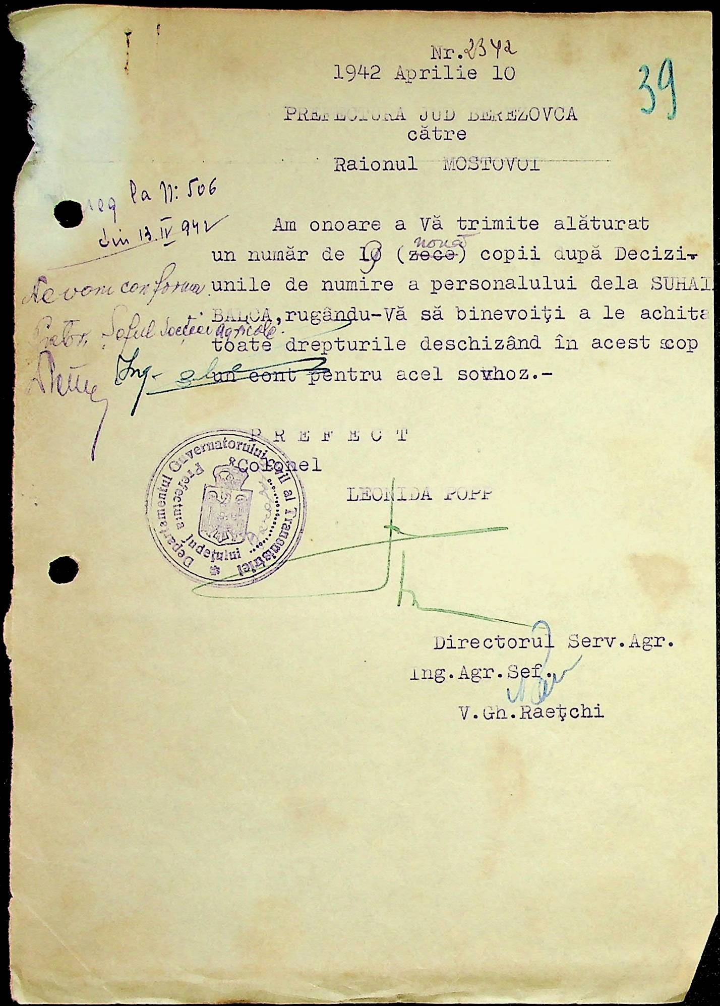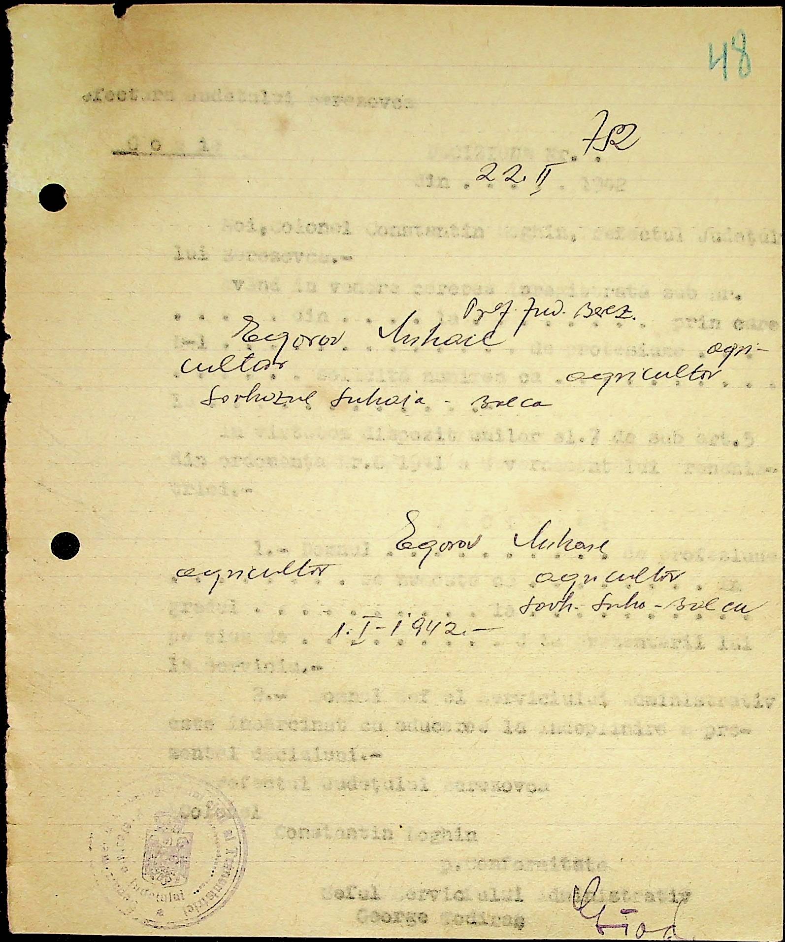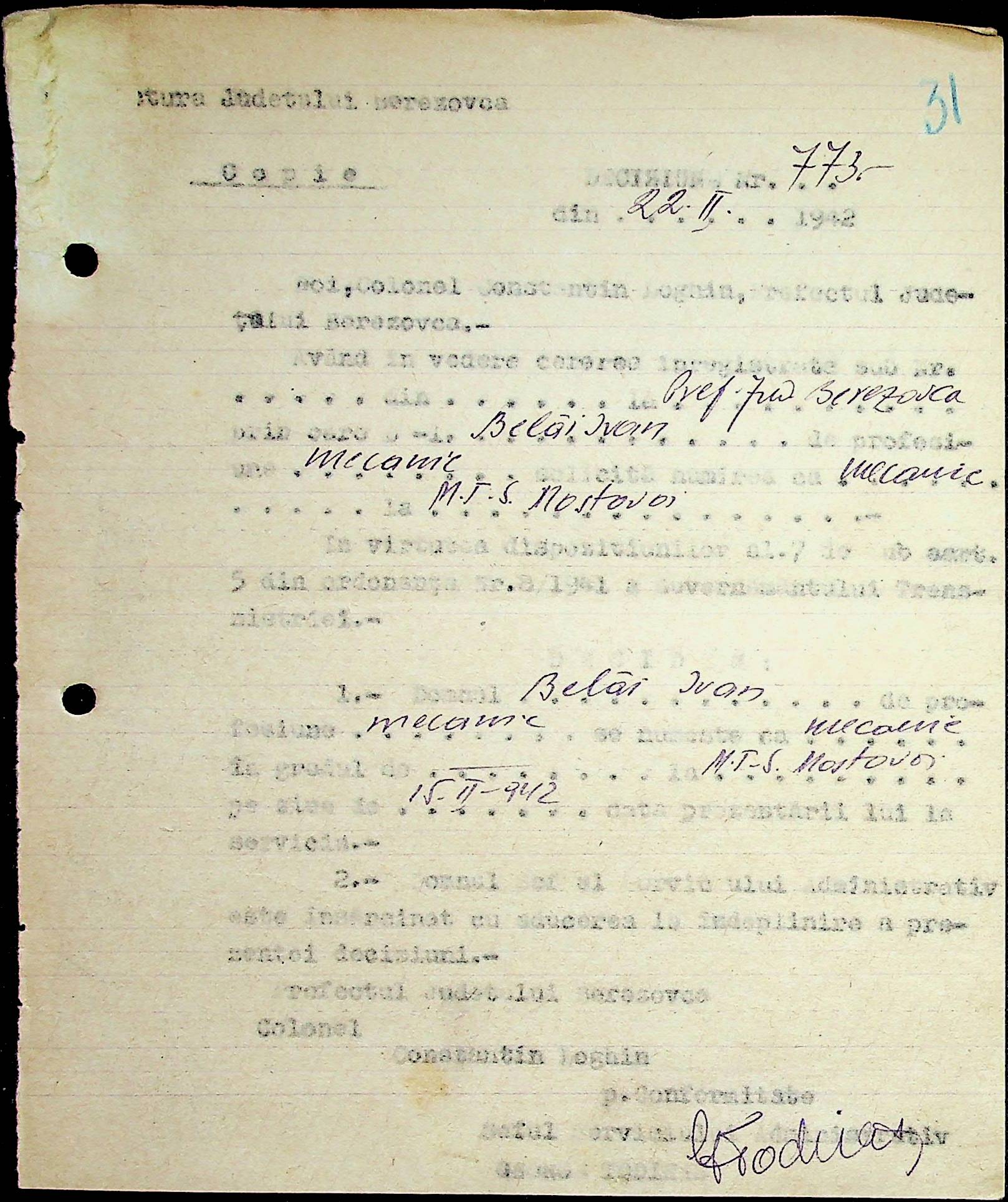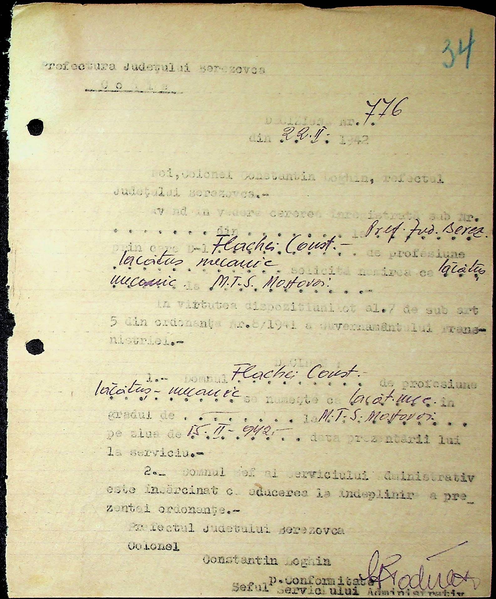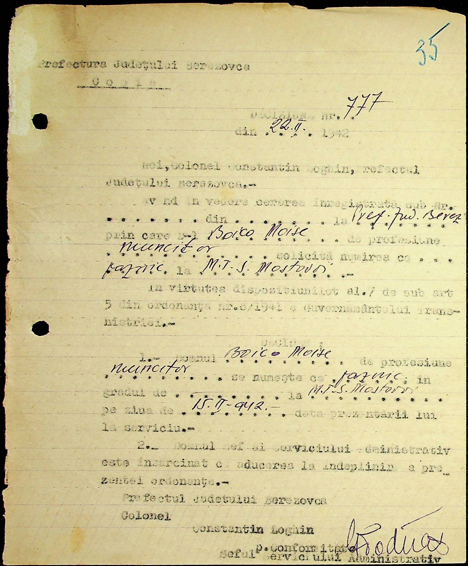 • • • • Справа № 89 Постанови Губернаторства про призначення на службу, звільнення з роботи чиновників установ. Списки примарій, працівників відділів претури, викладачів шкіл, робітників МТС за 1942 рік