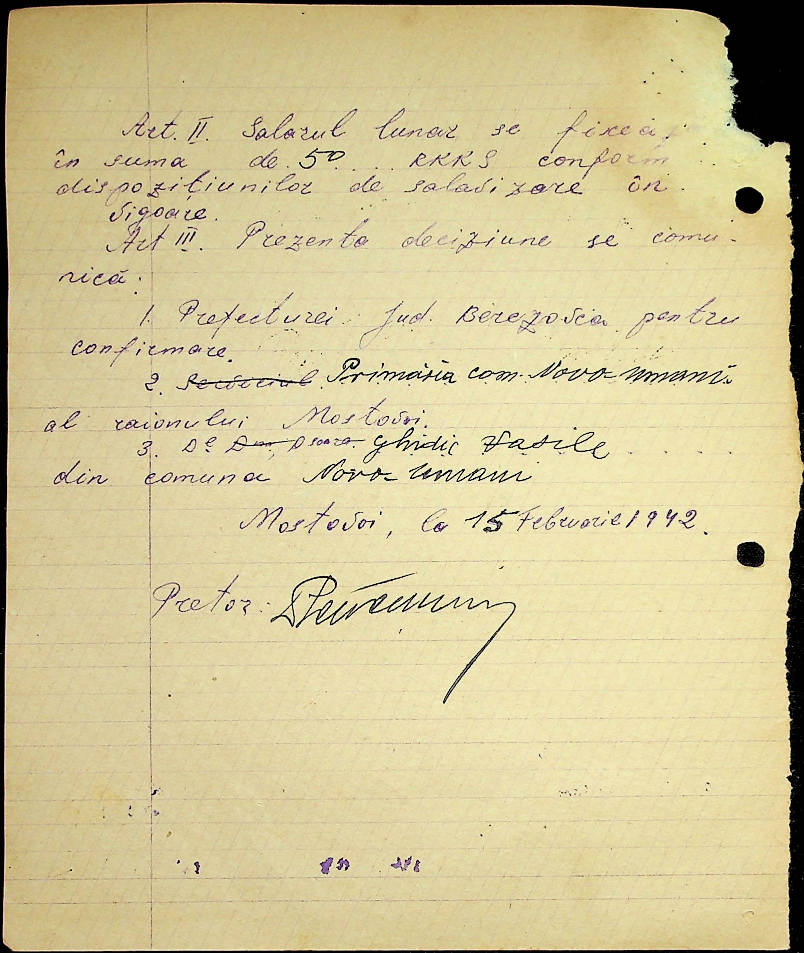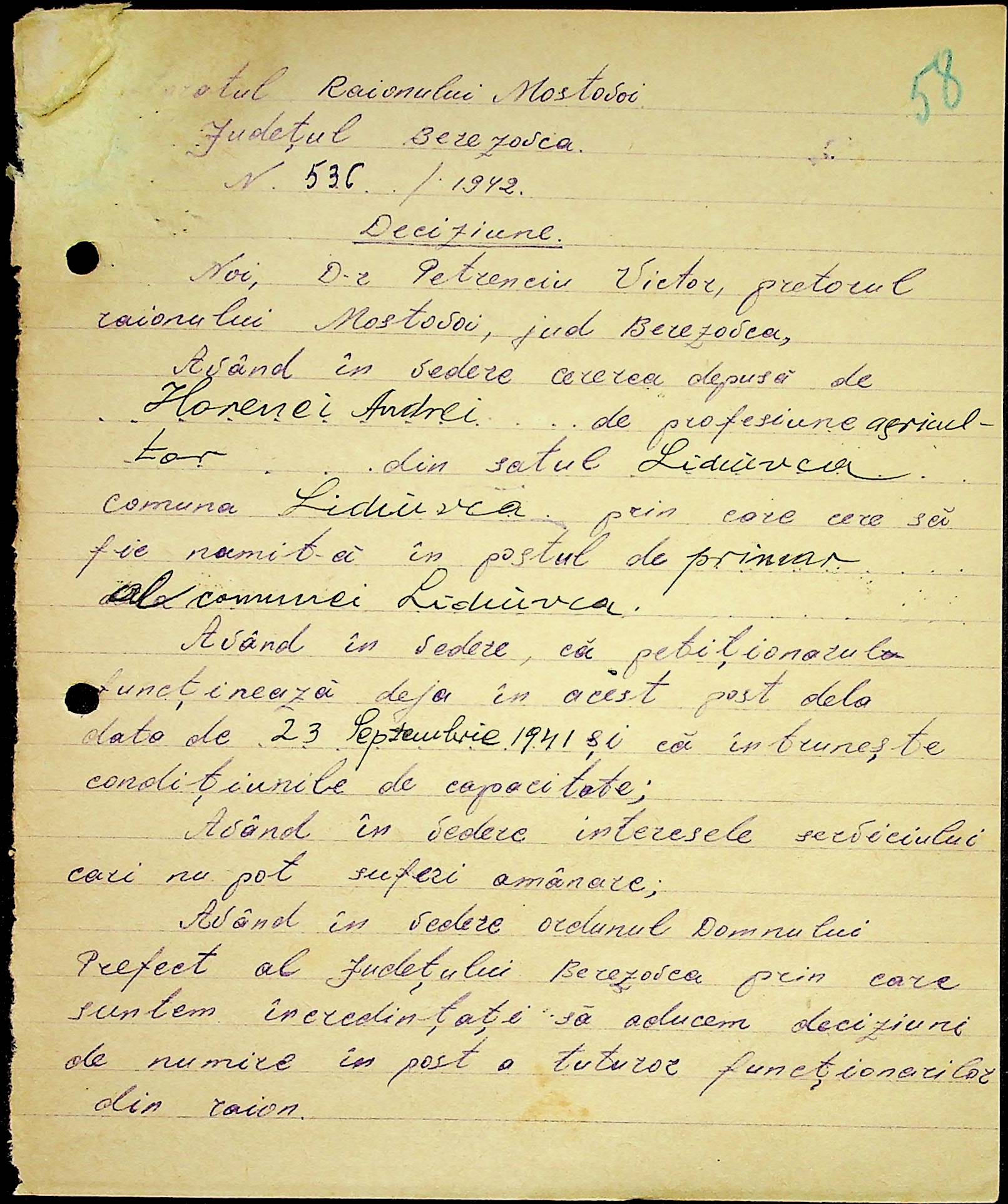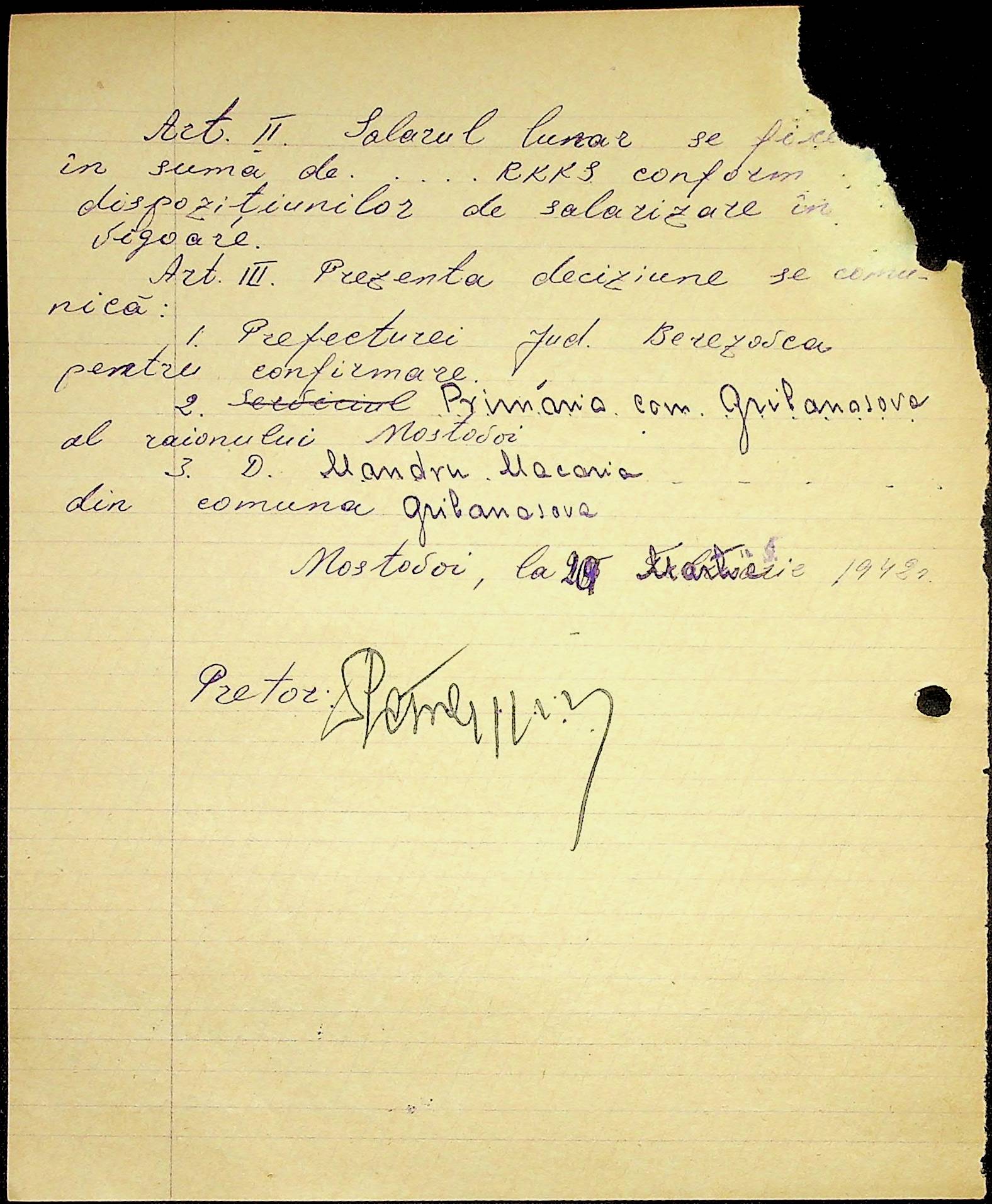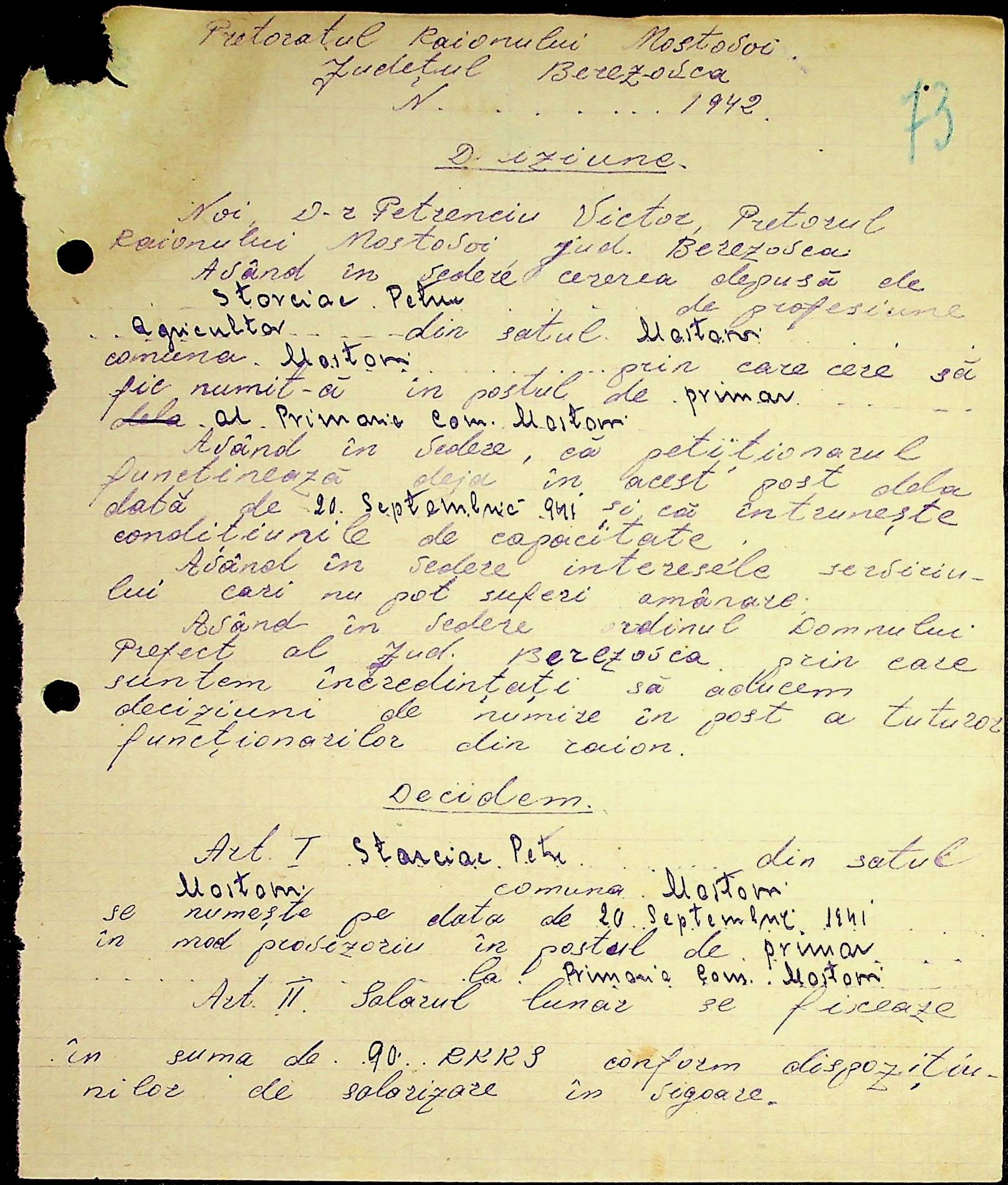 • • • • Справа № 89 Постанови Губернаторства про призначення на службу, звільнення з роботи чиновників установ. Списки примарій, працівників відділів претури, викладачів шкіл, робітників МТС за 1942 рік