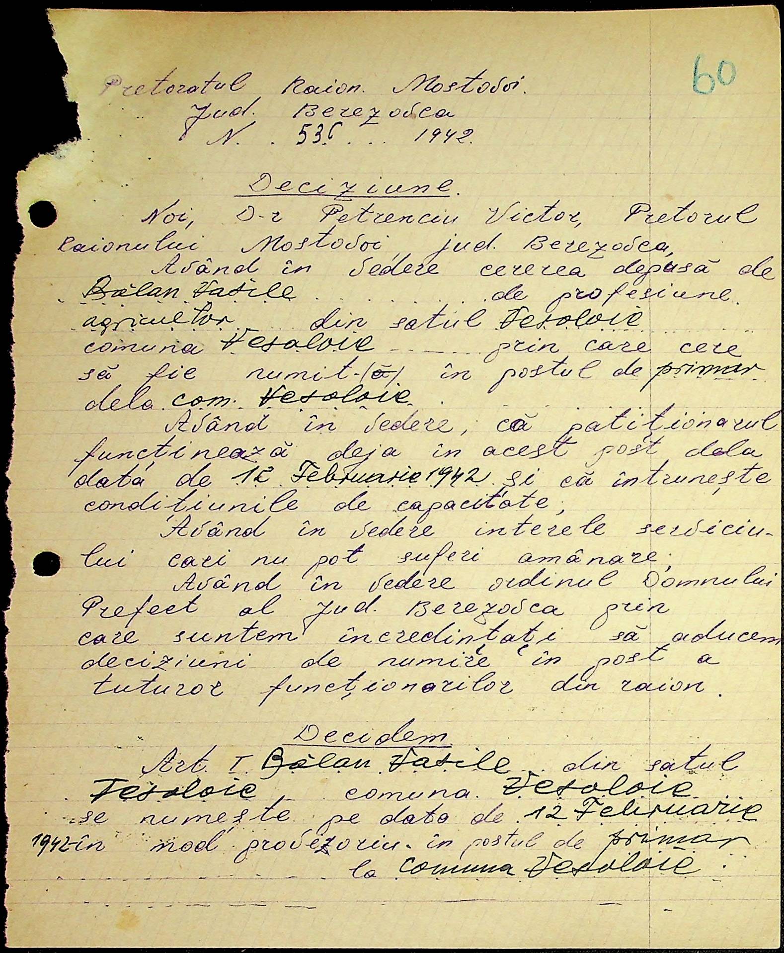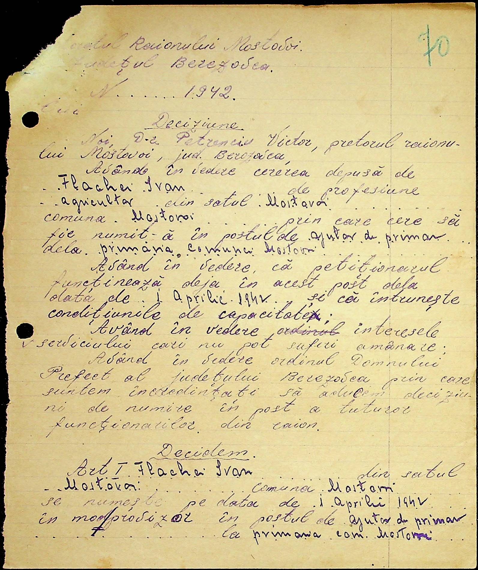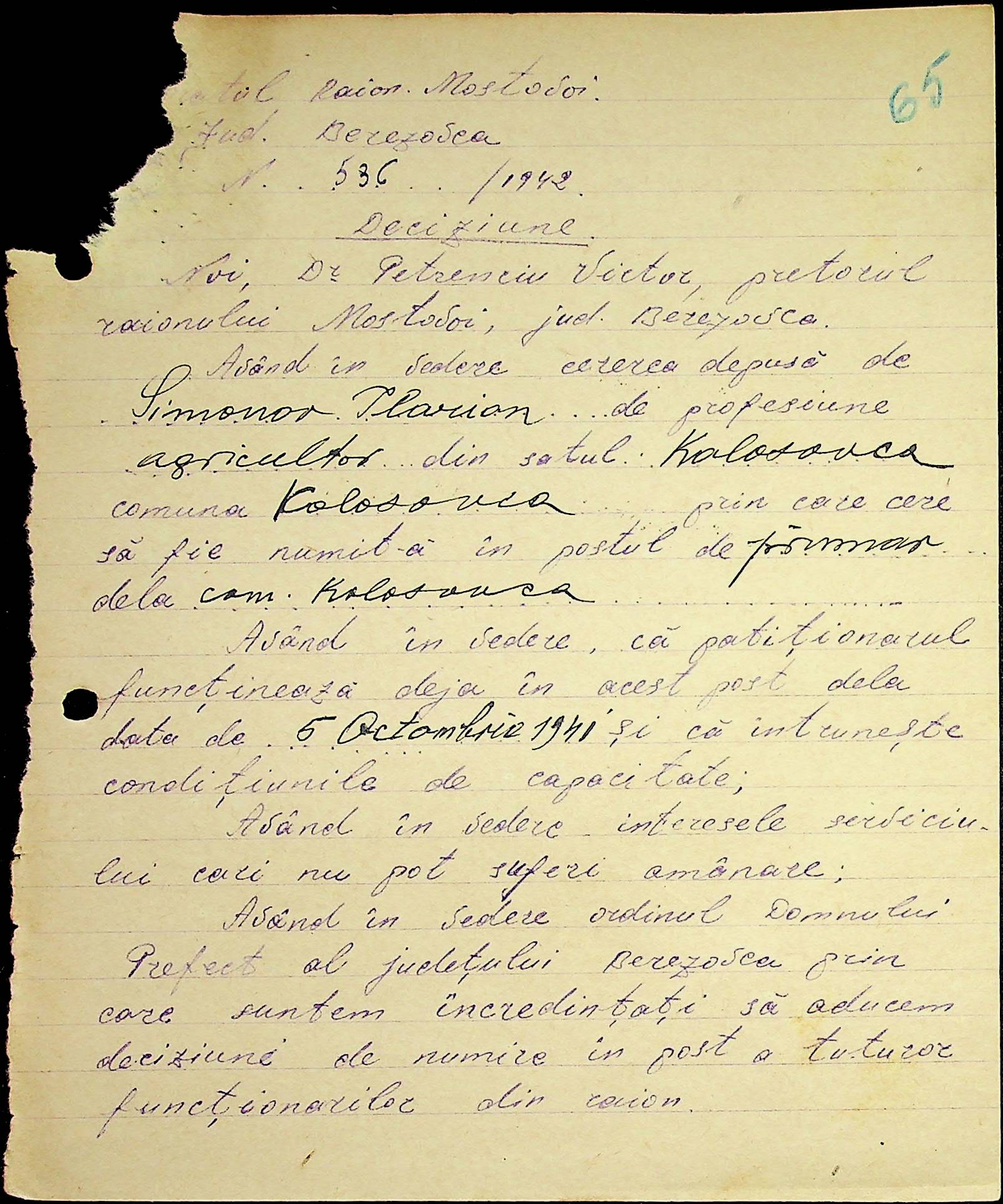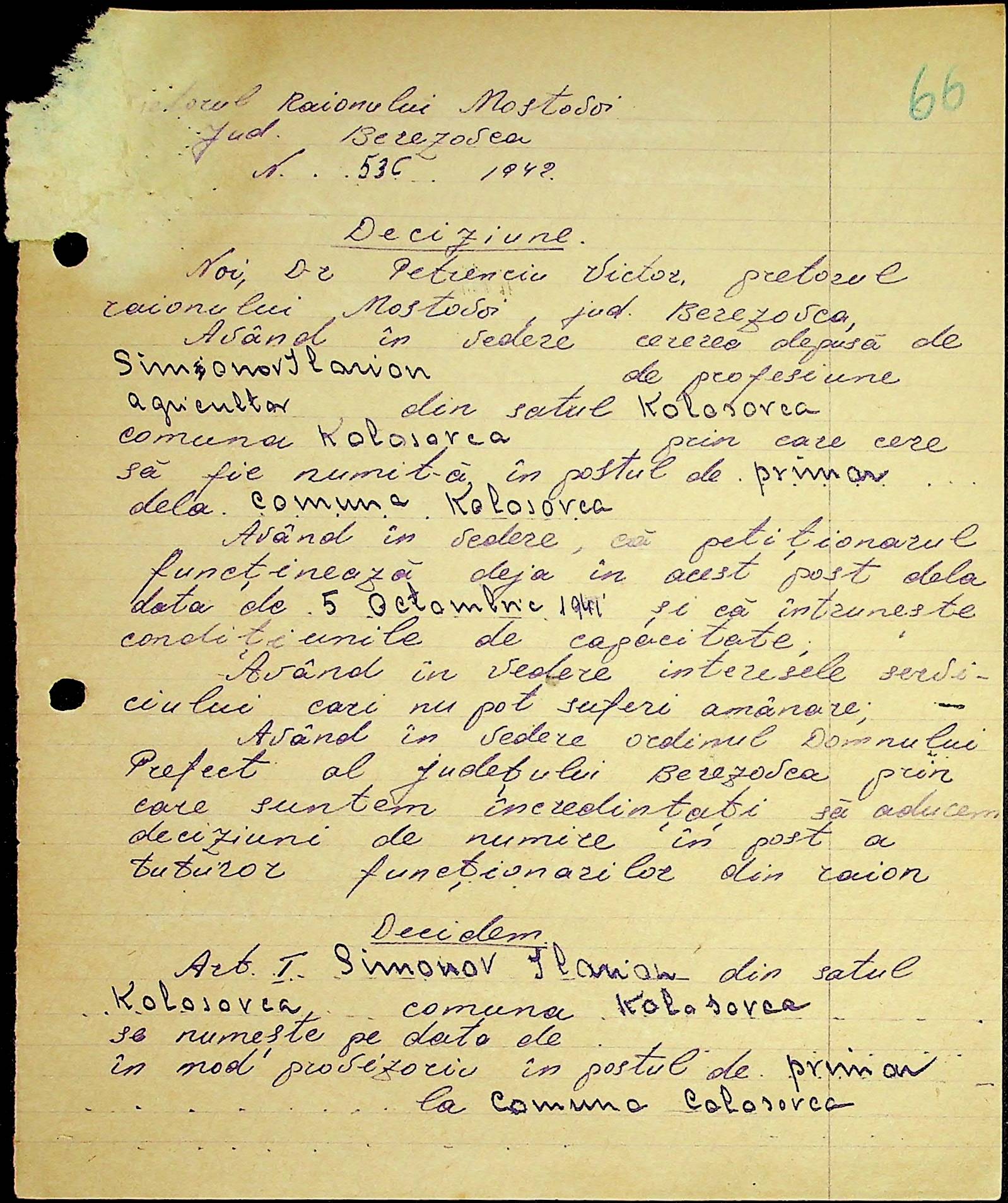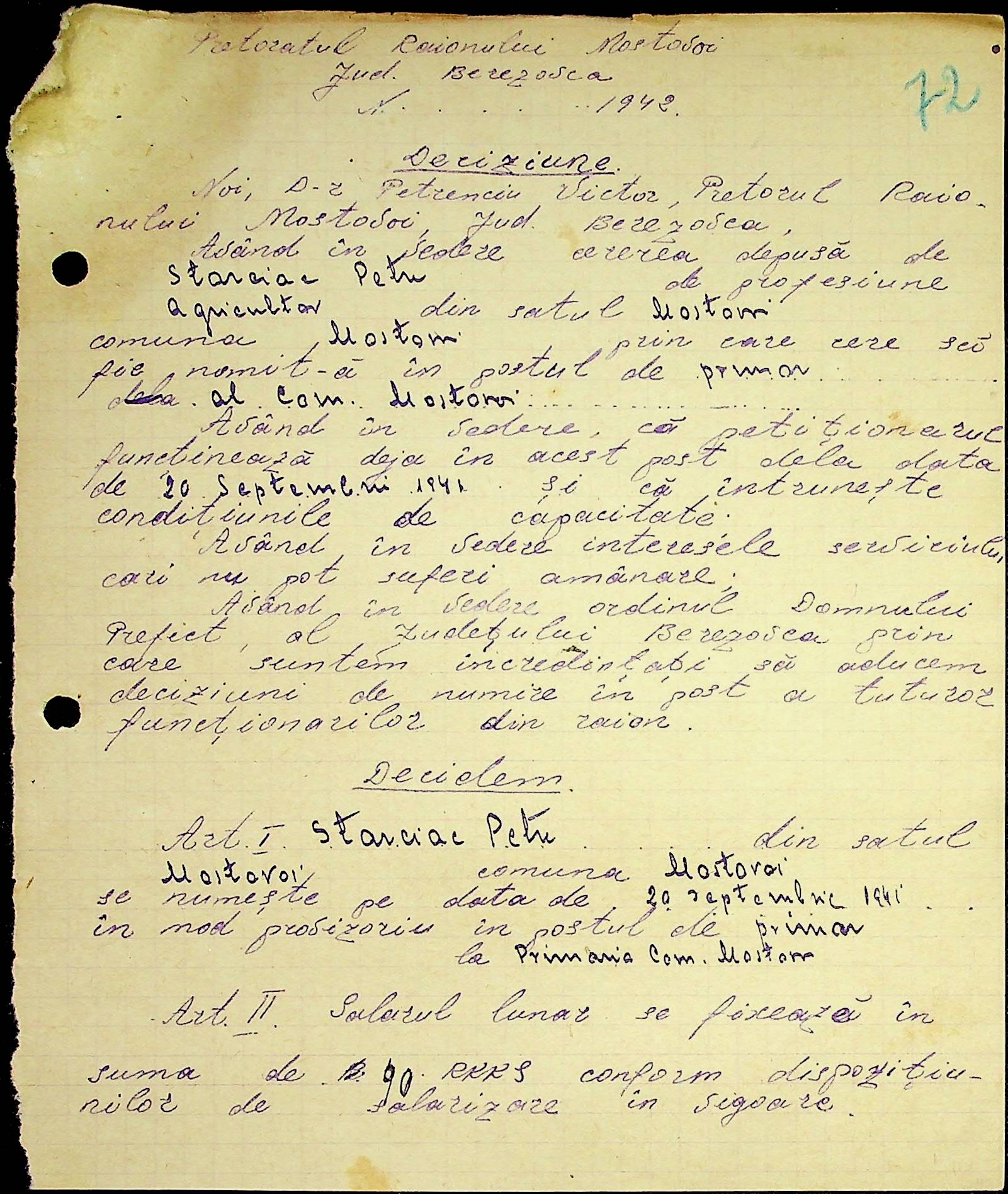 • • • • Справа № 89 Постанови Губернаторства про призначення на службу, звільнення з роботи чиновників установ. Списки примарій, працівників відділів претури, викладачів шкіл, робітників МТС за 1942 рік