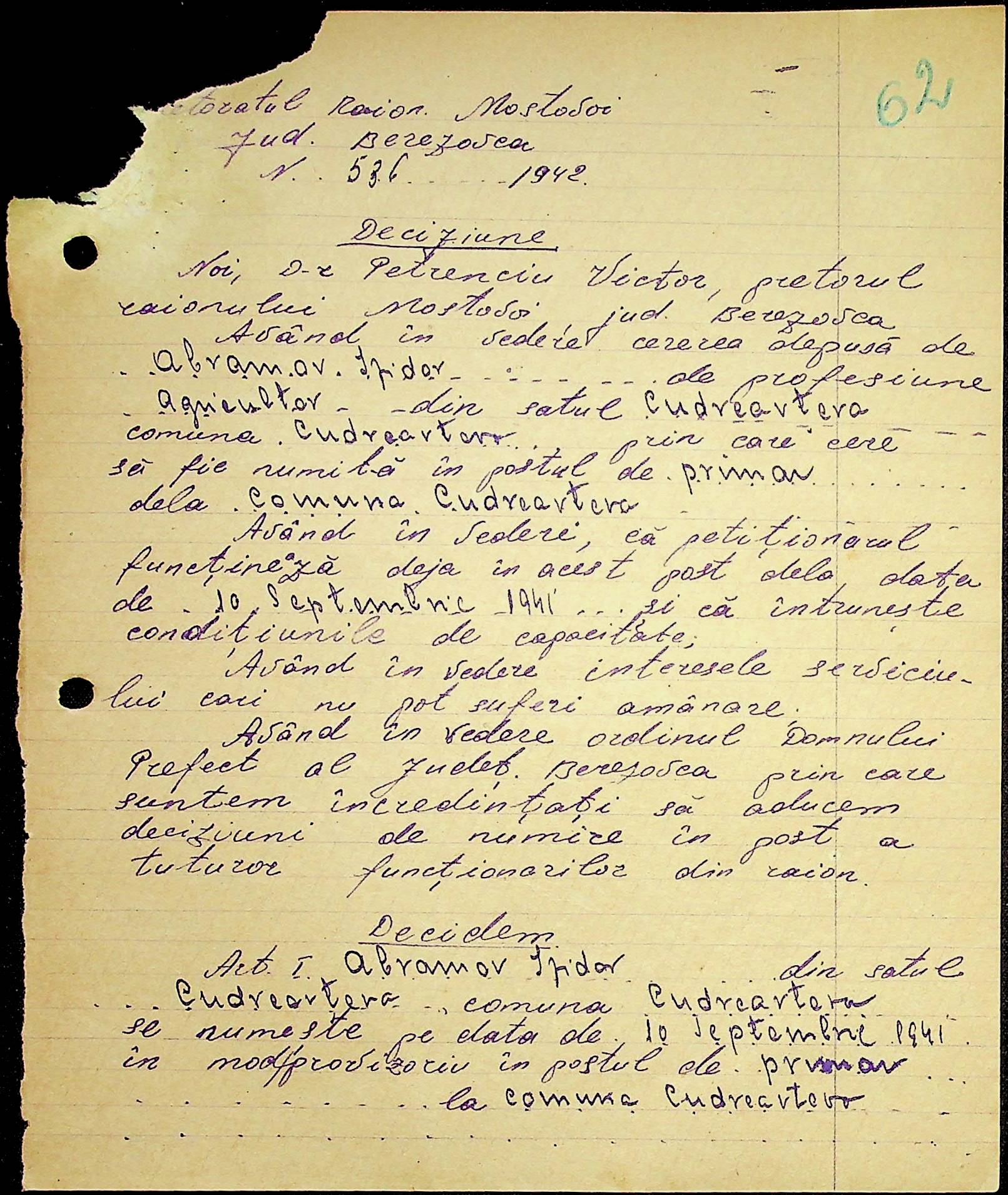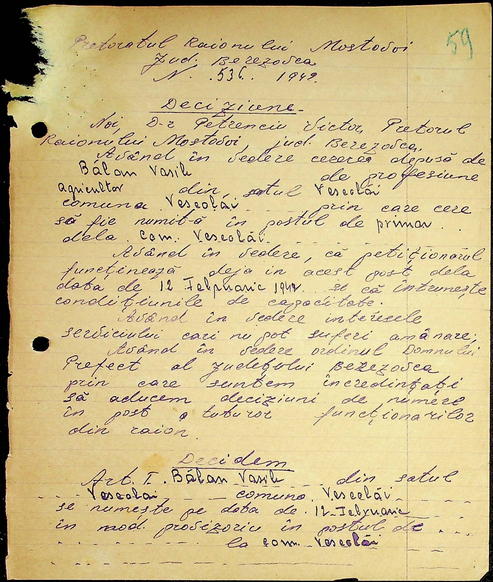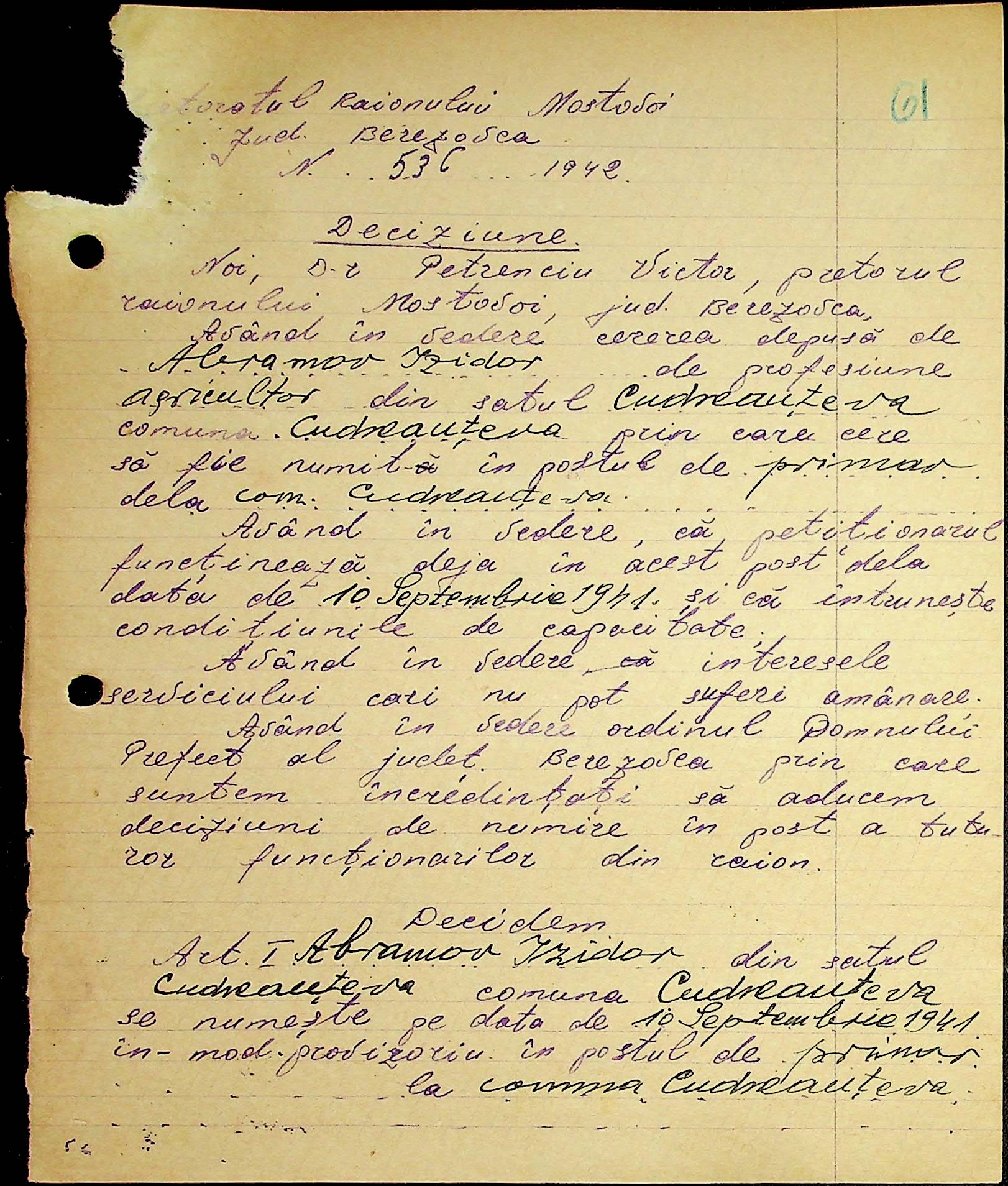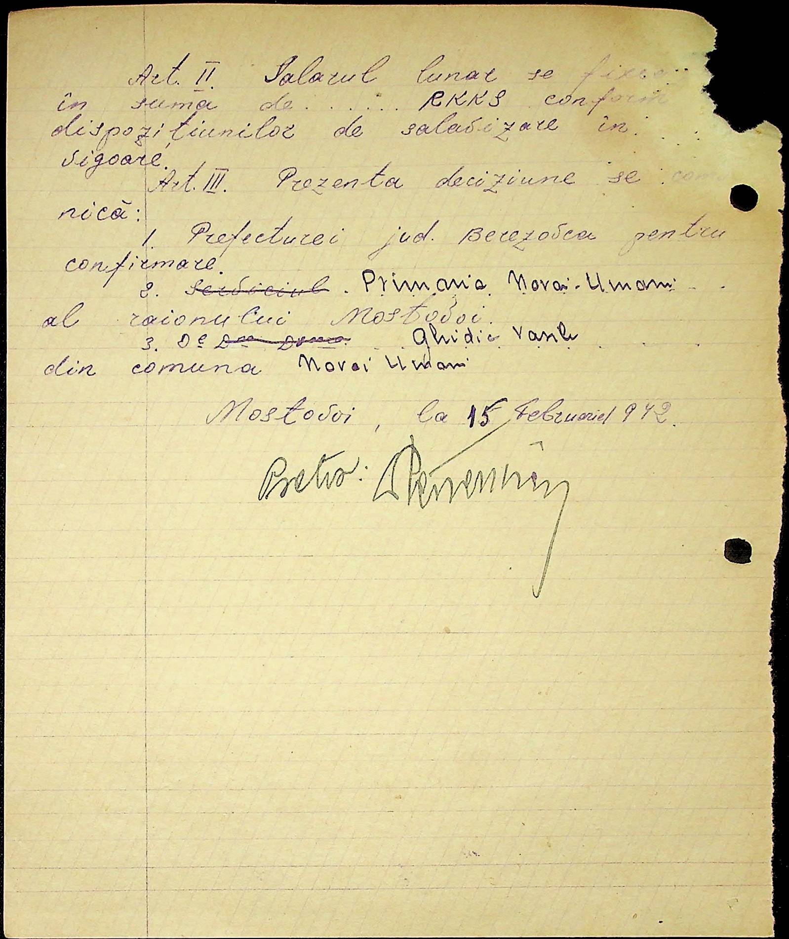 • • • • Справа № 89 Постанови Губернаторства про призначення на службу, звільнення з роботи чиновників установ. Списки примарій, працівників відділів претури, викладачів шкіл, робітників МТС за 1942 рік
