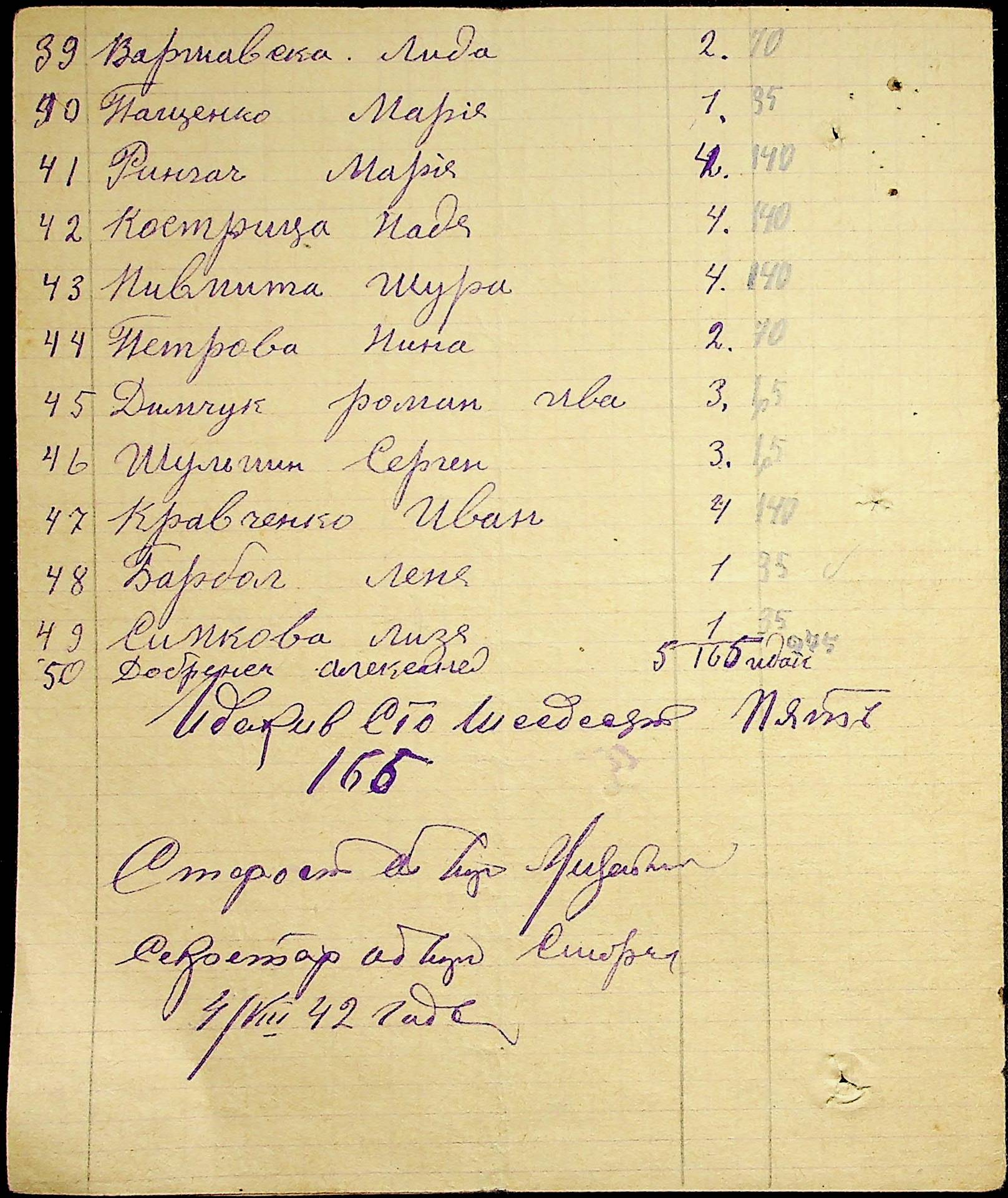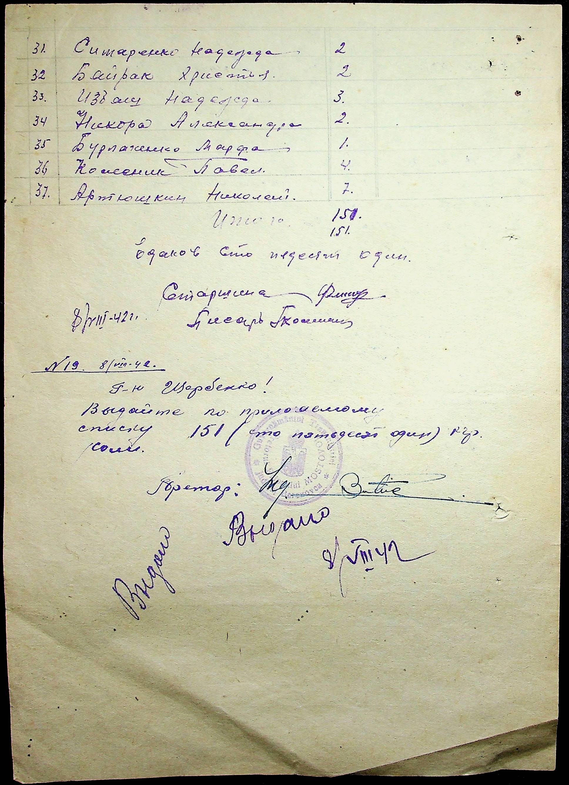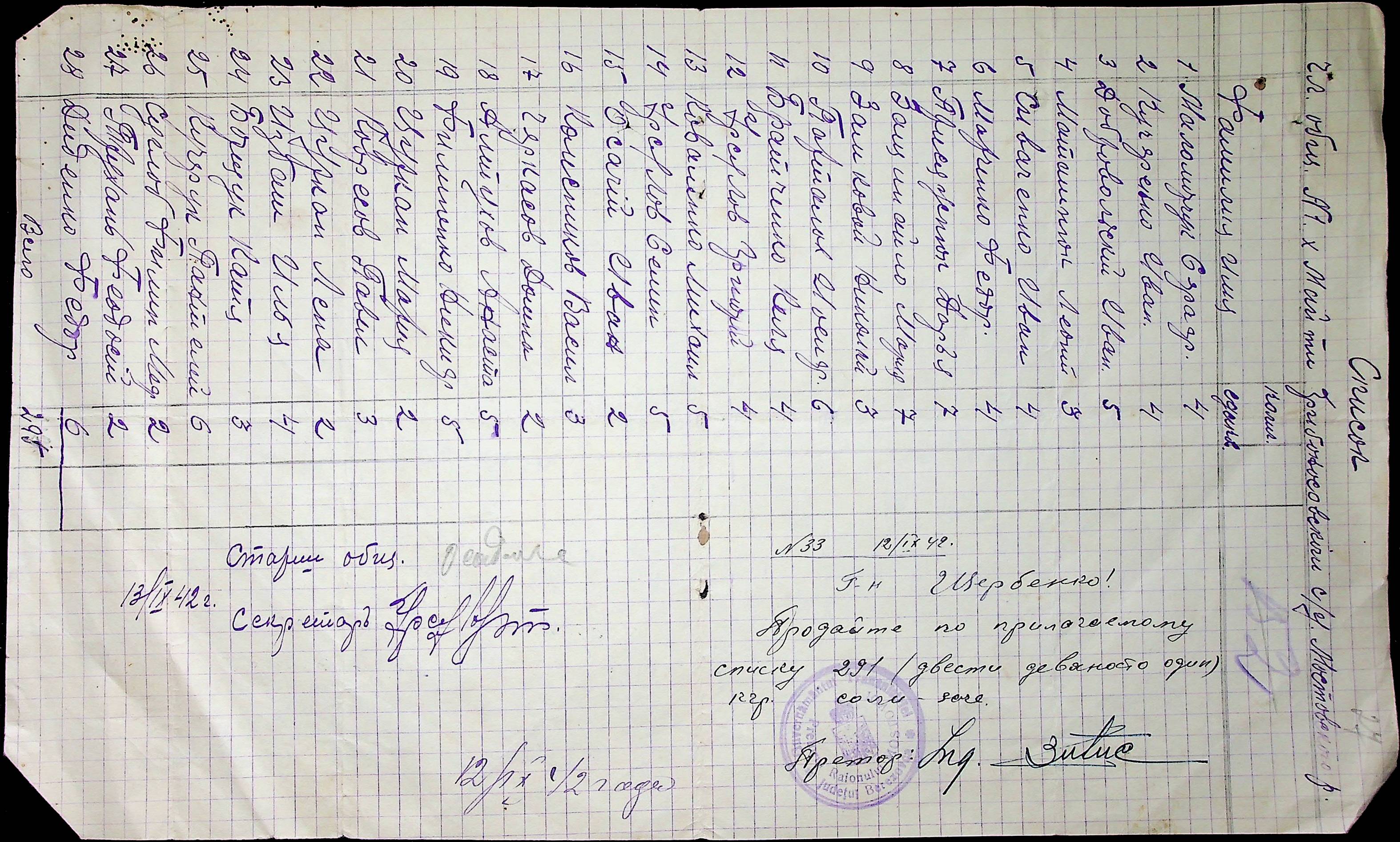 ◦ ◦ ◦ Опис № 1 справ постійного зберігання за 1941–1944 роки