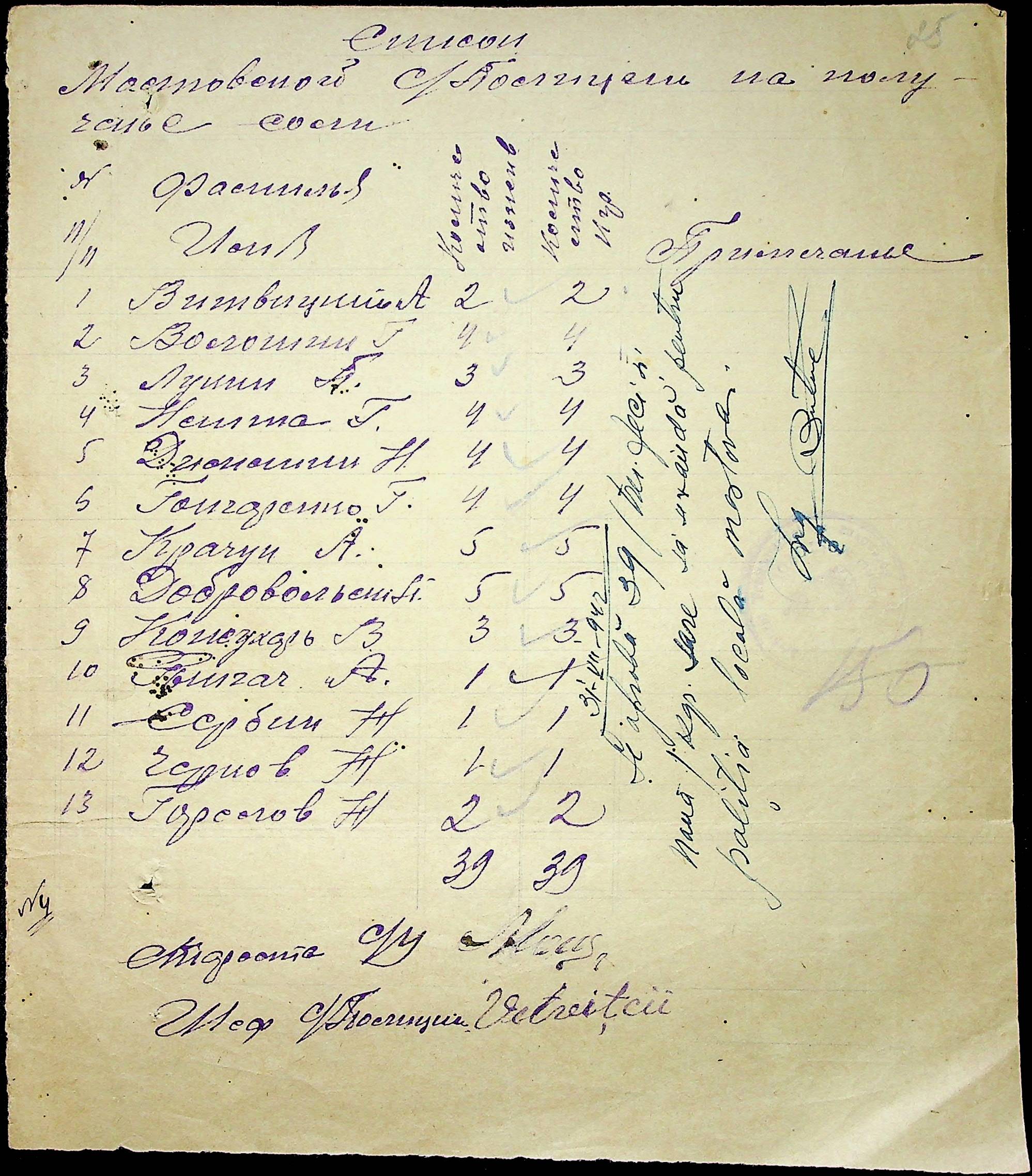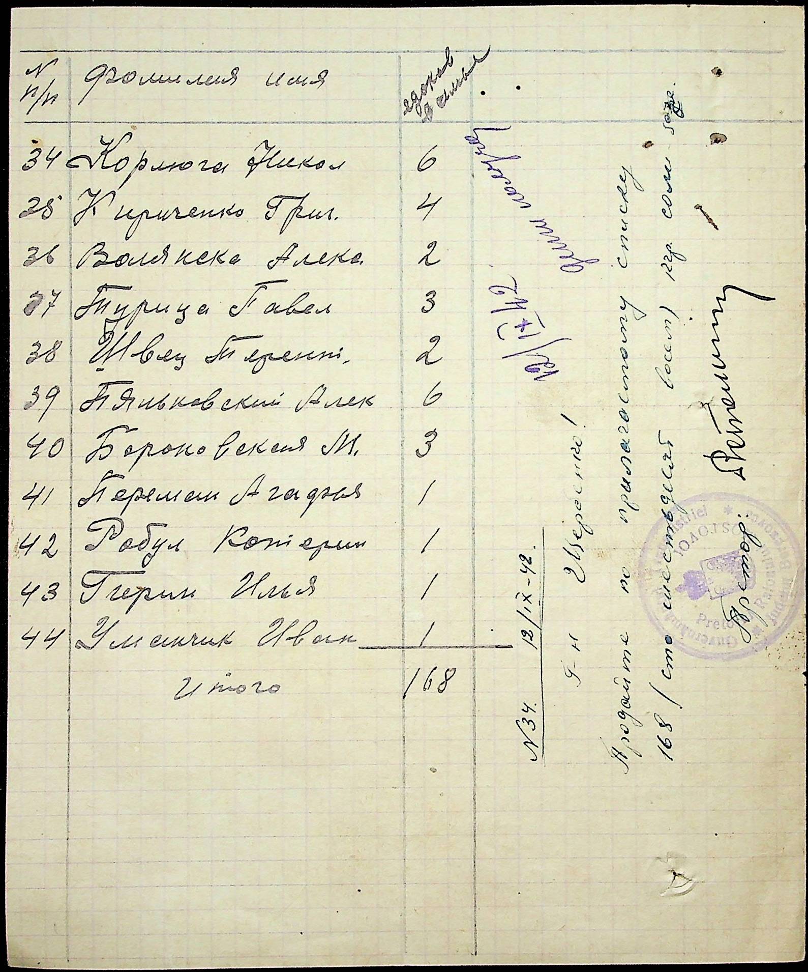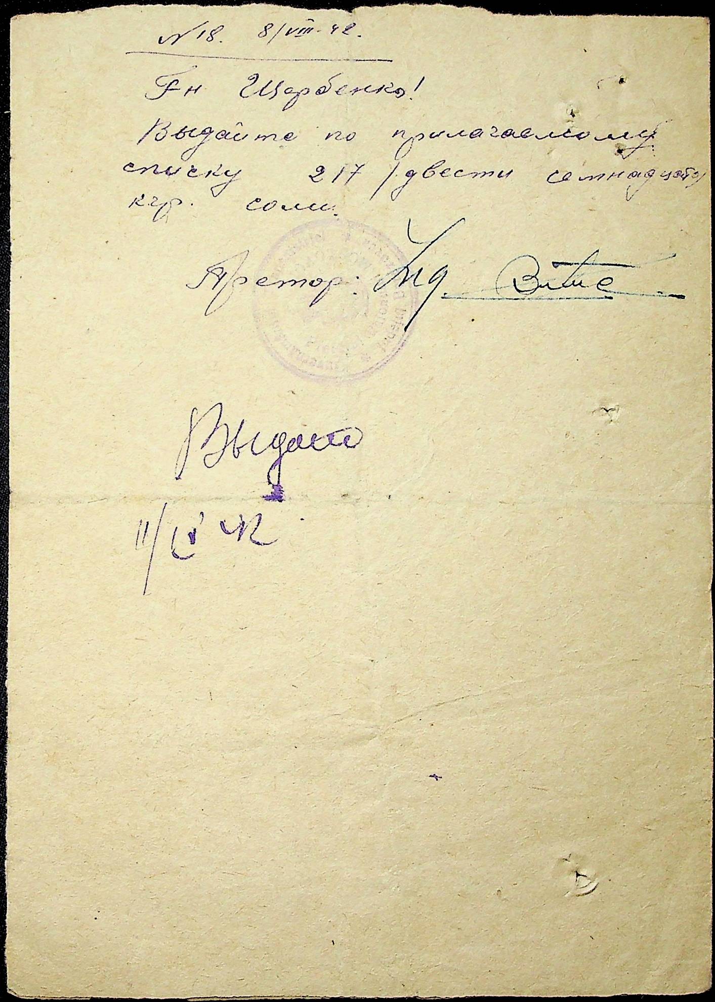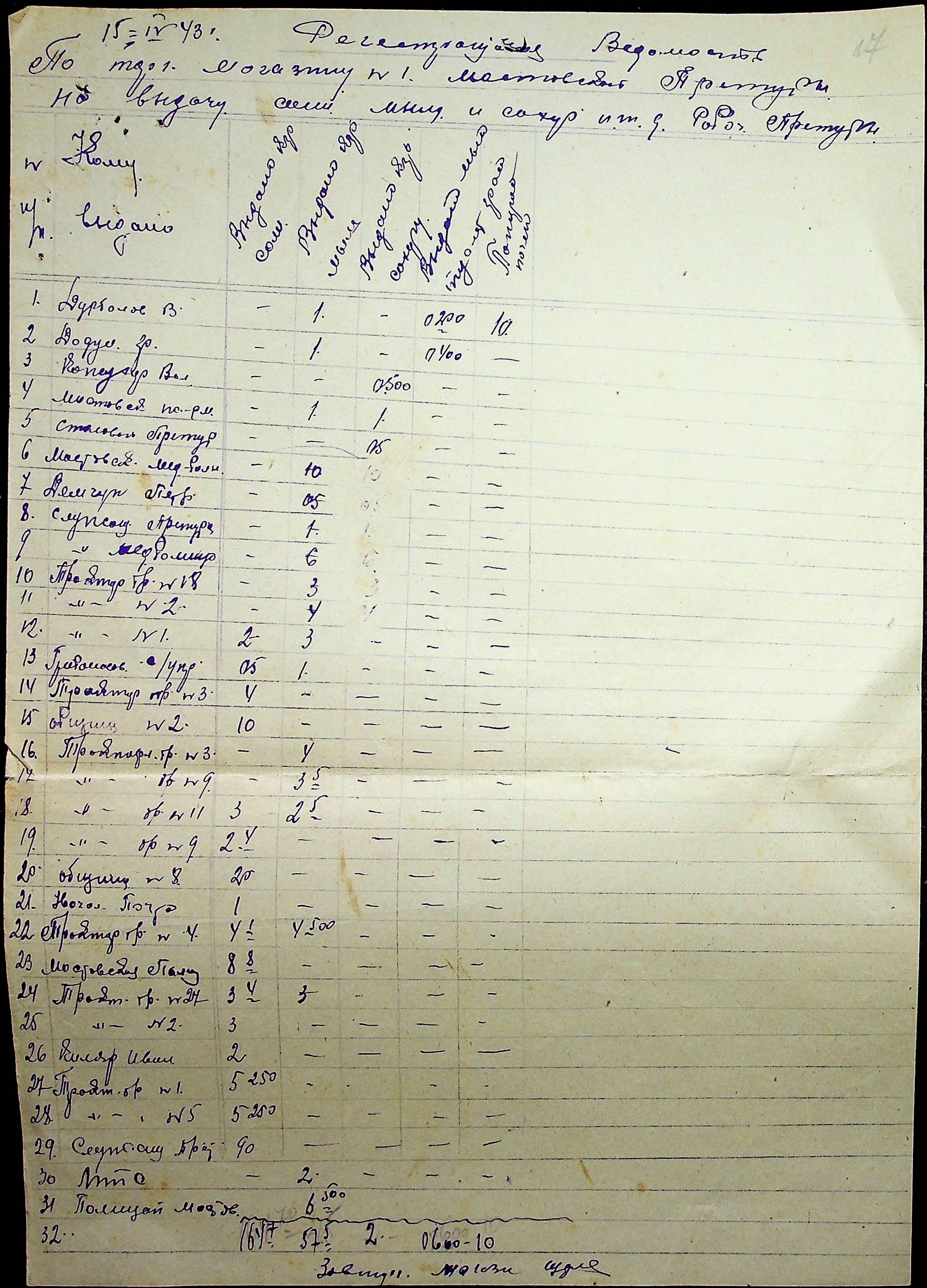 ◦ ◦ ◦ Опис № 1 справ постійного зберігання за 1941–1944 роки