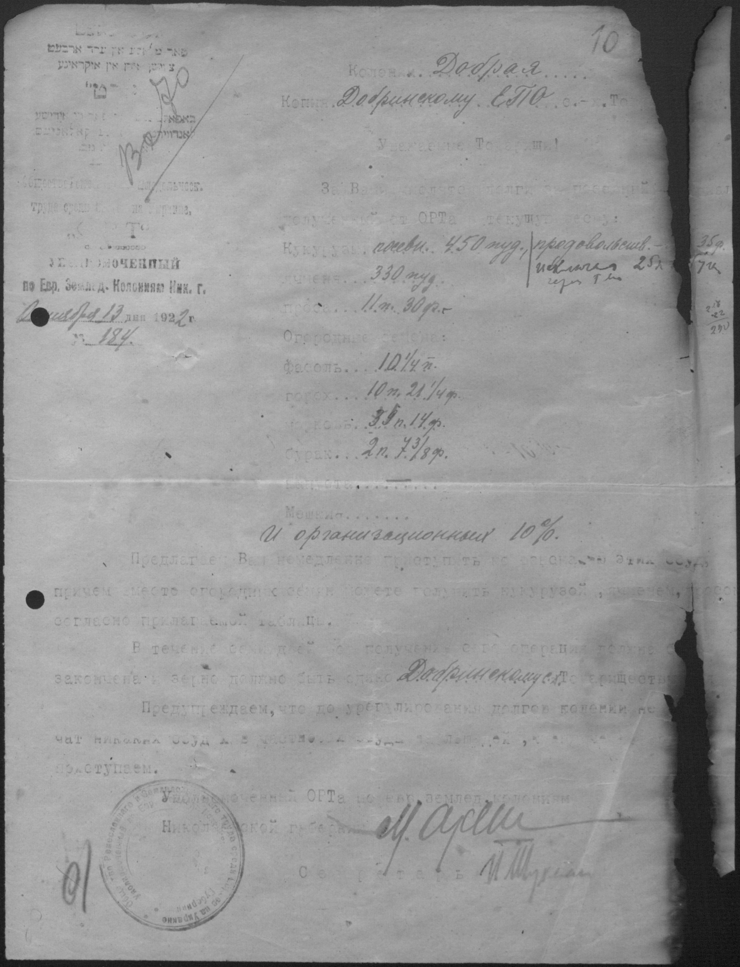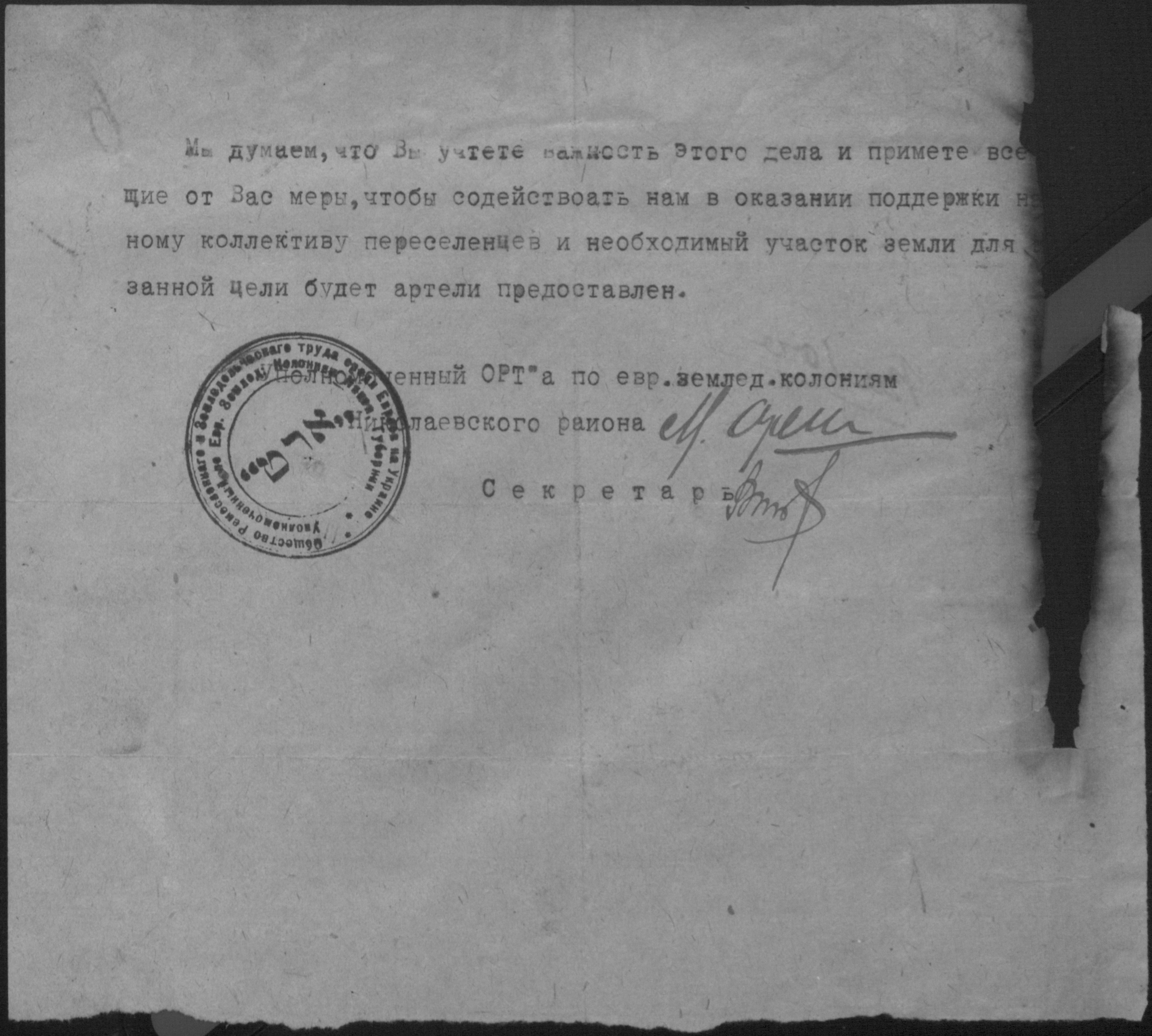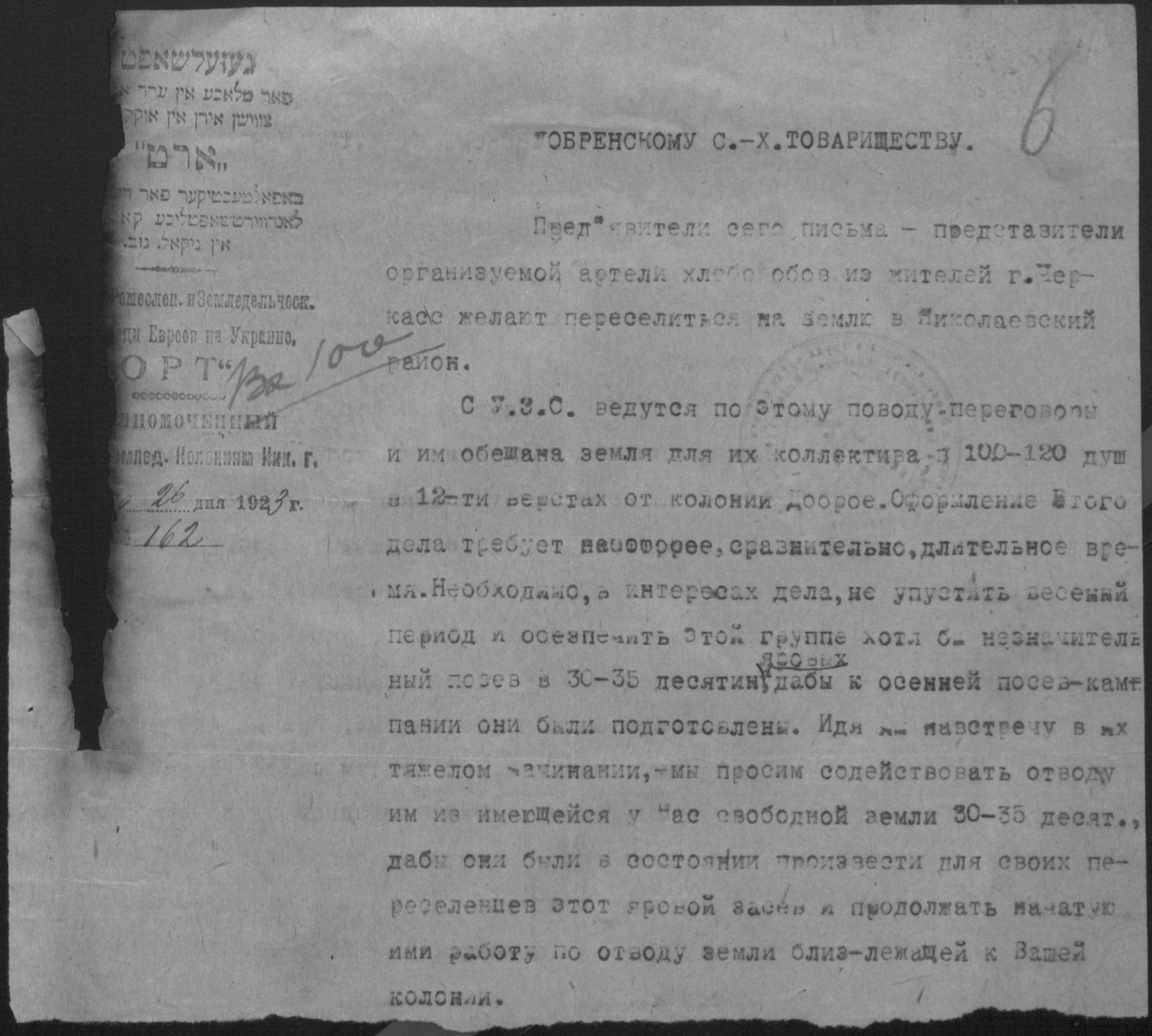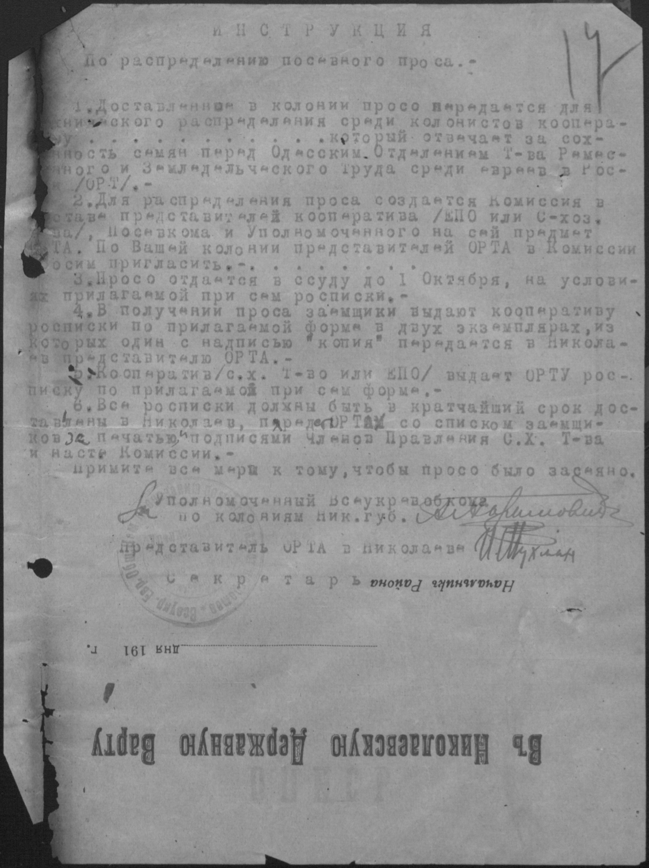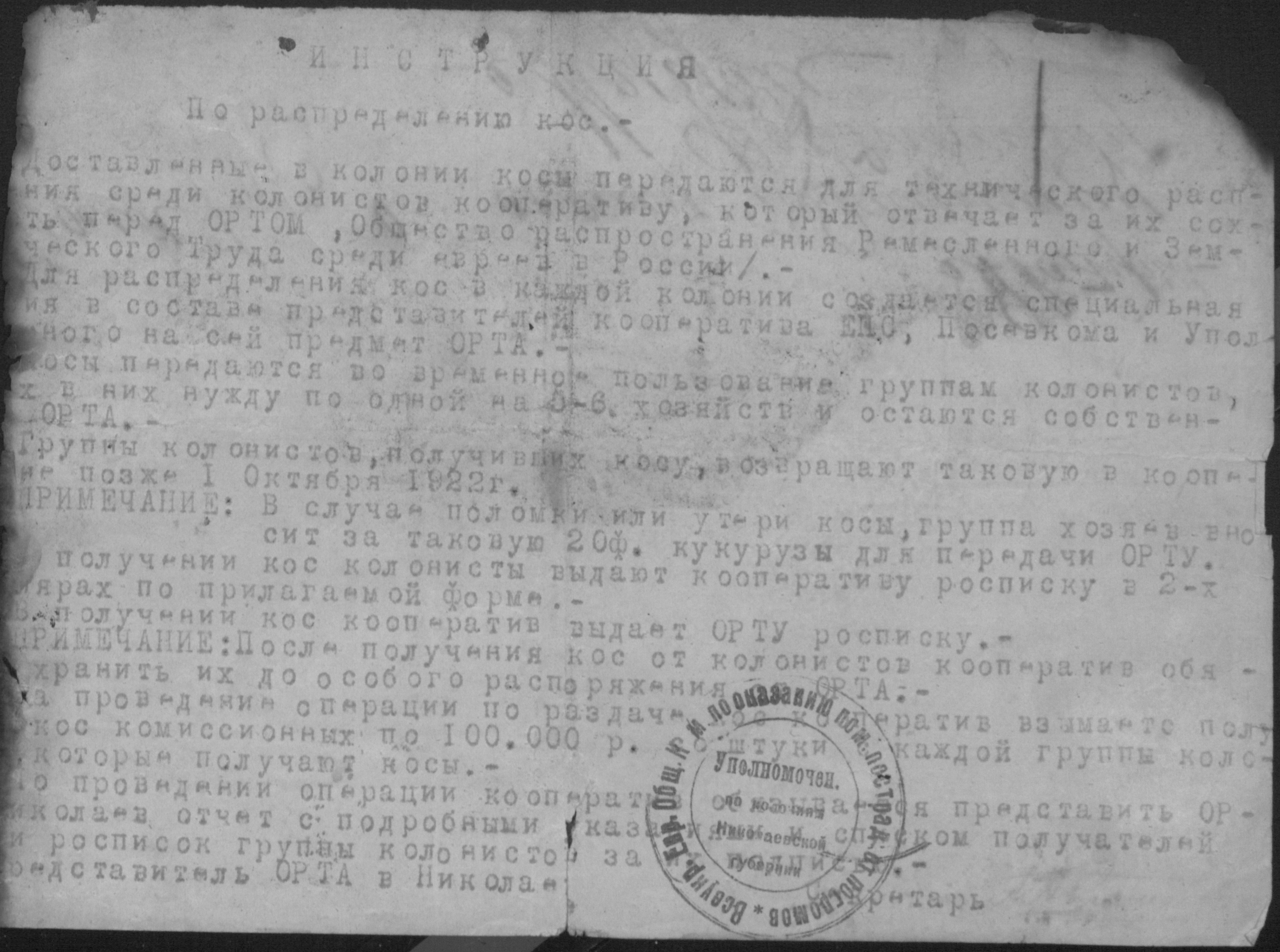 • • • • Справа № 2 “Листування з уповноваженим єврейських землеробських колоній Миколаївської губернії про розподіл інвентаря, насіннєвого фонду, придбання сільськогосподарських машин”