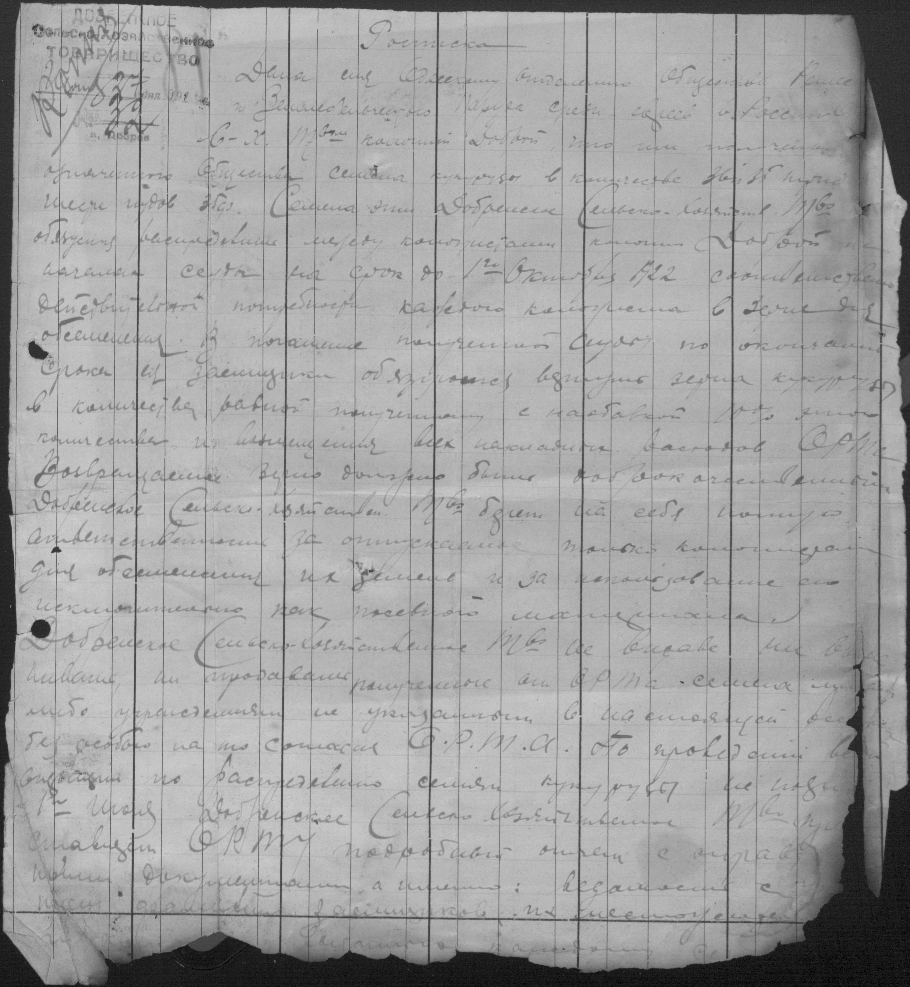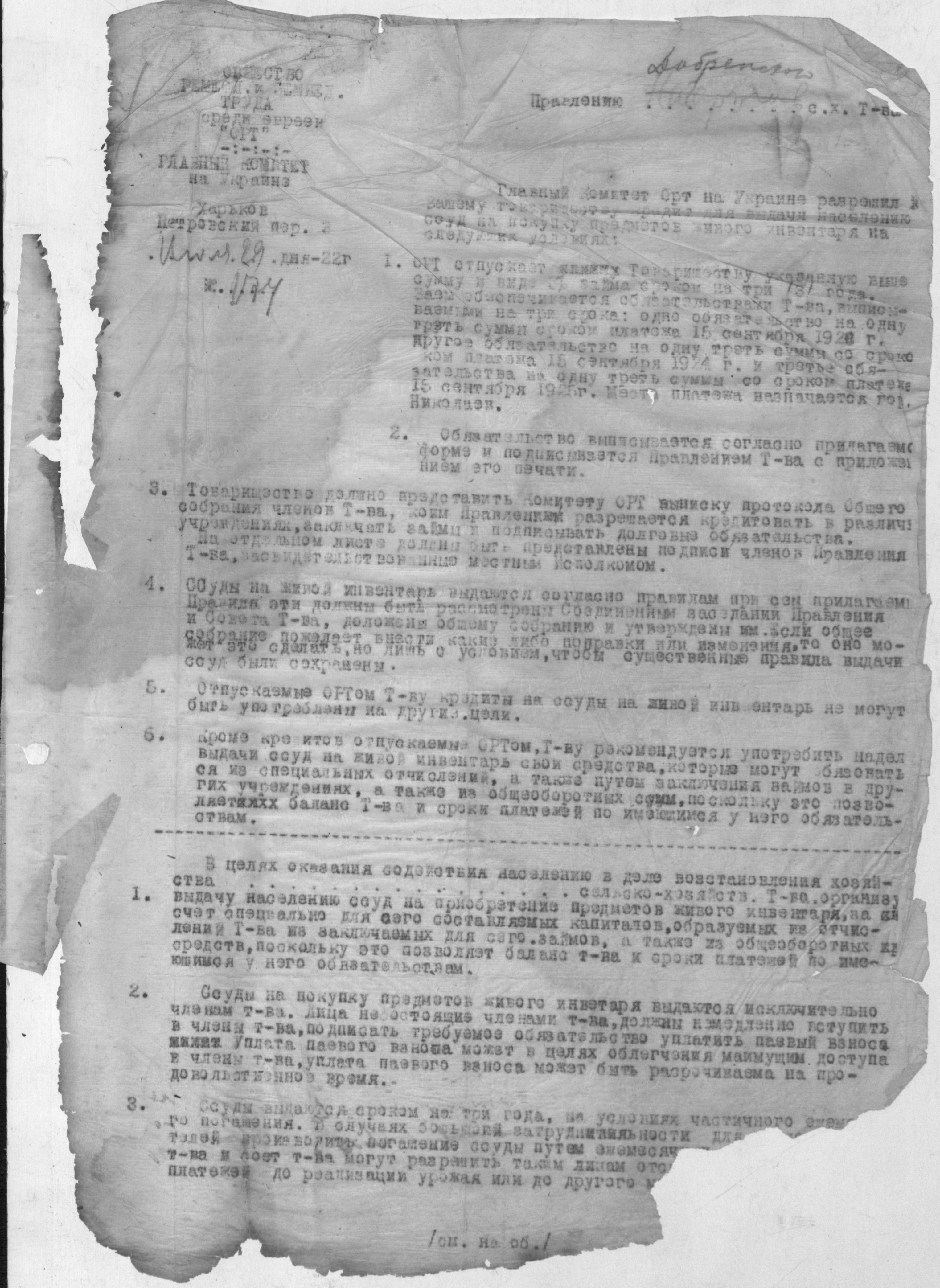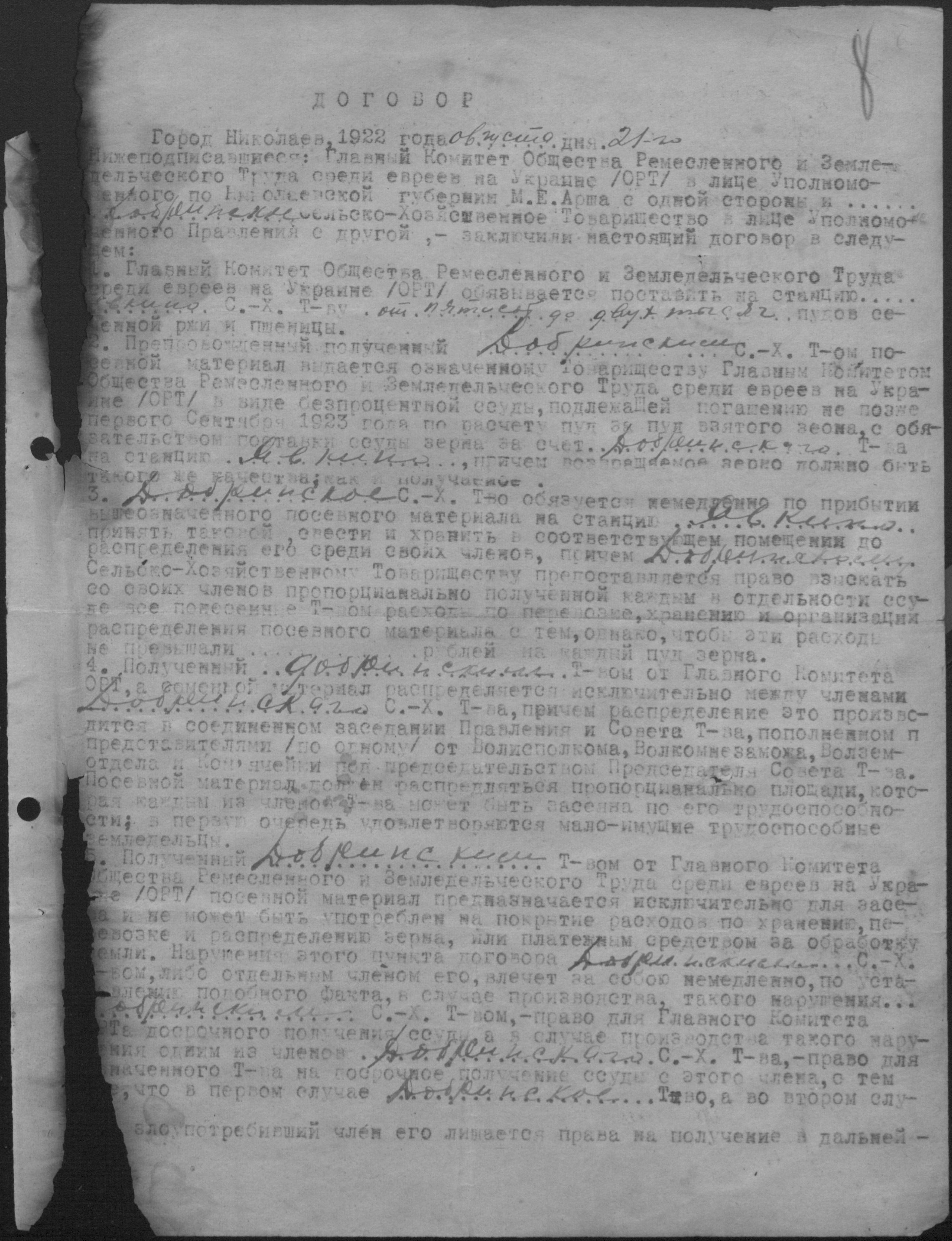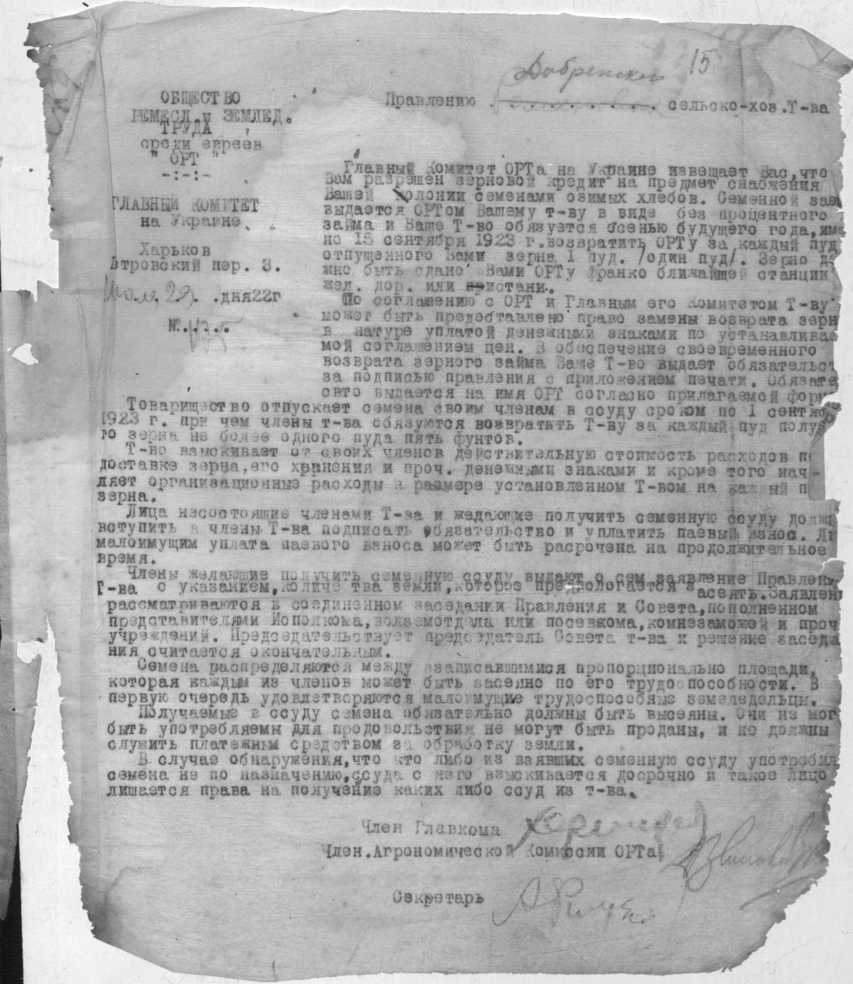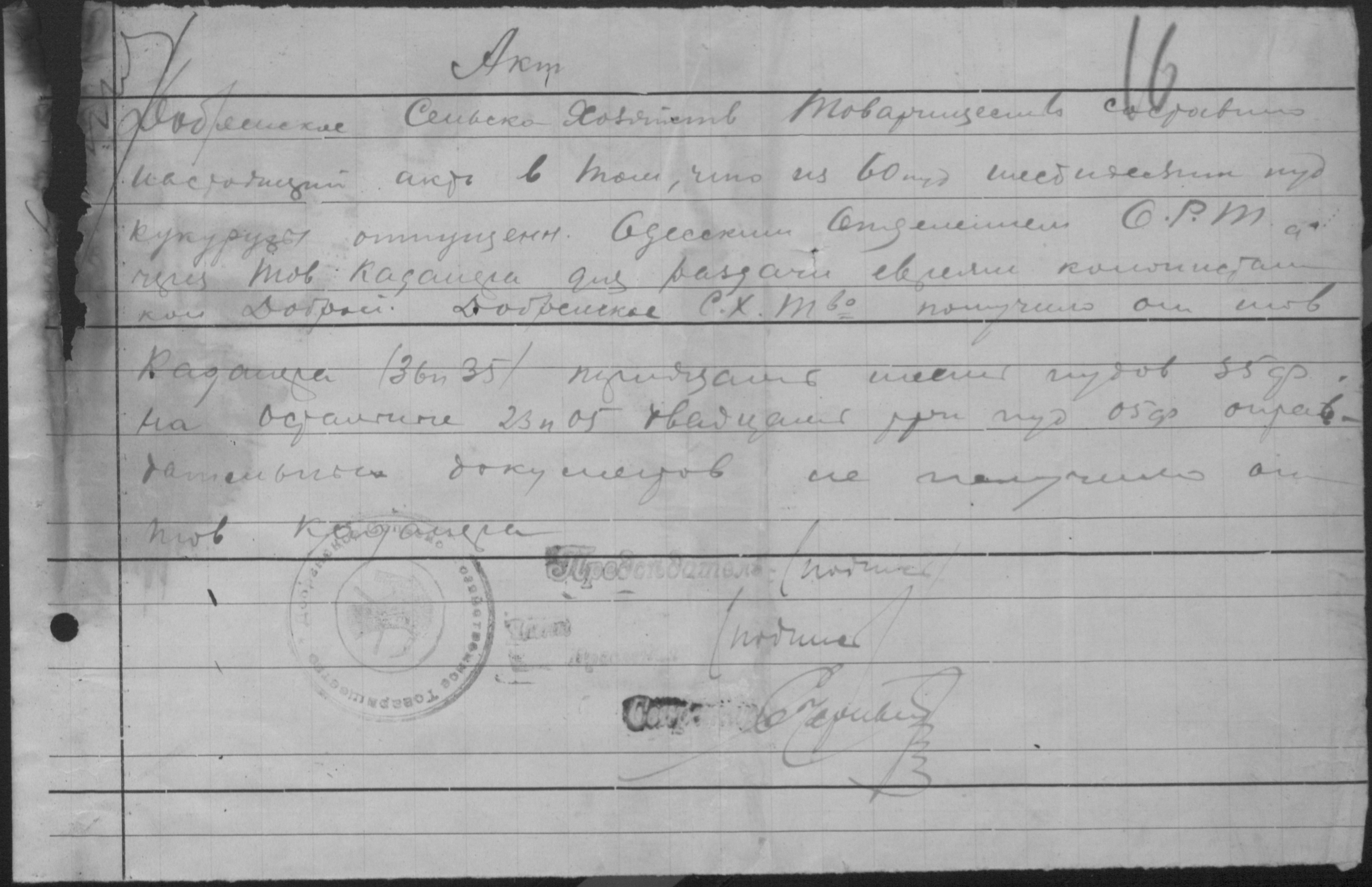 ◦ ◦ Фонд № Р-398 “Добренське сільськогосподарське кредитно-кооперативне товариство”