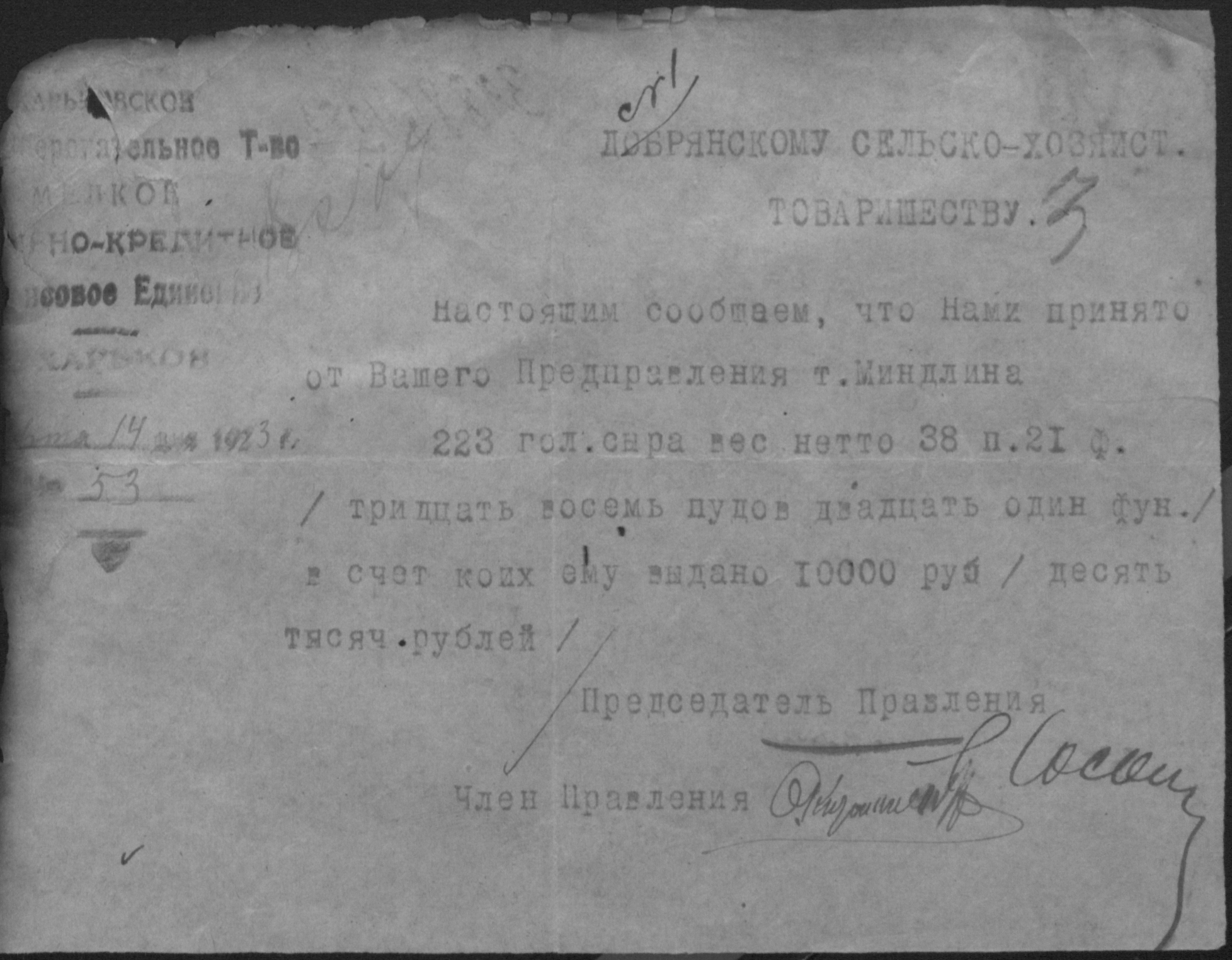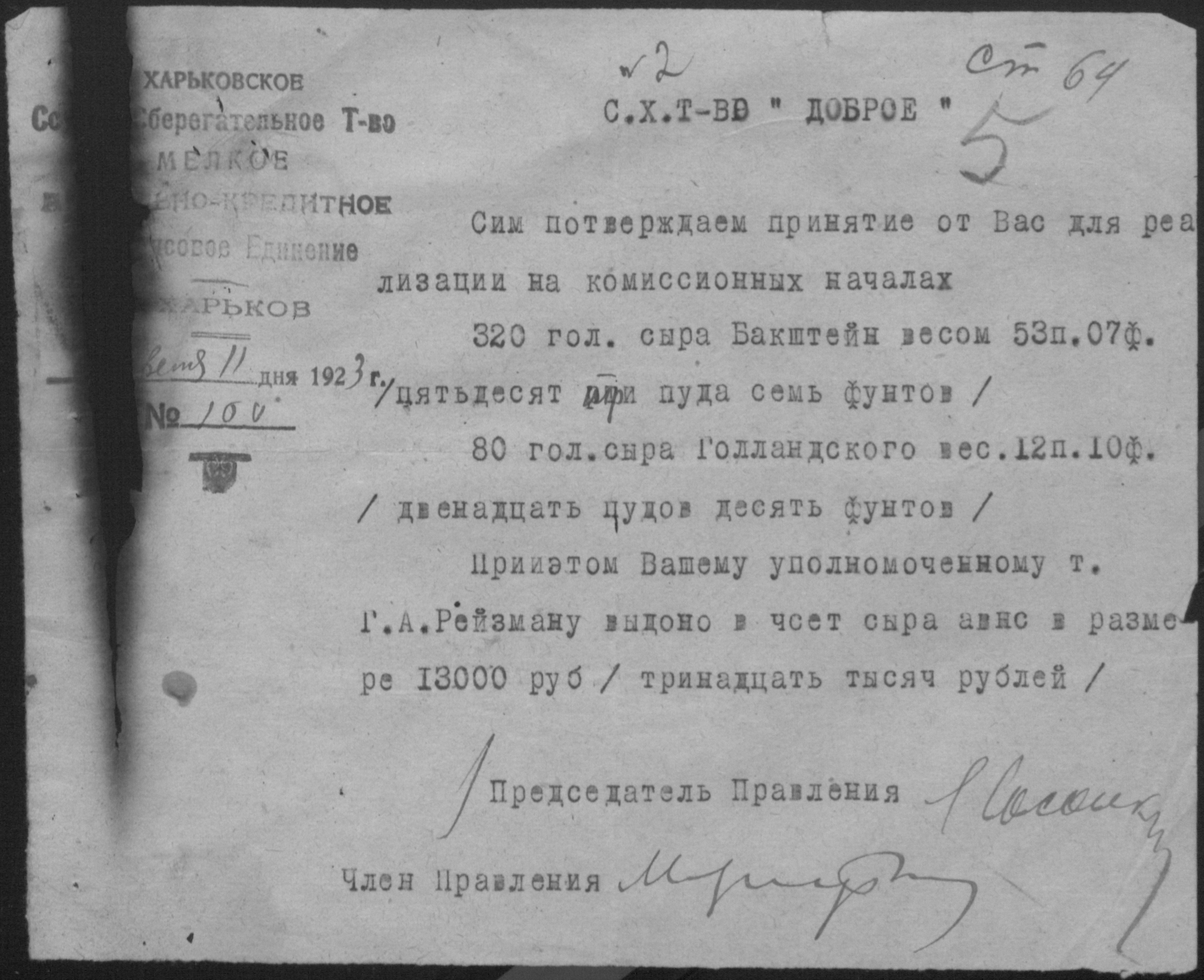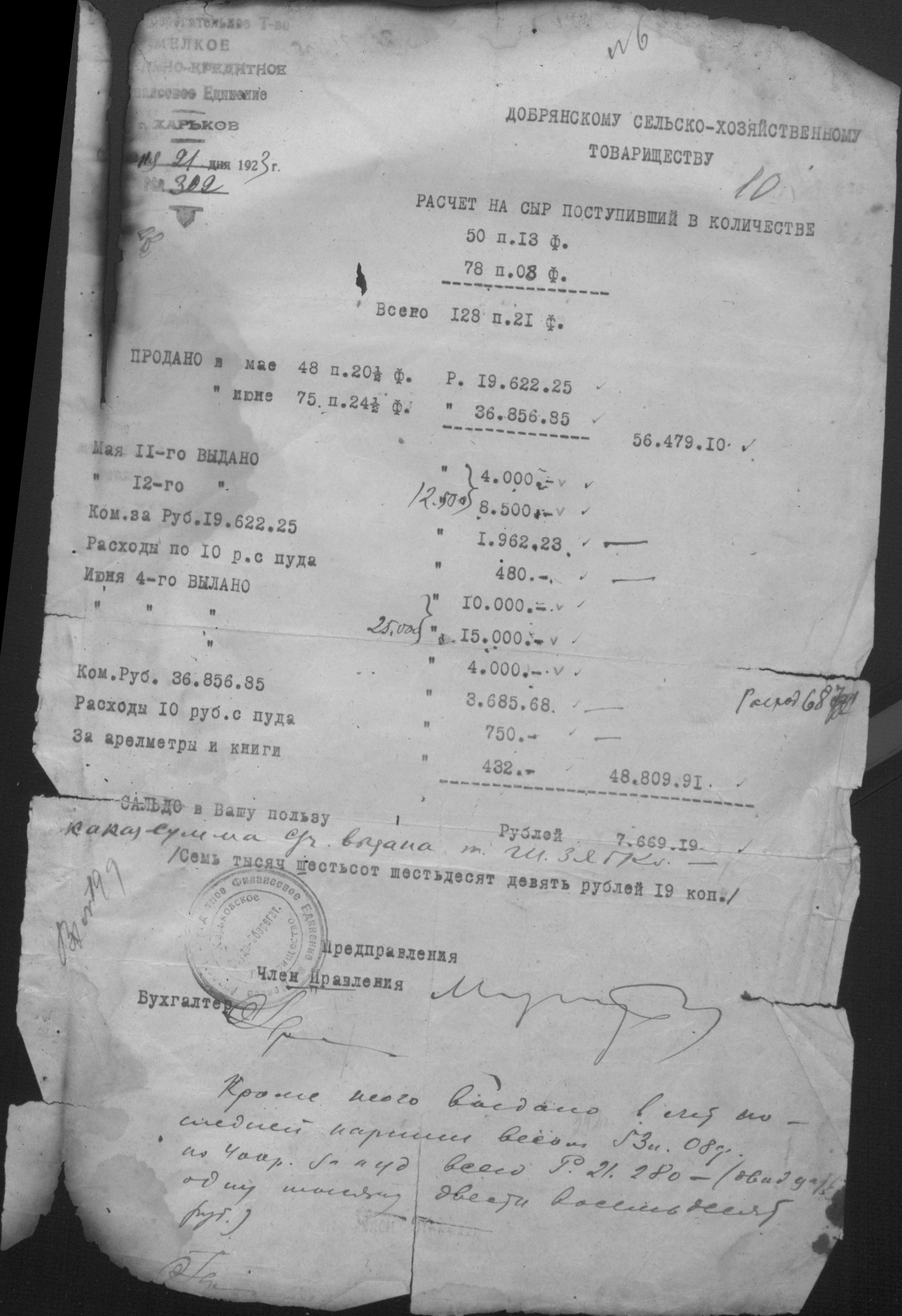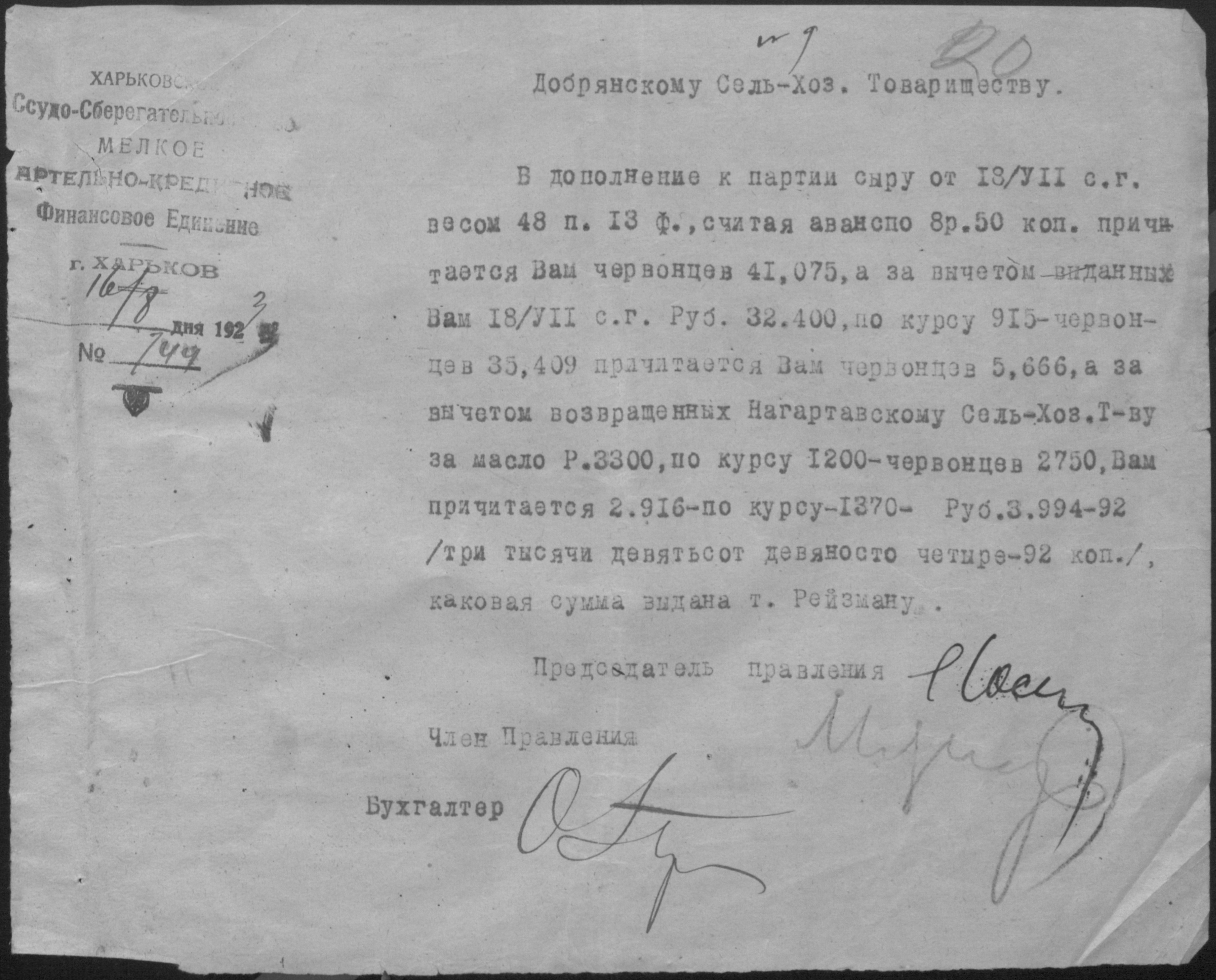 ◦ ◦ Фонд № Р-398 “Добренське сільськогосподарське кредитно-кооперативне товариство”