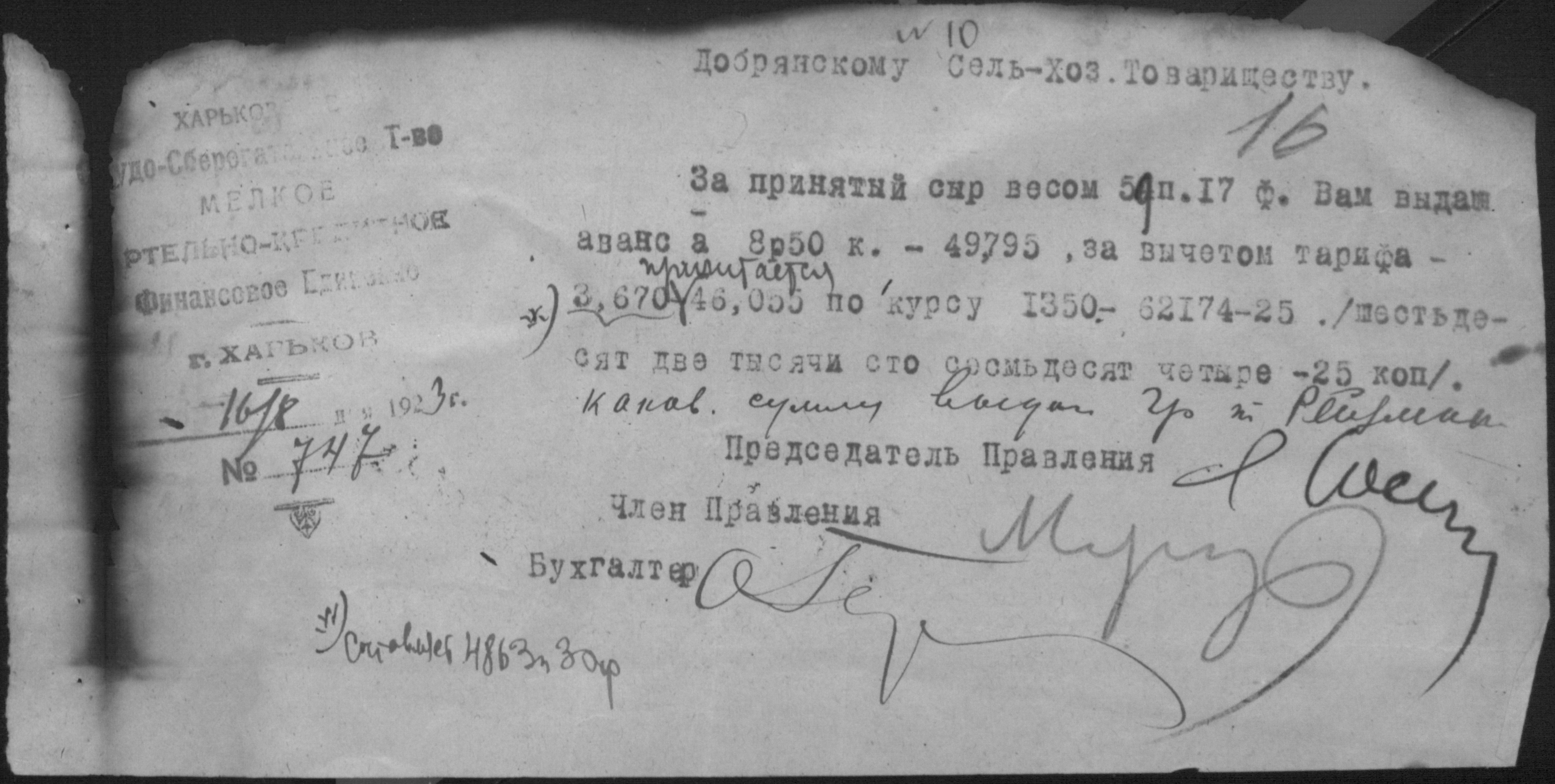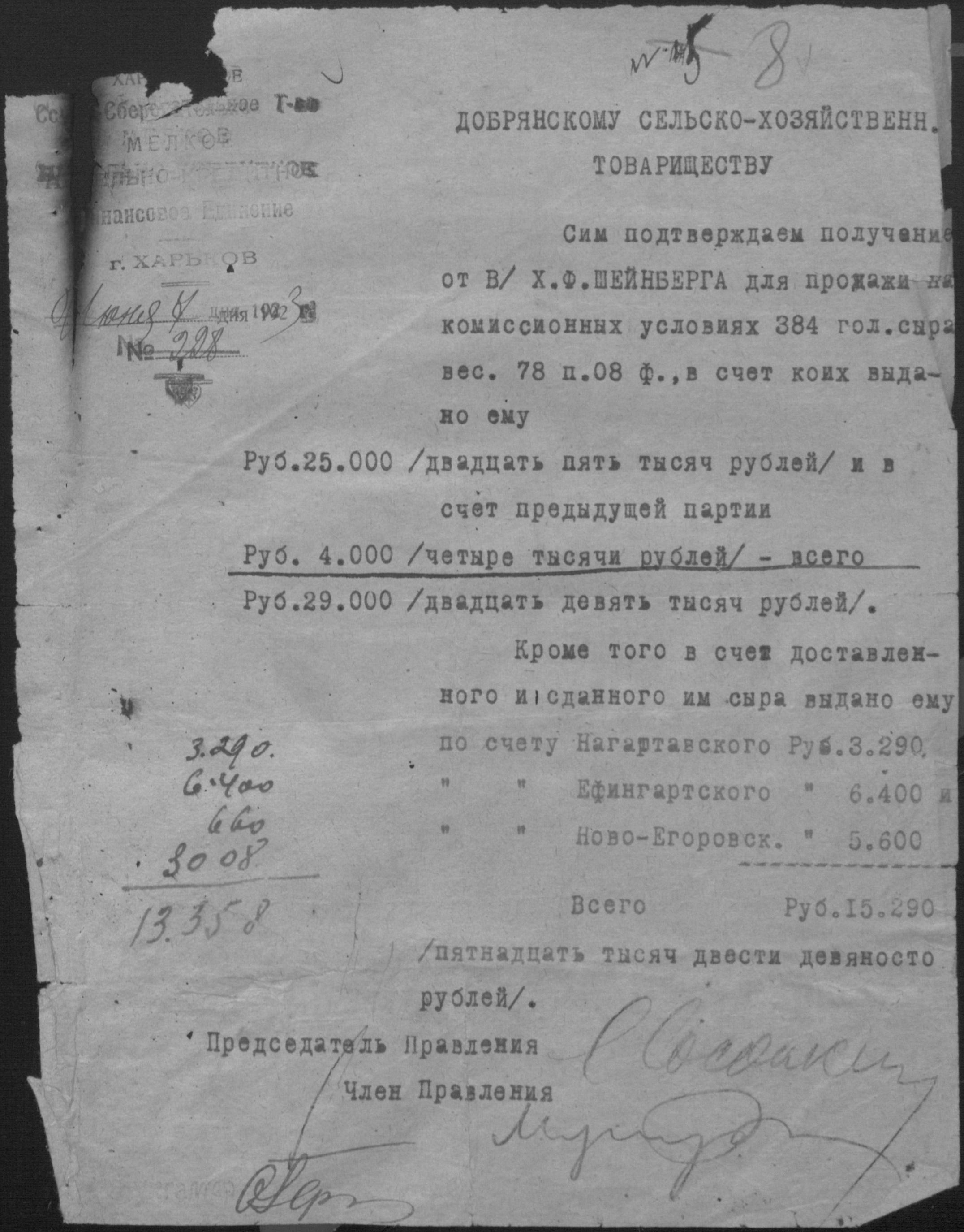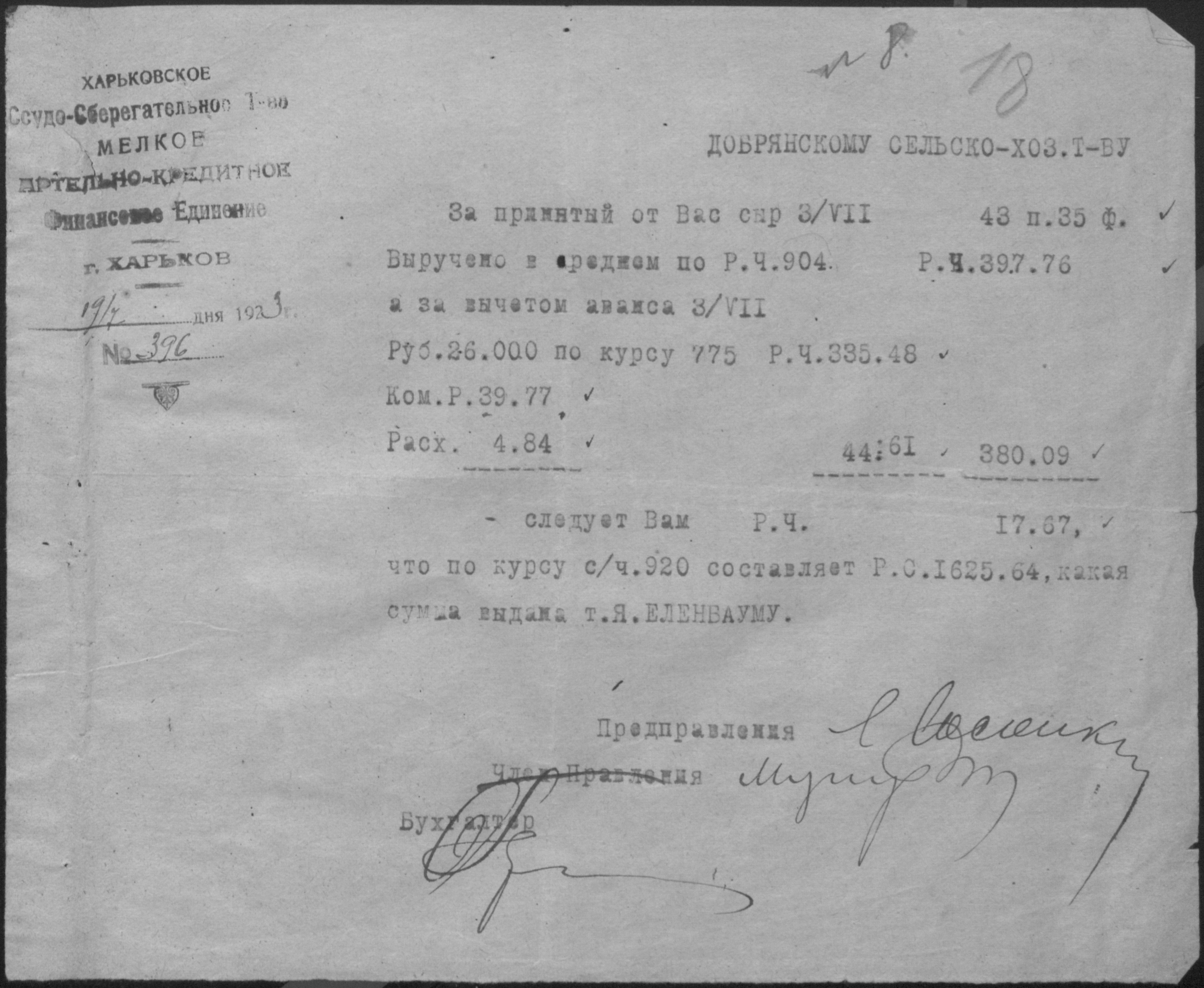 ◦ ◦ Фонд № Р-398 “Добренське сільськогосподарське кредитно-кооперативне товариство”