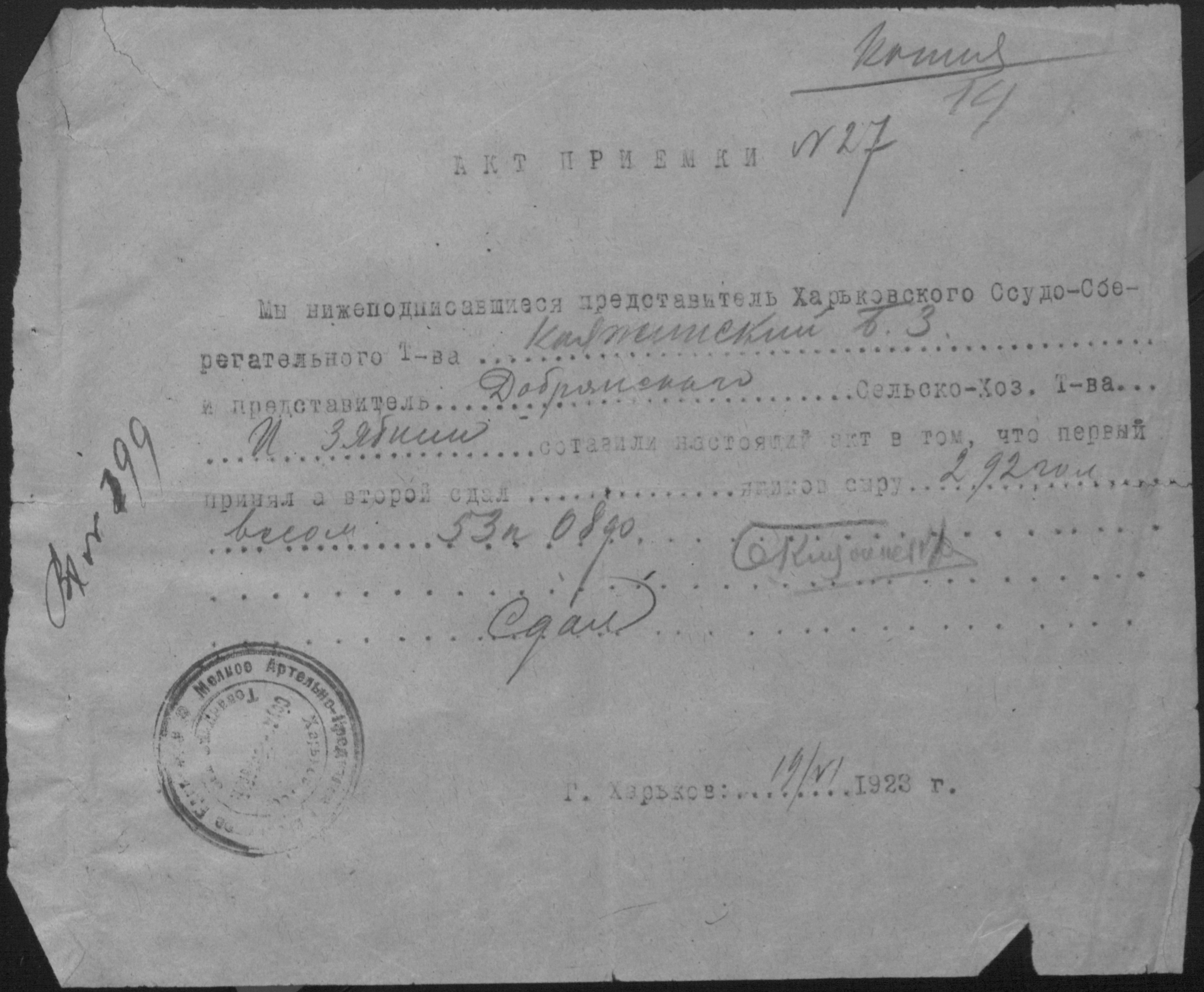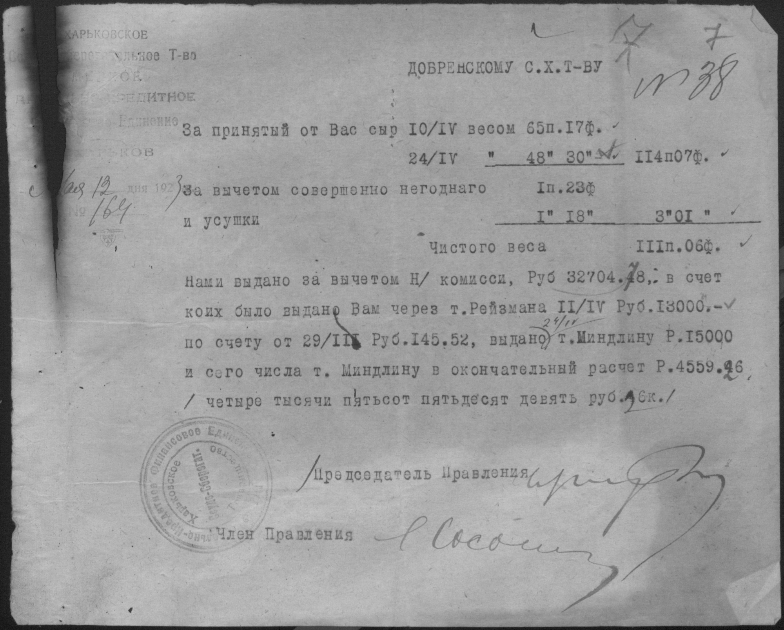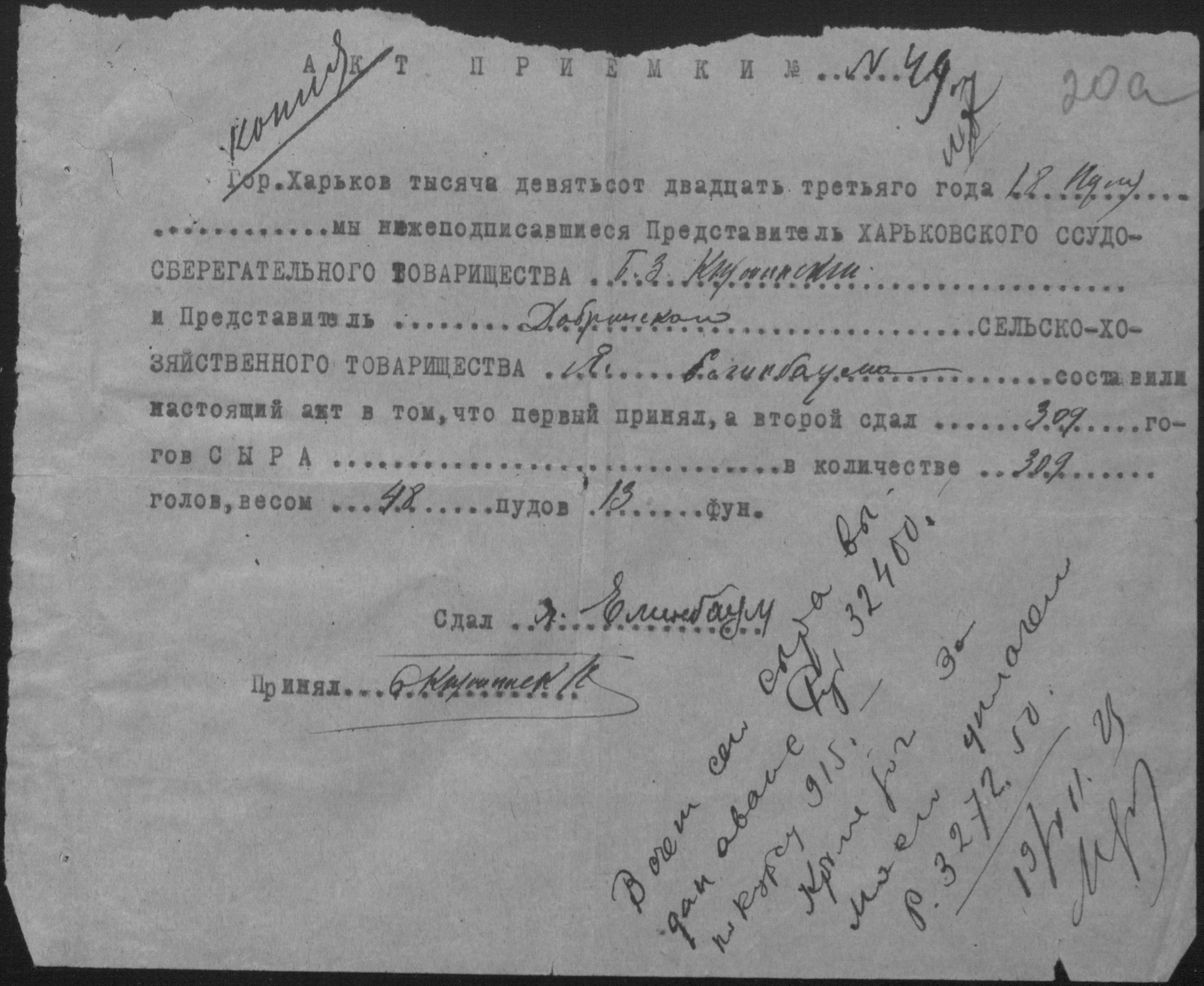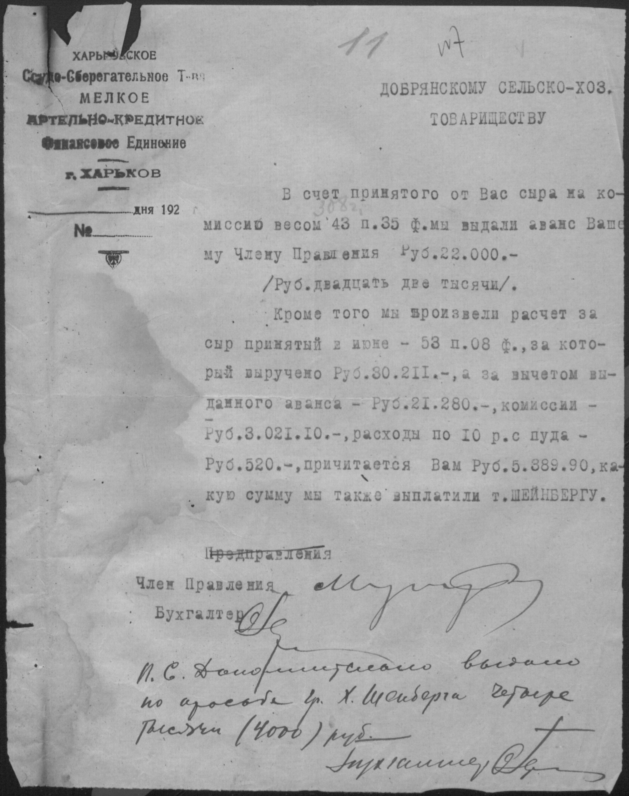 ◦ ◦ Фонд № Р-398 “Добренське сільськогосподарське кредитно-кооперативне товариство”