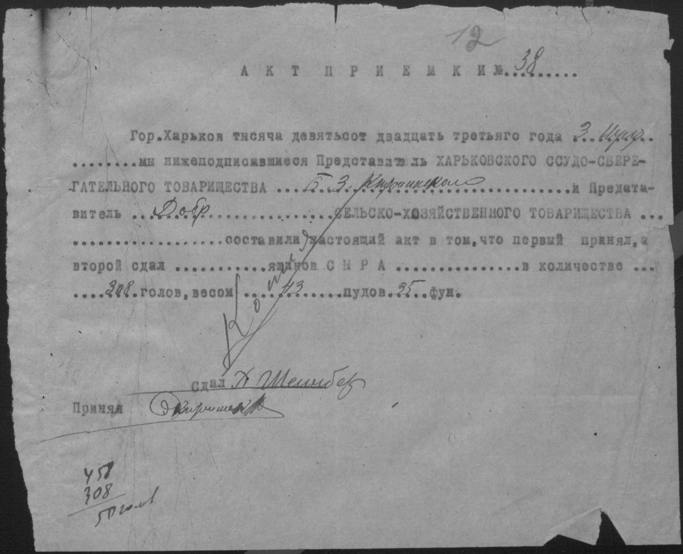 • • • • Справа № 5 “Листування з Харківським кредитно-ощадним товариством про видачу позичок на придбання сільськогосподарського інвентаря”
