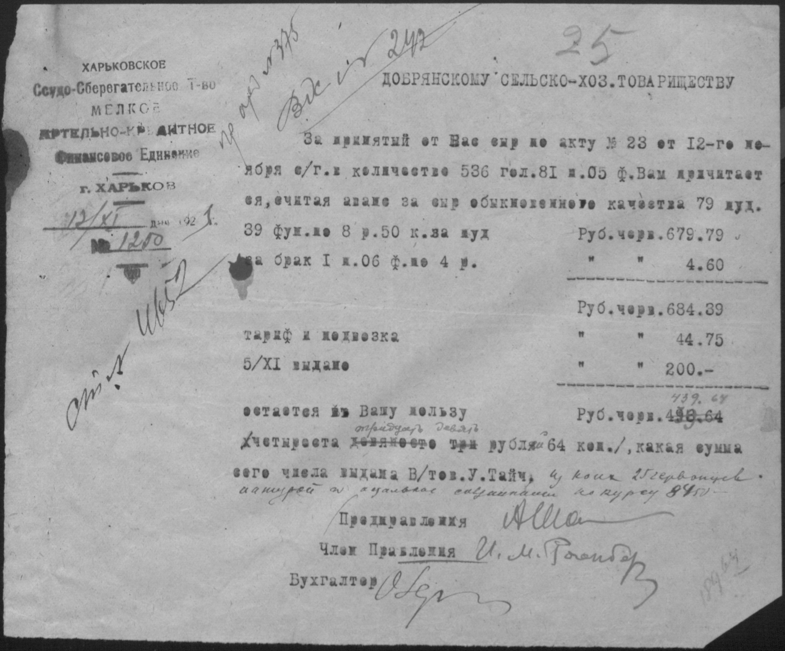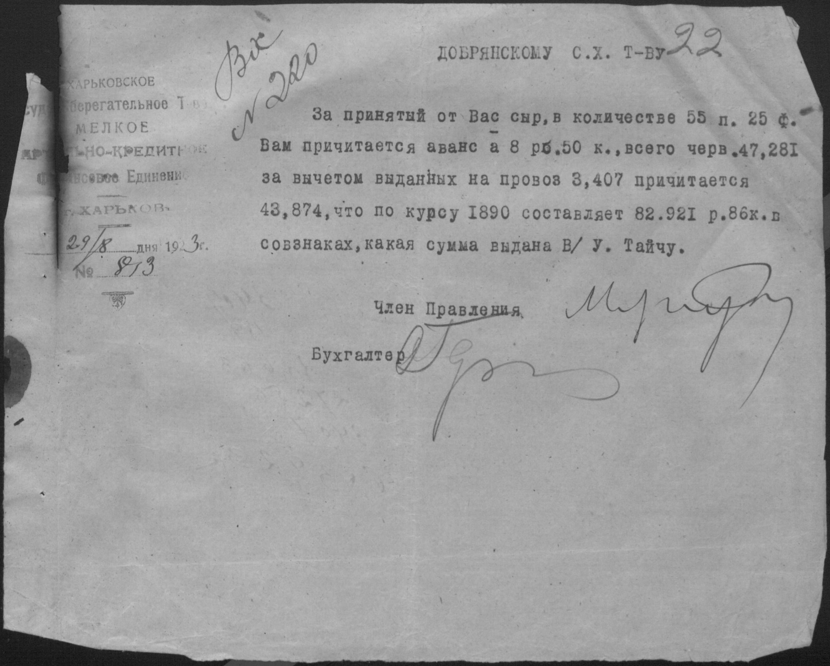 ◦ ◦ Фонд № Р-398 “Добренське сільськогосподарське кредитно-кооперативне товариство”